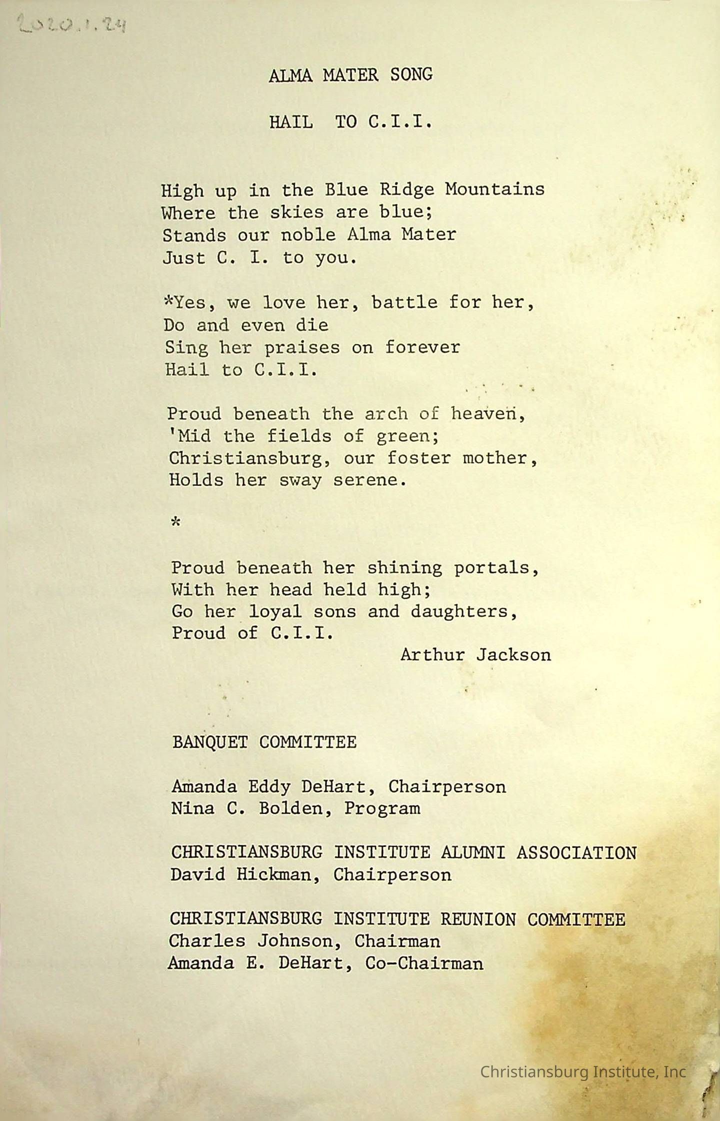Copyright has been assigned to Christiansburg Institute Museum & Archives by Carlton Banks. For permission to publish materials created by the donor, contact CIMA@christiansburginstitute.com. Materials not created by John F. Banks may still be under copyright.