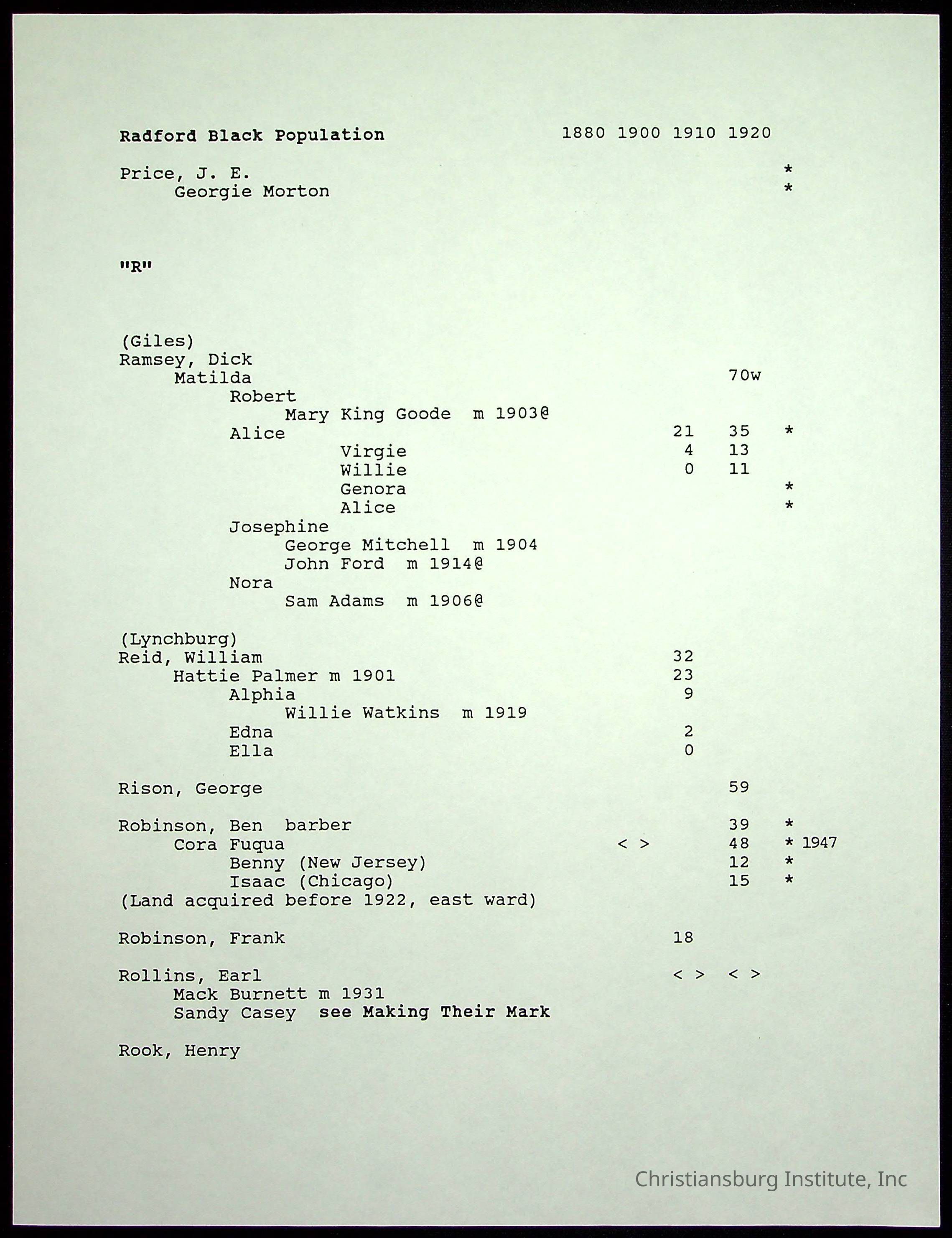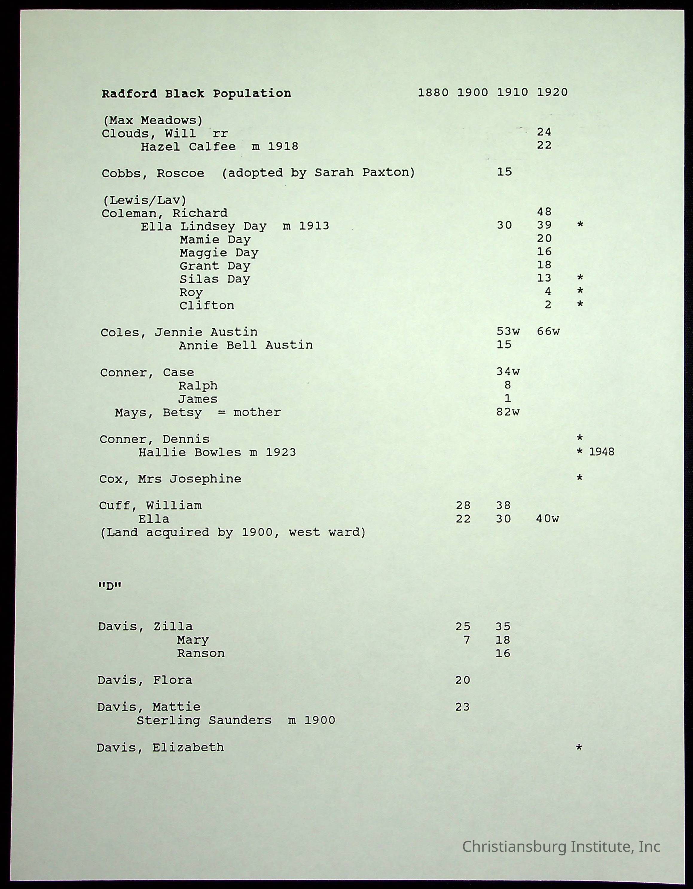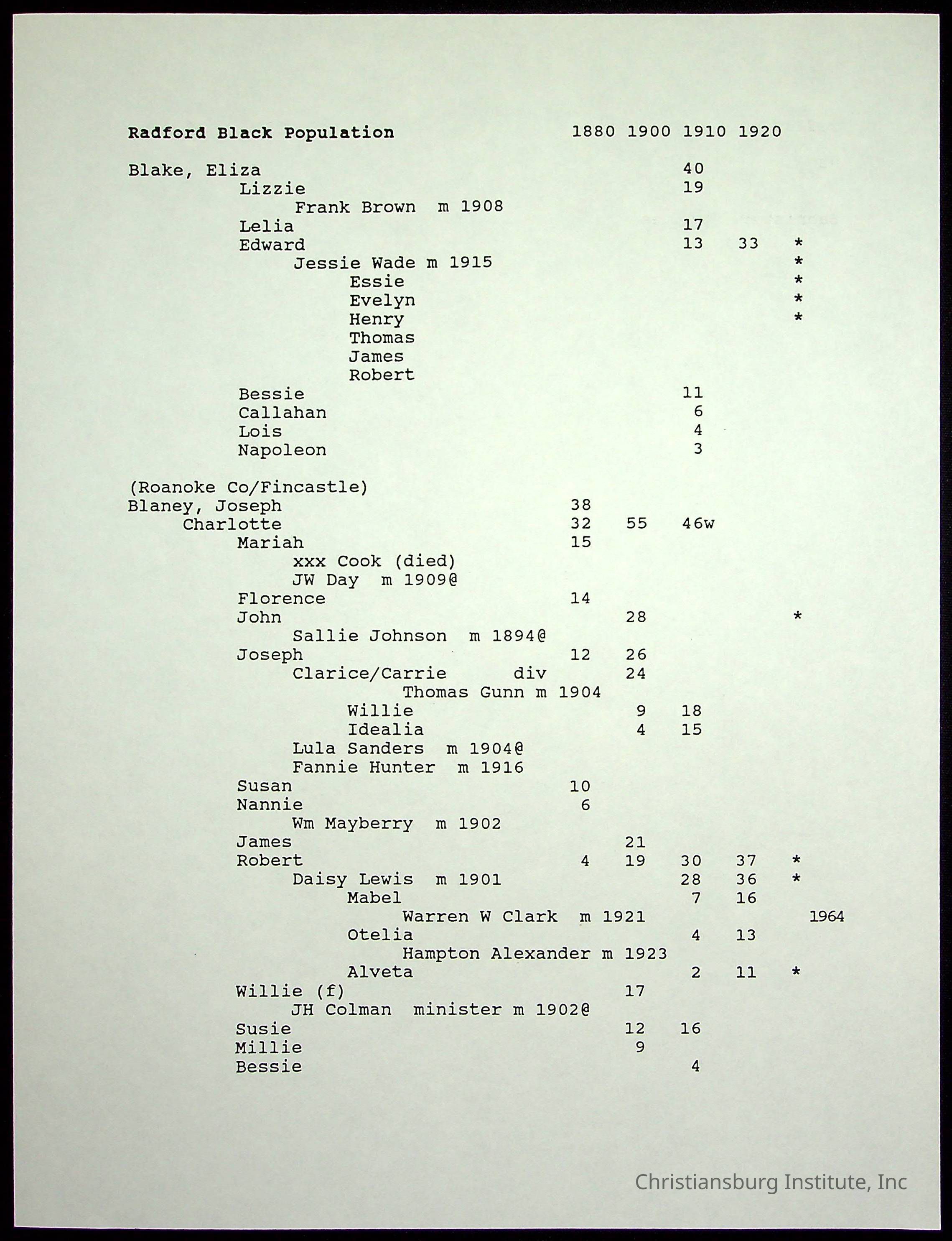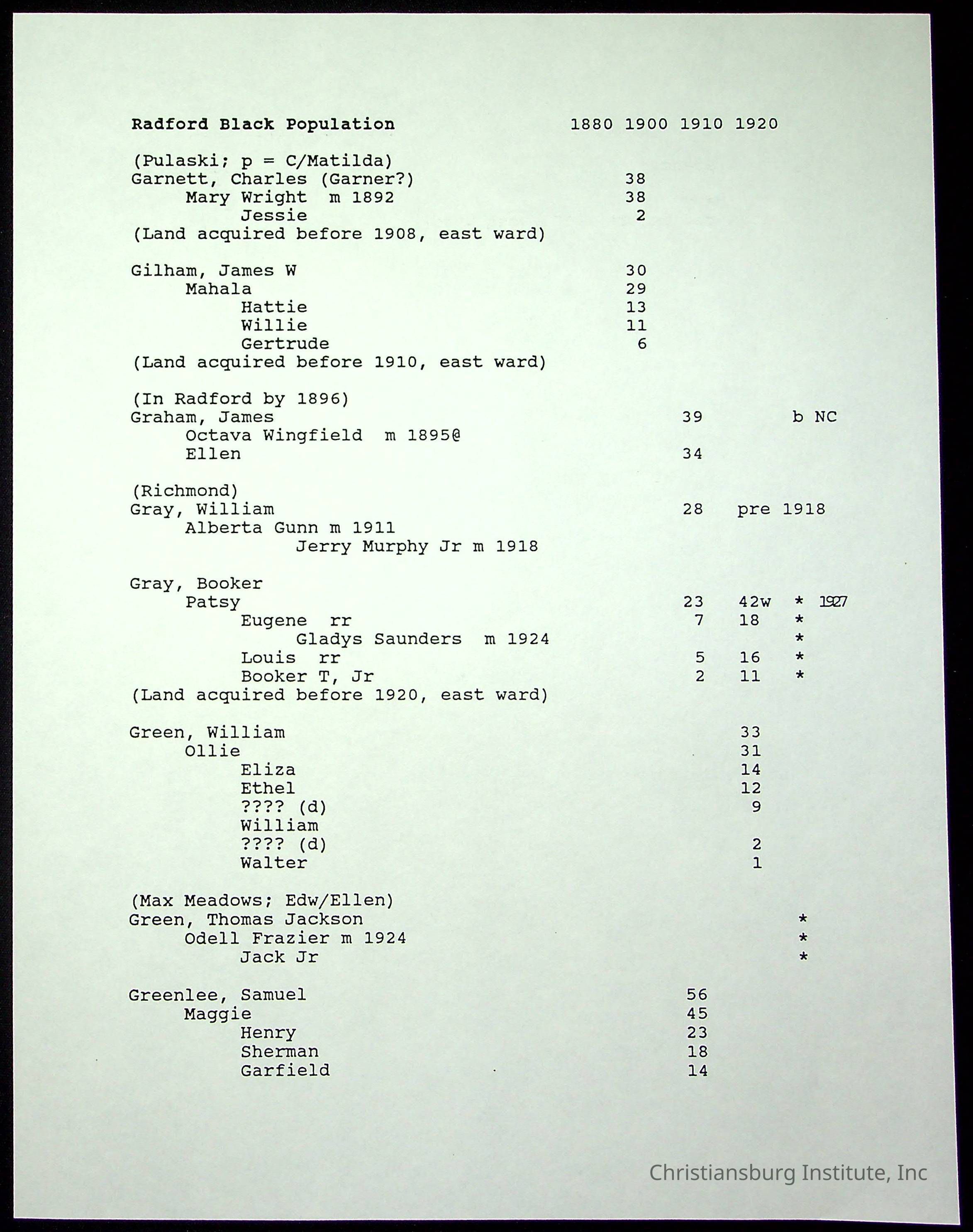 Folder 12: Radford's Early Black Residents