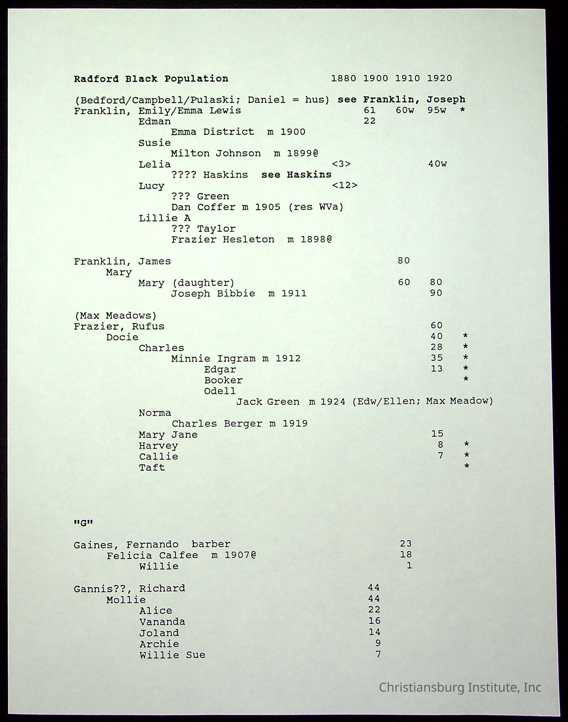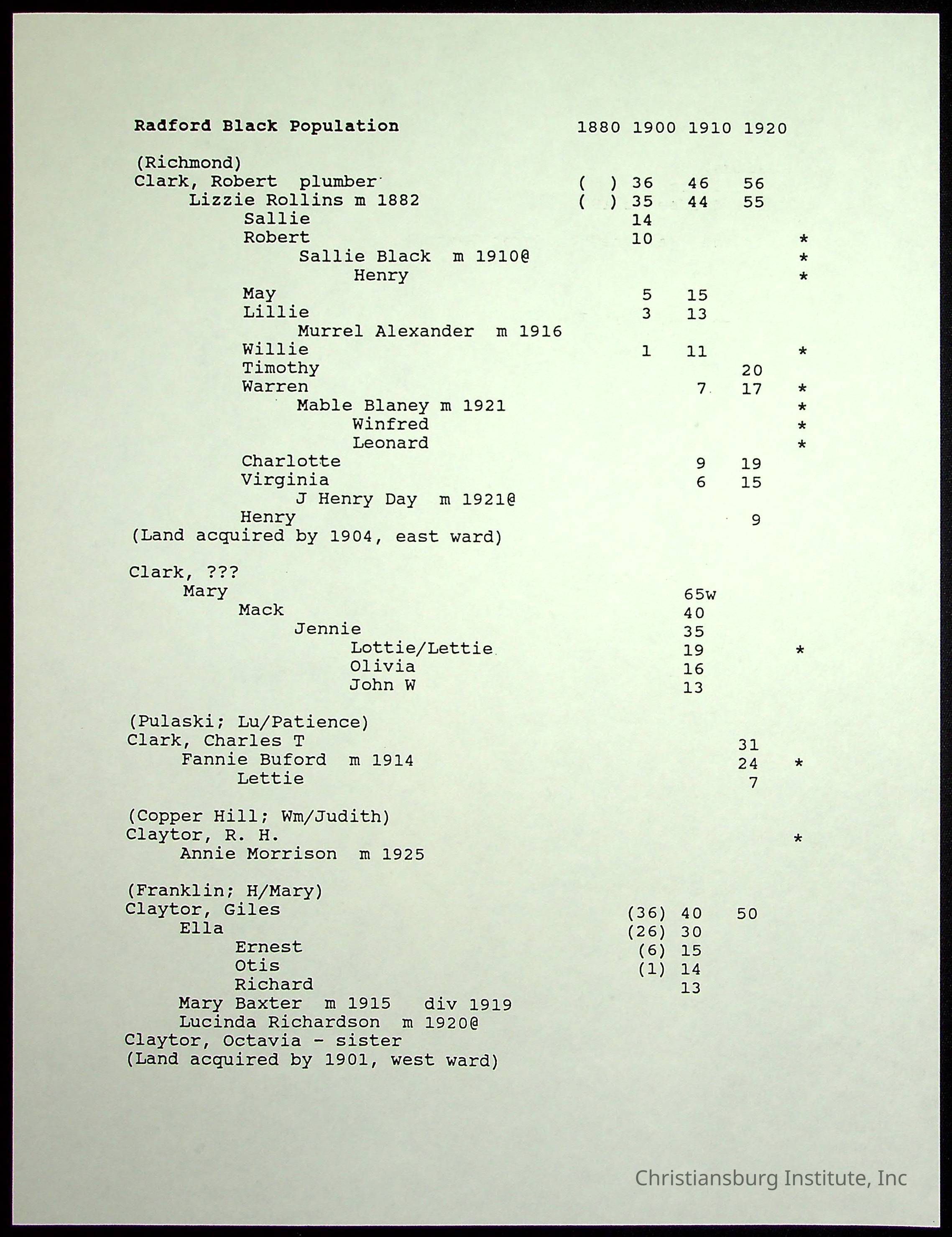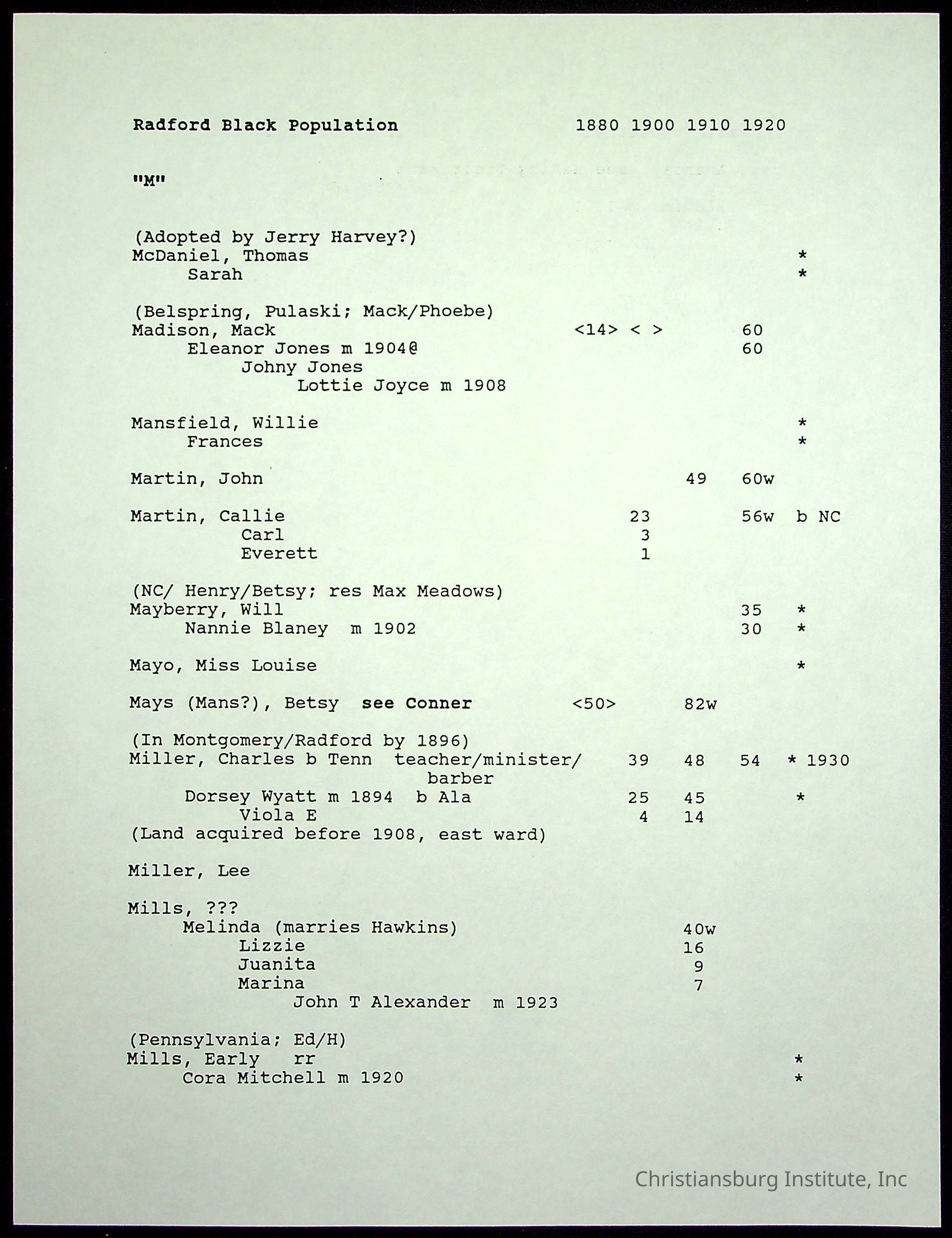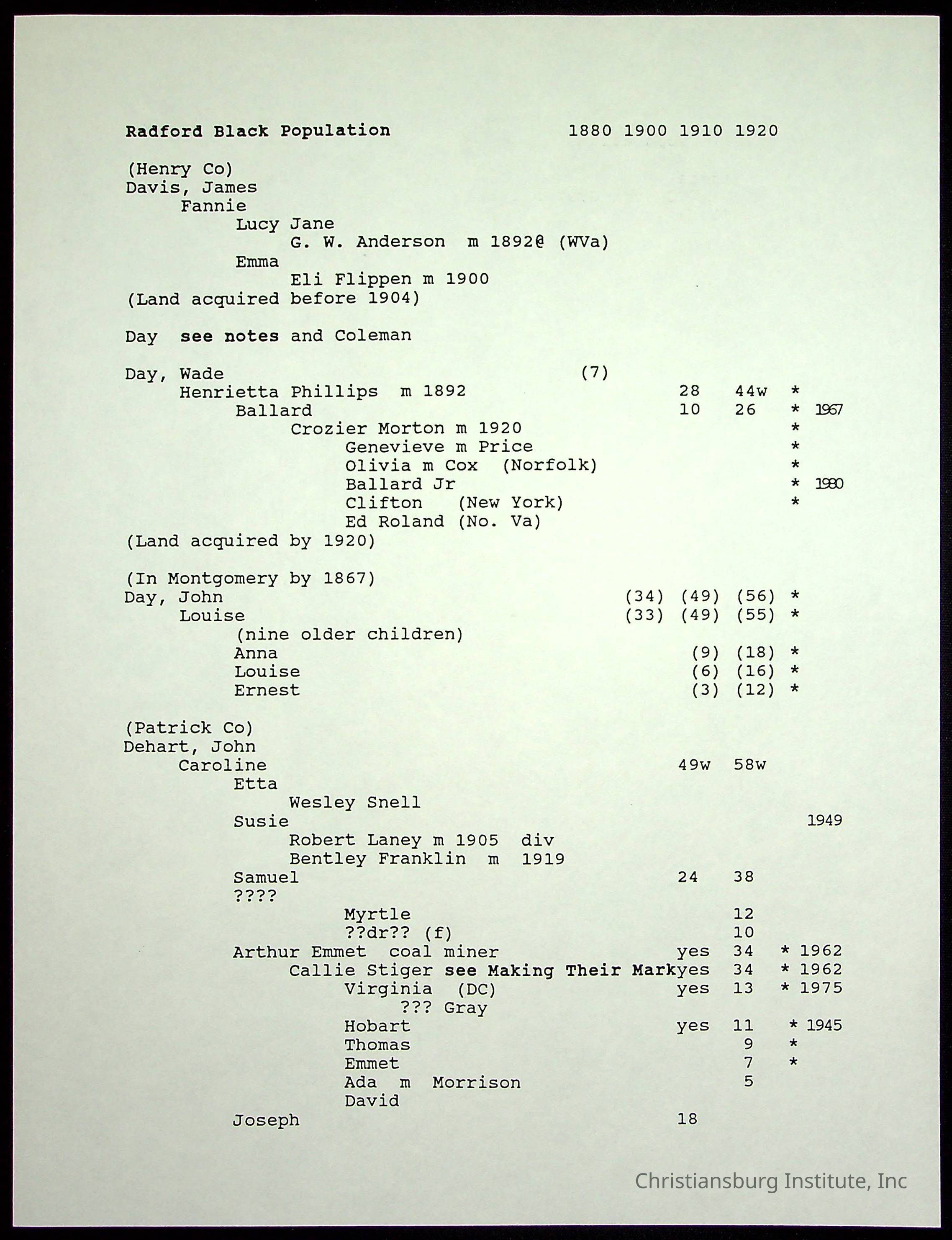 Folder 12: Radford's Early Black Residents