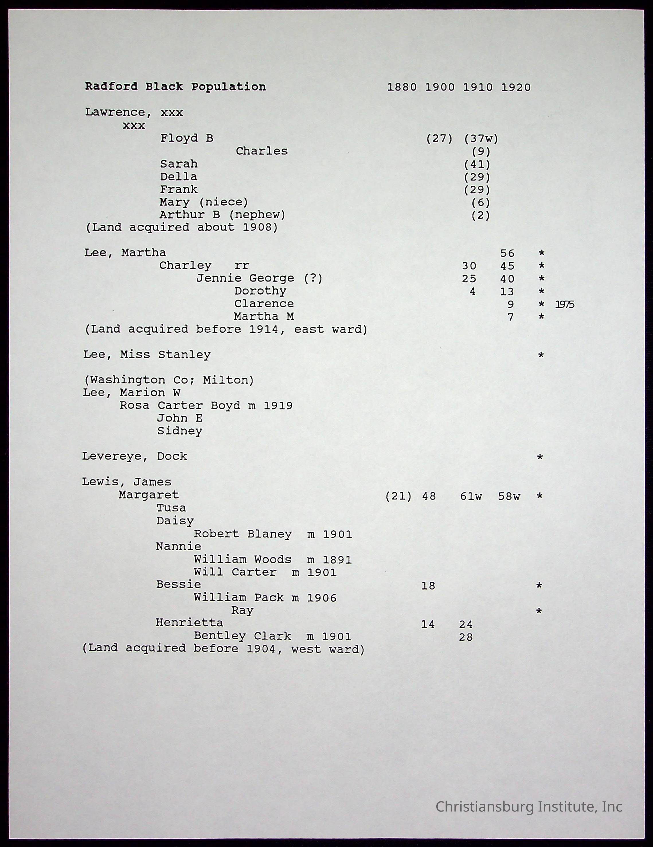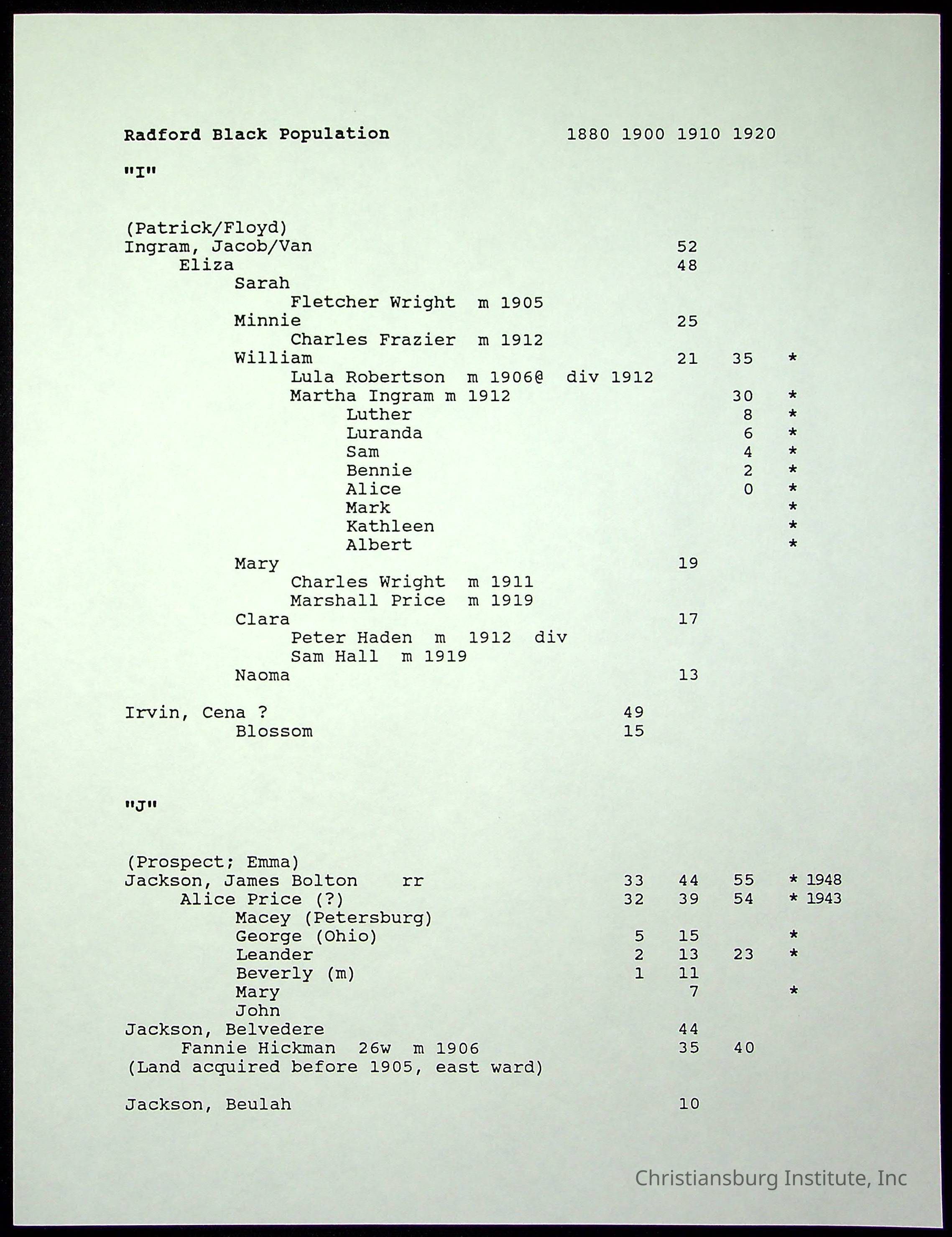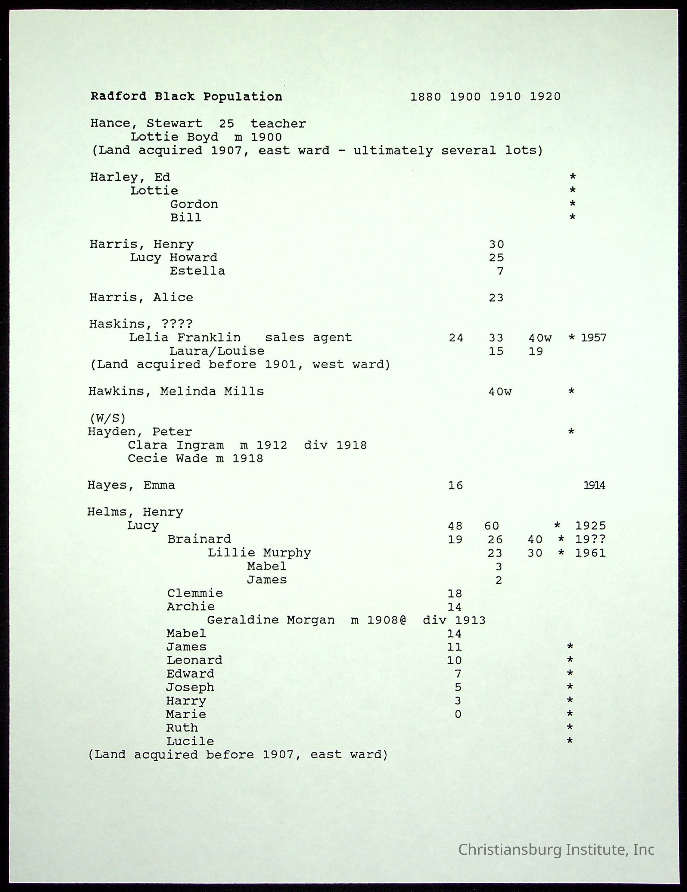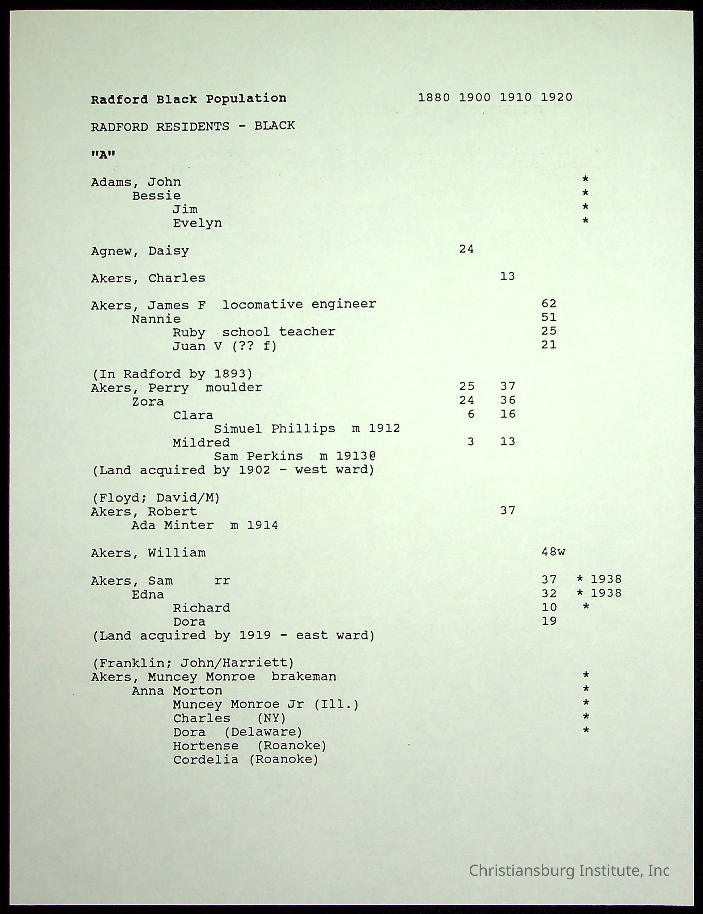 Folder 12: Radford's Early Black Residents