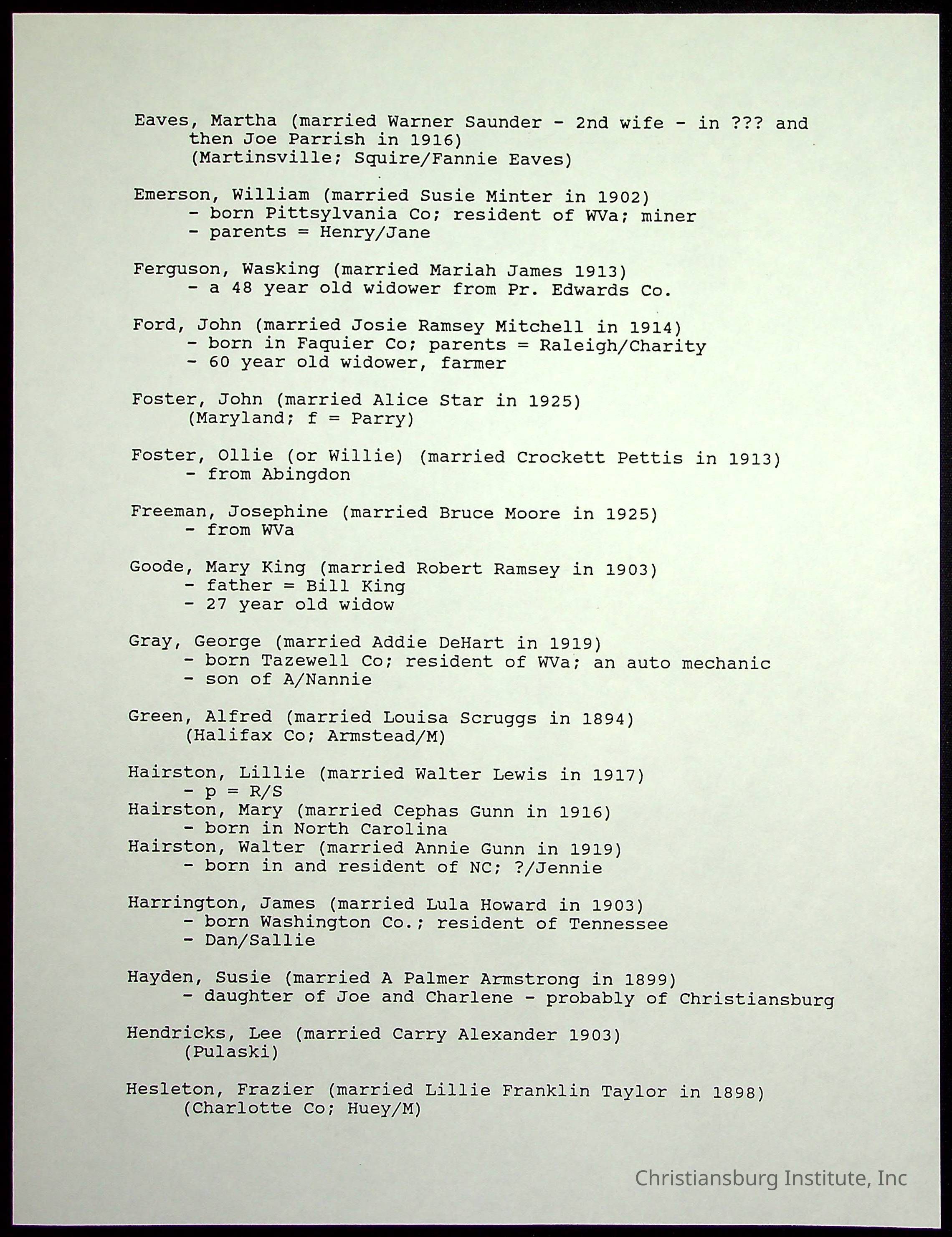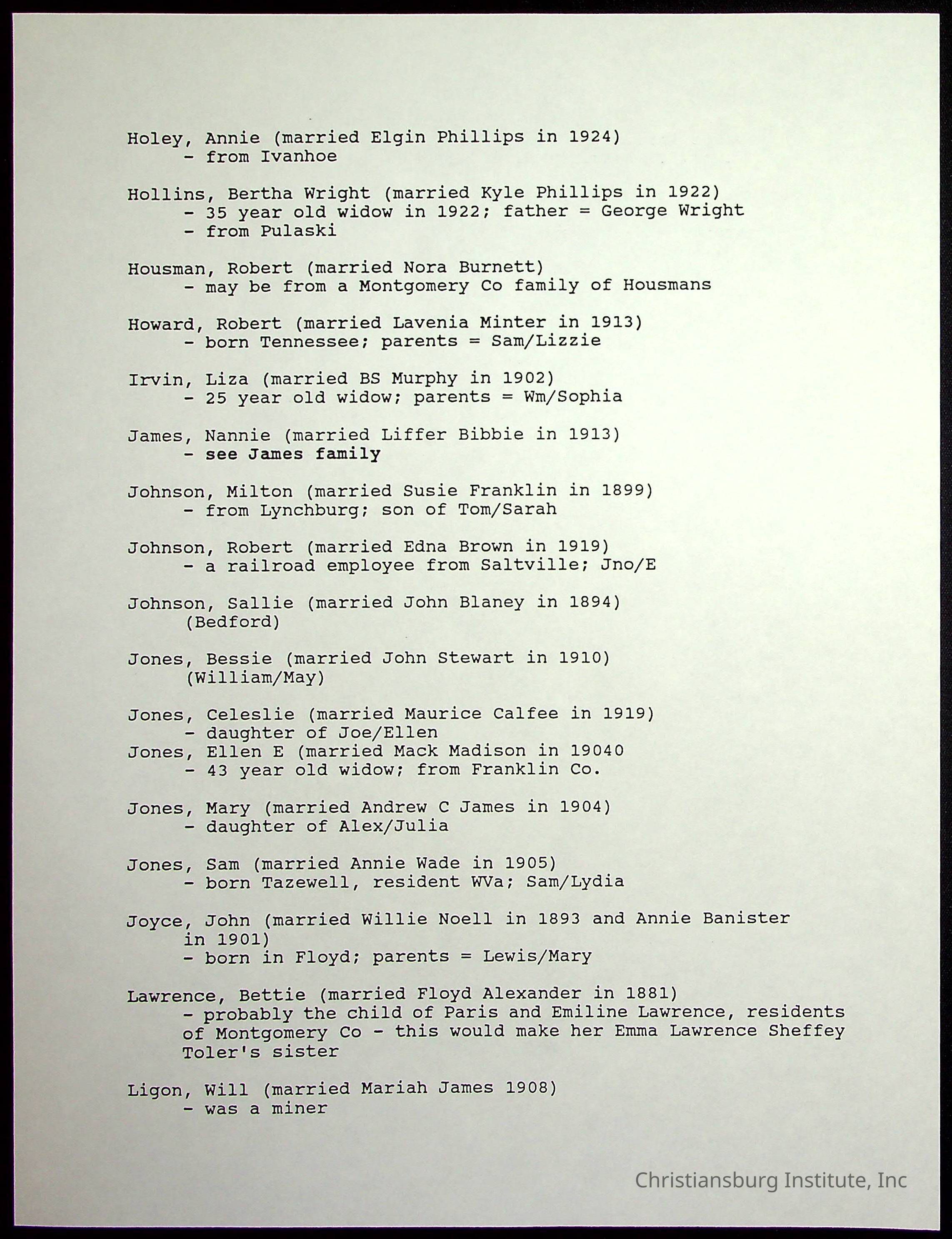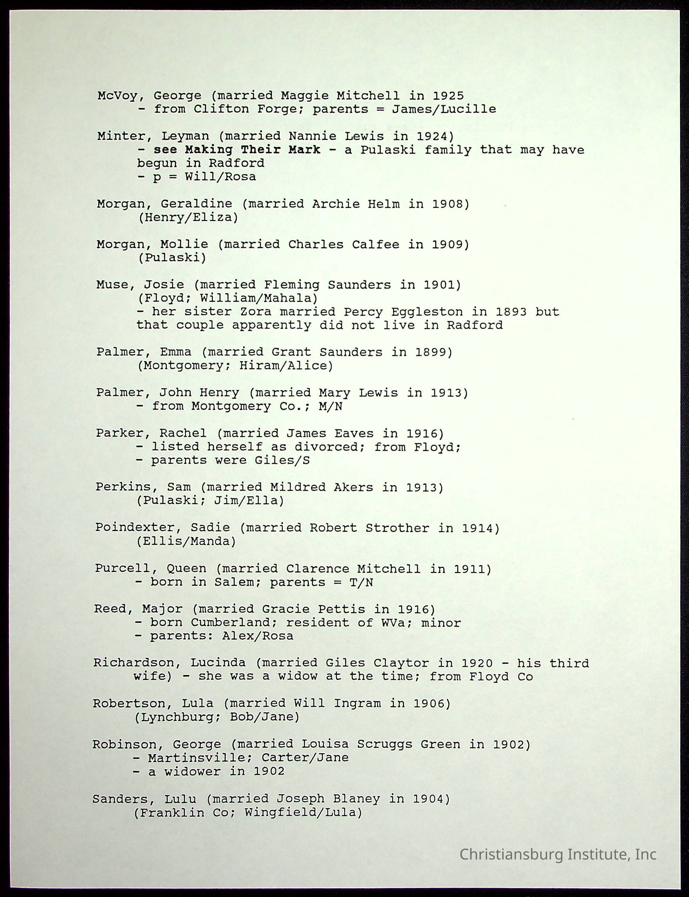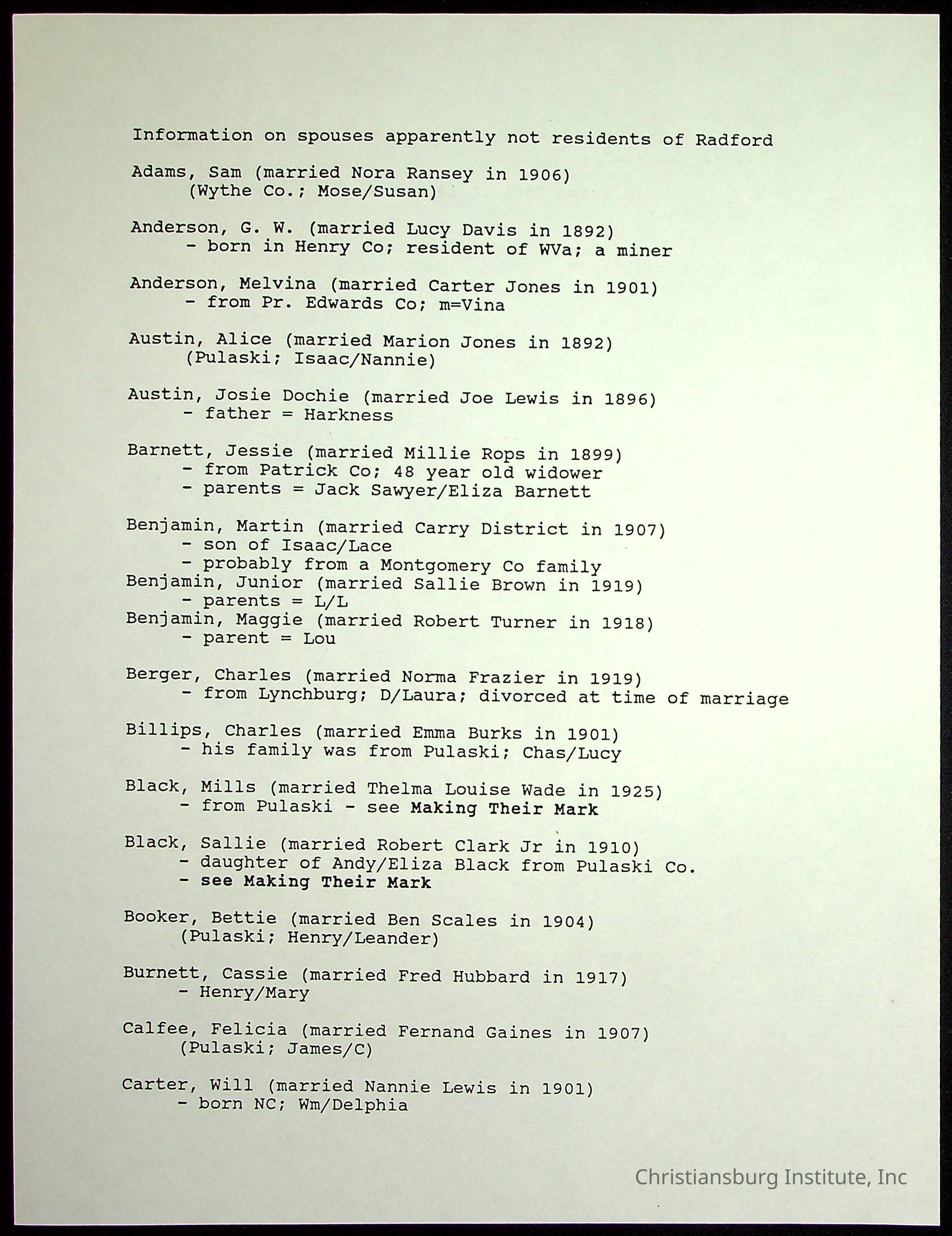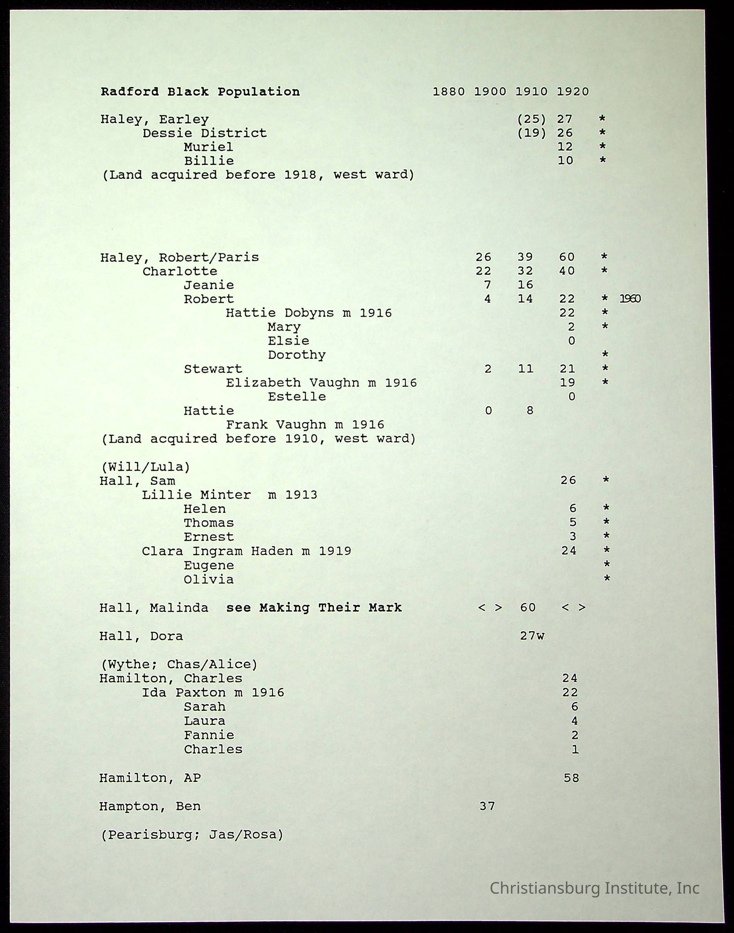 Farm Land, Boom Town, Village: A History of Belspring, Virginia, 1750-1940, The Reports of Charles S. Schaeffer from the Virginia counties of Montgomery and Pulaski, with additional information on the counties of Floyd, Giles, Craig, Wythe, and Roanoke., Ingles Ferry Ledgers (1840s-1880s), These people lived in a pleasant valley, Making their mark: Black Families of New River Depot, 1870-1940., Whartons’ Town New River Depot, 1870-1940., Radford’s Early Black Residents, 1880-1925