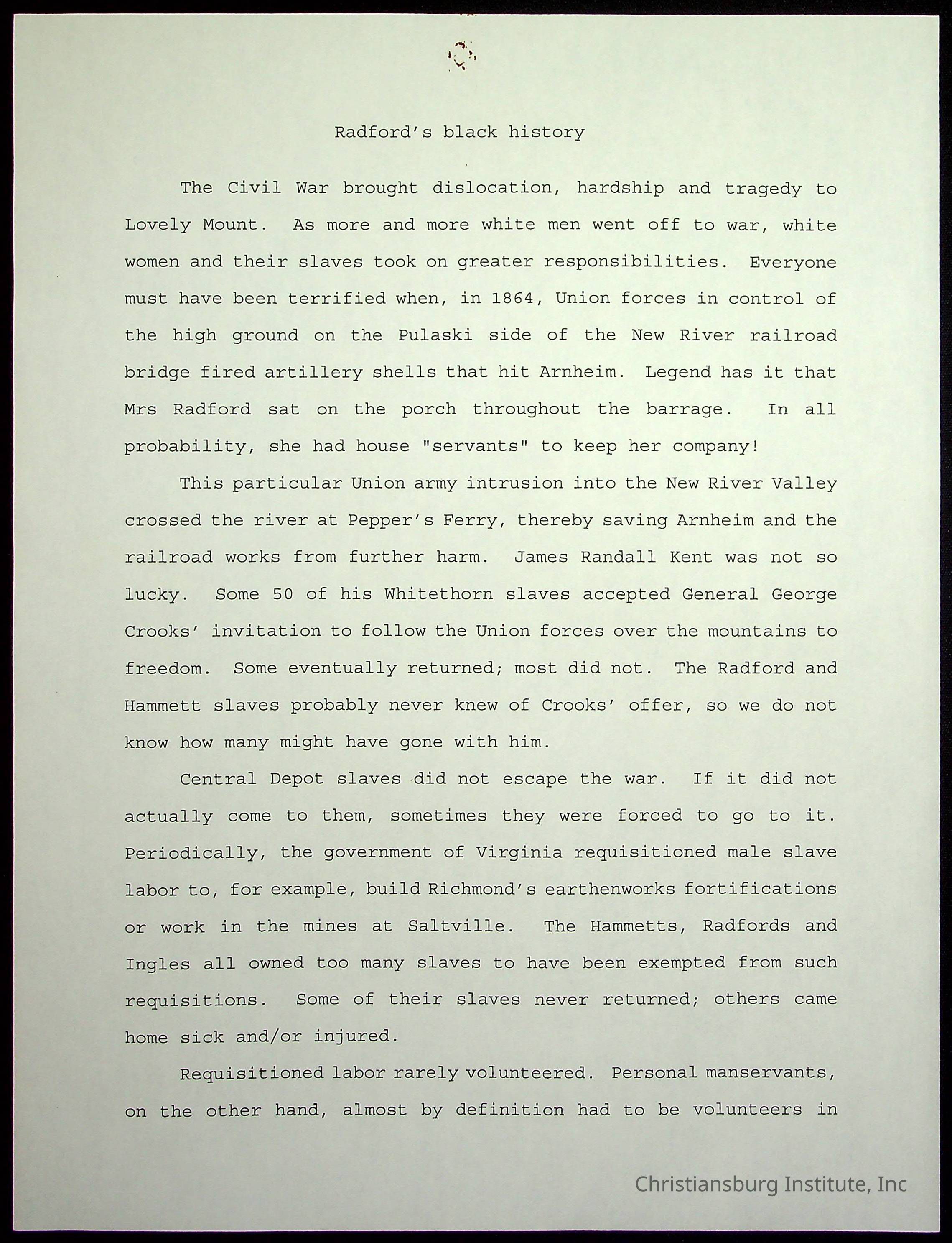 Folder 13: Radford's Black History