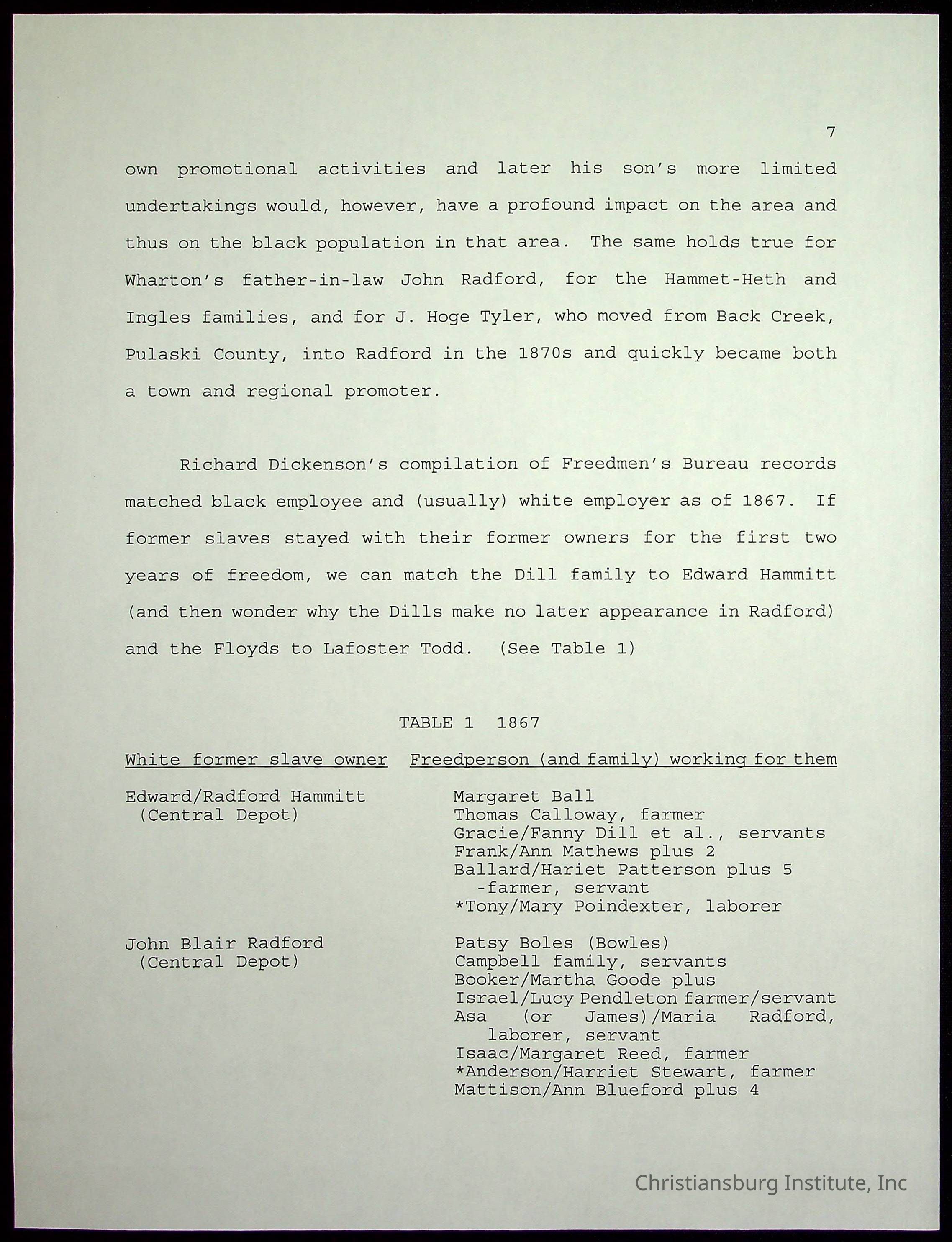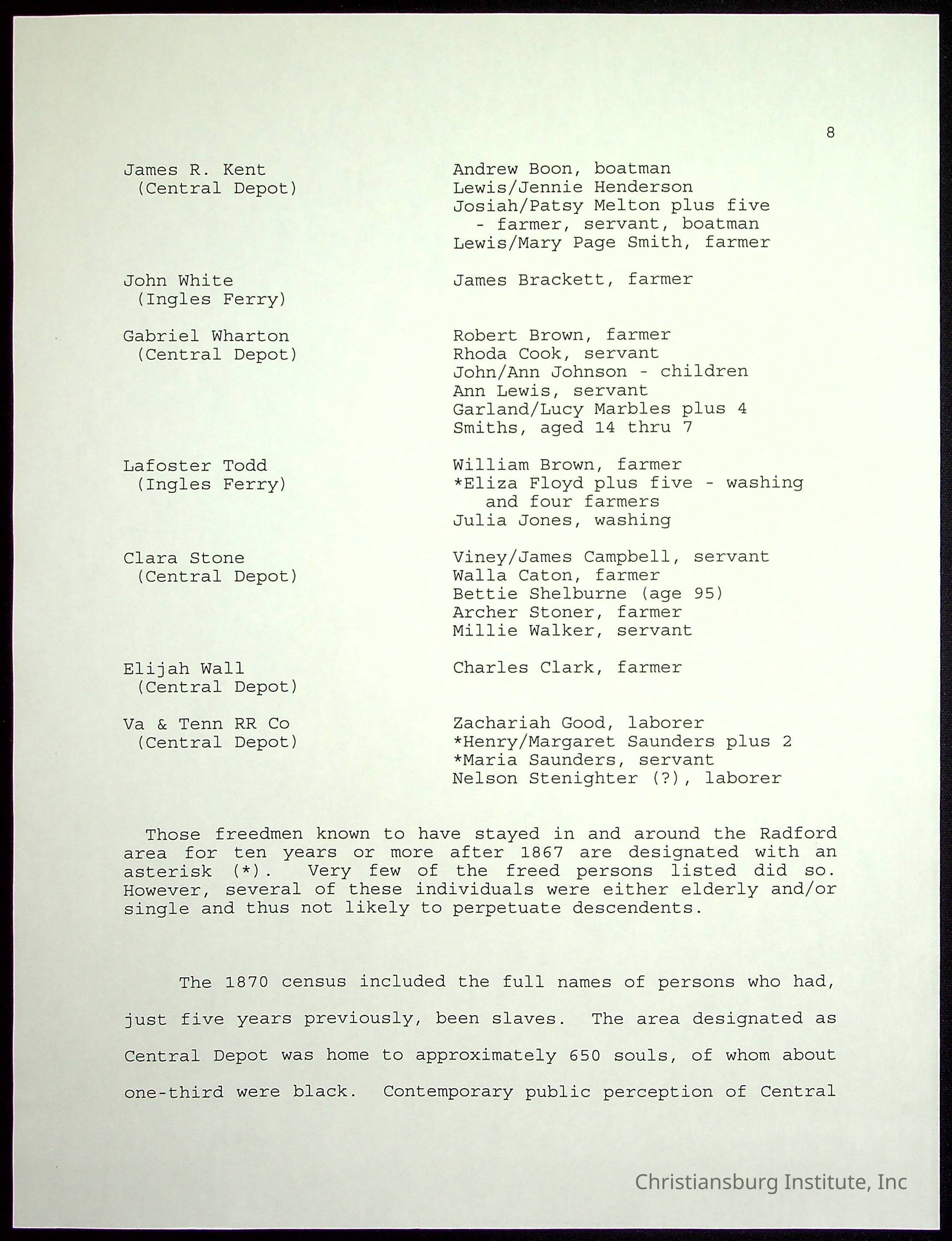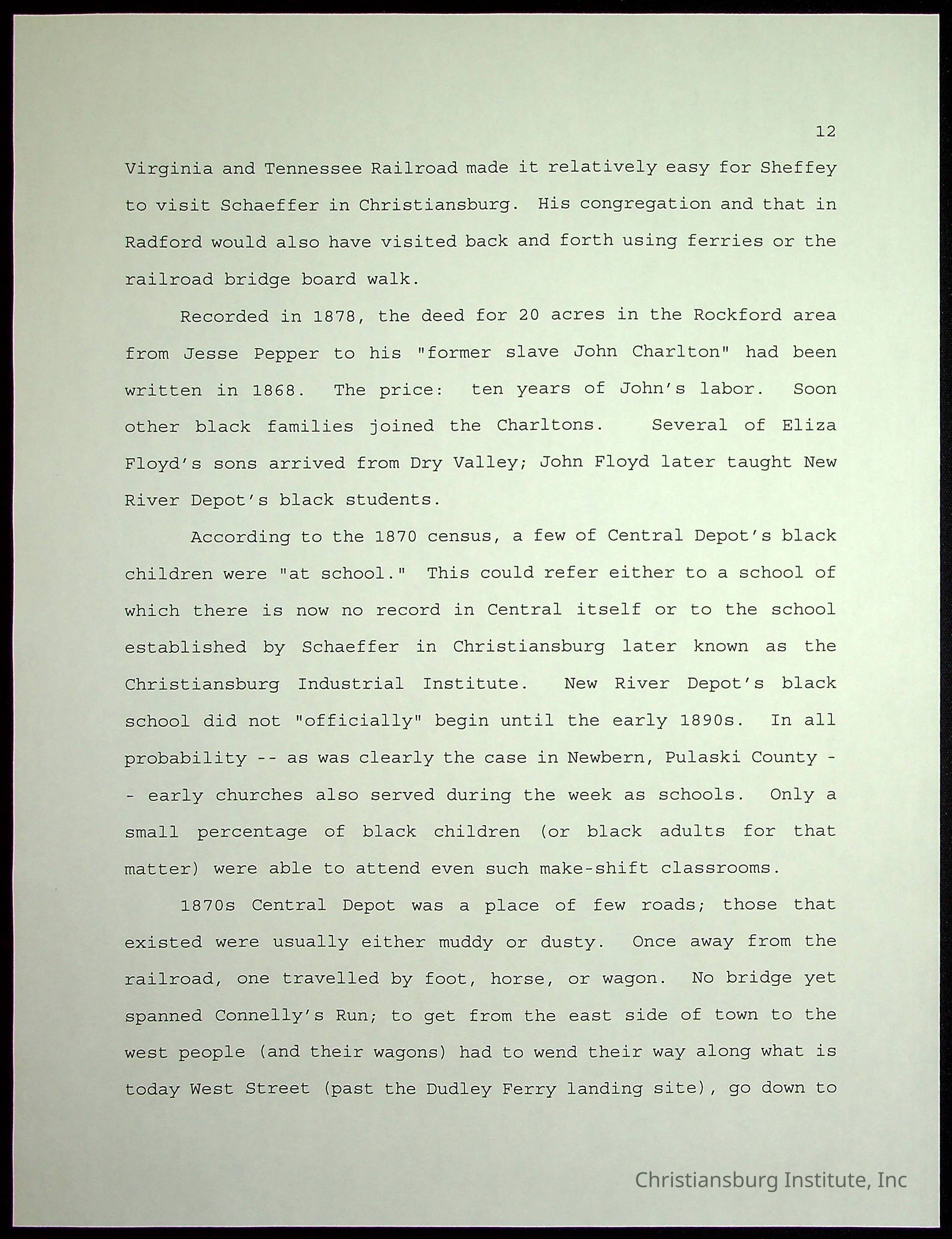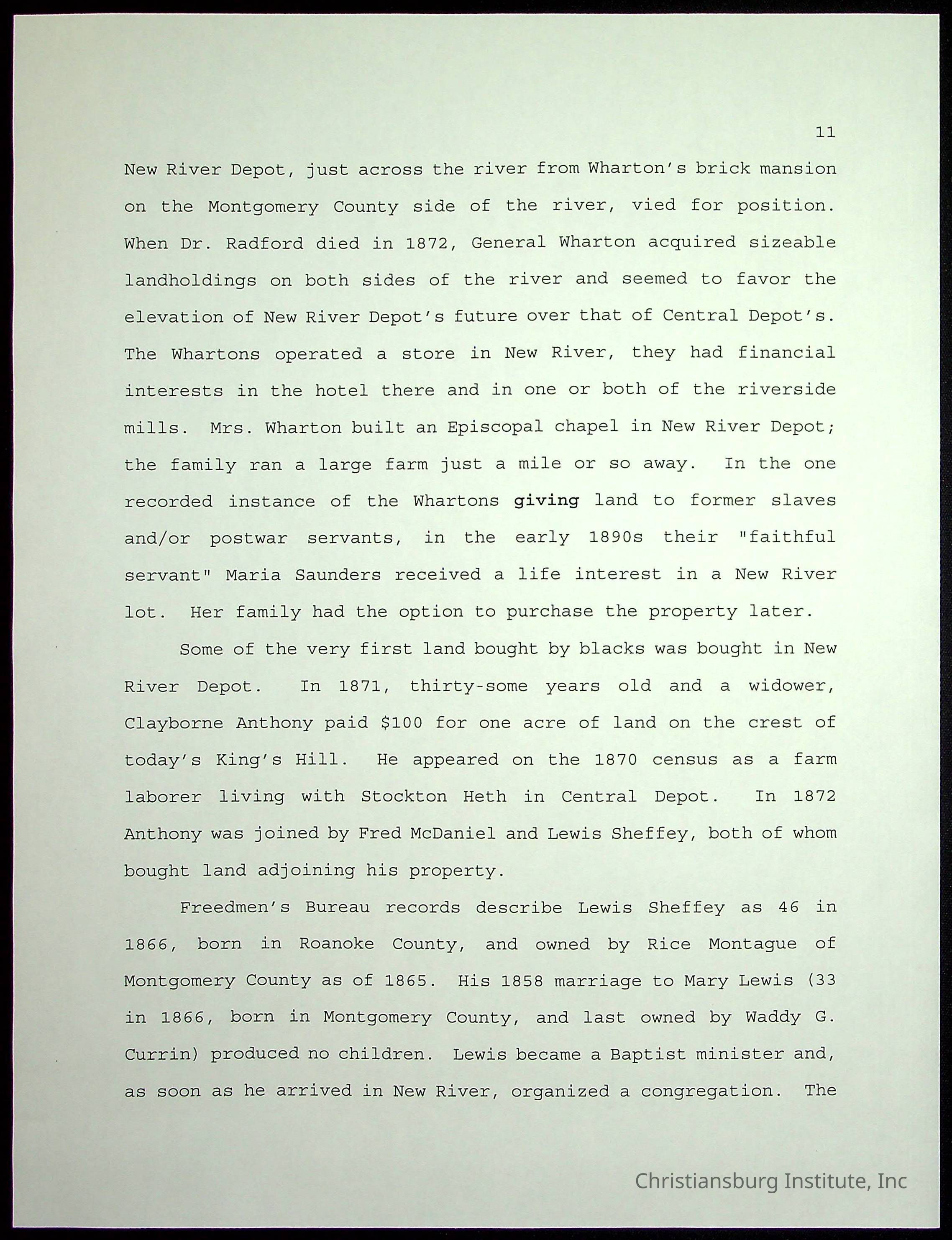 Farm Land, Boom Town, Village: A History of Belspring, Virginia, 1750-1940, The Reports of Charles S. Schaeffer from the Virginia counties of Montgomery and Pulaski, with additional information on the counties of Floyd, Giles, Craig, Wythe, and Roanoke., Ingles Ferry Ledgers (1840s-1880s), These people lived in a pleasant valley, Making their mark: Black Families of New River Depot, 1870-1940., Whartons’ Town New River Depot, 1870-1940., Radford’s Early Black Residents, 1880-1925