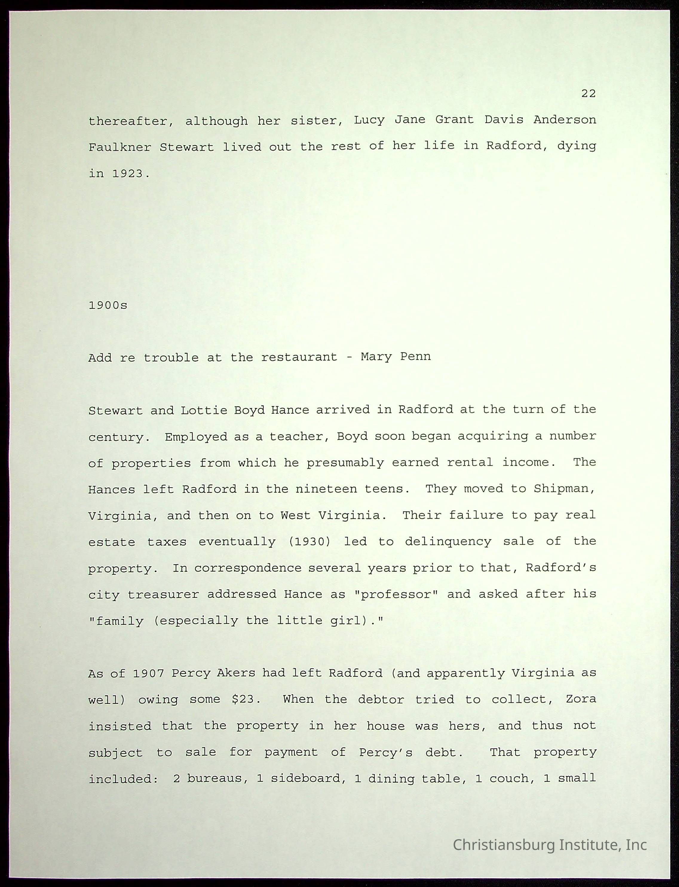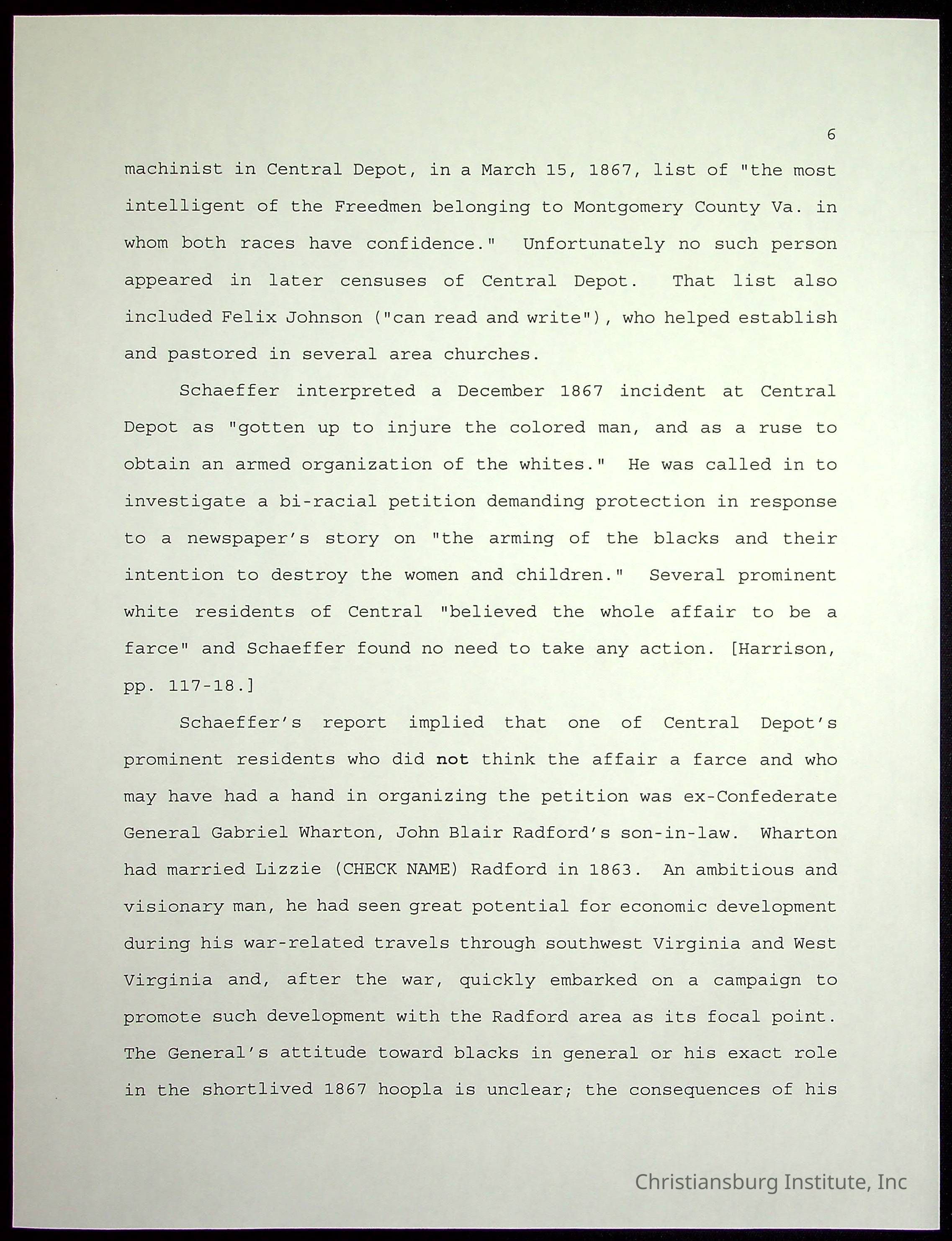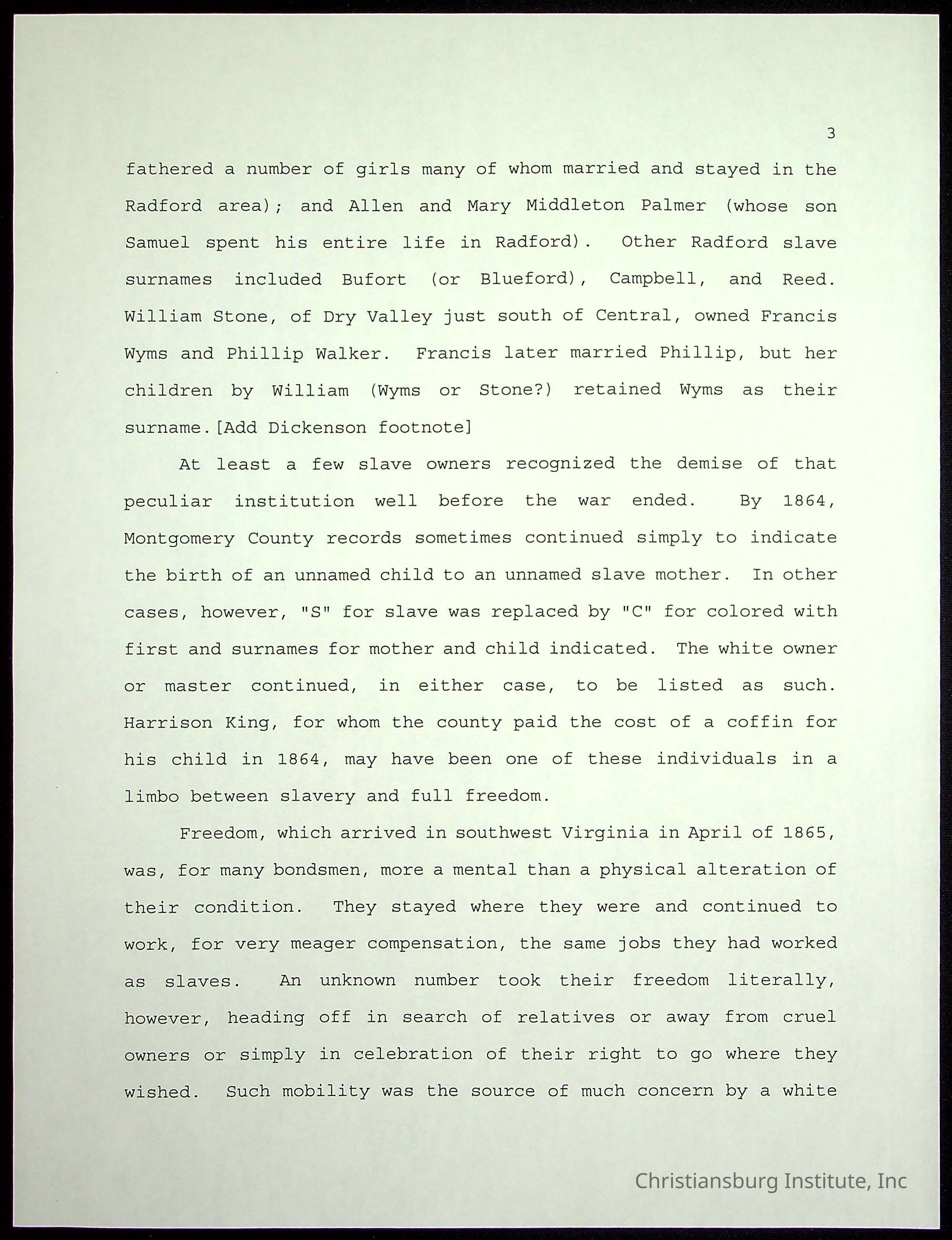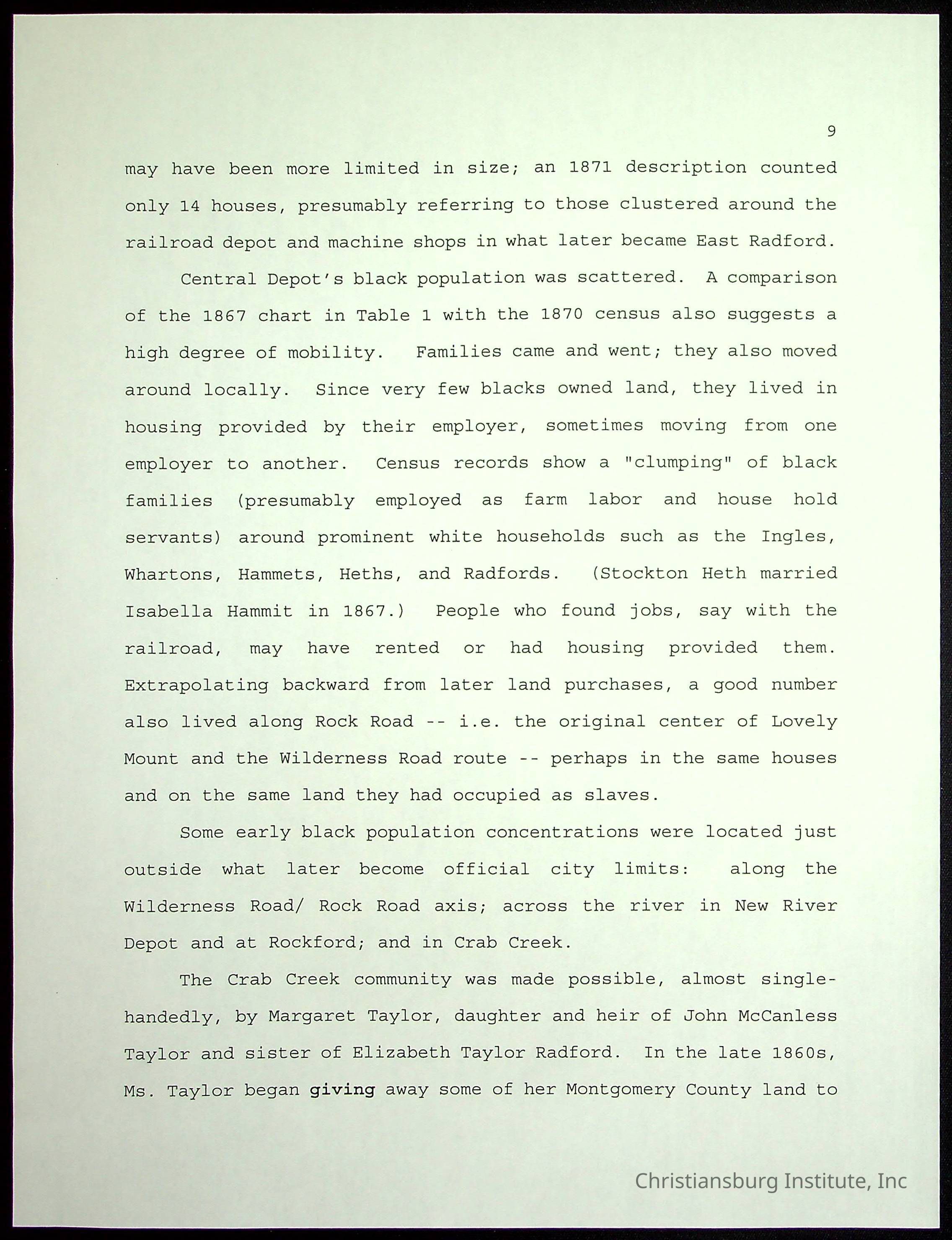 Farm Land, Boom Town, Village: A History of Belspring, Virginia, 1750-1940, The Reports of Charles S. Schaeffer from the Virginia counties of Montgomery and Pulaski, with additional information on the counties of Floyd, Giles, Craig, Wythe, and Roanoke., Ingles Ferry Ledgers (1840s-1880s), These people lived in a pleasant valley, Making their mark: Black Families of New River Depot, 1870-1940., Whartons’ Town New River Depot, 1870-1940., Radford’s Early Black Residents, 1880-1925