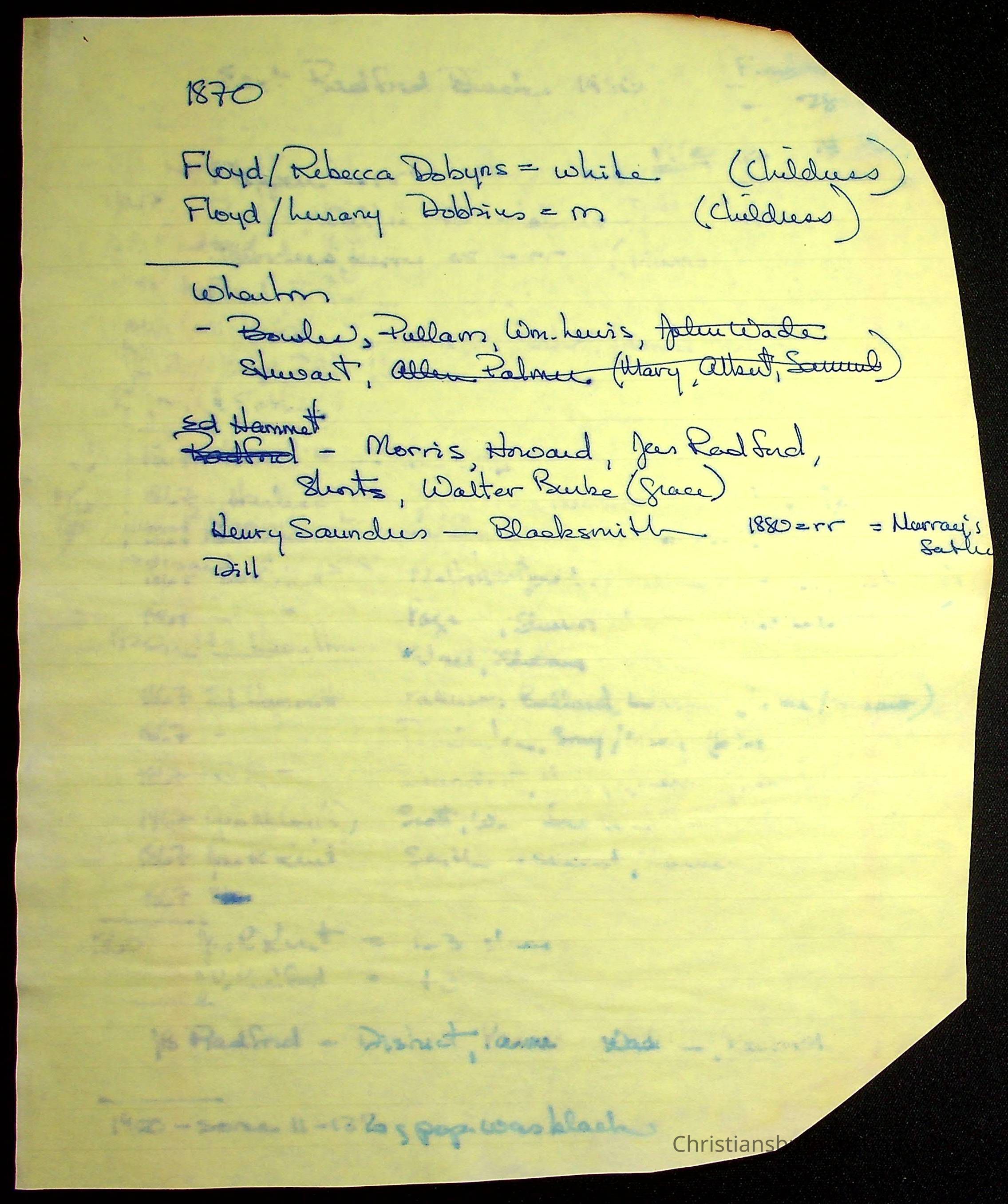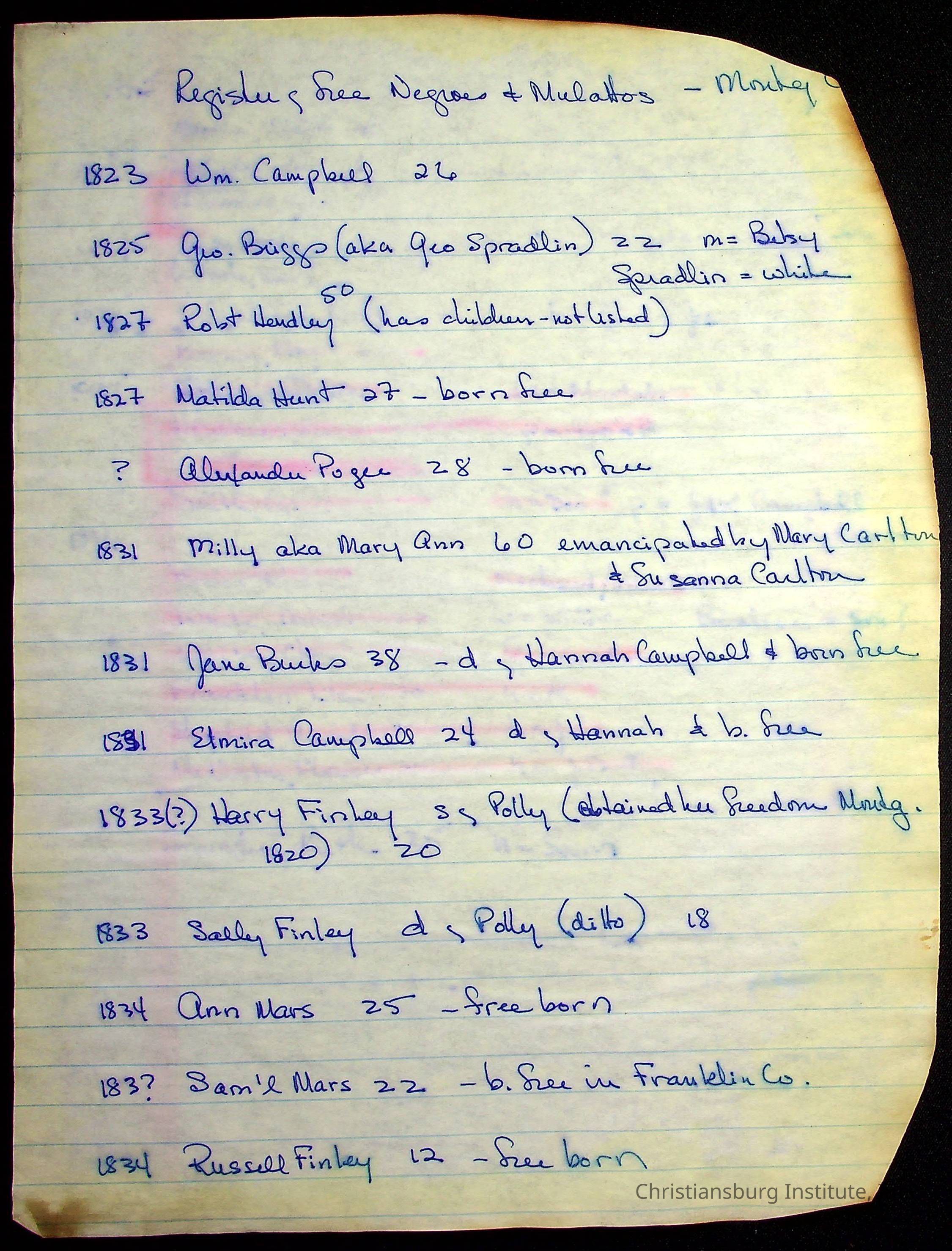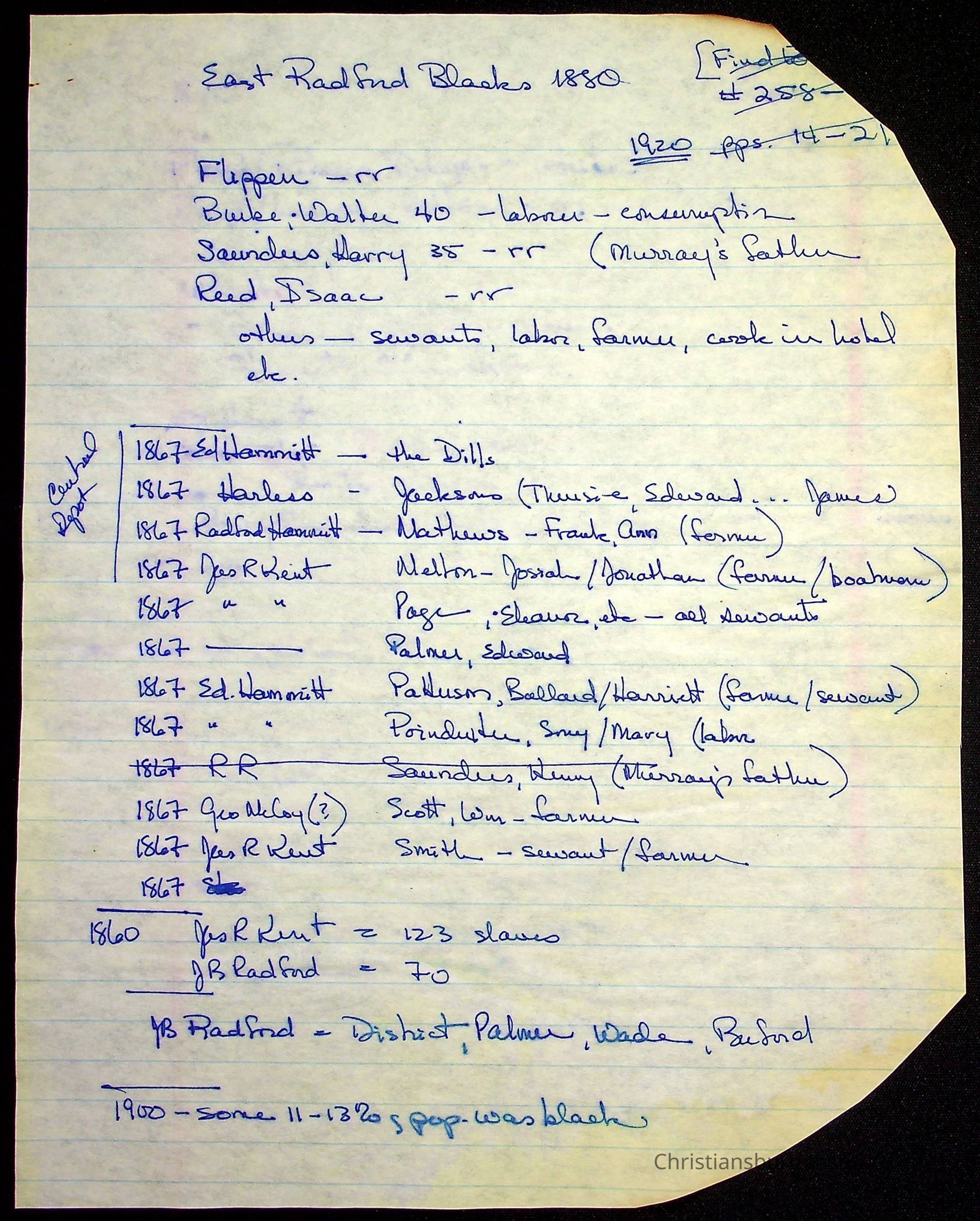 Farm Land, Boom Town, Village: A History of Belspring, Virginia, 1750-1940, The Reports of Charles S. Schaeffer from the Virginia counties of Montgomery and Pulaski, with additional information on the counties of Floyd, Giles, Craig, Wythe, and Roanoke., Ingles Ferry Ledgers (1840s-1880s), These people lived in a pleasant valley, Making their mark: Black Families of New River Depot, 1870-1940., Whartons’ Town New River Depot, 1870-1940., Radford’s Early Black Residents, 1880-1925