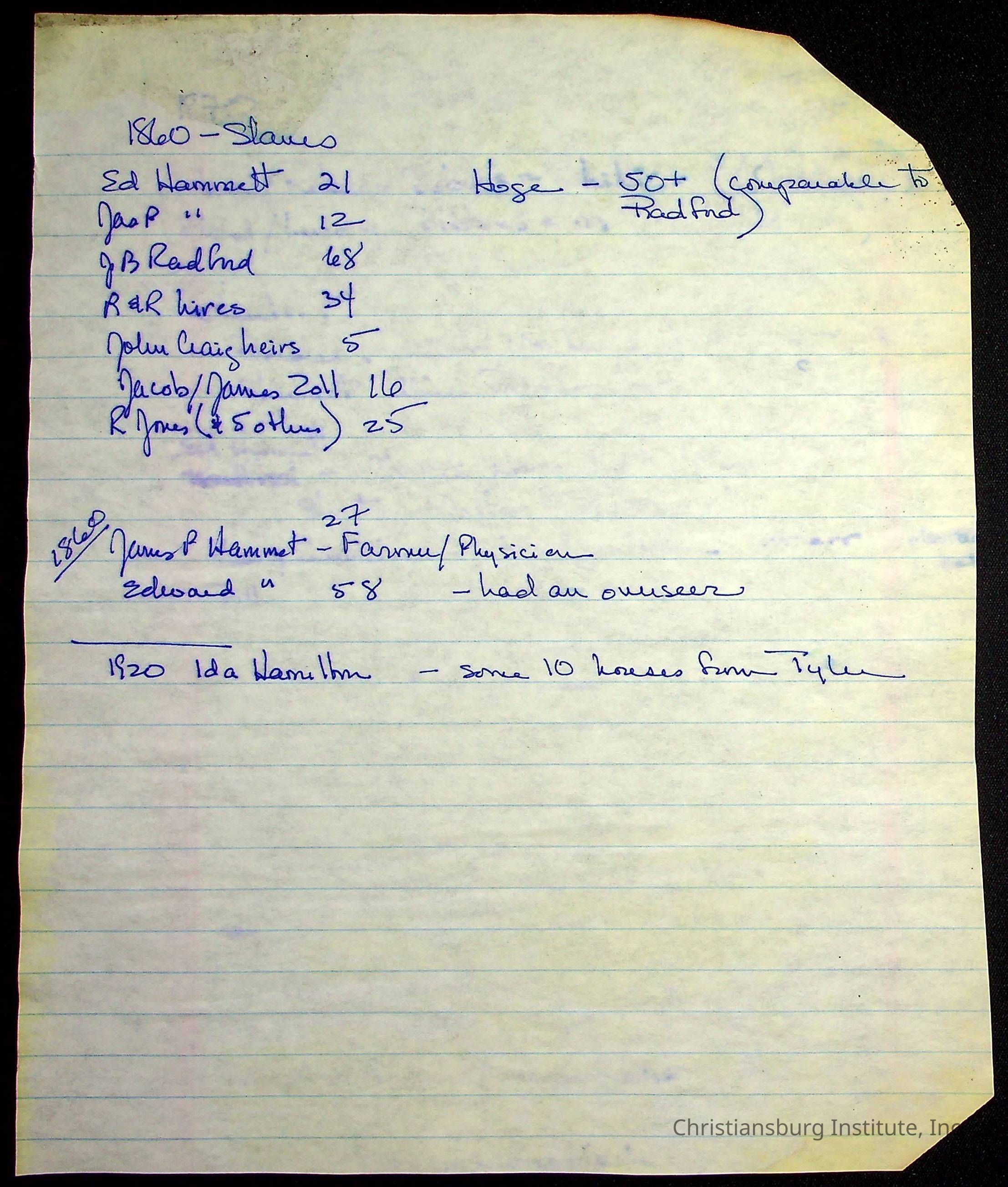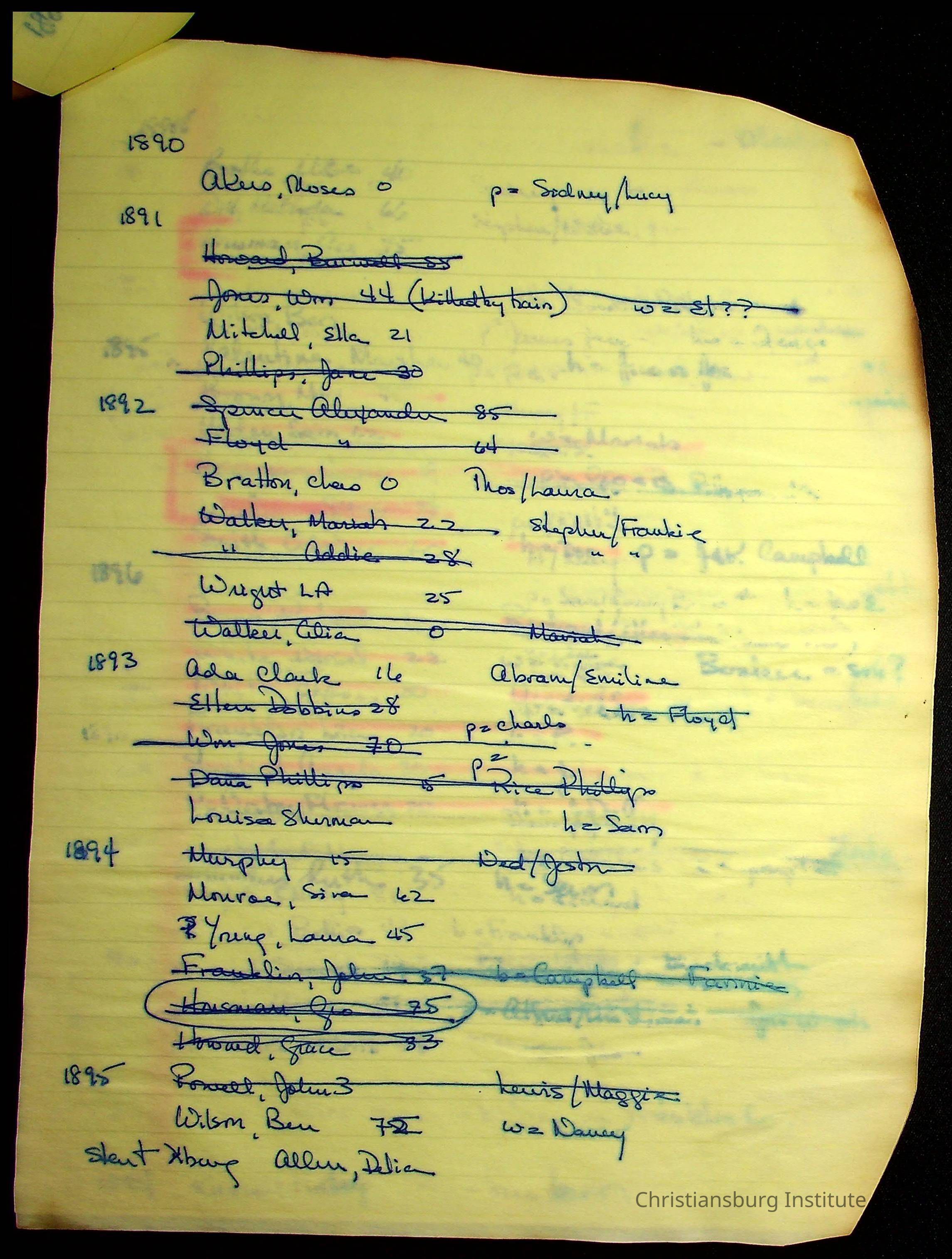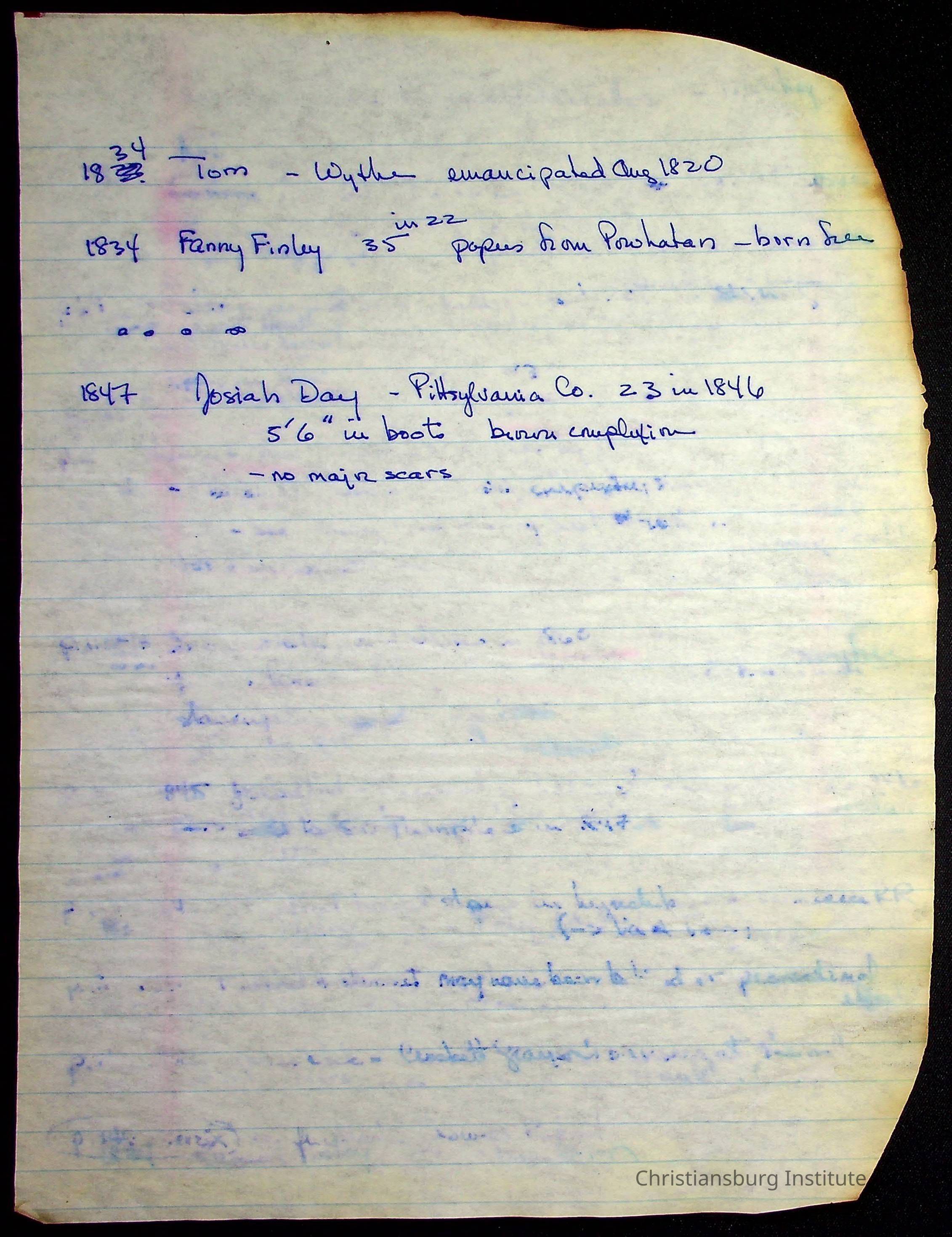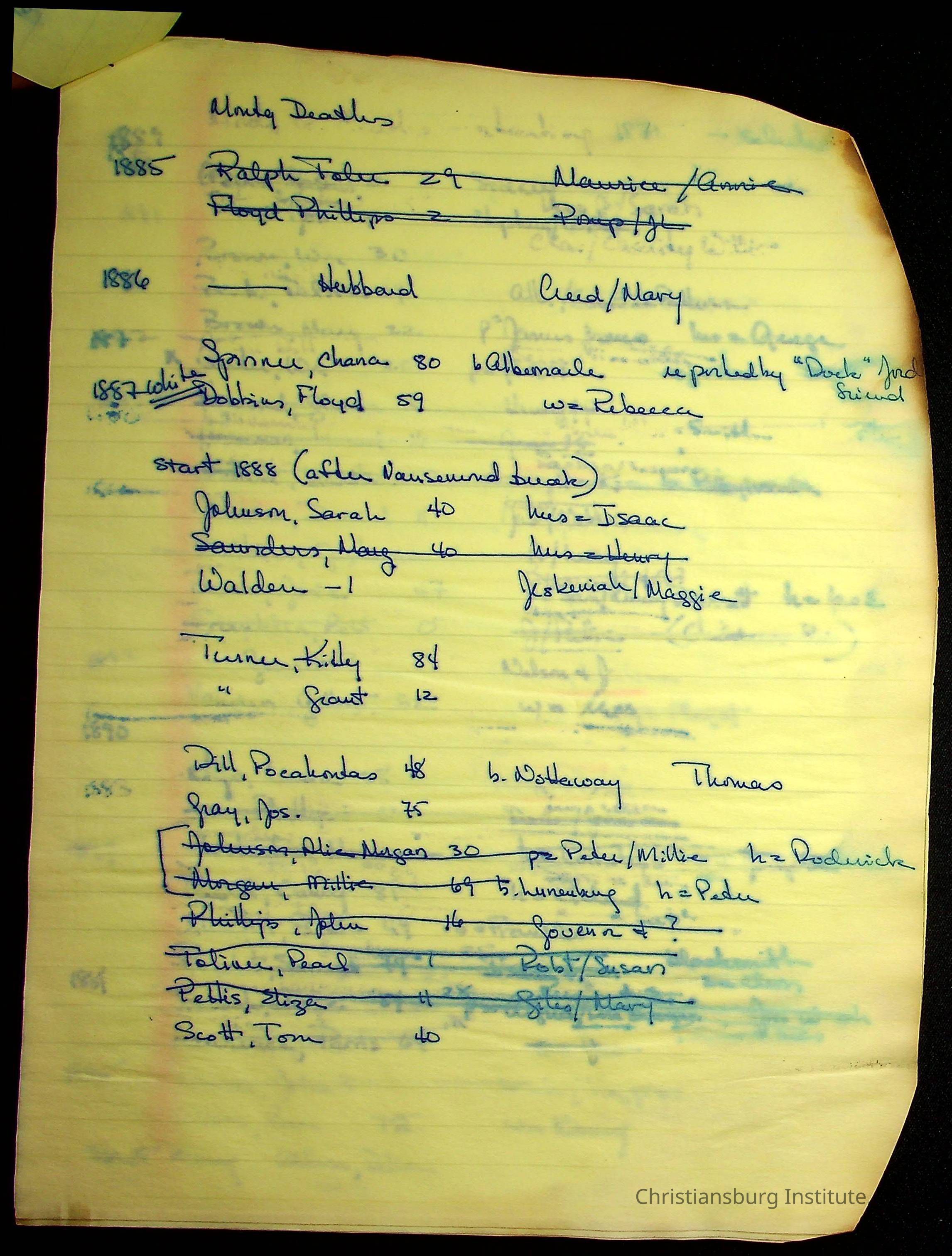 A folder of research materials collected by Radford University professor, Dr. Linda Killen. This folder is titled 'Miscellaneous Radford Black History' and includes various research conducted about Black history in Radford, Virginia. Please note: some of the documents were damaged by fire.