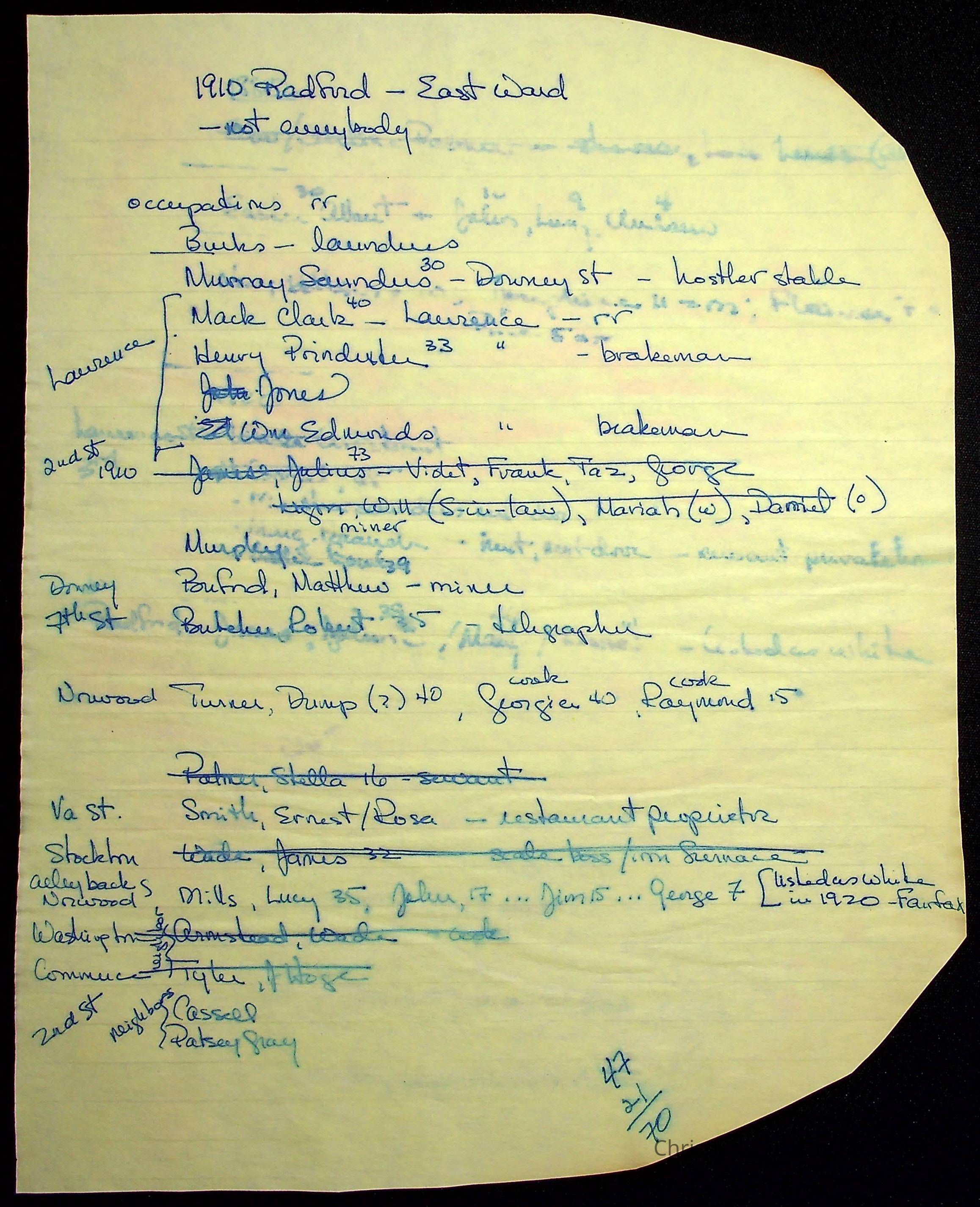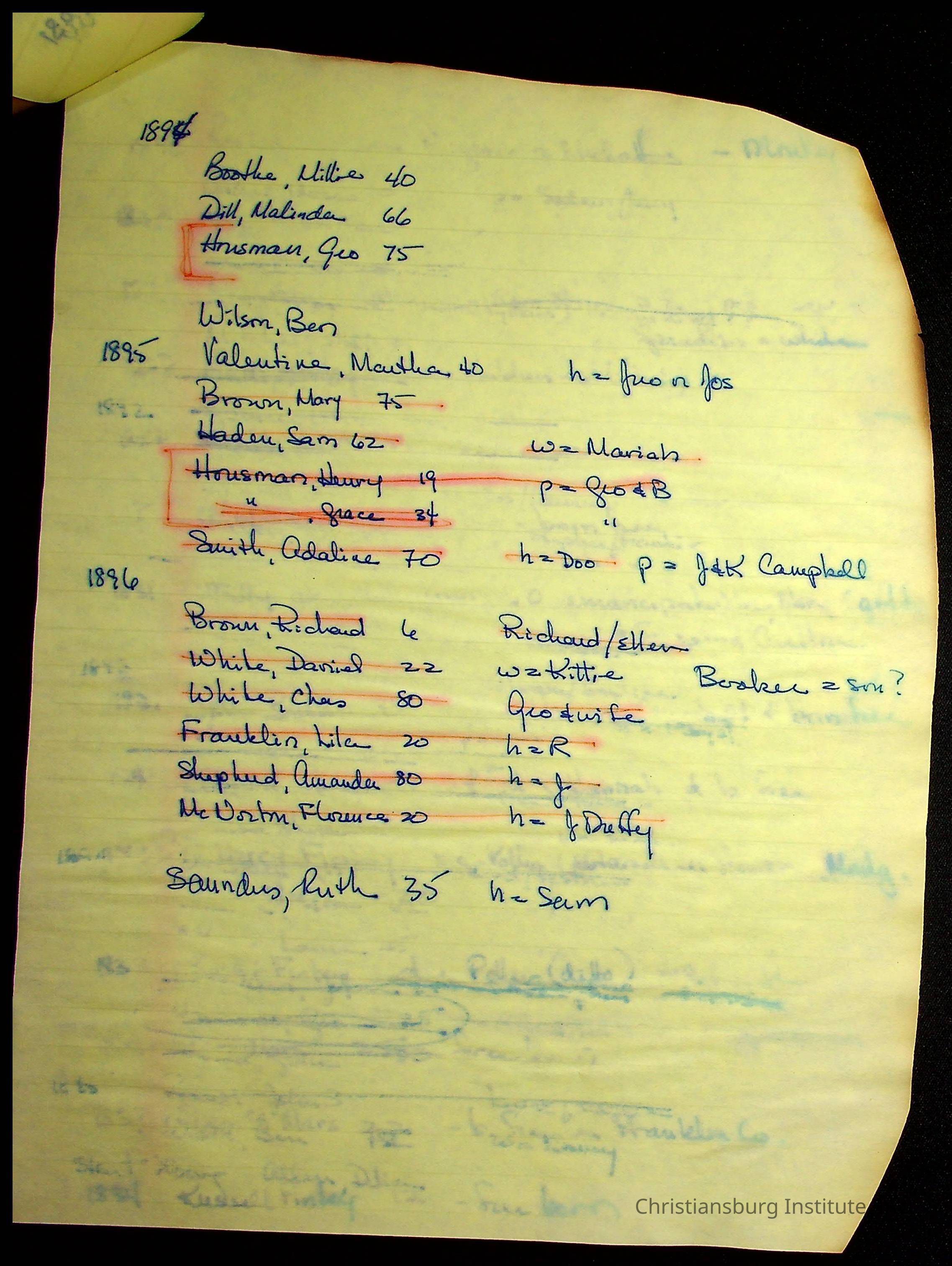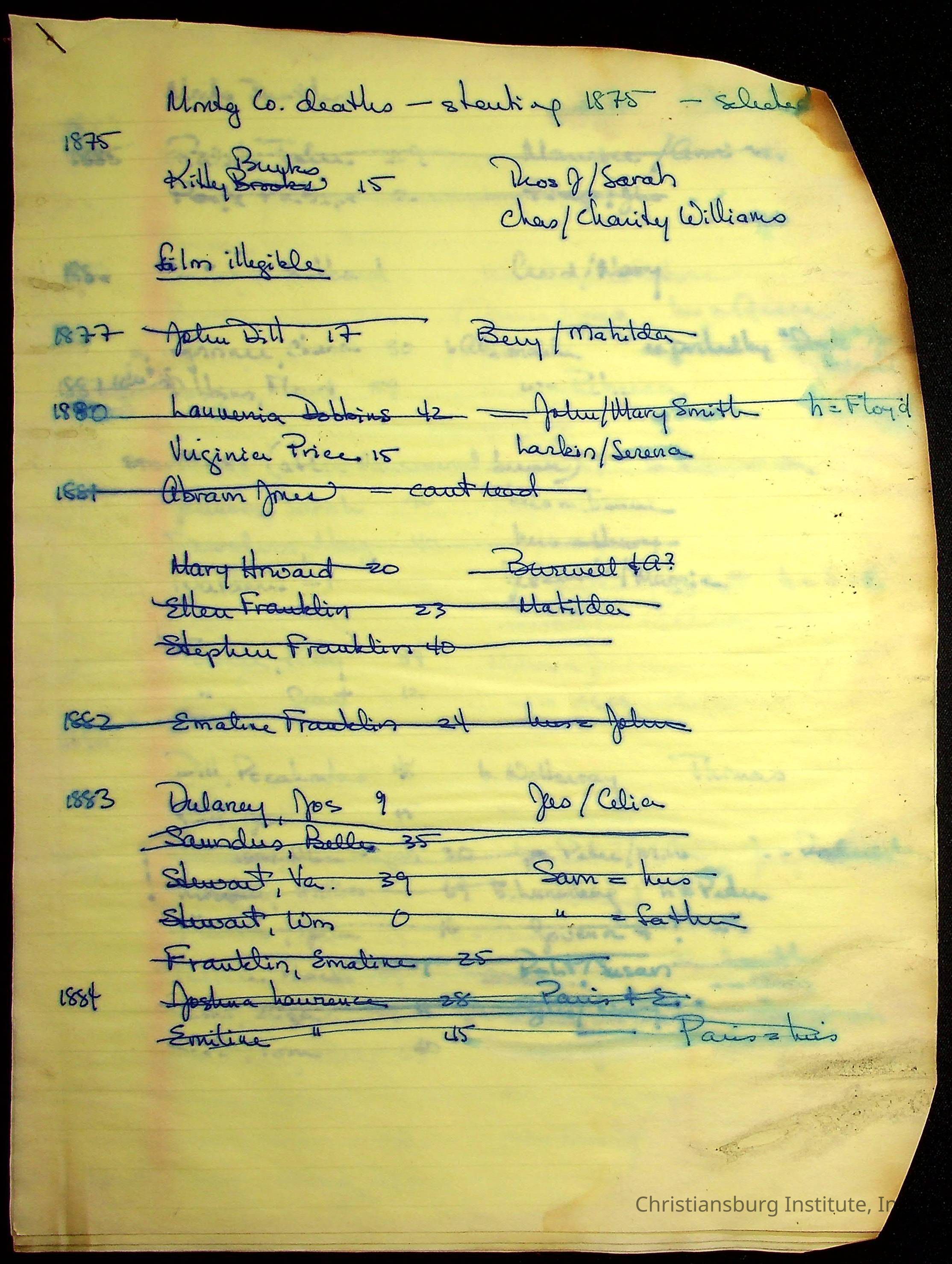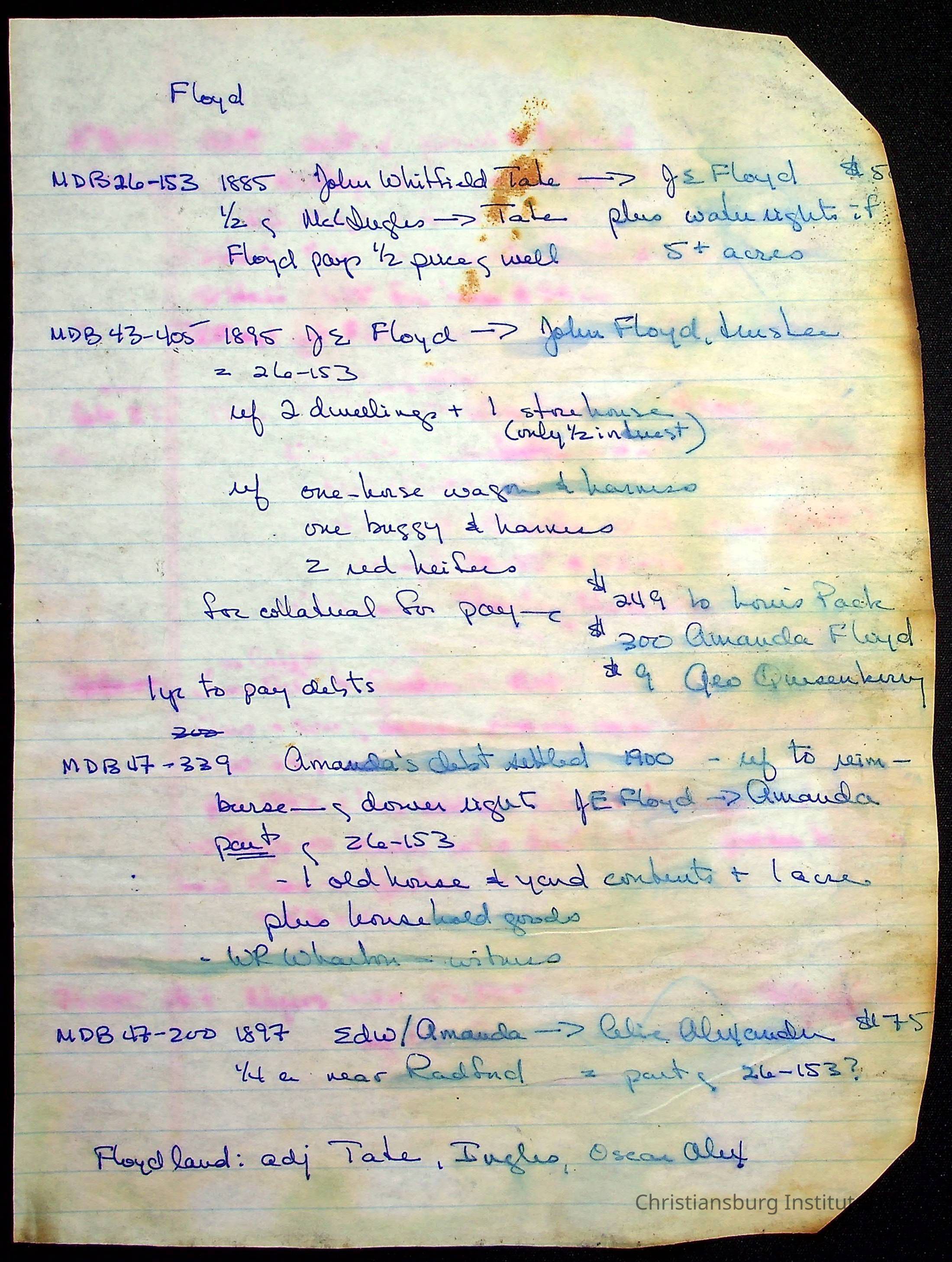 A folder of research materials collected by Radford University professor, Dr. Linda Killen. This folder is titled 'Miscellaneous Radford Black History' and includes various research conducted about Black history in Radford, Virginia. Please note: some of the documents were damaged by fire.