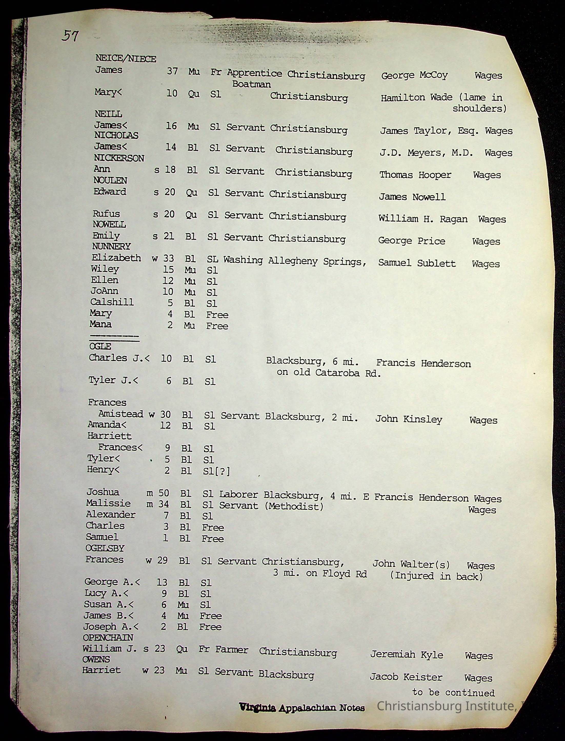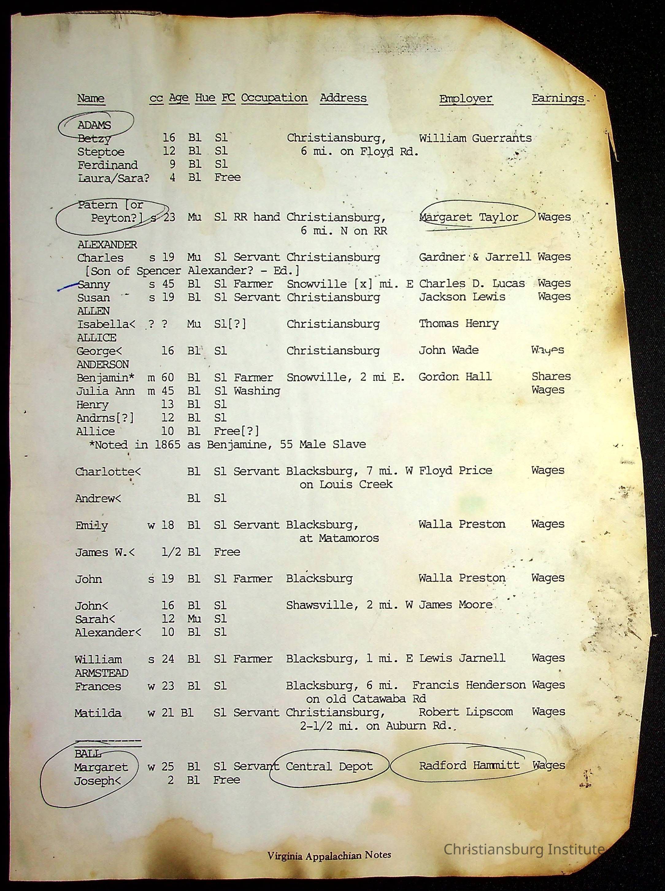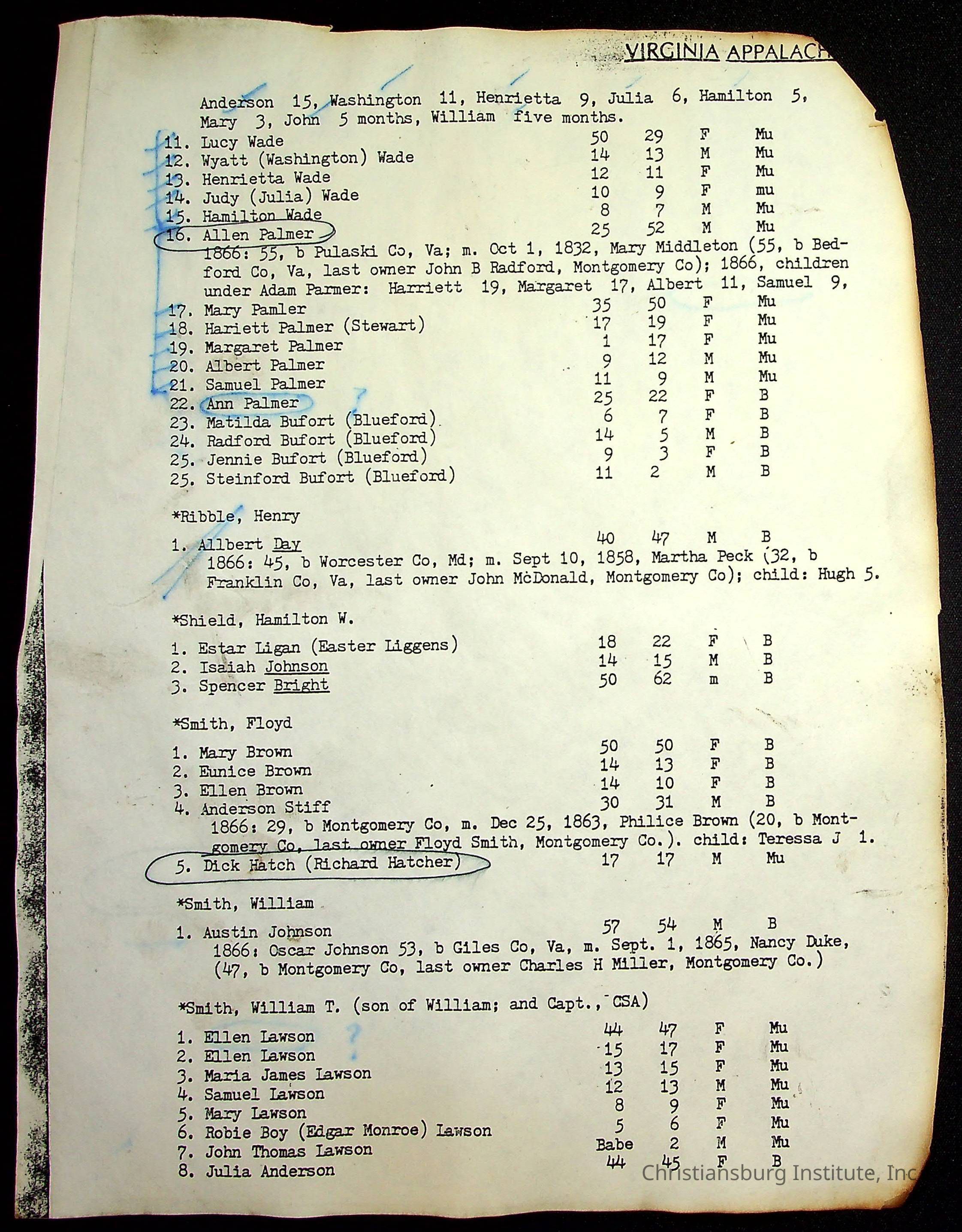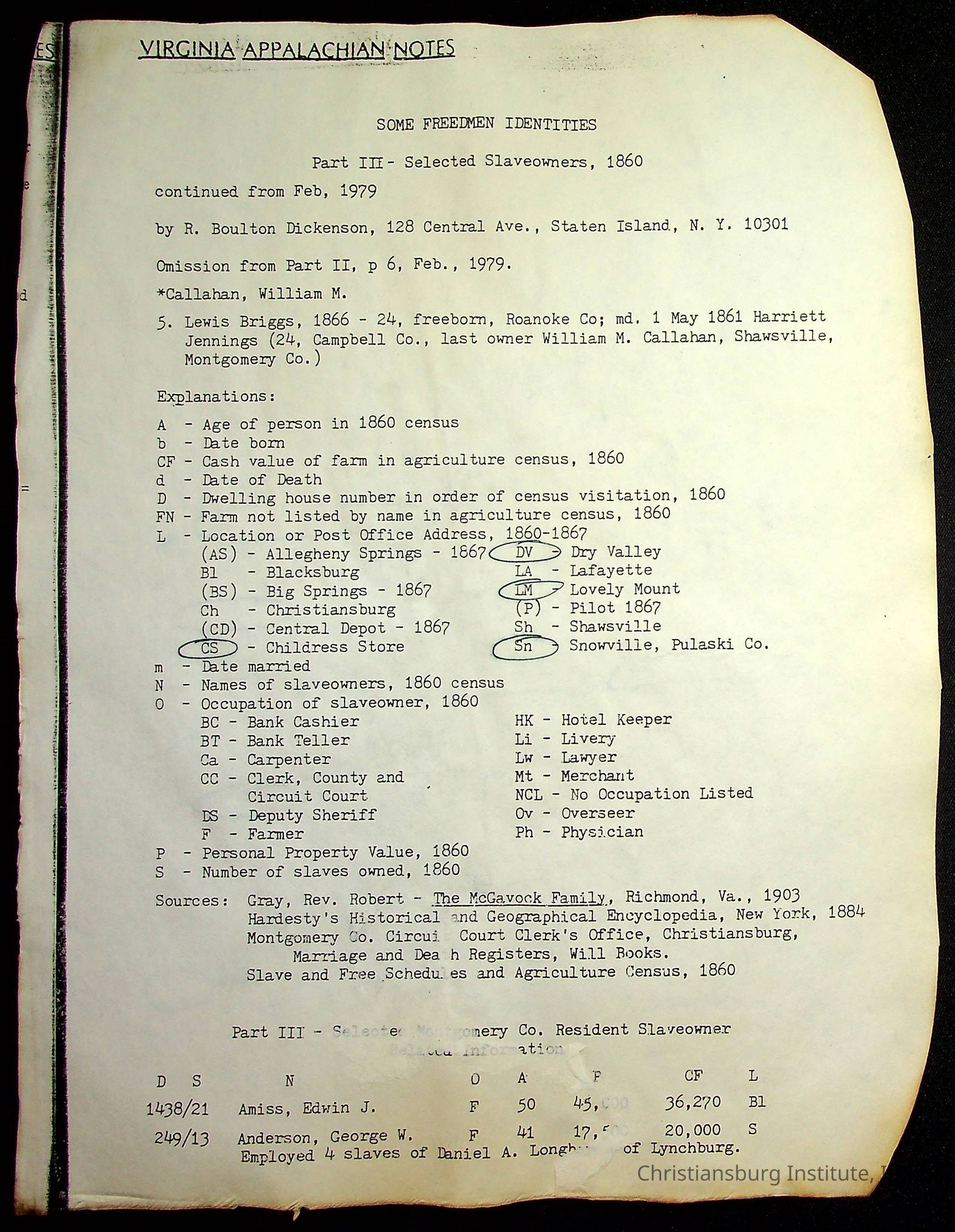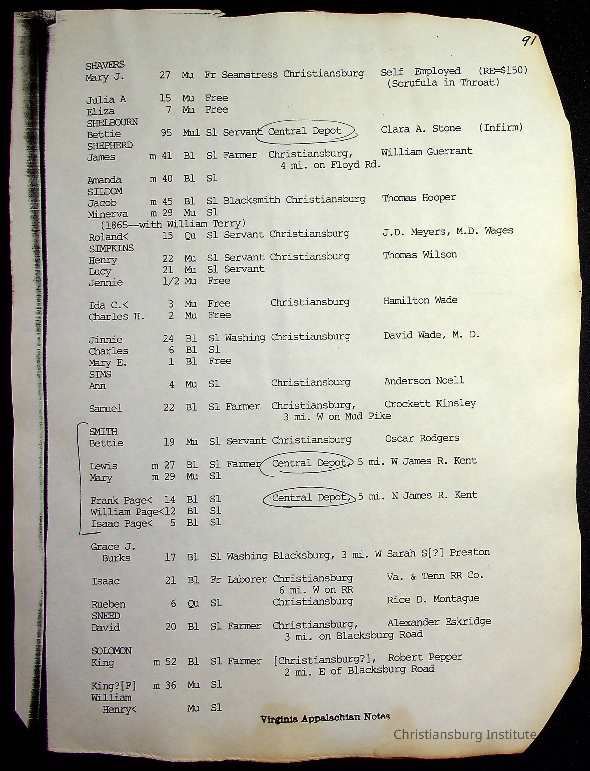 Farm Land, Boom Town, Village: A History of Belspring, Virginia, 1750-1940, The Reports of Charles S. Schaeffer from the Virginia counties of Montgomery and Pulaski, with additional information on the counties of Floyd, Giles, Craig, Wythe, and Roanoke., Ingles Ferry Ledgers (1840s-1880s), These people lived in a pleasant valley, Making their mark: Black Families of New River Depot, 1870-1940., Whartons’ Town New River Depot, 1870-1940., Radford’s Early Black Residents, 1880-1925