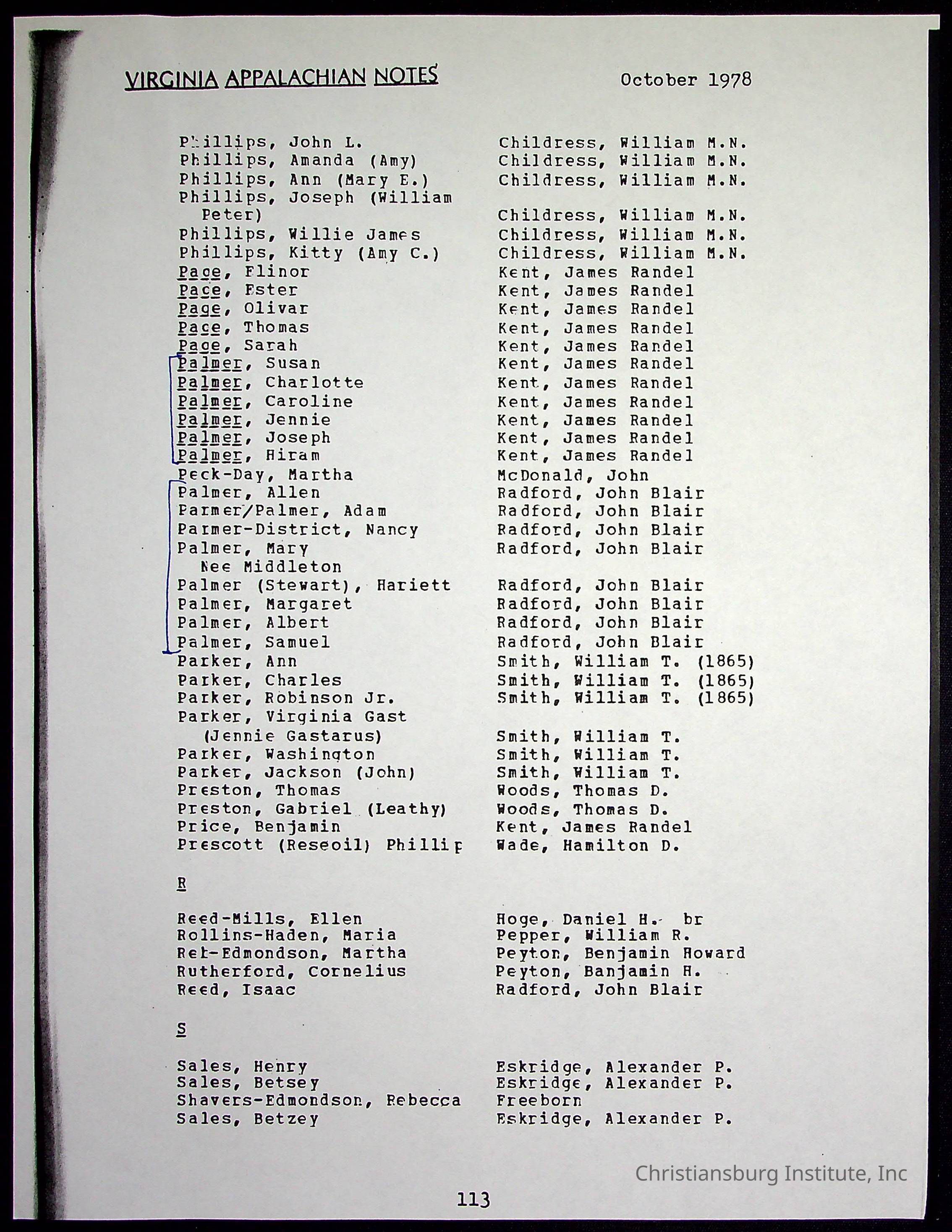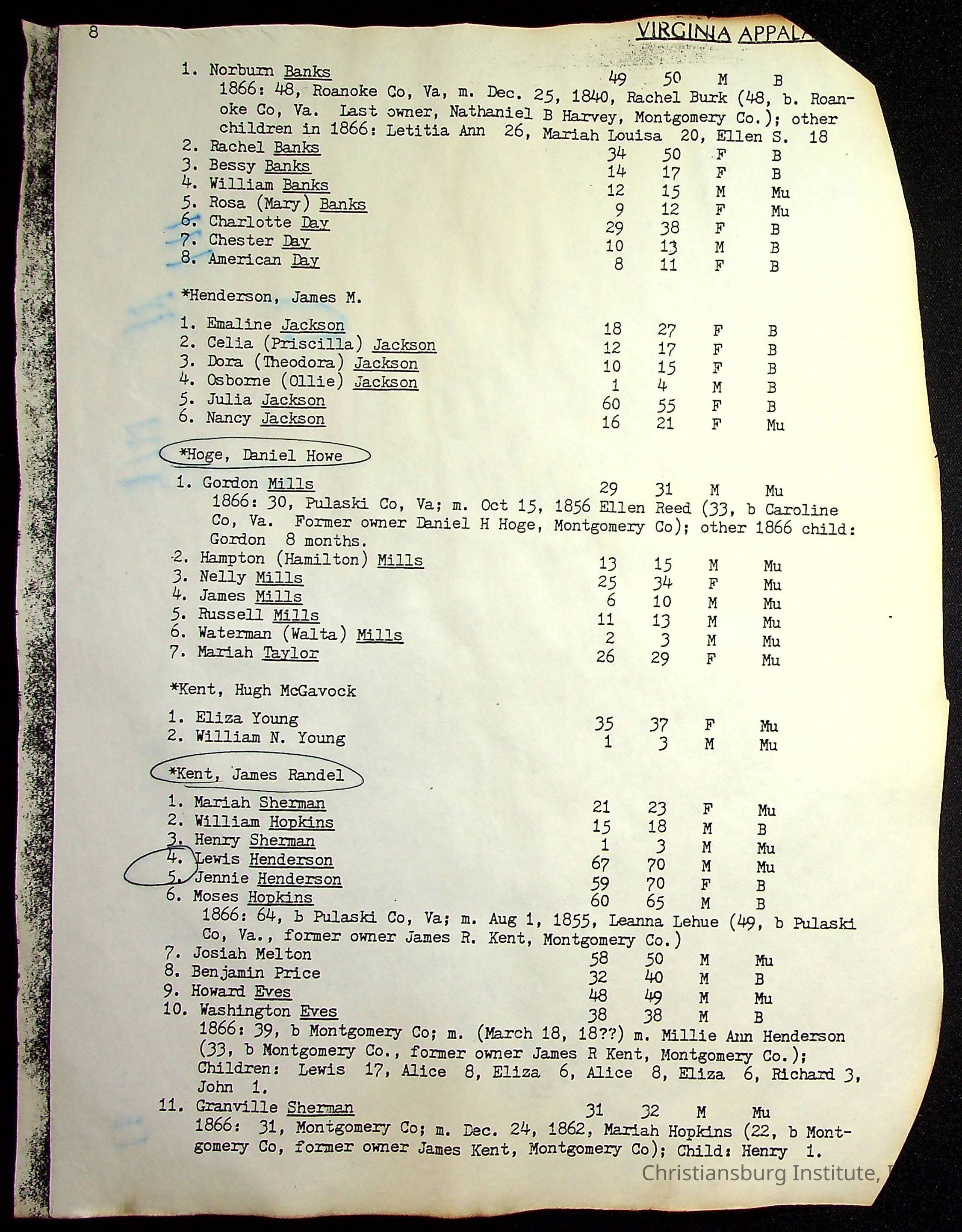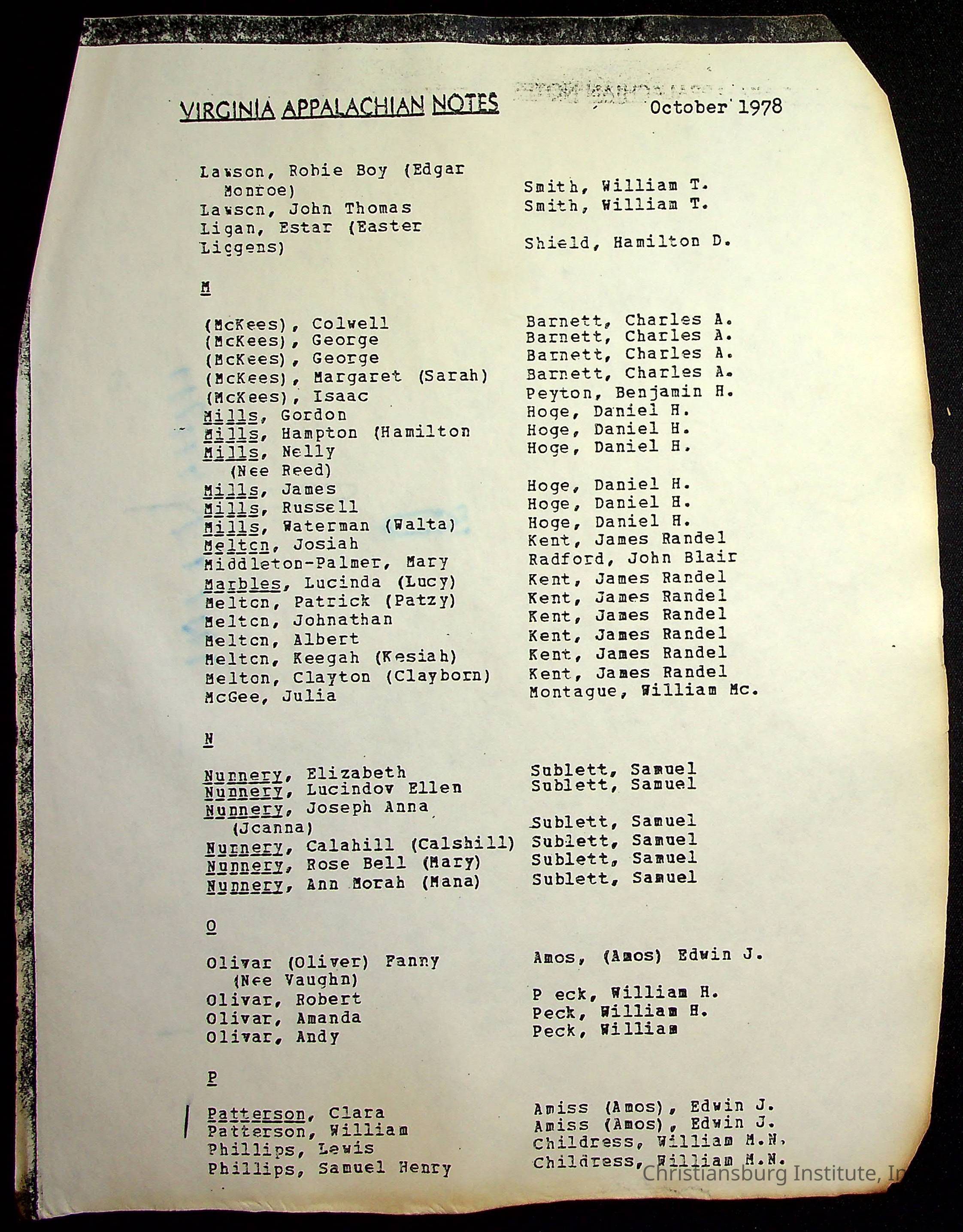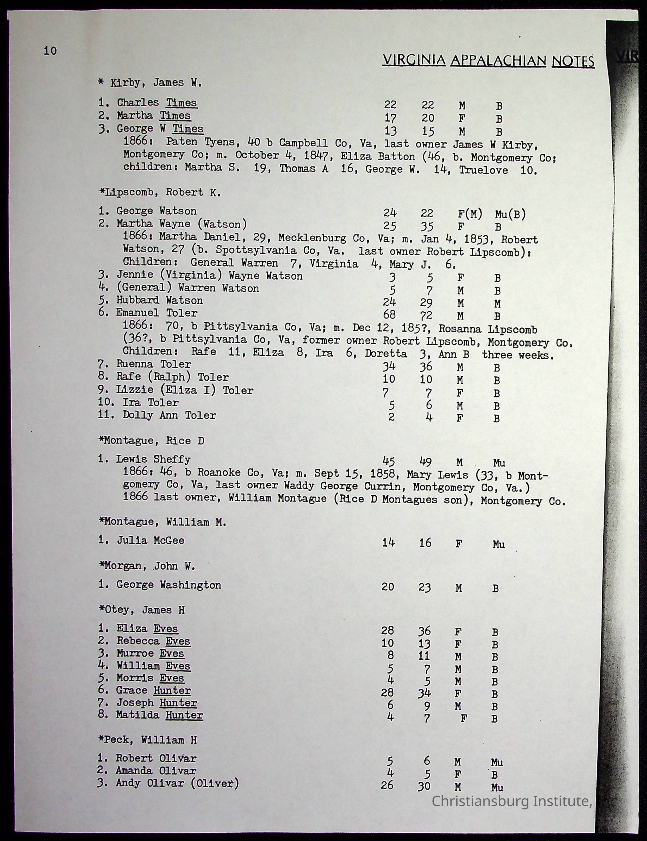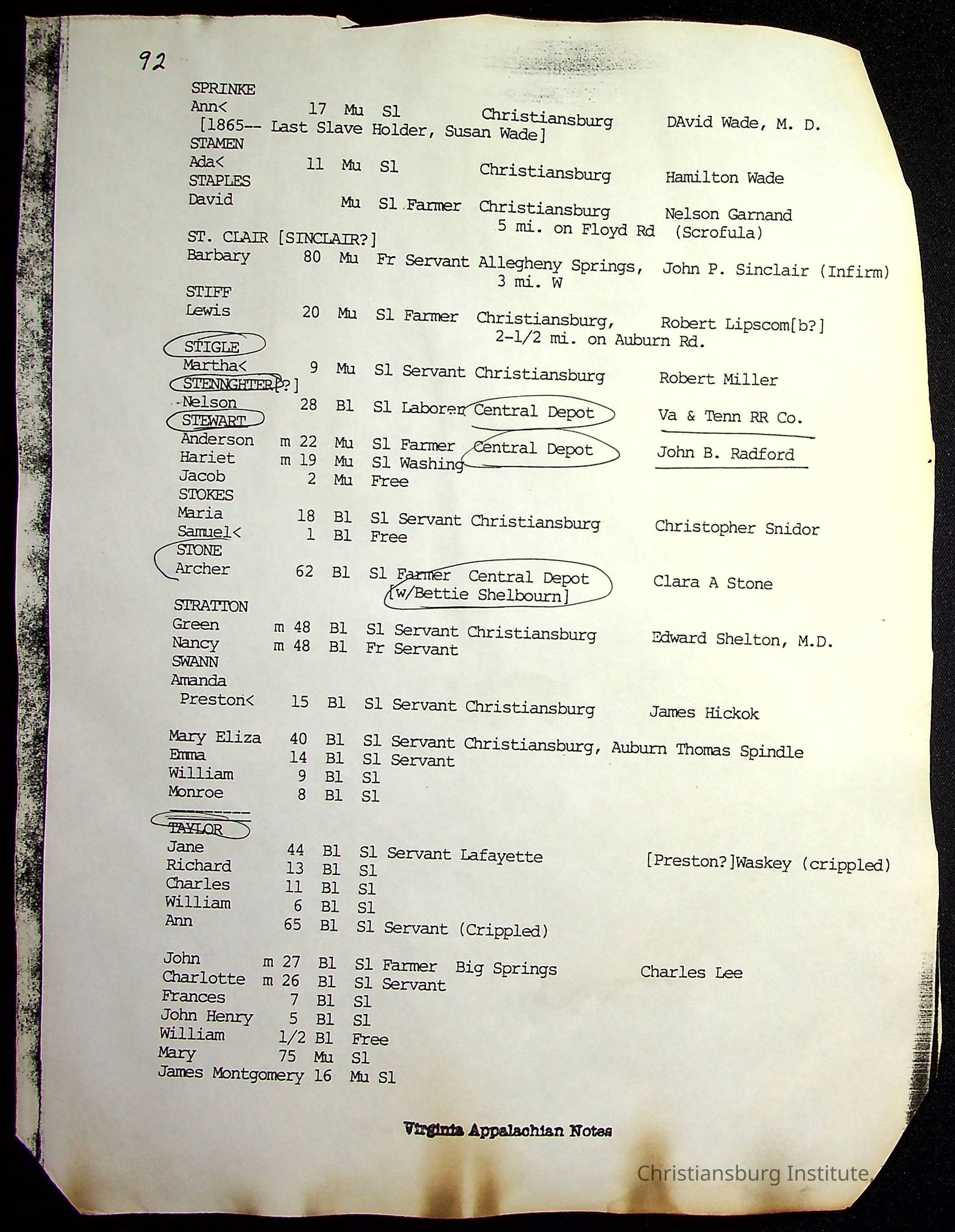 Farm Land, Boom Town, Village: A History of Belspring, Virginia, 1750-1940, The Reports of Charles S. Schaeffer from the Virginia counties of Montgomery and Pulaski, with additional information on the counties of Floyd, Giles, Craig, Wythe, and Roanoke., Ingles Ferry Ledgers (1840s-1880s), These people lived in a pleasant valley, Making their mark: Black Families of New River Depot, 1870-1940., Whartons’ Town New River Depot, 1870-1940., Radford’s Early Black Residents, 1880-1925