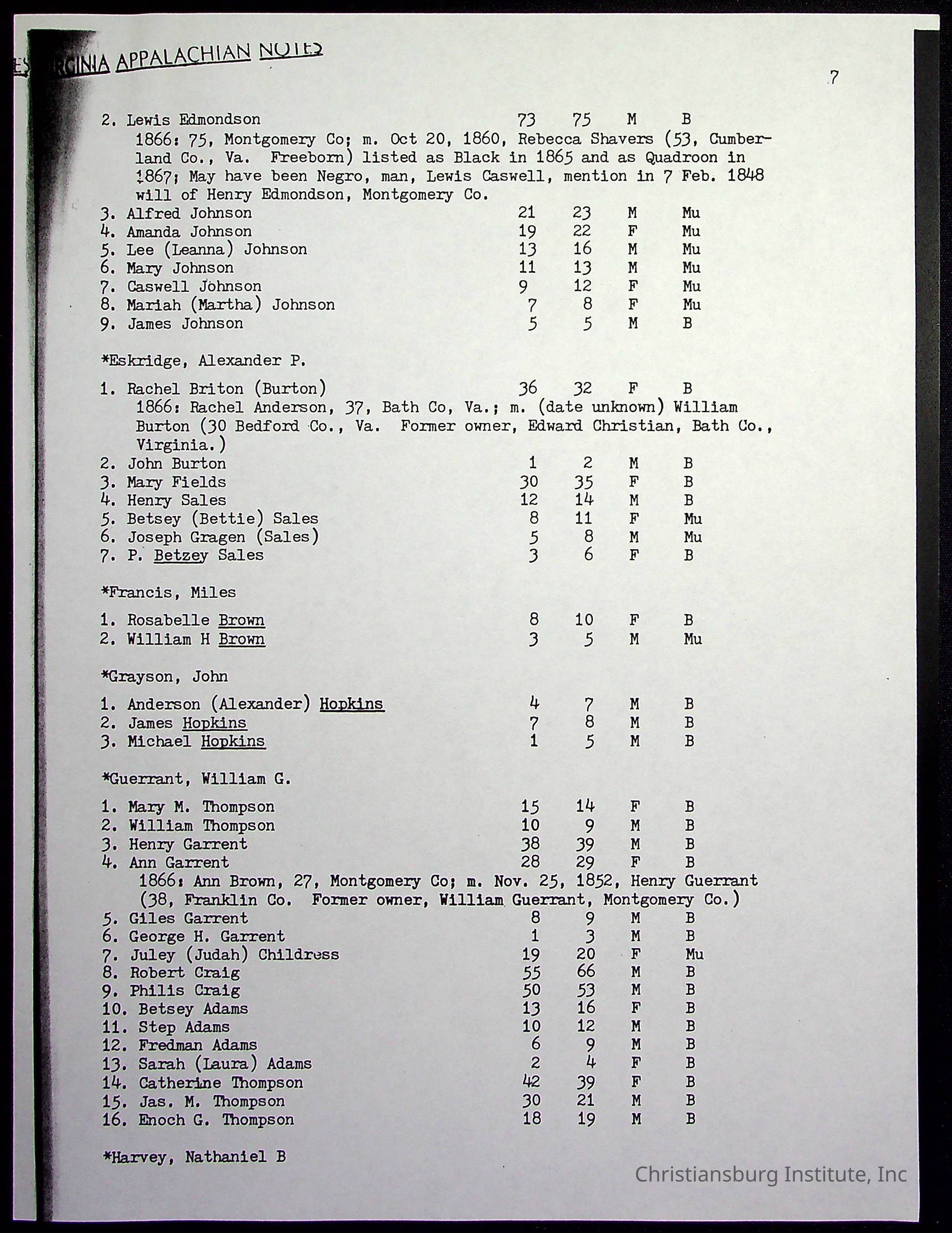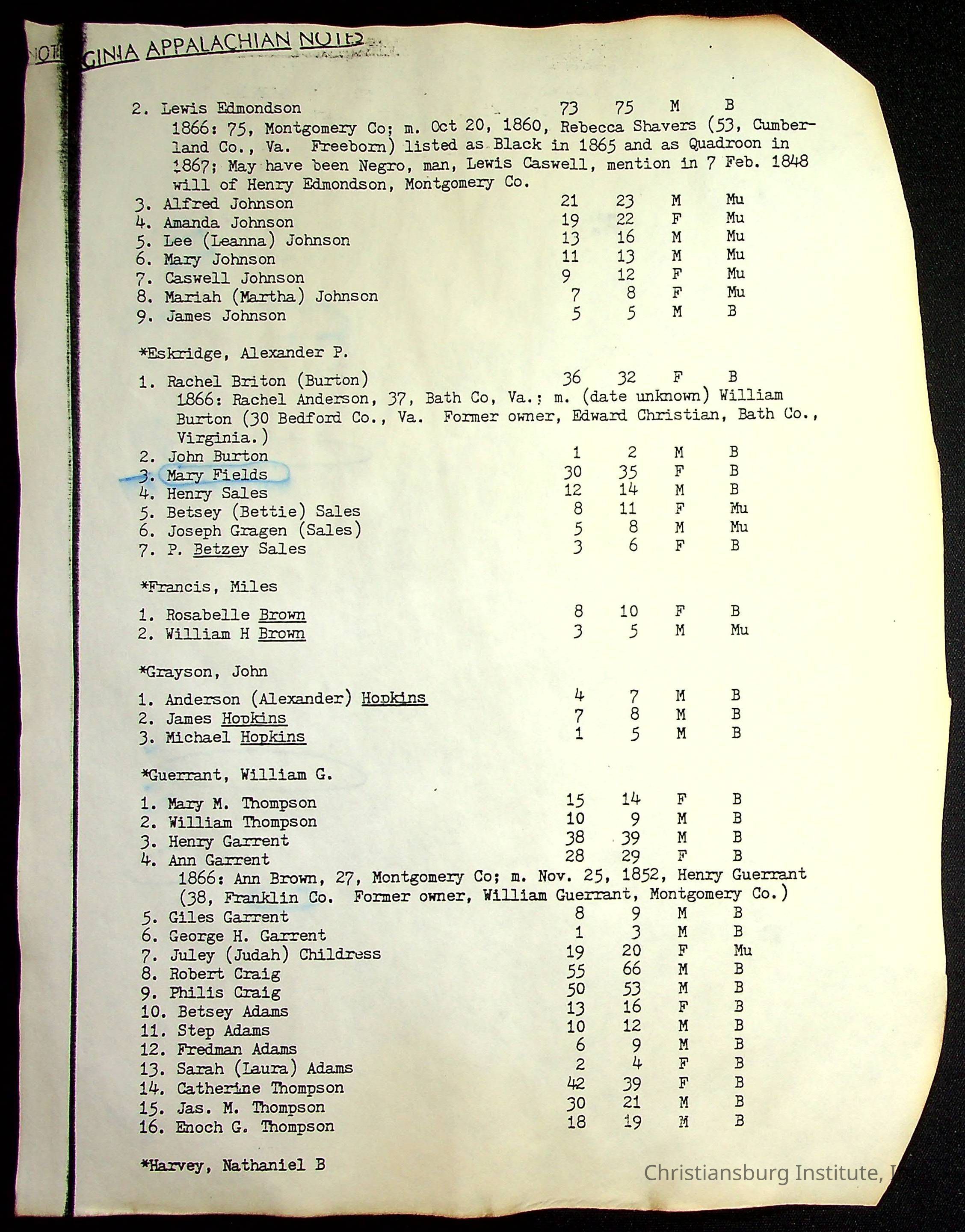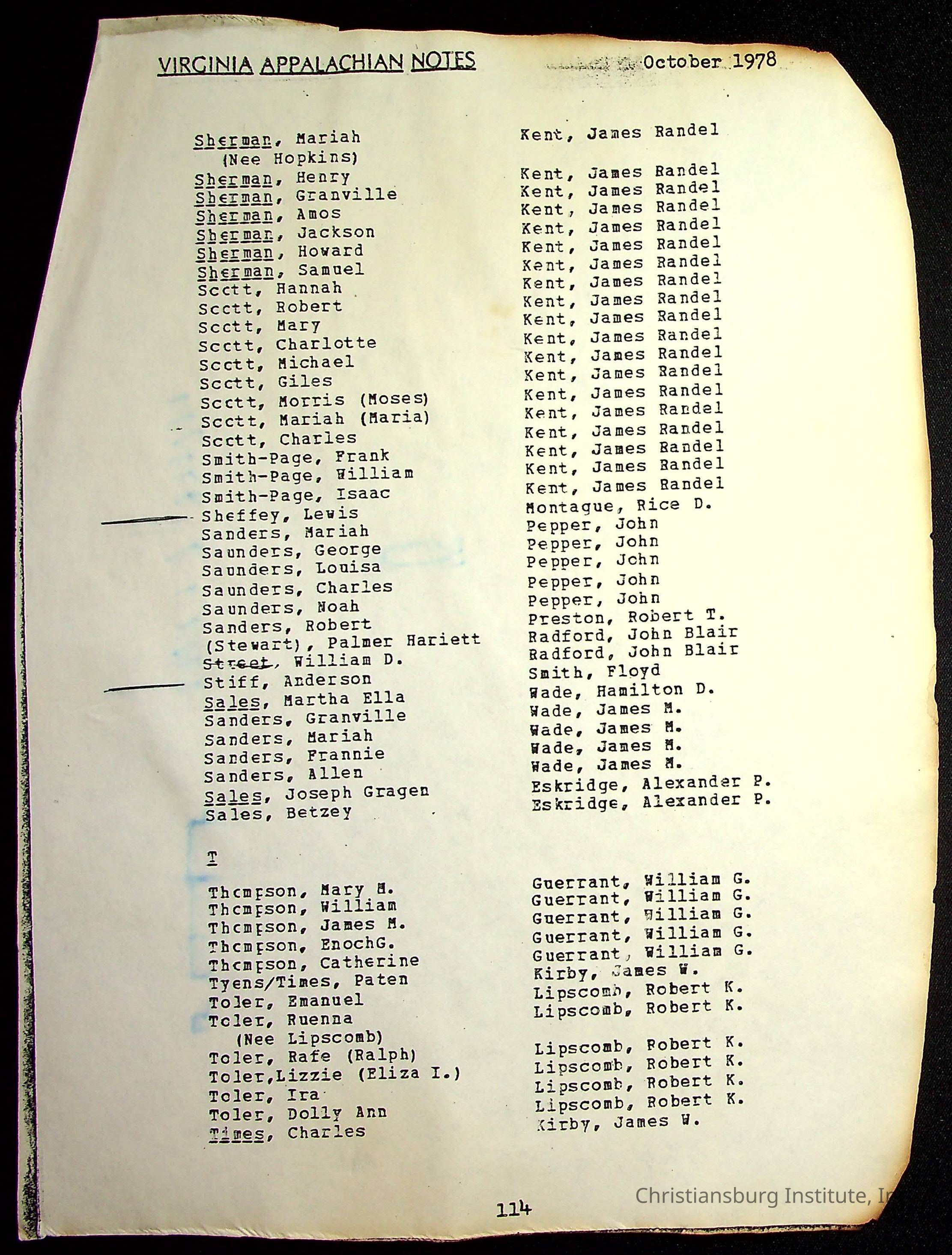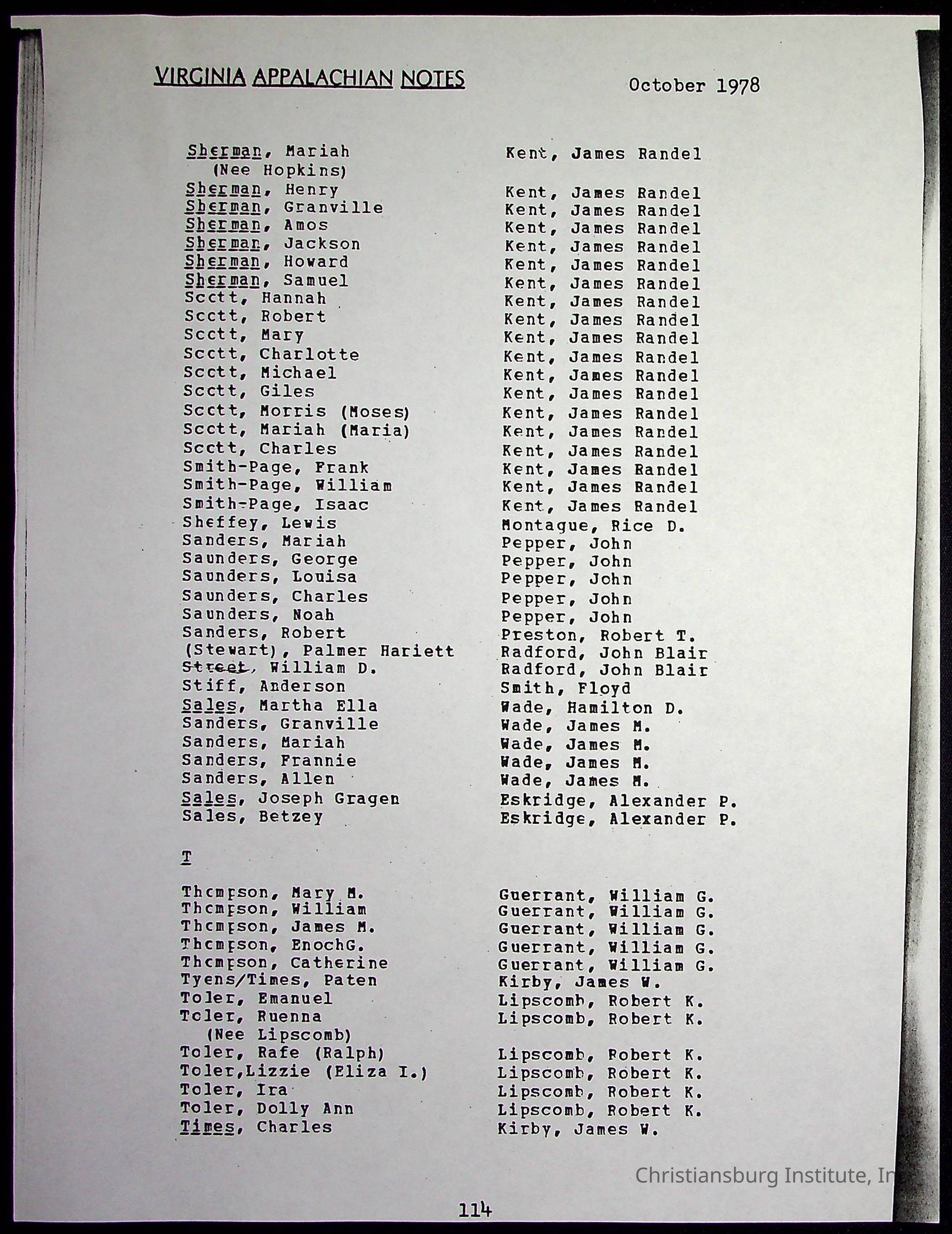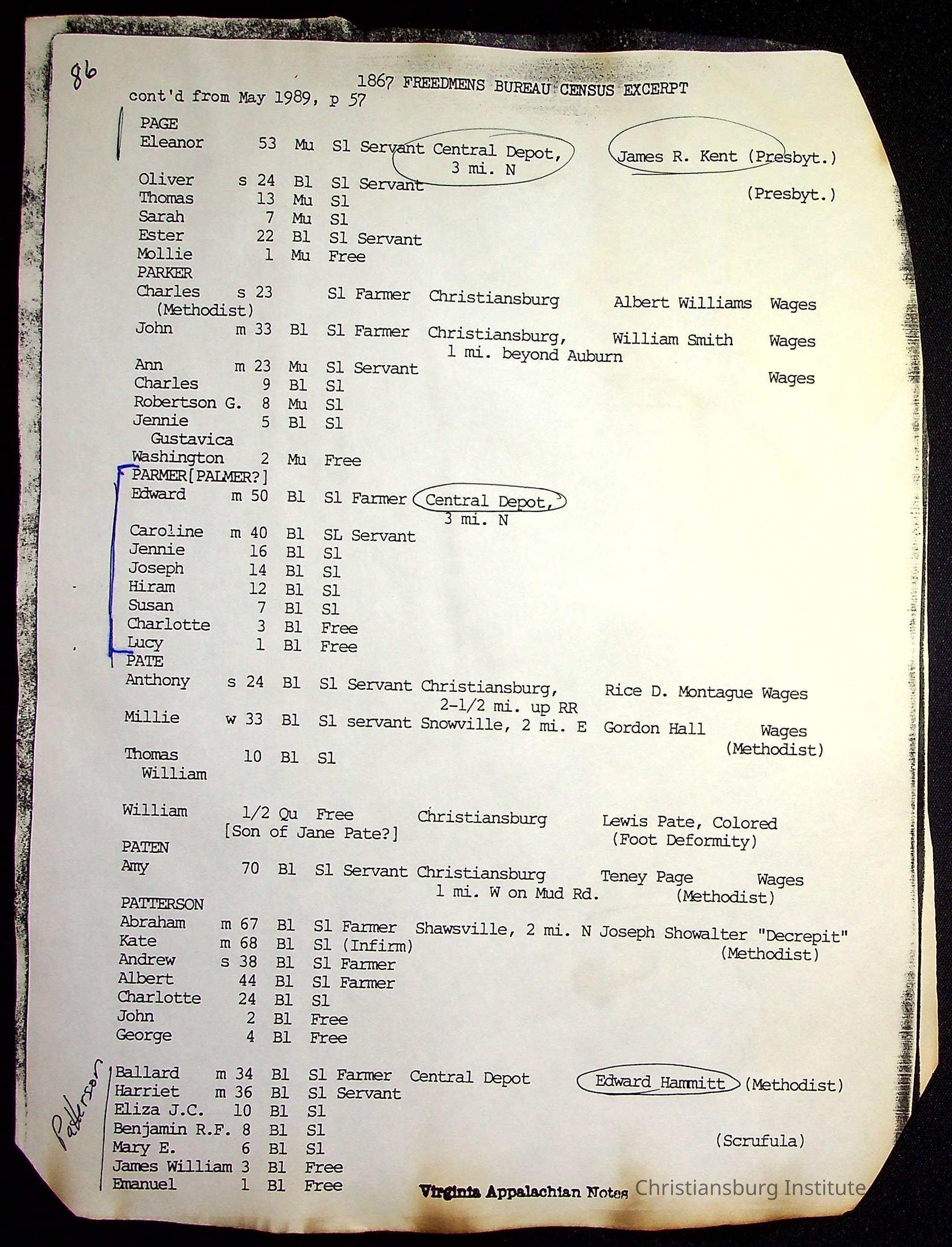 Farm Land, Boom Town, Village: A History of Belspring, Virginia, 1750-1940, The Reports of Charles S. Schaeffer from the Virginia counties of Montgomery and Pulaski, with additional information on the counties of Floyd, Giles, Craig, Wythe, and Roanoke., Ingles Ferry Ledgers (1840s-1880s), These people lived in a pleasant valley, Making their mark: Black Families of New River Depot, 1870-1940., Whartons’ Town New River Depot, 1870-1940., Radford’s Early Black Residents, 1880-1925
