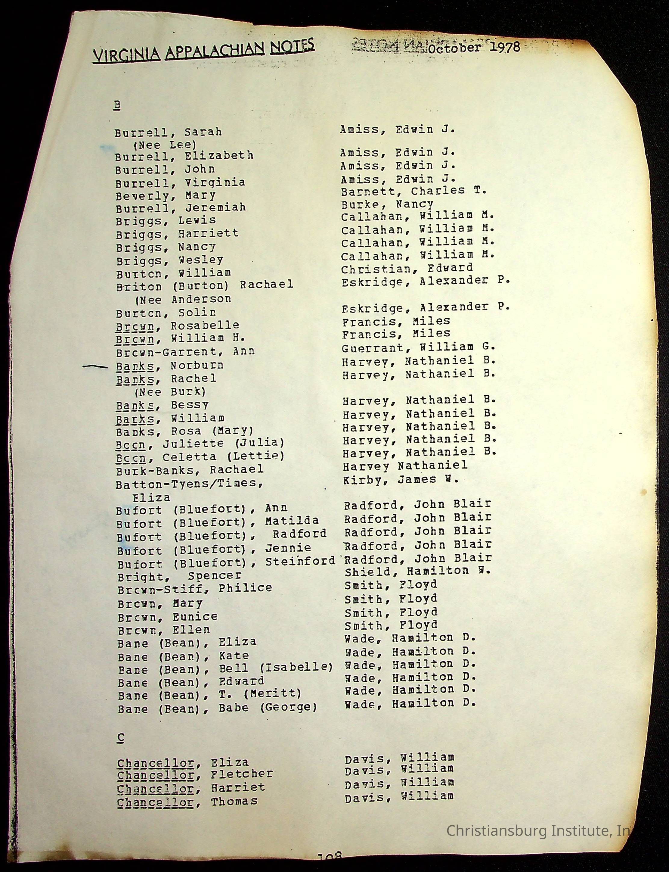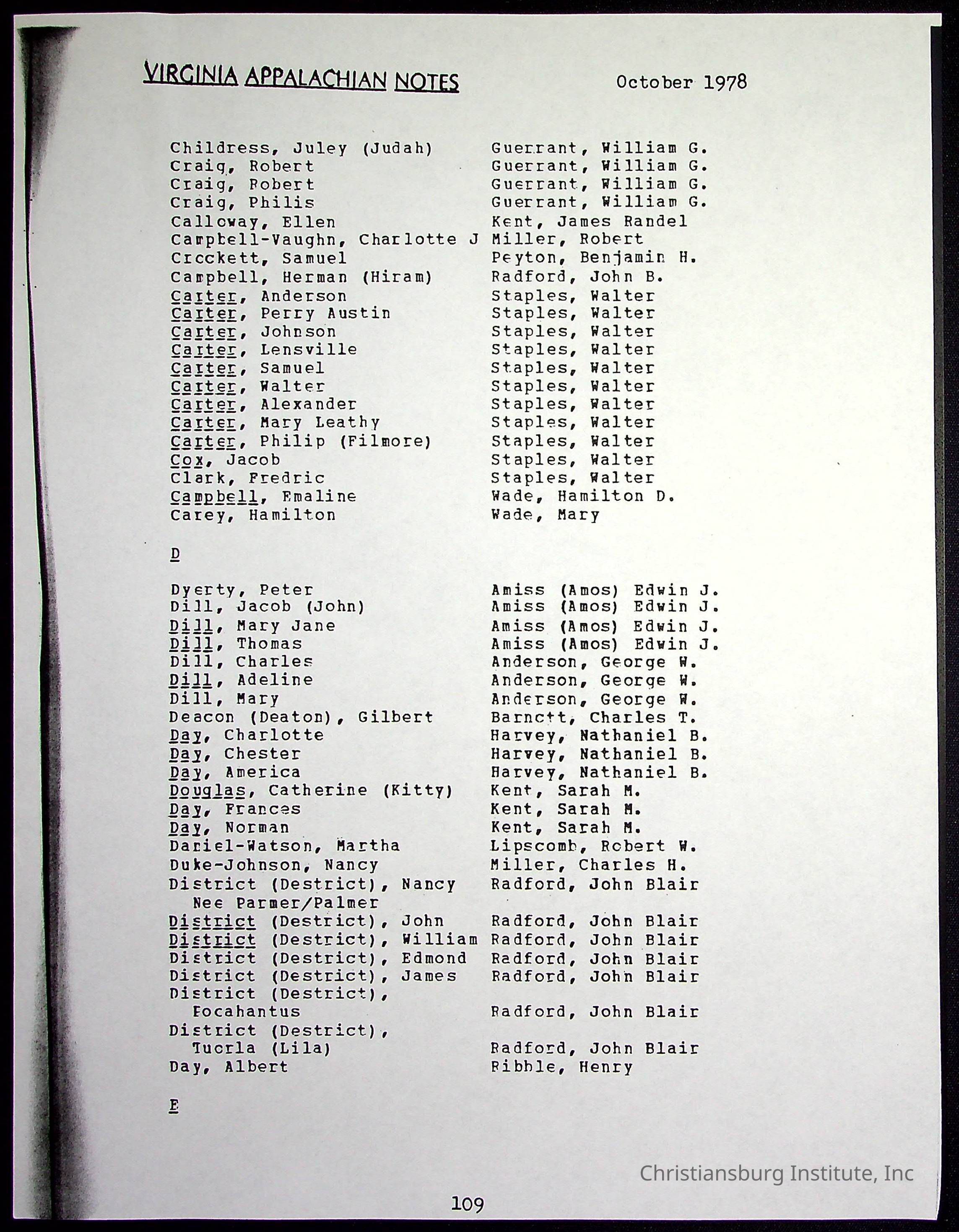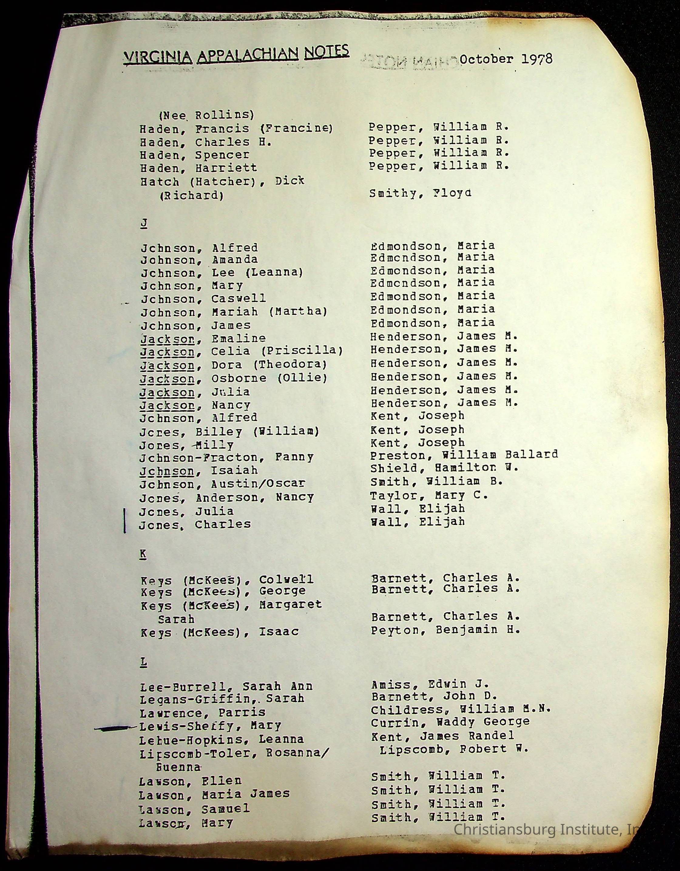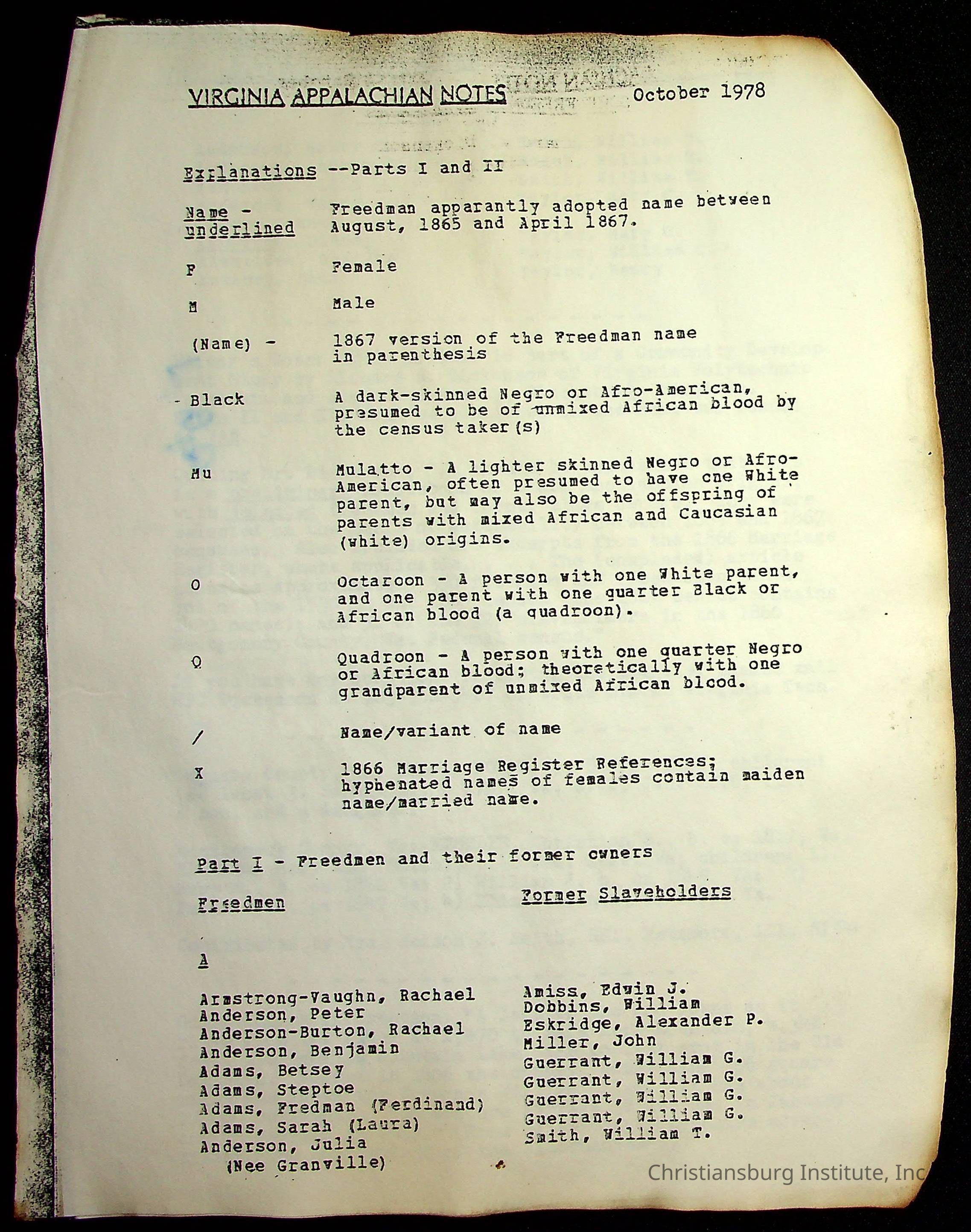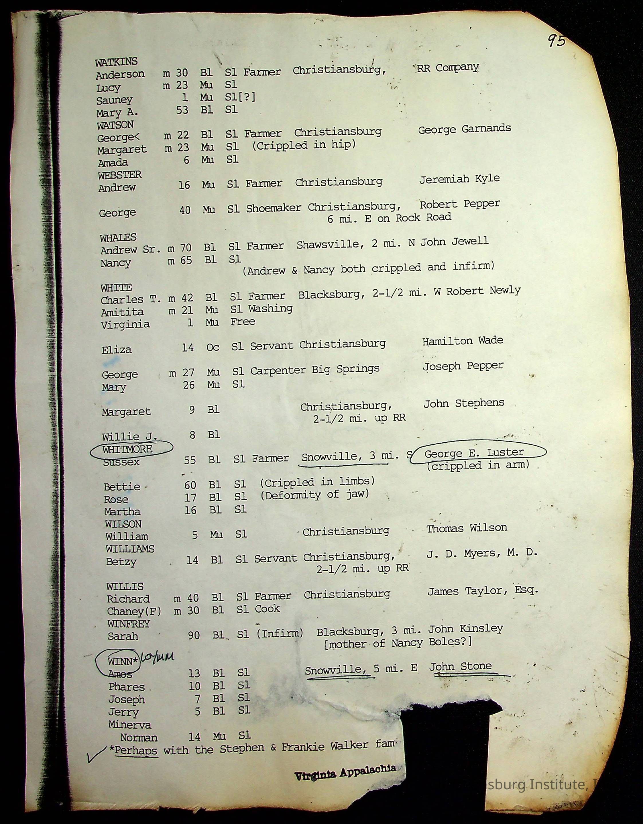 Farm Land, Boom Town, Village: A History of Belspring, Virginia, 1750-1940, The Reports of Charles S. Schaeffer from the Virginia counties of Montgomery and Pulaski, with additional information on the counties of Floyd, Giles, Craig, Wythe, and Roanoke., Ingles Ferry Ledgers (1840s-1880s), These people lived in a pleasant valley, Making their mark: Black Families of New River Depot, 1870-1940., Whartons’ Town New River Depot, 1870-1940., Radford’s Early Black Residents, 1880-1925