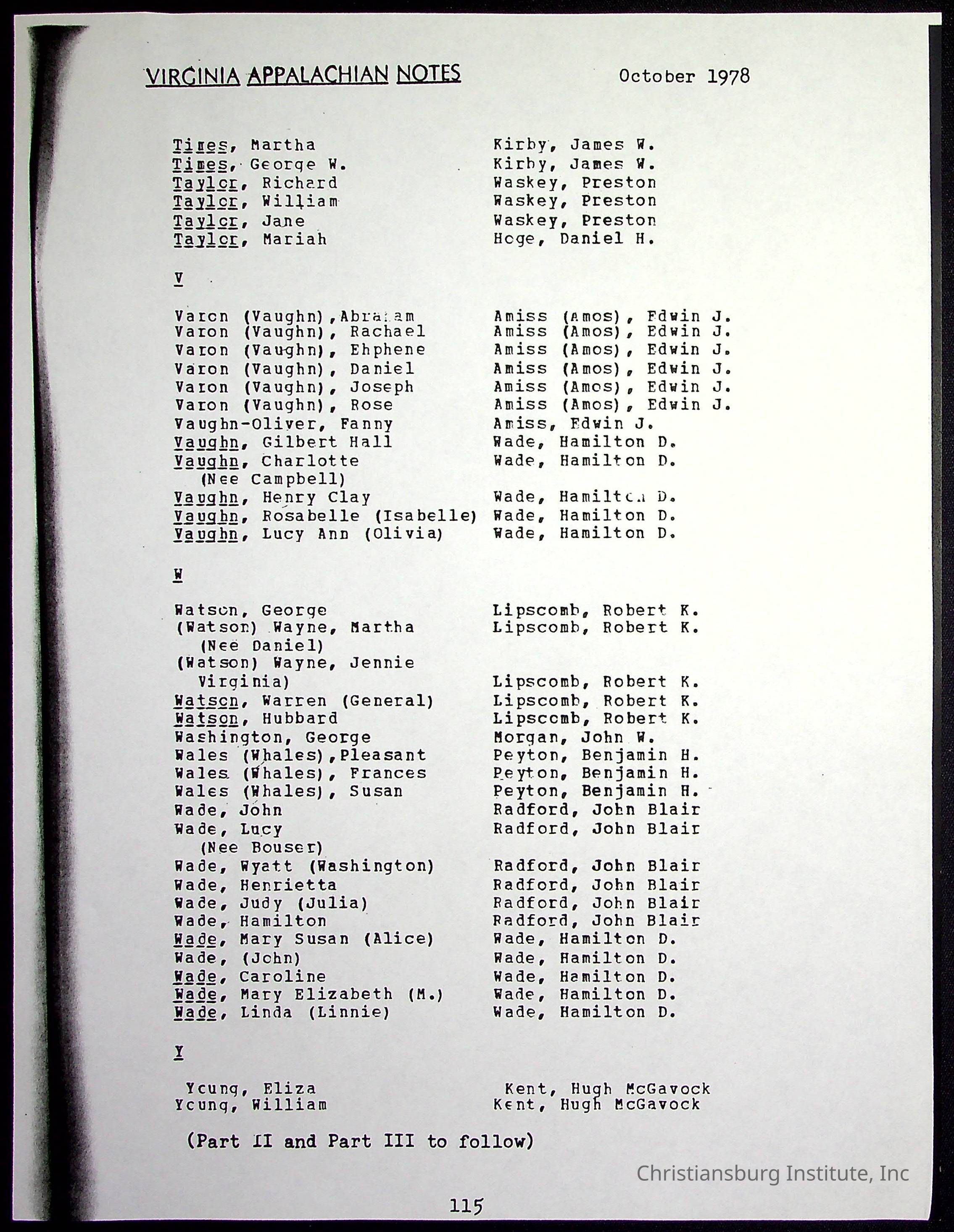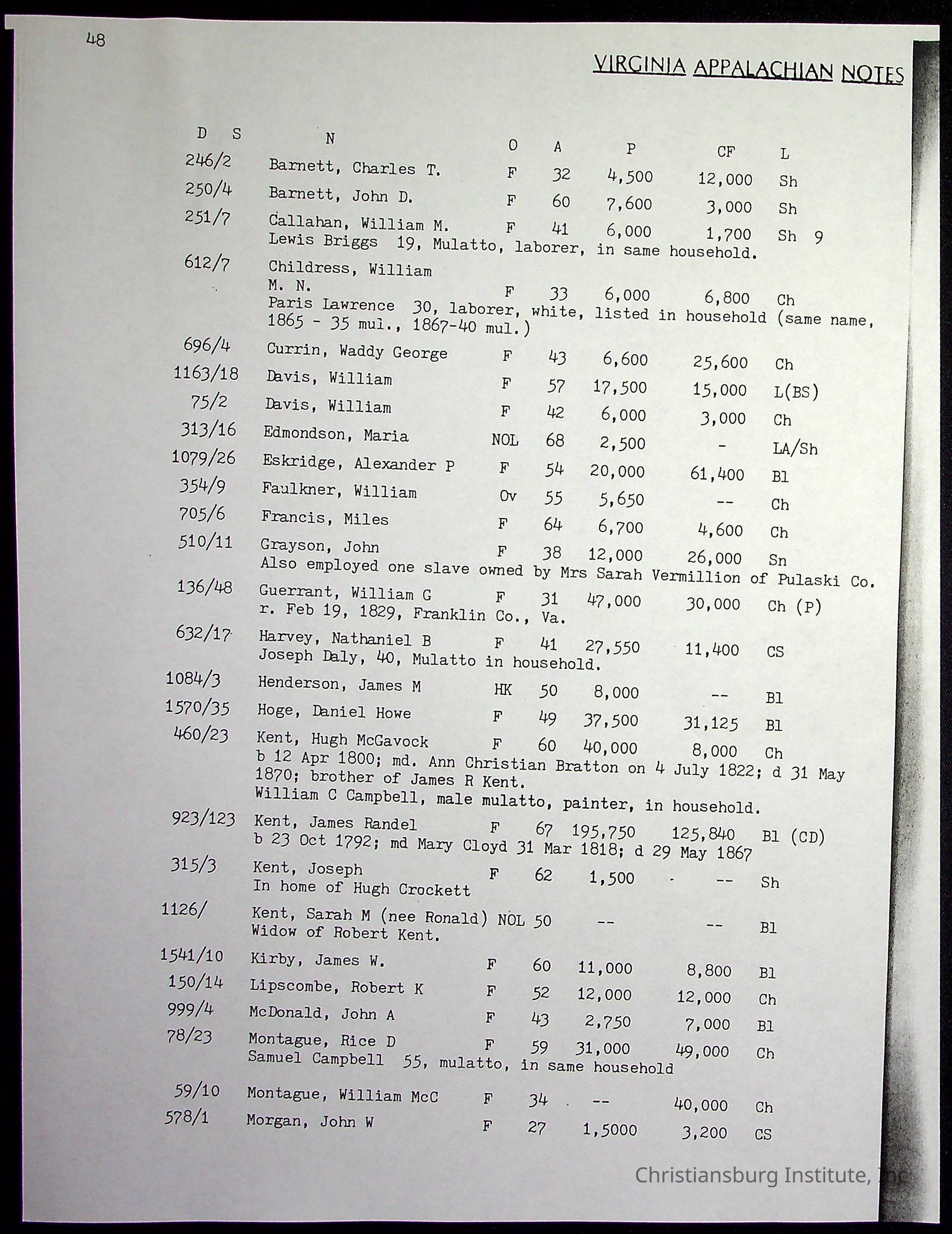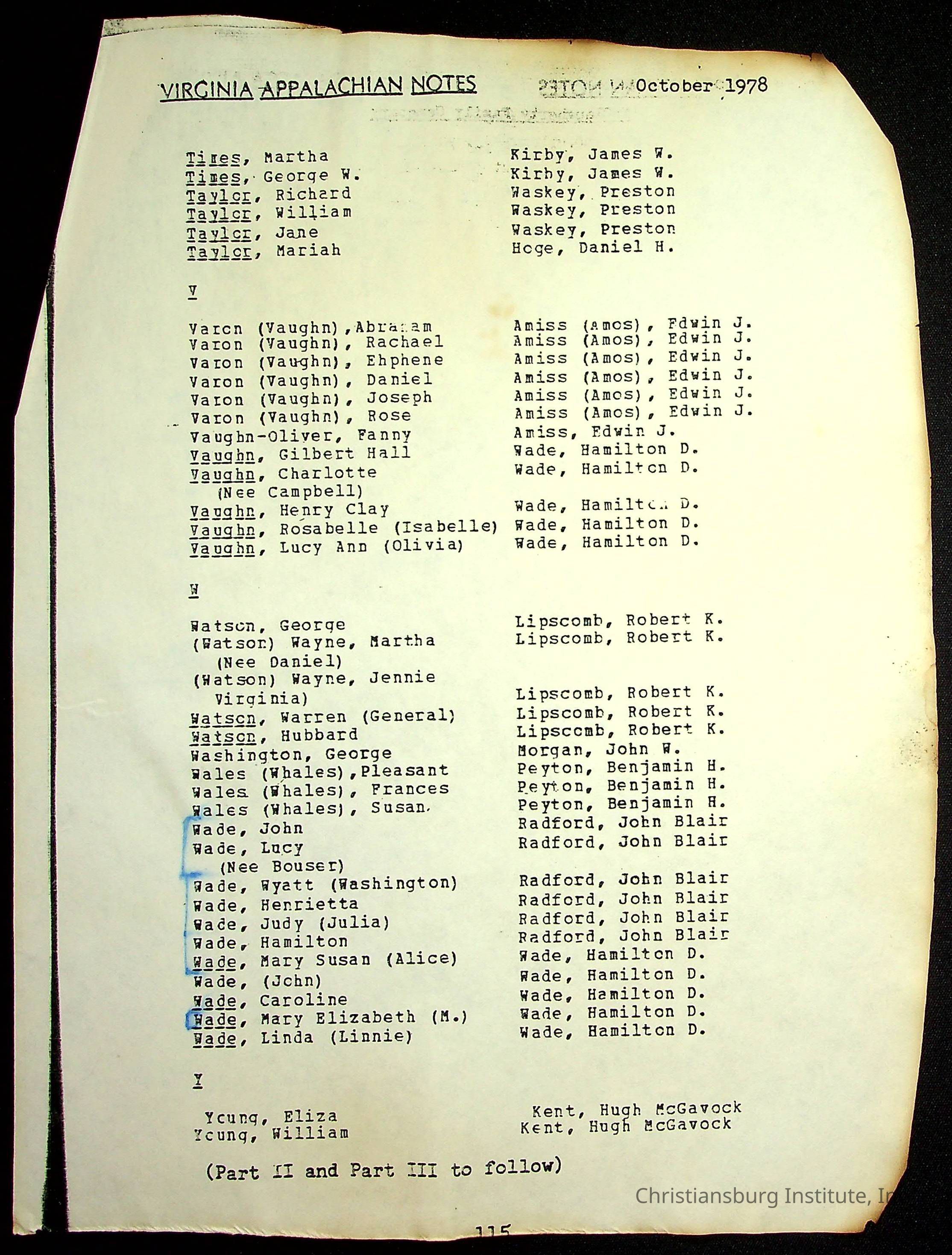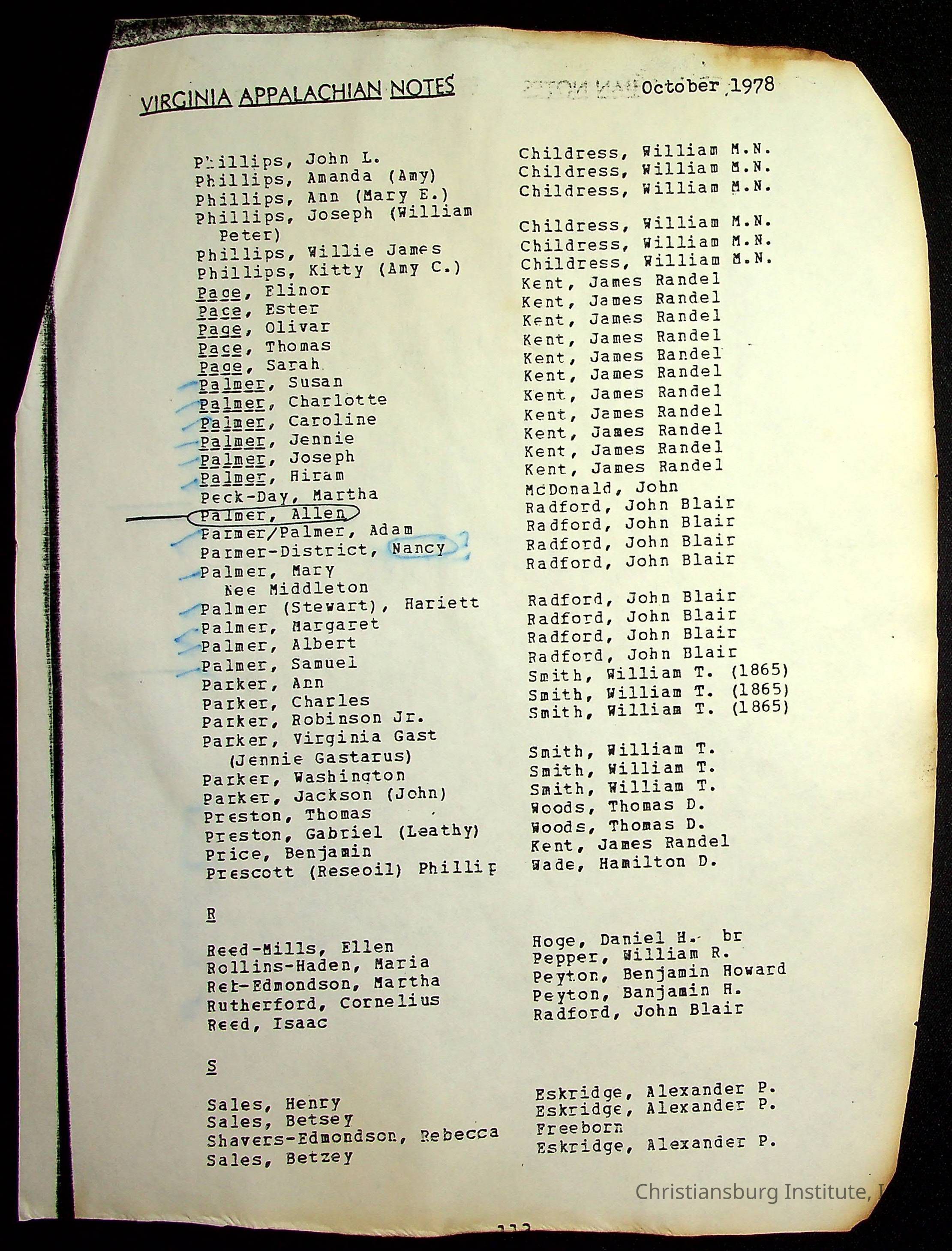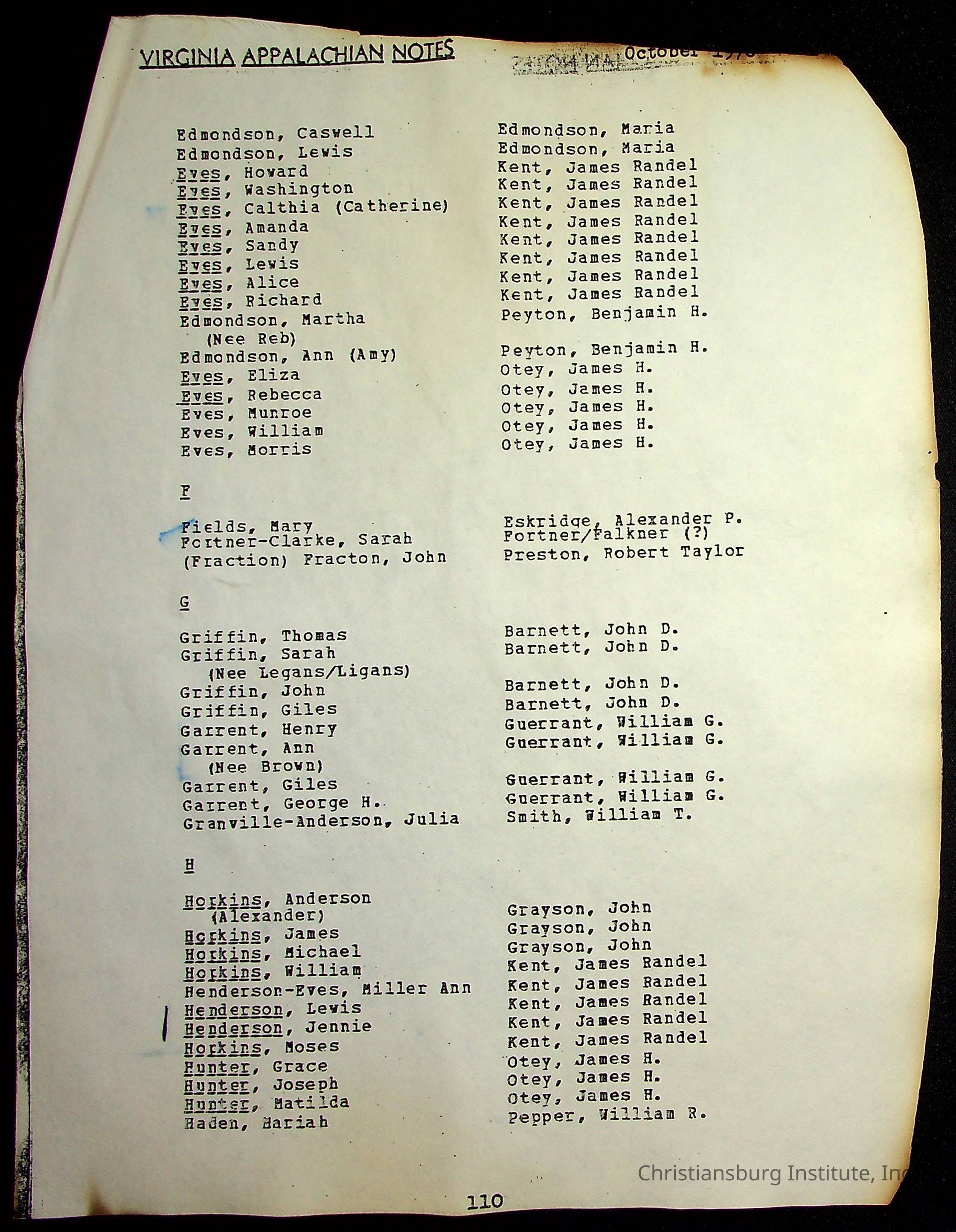Farm Land, Boom Town, Village: A History of Belspring, Virginia, 1750-1940, The Reports of Charles S. Schaeffer from the Virginia counties of Montgomery and Pulaski, with additional information on the counties of Floyd, Giles, Craig, Wythe, and Roanoke., Ingles Ferry Ledgers (1840s-1880s), These people lived in a pleasant valley, Making their mark: Black Families of New River Depot, 1870-1940., Whartons’ Town New River Depot, 1870-1940., Radford’s Early Black Residents, 1880-1925