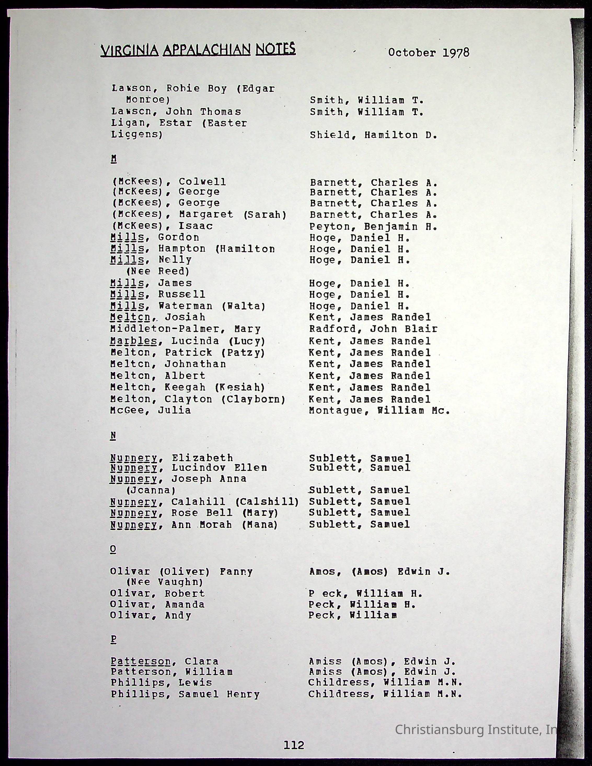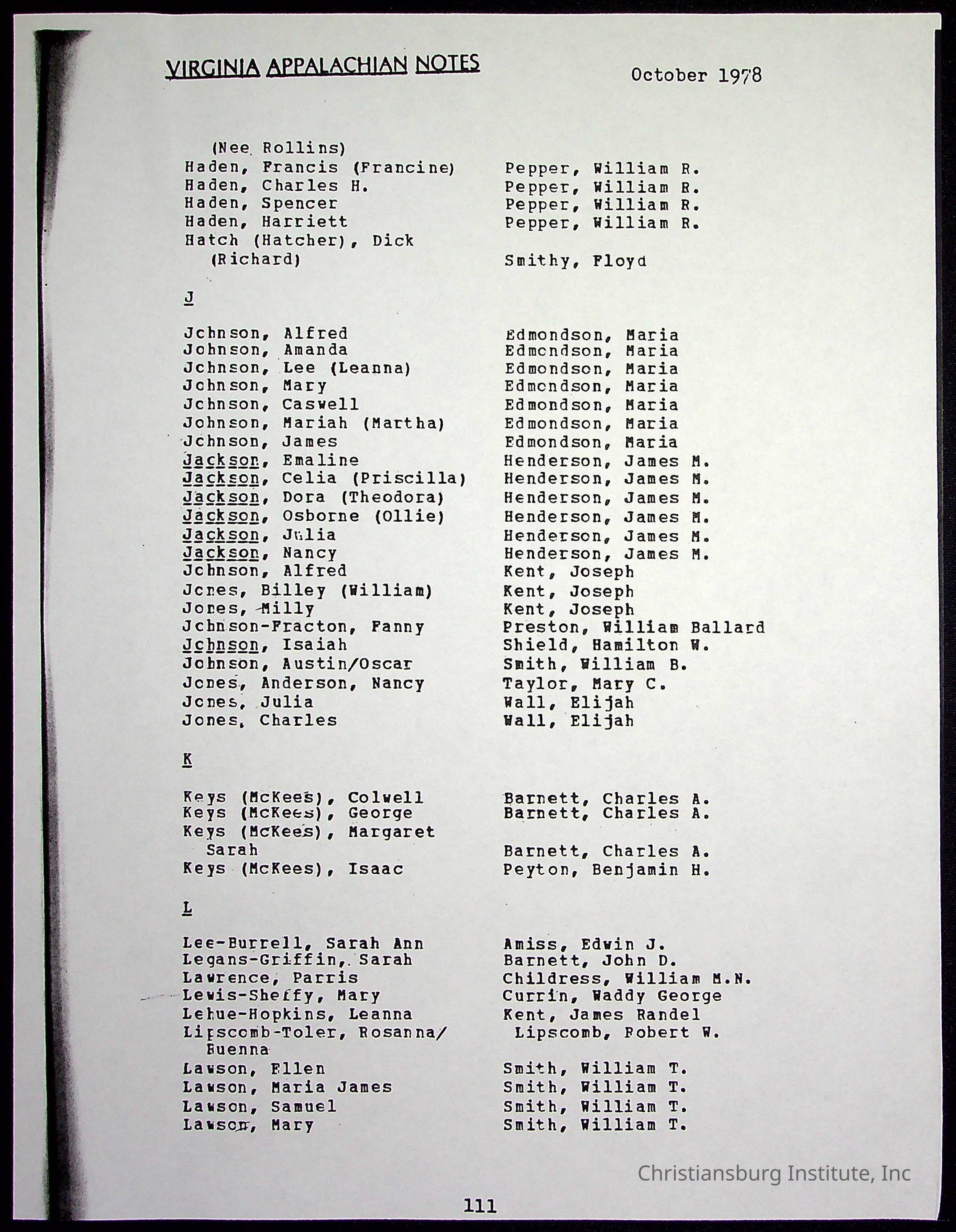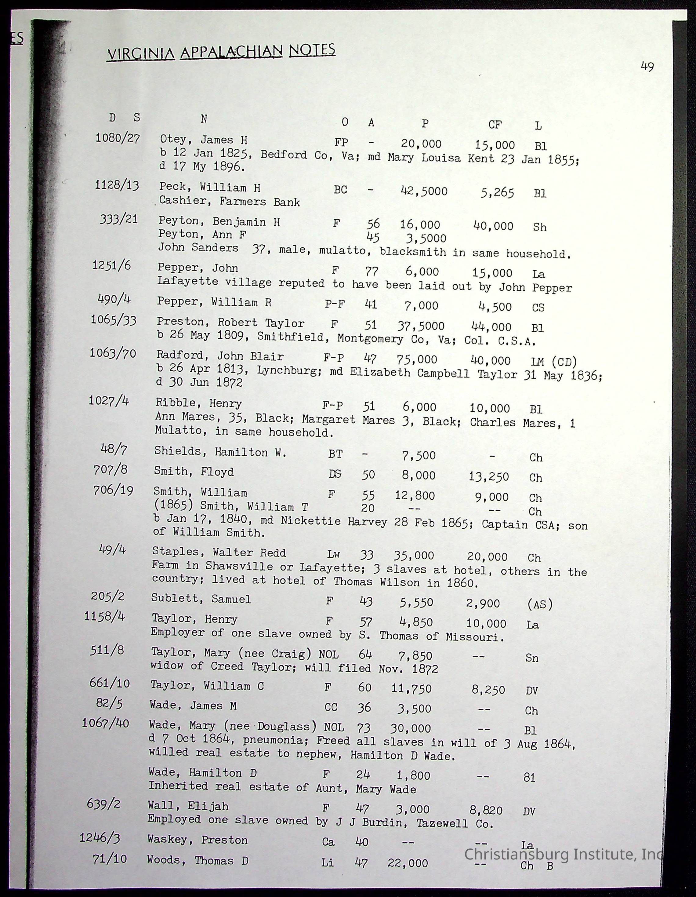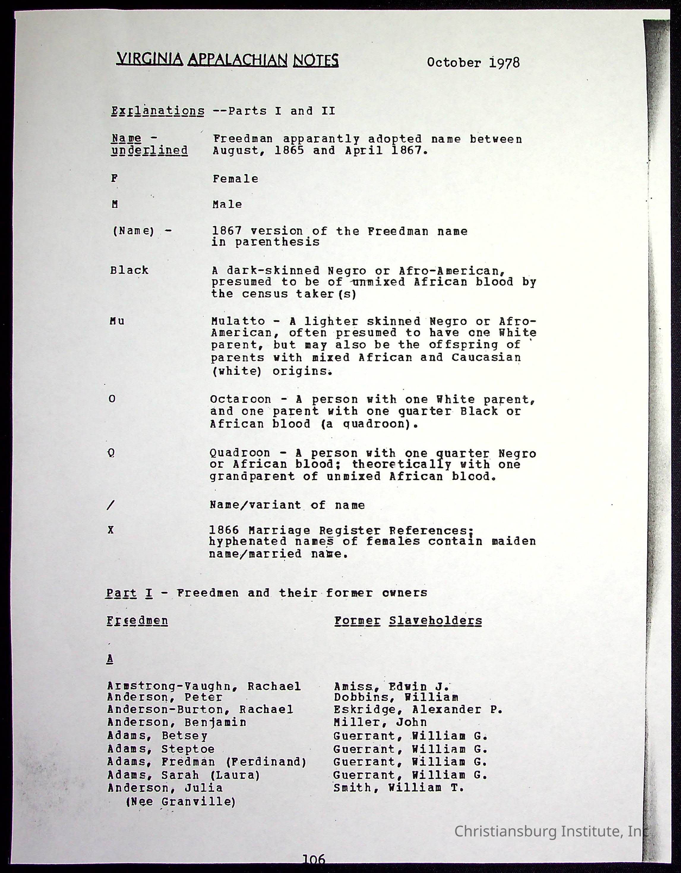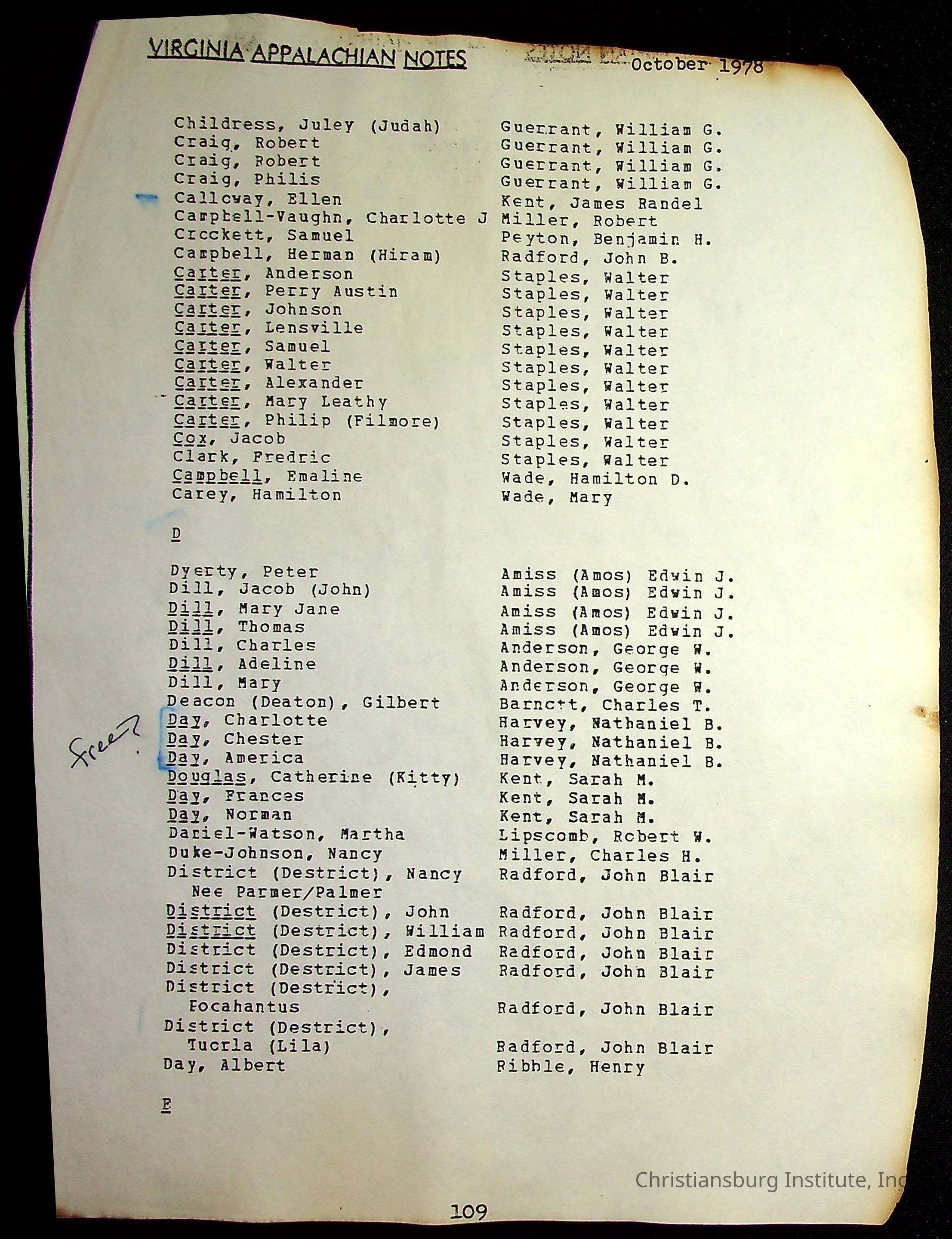 Farm Land, Boom Town, Village: A History of Belspring, Virginia, 1750-1940, The Reports of Charles S. Schaeffer from the Virginia counties of Montgomery and Pulaski, with additional information on the counties of Floyd, Giles, Craig, Wythe, and Roanoke., Ingles Ferry Ledgers (1840s-1880s), These people lived in a pleasant valley, Making their mark: Black Families of New River Depot, 1870-1940., Whartons’ Town New River Depot, 1870-1940., Radford’s Early Black Residents, 1880-1925