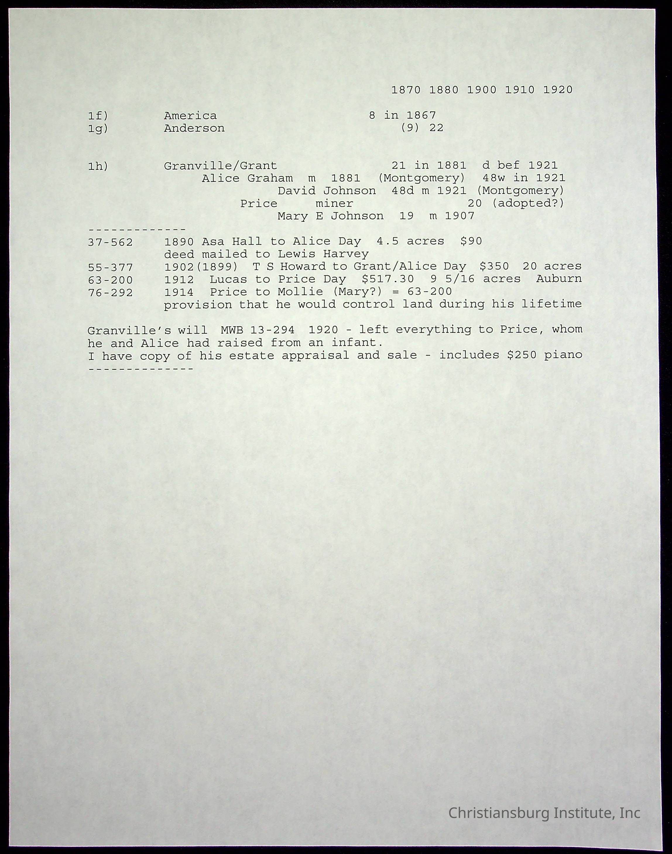 Farm Land, Boom Town, Village: A History of Belspring, Virginia, 1750-1940, The Reports of Charles S. Schaeffer from the Virginia counties of Montgomery and Pulaski, with additional information on the counties of Floyd, Giles, Craig, Wythe, and Roanoke., Ingles Ferry Ledgers (1840s-1880s), These people lived in a pleasant valley, Making their mark: Black Families of New River Depot, 1870-1940., Whartons’ Town New River Depot, 1870-1940., Radford’s Early Black Residents, 1880-1925
