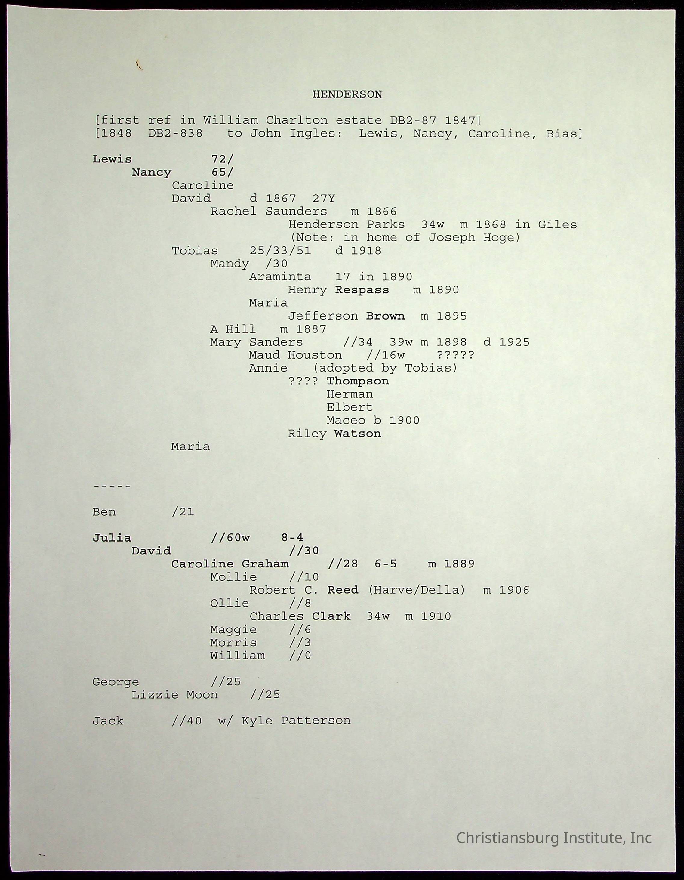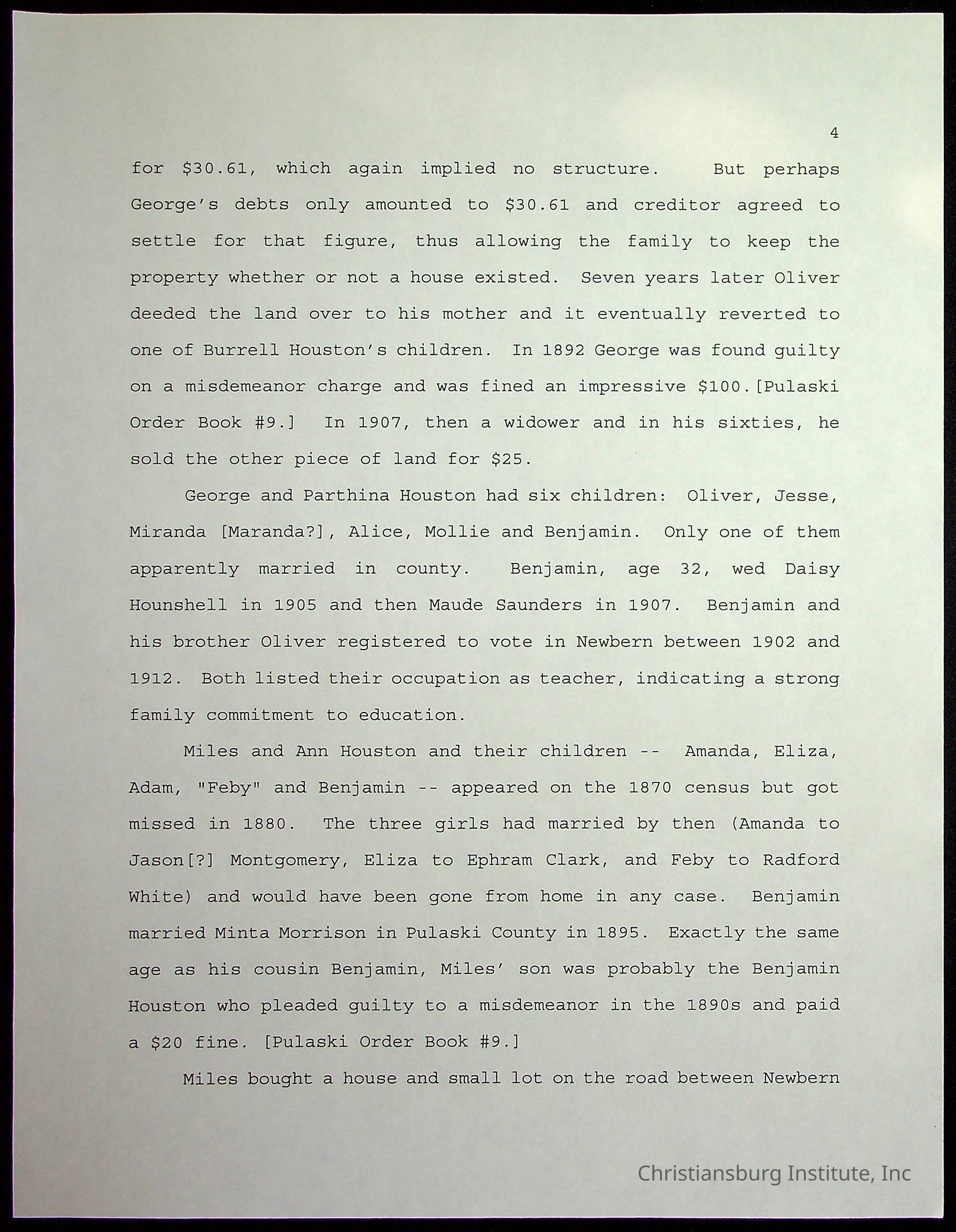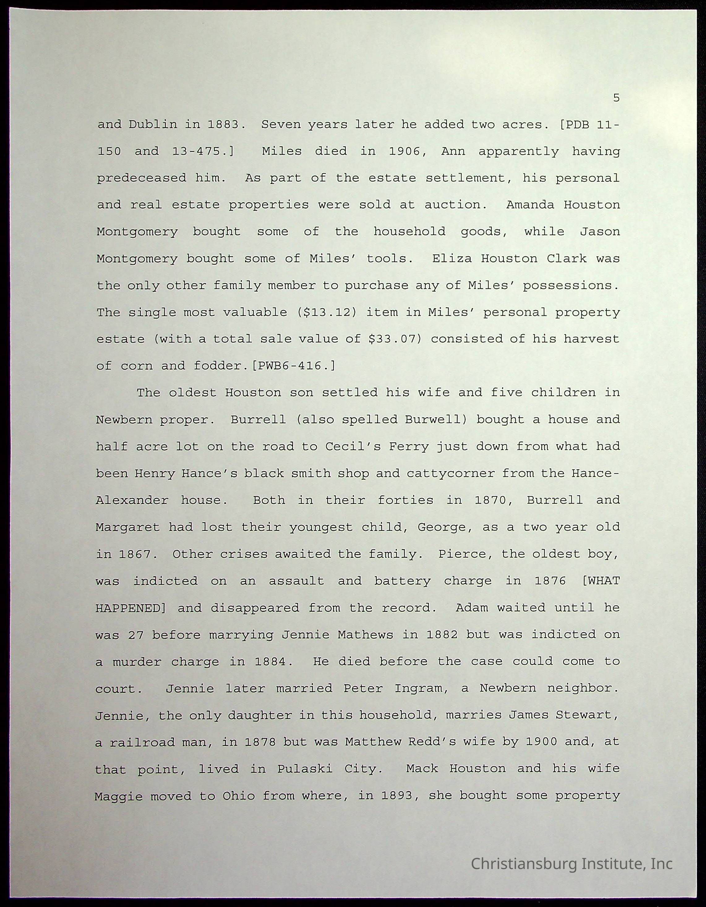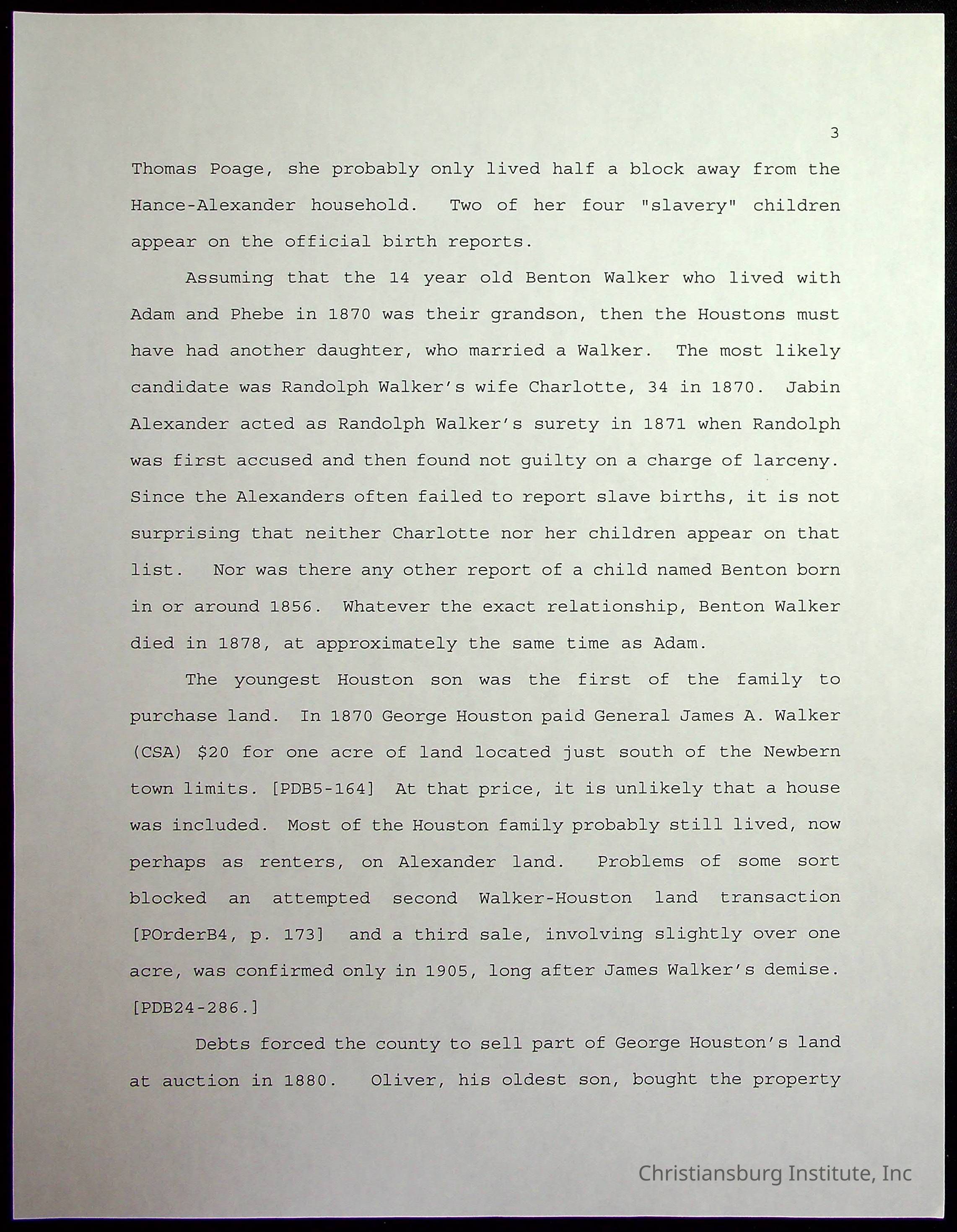 Farm Land, Boom Town, Village: A History of Belspring, Virginia, 1750-1940, The Reports of Charles S. Schaeffer from the Virginia counties of Montgomery and Pulaski, with additional information on the counties of Floyd, Giles, Craig, Wythe, and Roanoke., Ingles Ferry Ledgers (1840s-1880s), These people lived in a pleasant valley, Making their mark: Black Families of New River Depot, 1870-1940., Whartons’ Town New River Depot, 1870-1940., Radford’s Early Black Residents, 1880-1925