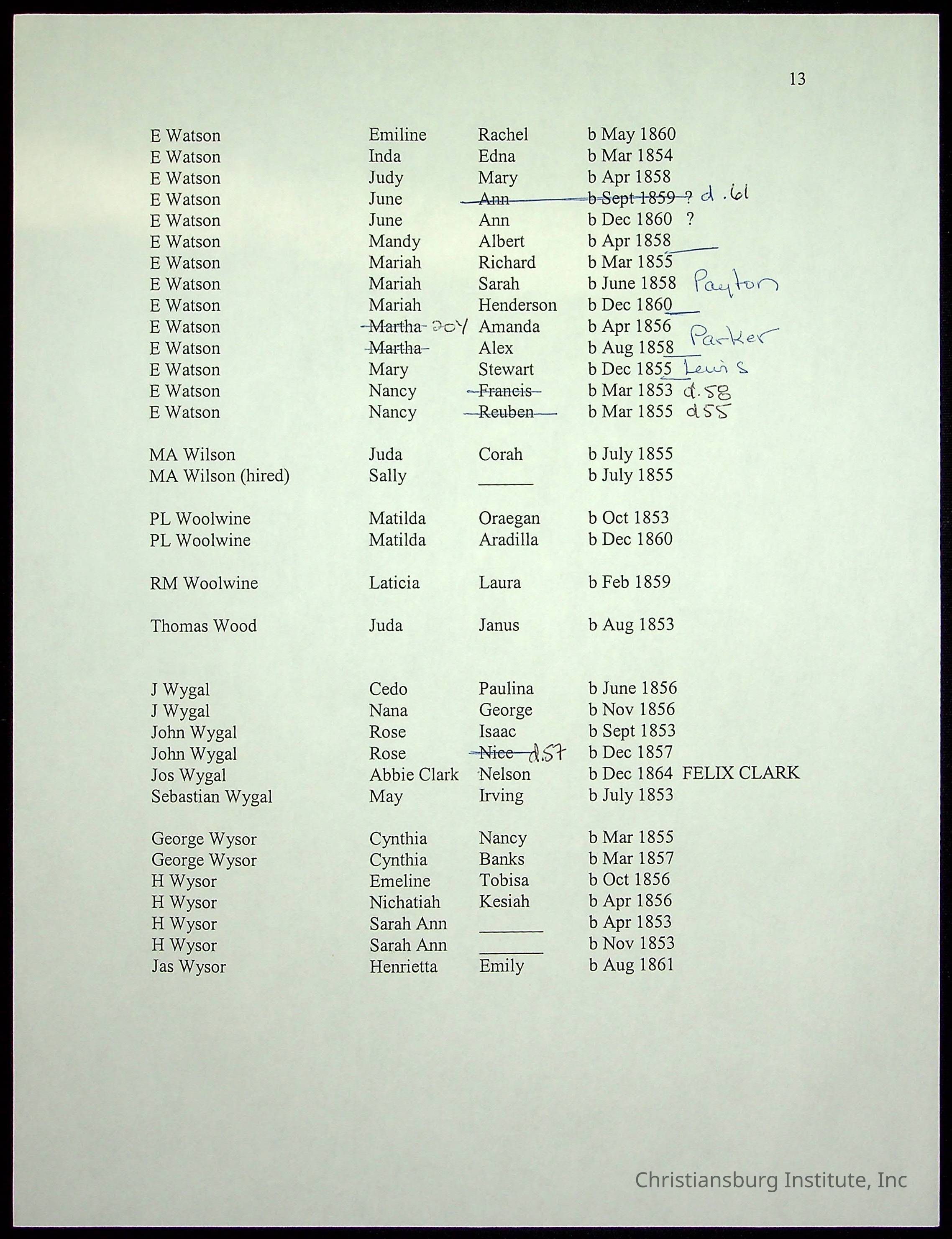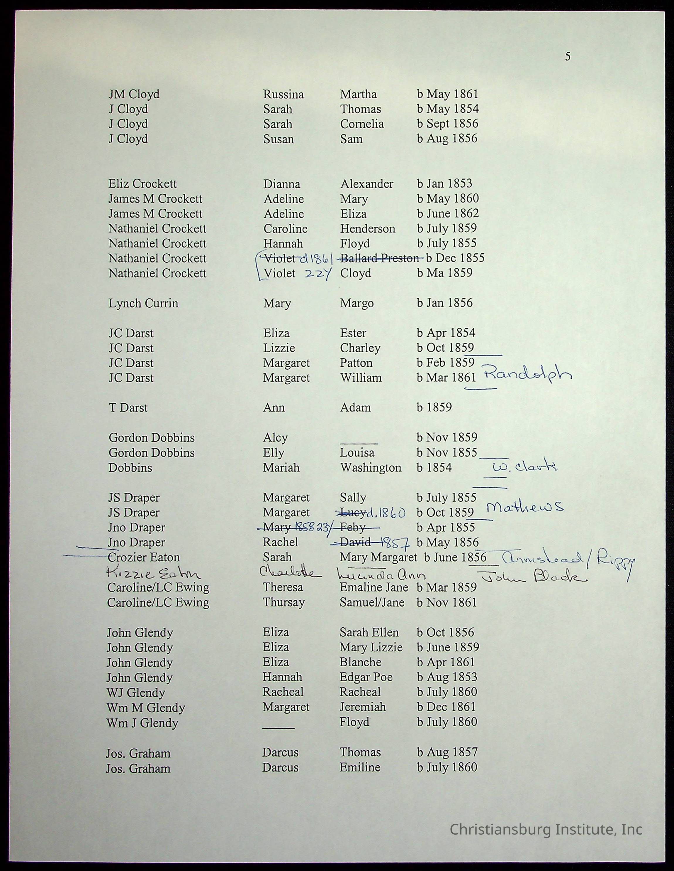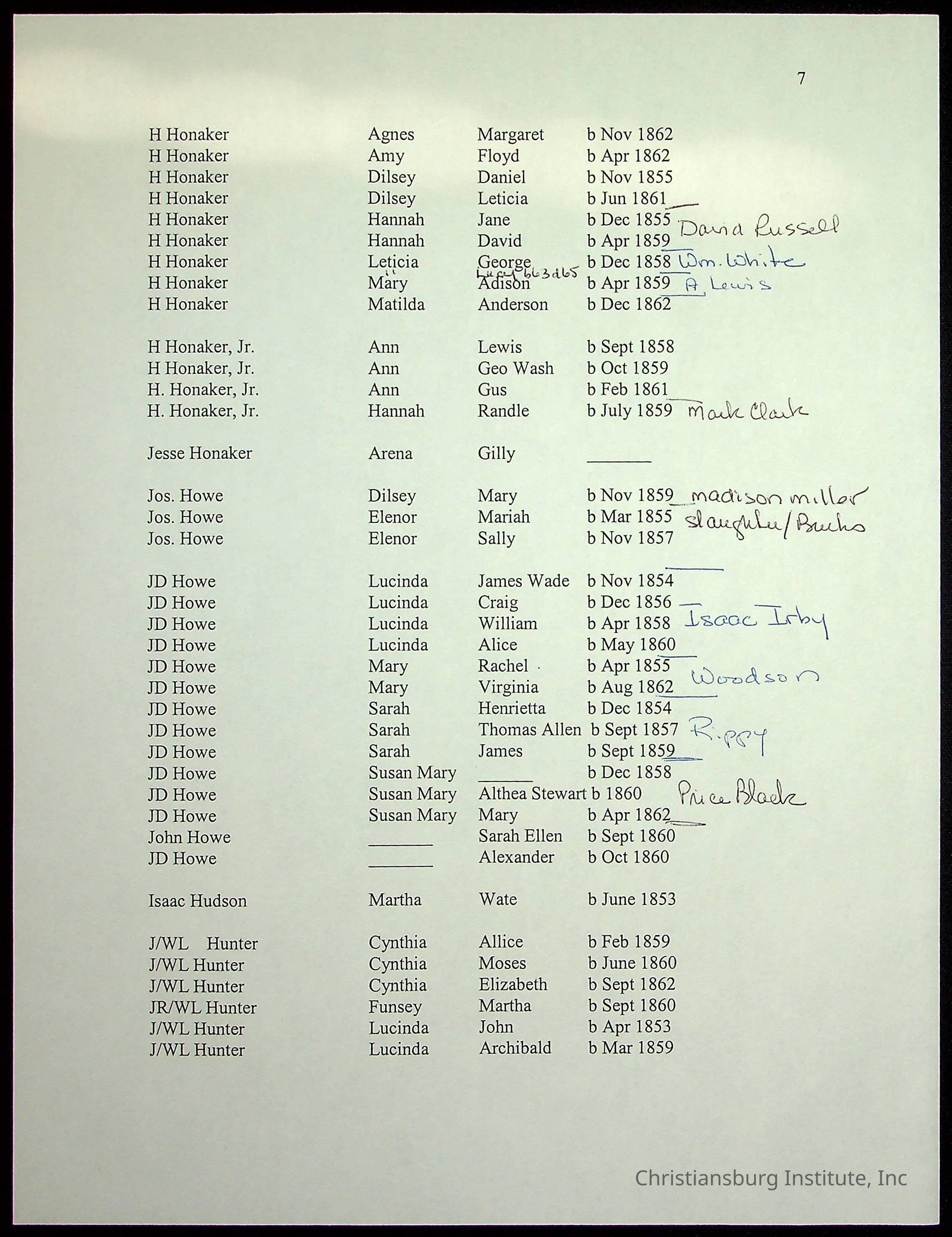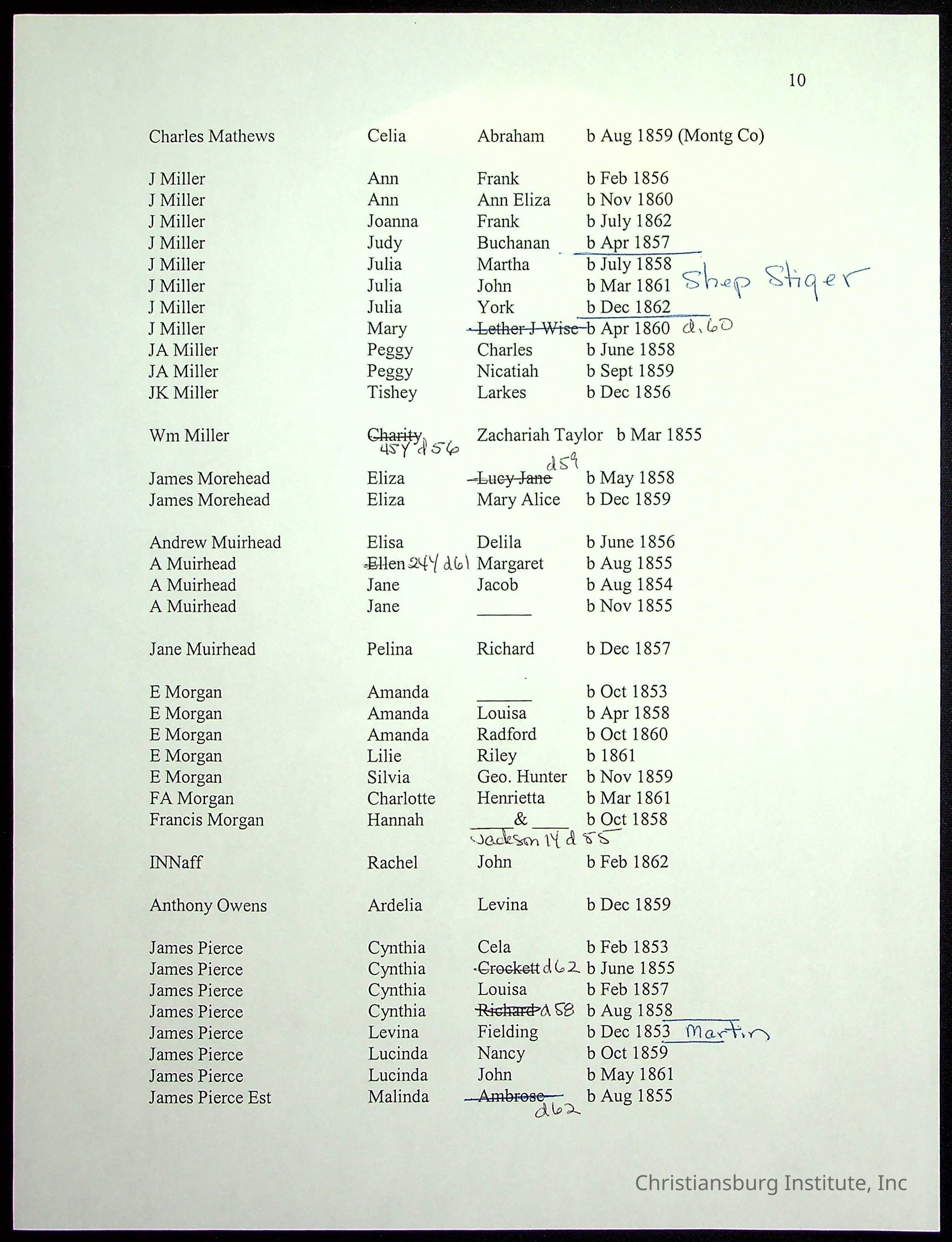 Farm Land, Boom Town, Village: A History of Belspring, Virginia, 1750-1940, The Reports of Charles S. Schaeffer from the Virginia counties of Montgomery and Pulaski, with additional information on the counties of Floyd, Giles, Craig, Wythe, and Roanoke., Ingles Ferry Ledgers (1840s-1880s), These people lived in a pleasant valley, Making their mark: Black Families of New River Depot, 1870-1940., Whartons’ Town New River Depot, 1870-1940., Radford’s Early Black Residents, 1880-1925