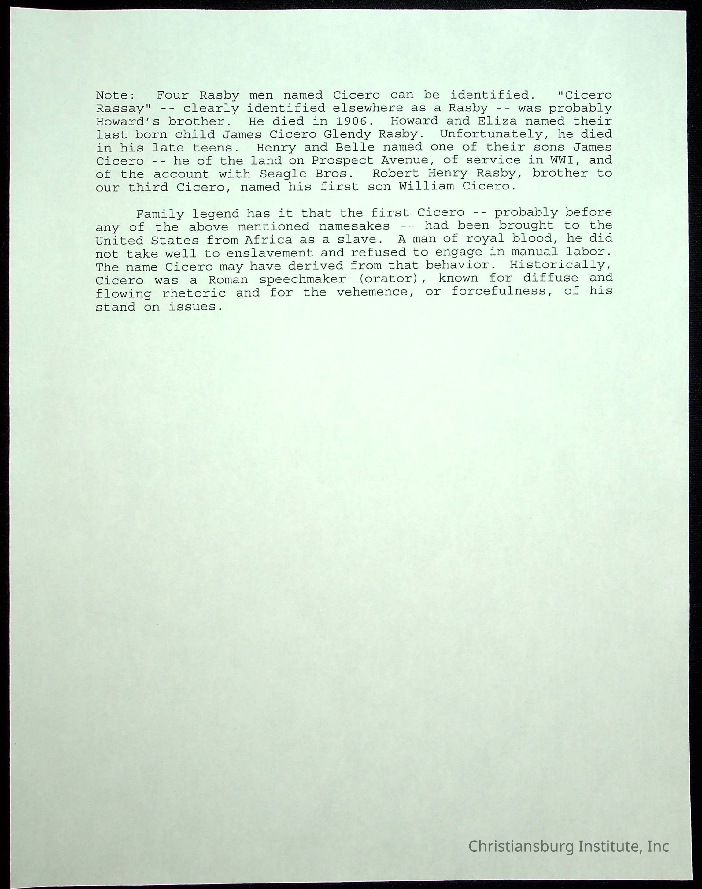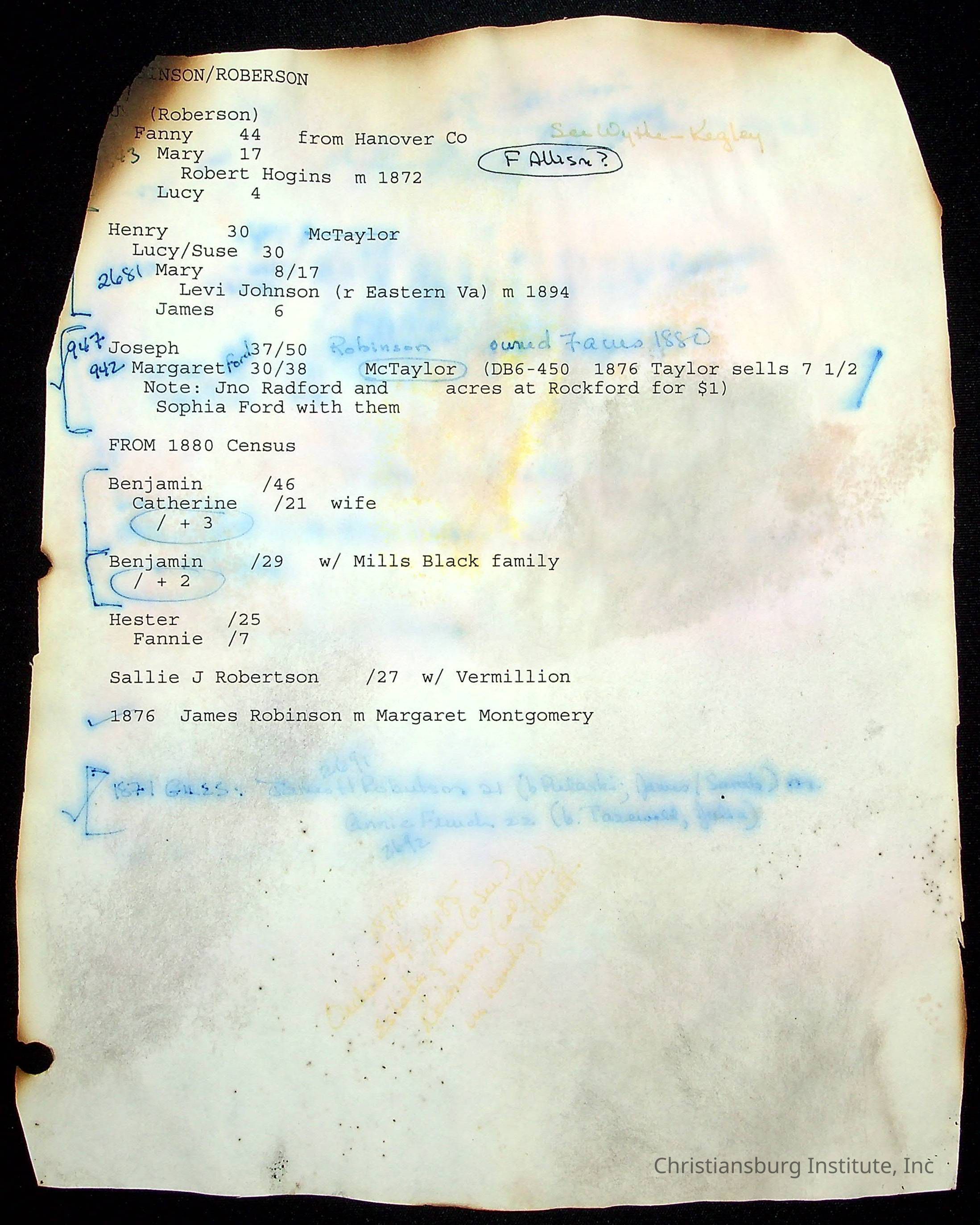Copyright has been assigned to Christiansburg Institute Museum & Archives by the Killen Family. For permission to publish materials created by the donor, contact CIMA@christiansburginstitute.com. Materials not created by Dr. Linda Killen may still be under copyright.