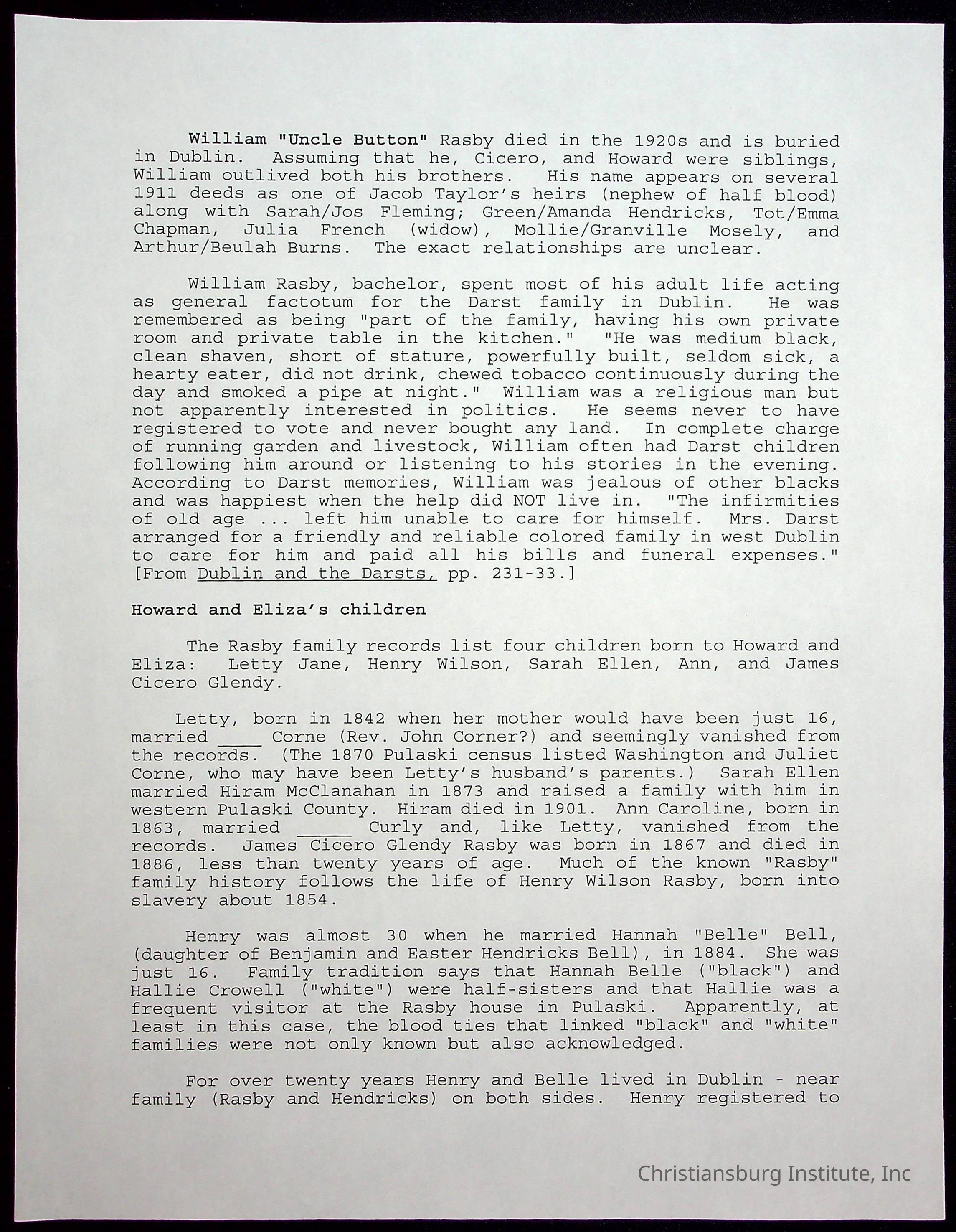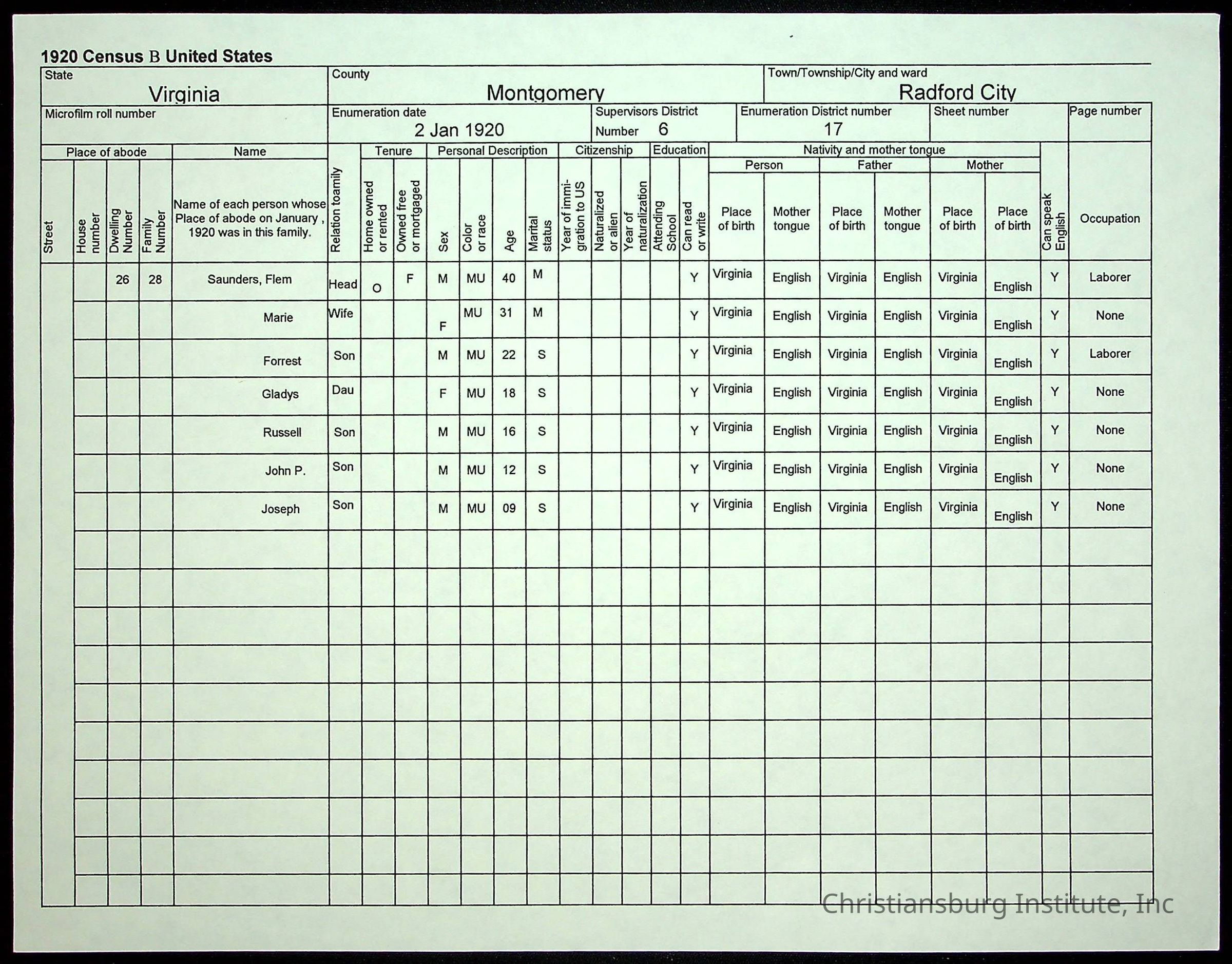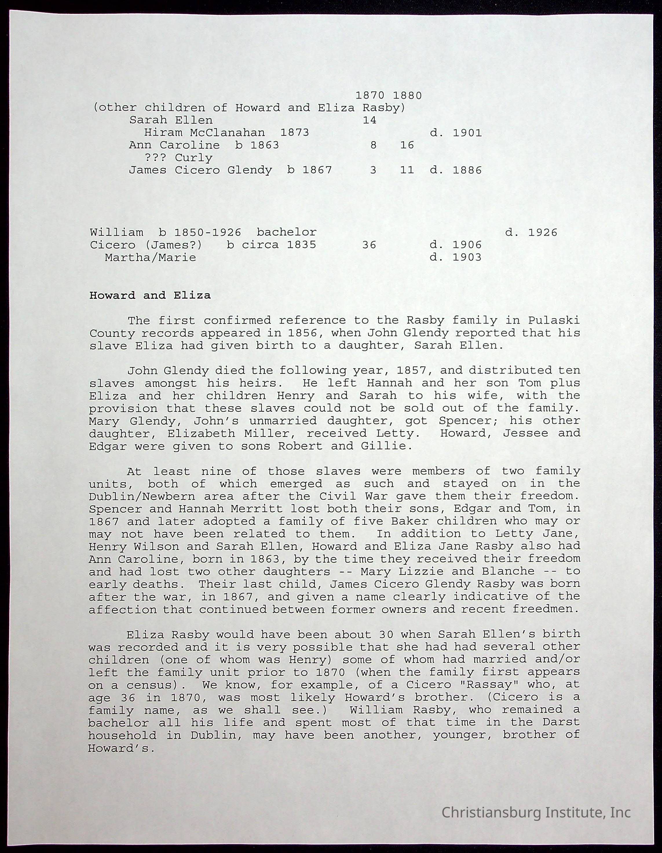 Farm Land, Boom Town, Village: A History of Belspring, Virginia, 1750-1940, The Reports of Charles S. Schaeffer from the Virginia counties of Montgomery and Pulaski, with additional information on the counties of Floyd, Giles, Craig, Wythe, and Roanoke., Ingles Ferry Ledgers (1840s-1880s), These people lived in a pleasant valley, Making their mark: Black Families of New River Depot, 1870-1940., Whartons’ Town New River Depot, 1870-1940., Radford’s Early Black Residents, 1880-1925