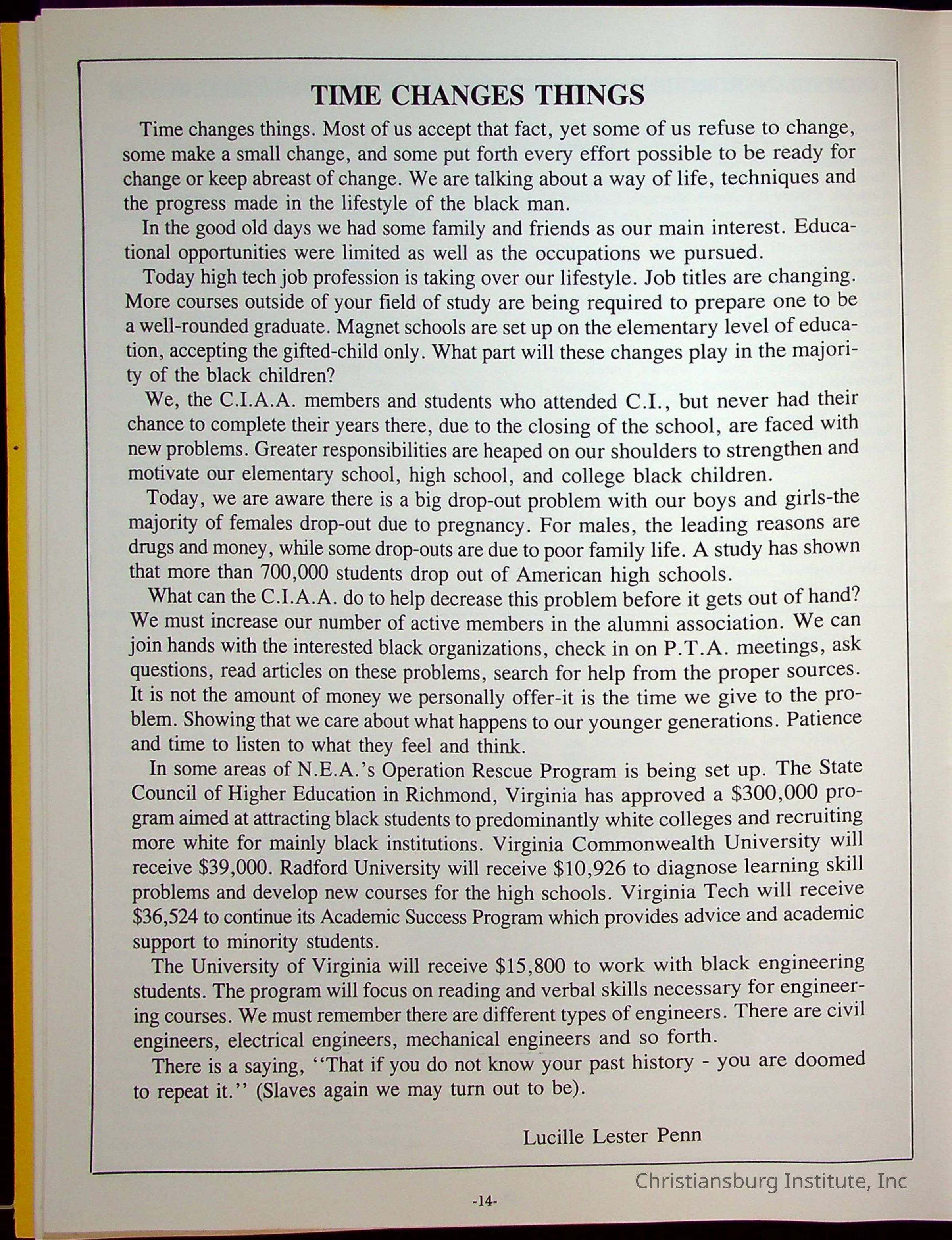 Christiansburg Institute Alumni Association CollectionPublication Details