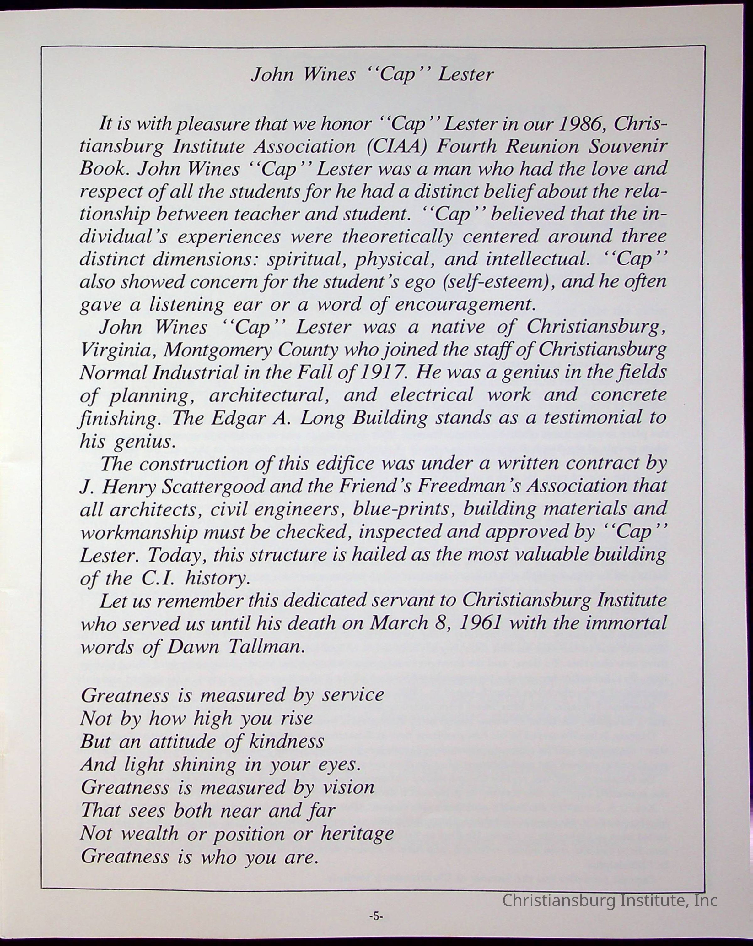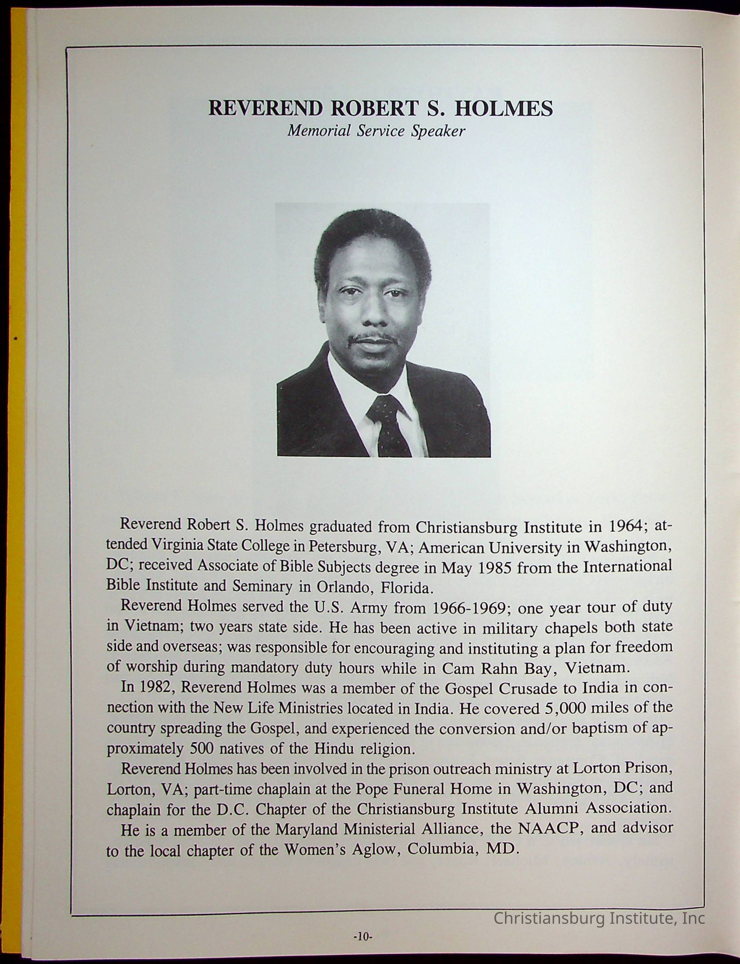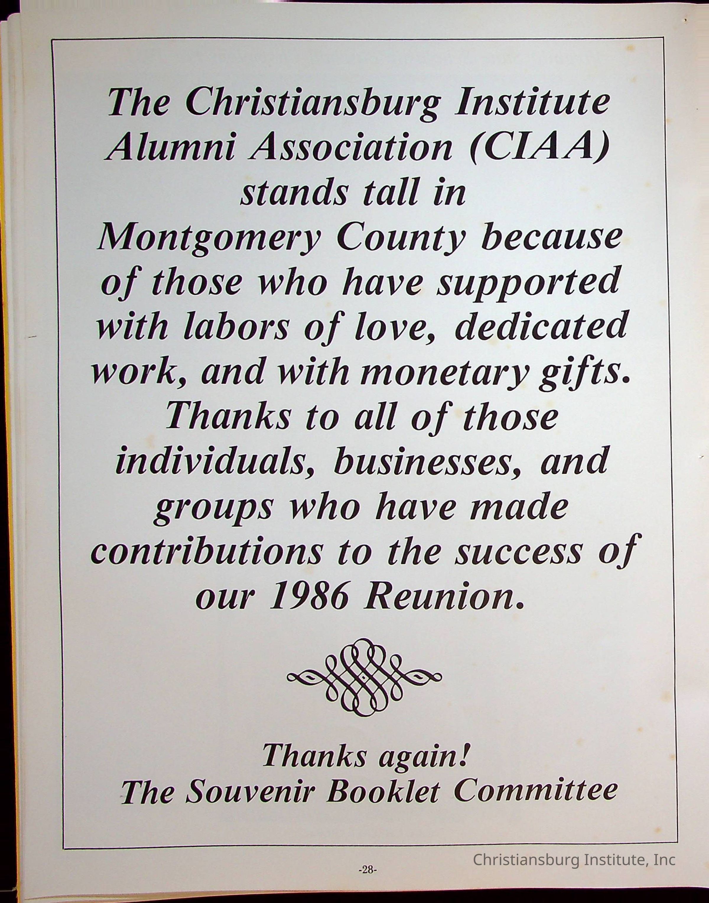 Fourth Reunion Booklet Christiansburg Institute, 1986Description