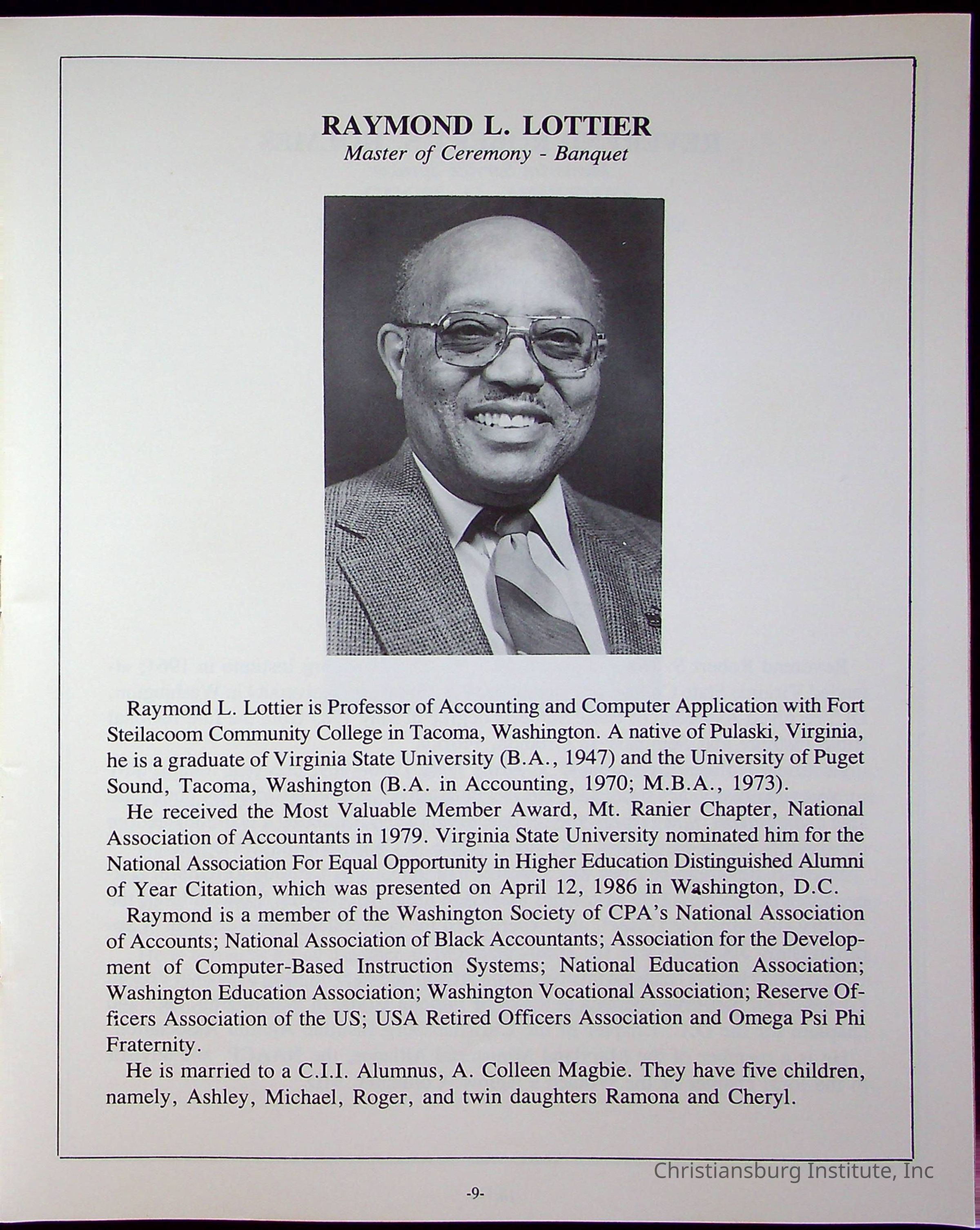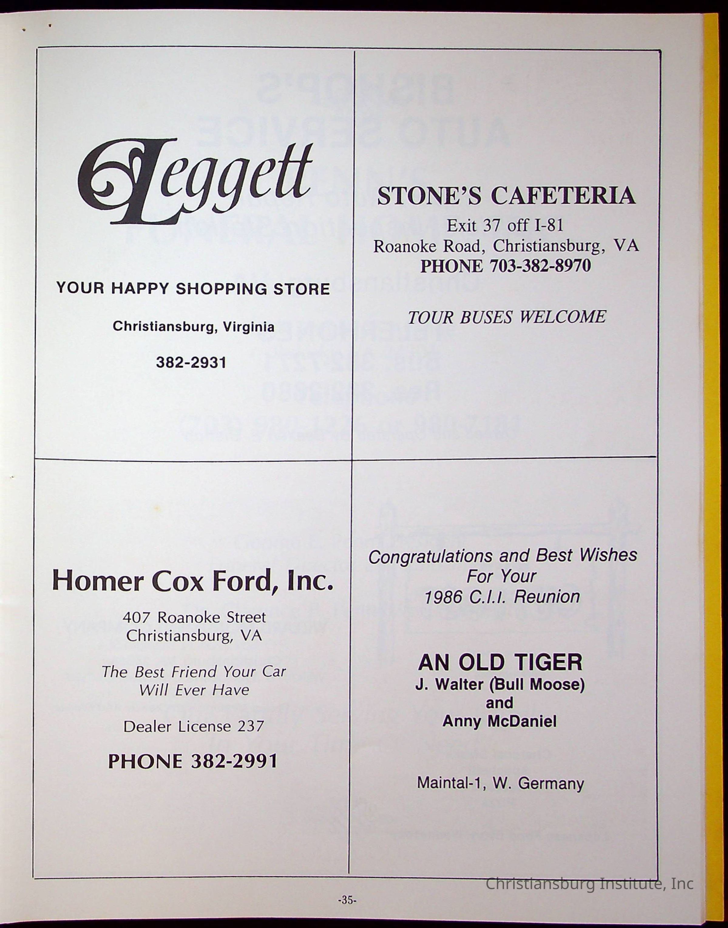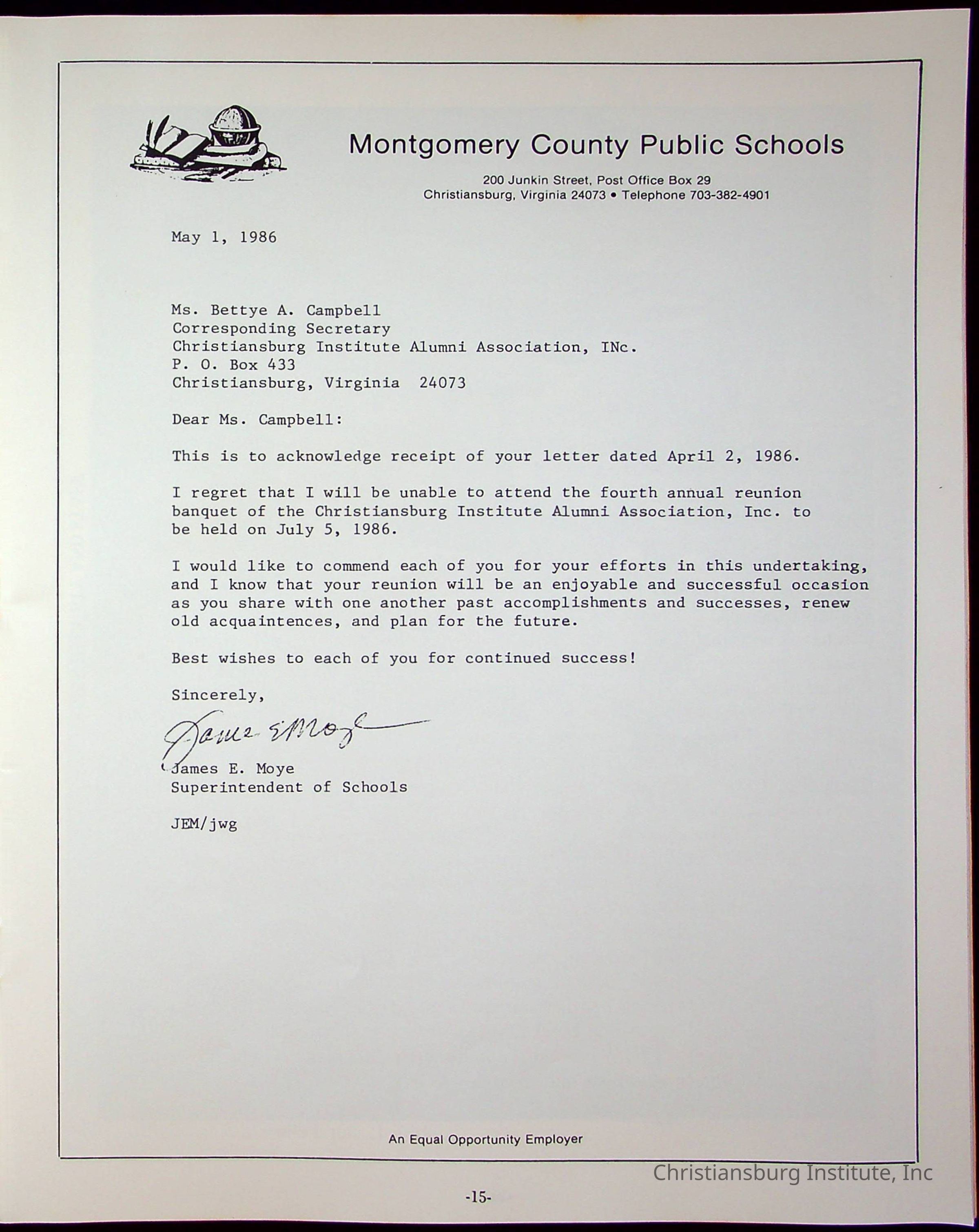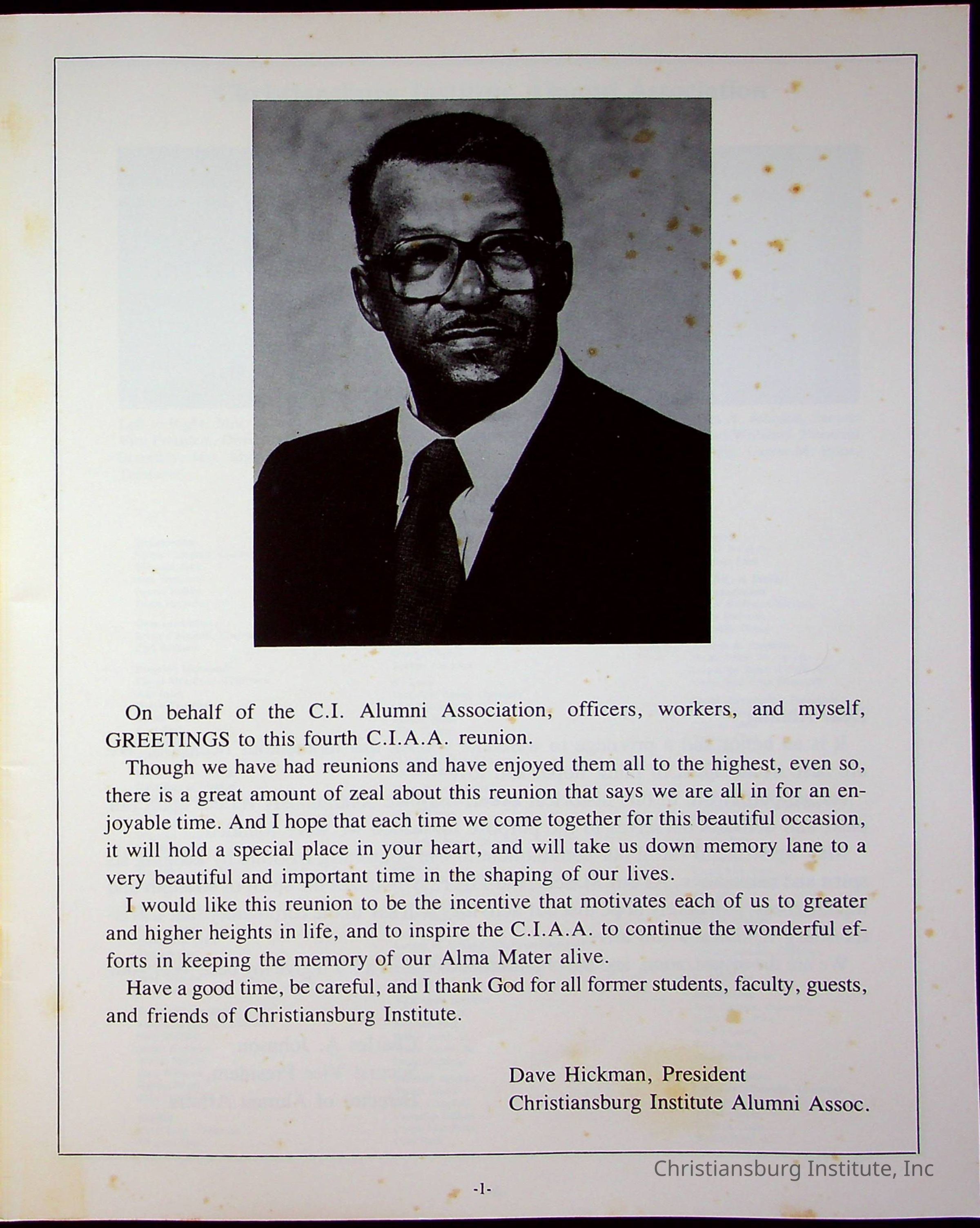 Fourth Reunion Booklet Christiansburg Institute, 1986Description