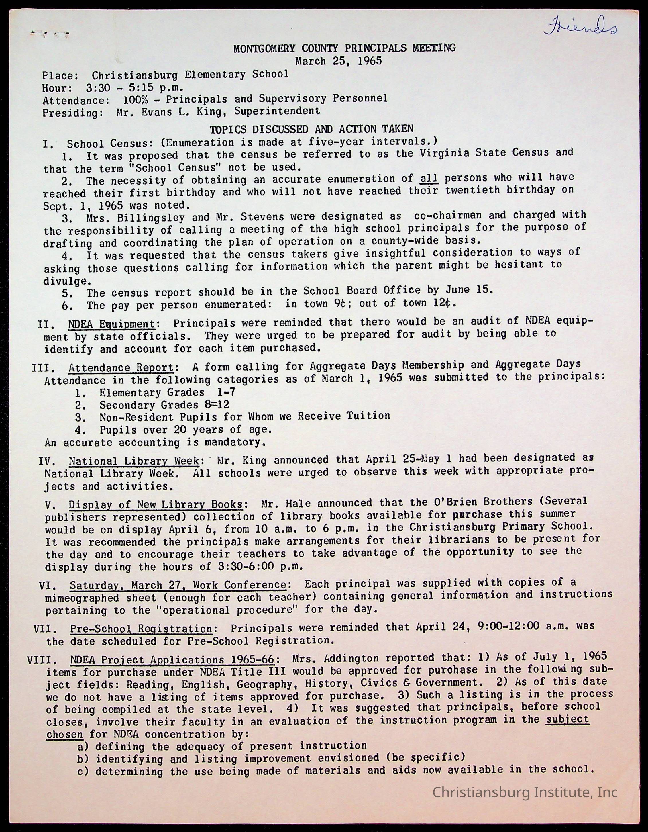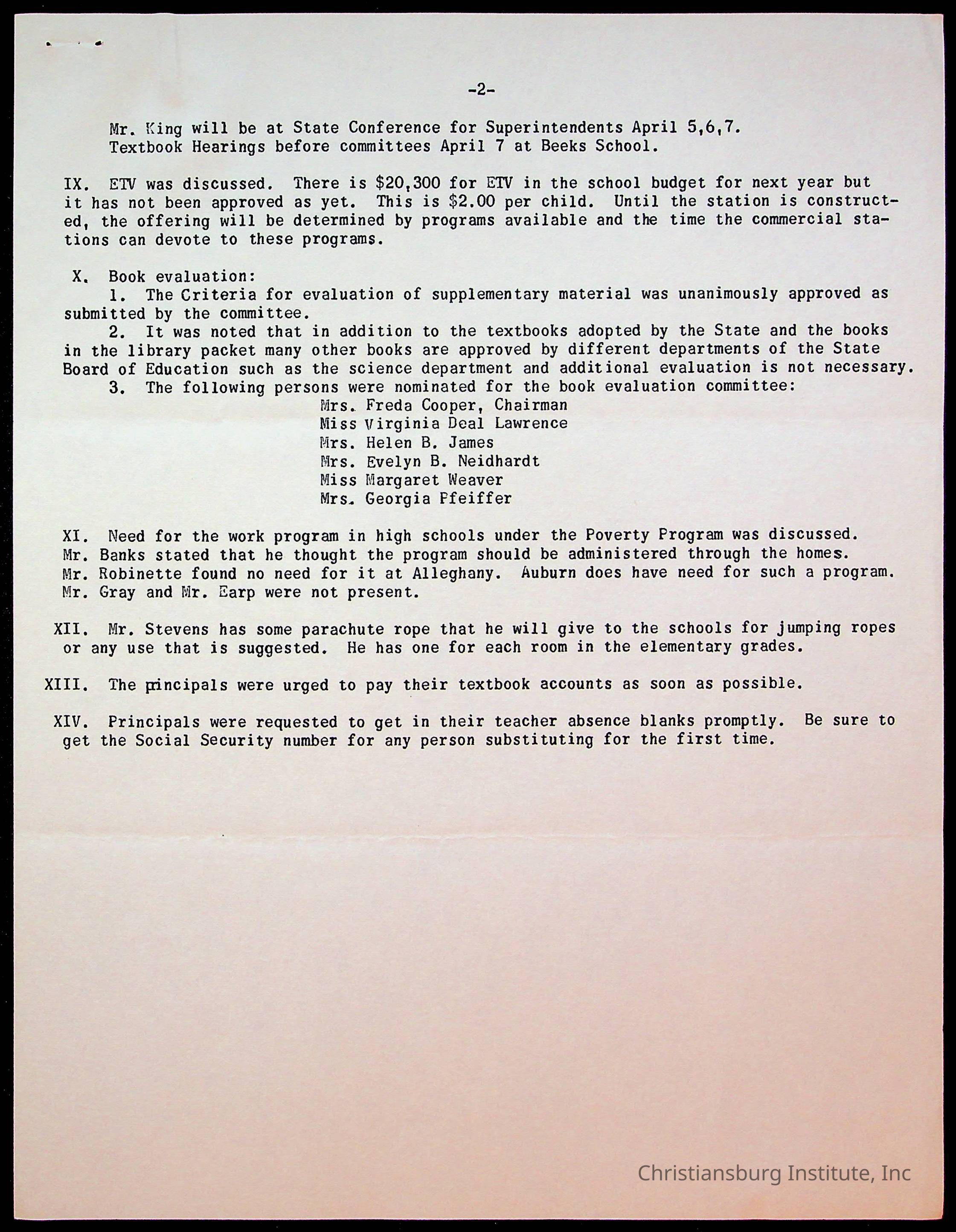 Copyright has been assigned to Christiansburg Institute Museum & Archives by Montgomery County Public Schools. For permission to publish materials created by the donor, contact CIMA@christiansburginstitute.com. Materials not created by Christiansburg Industrial Institute may still be under copyright.