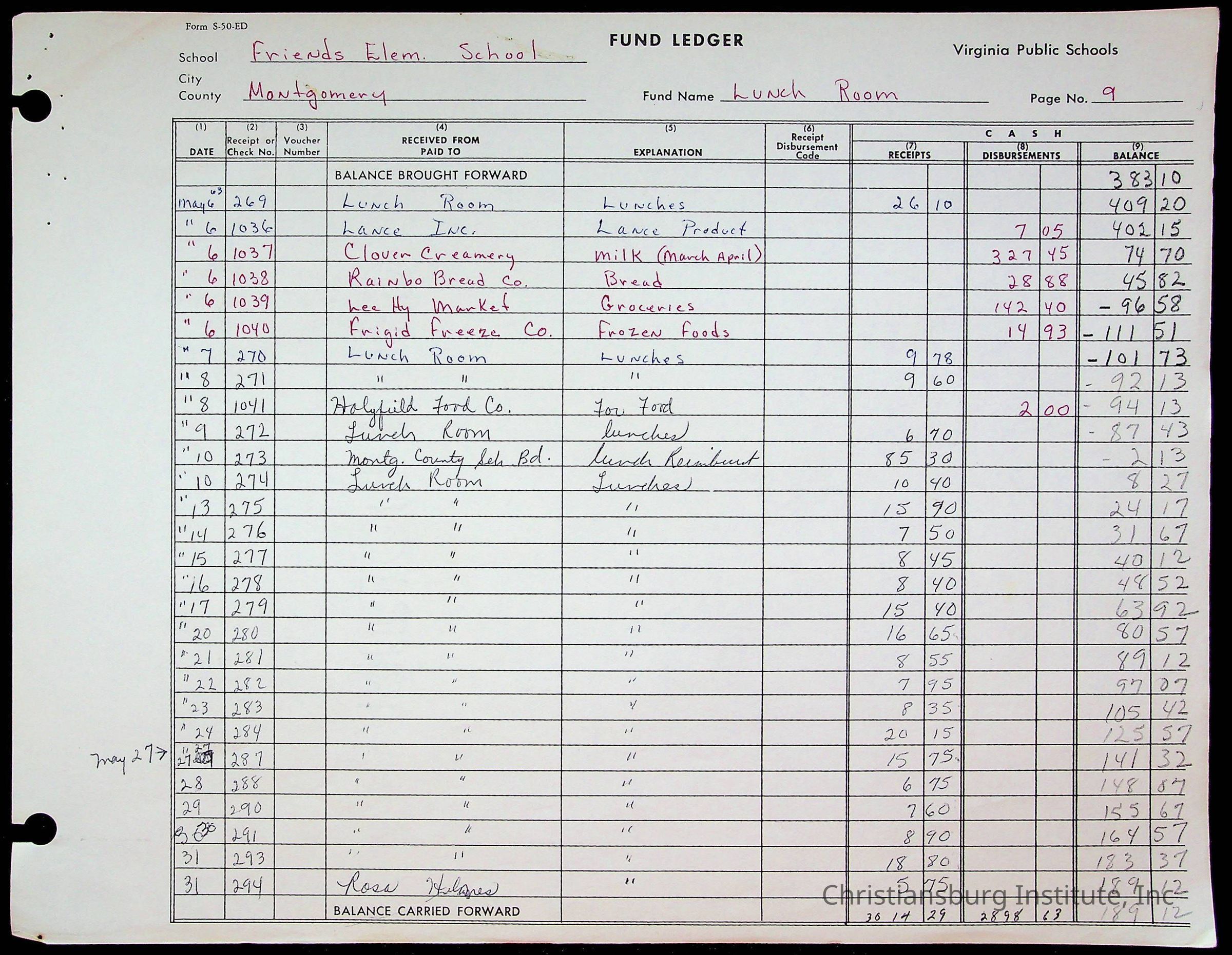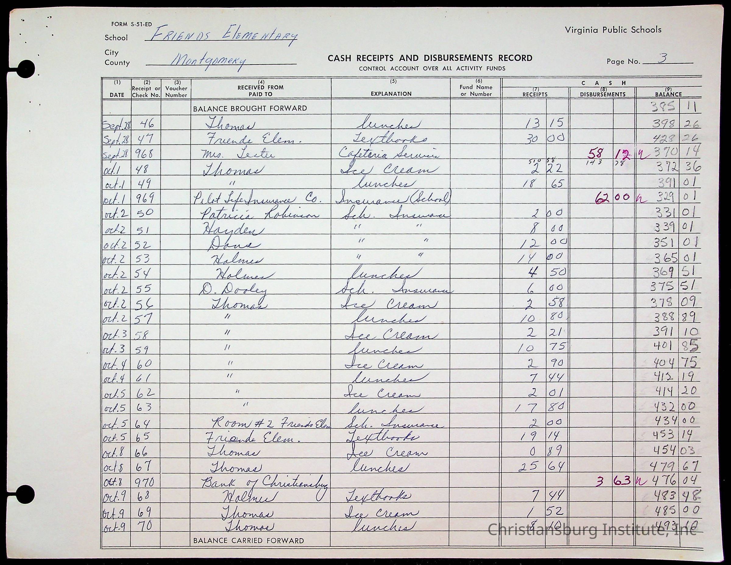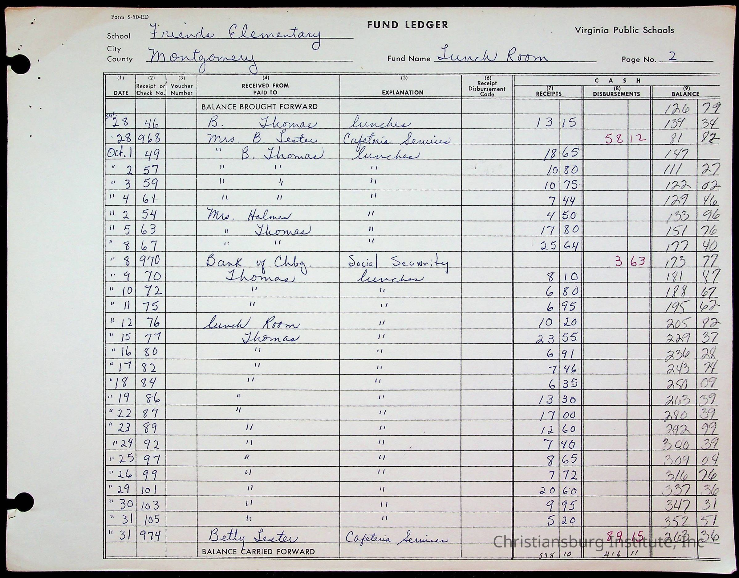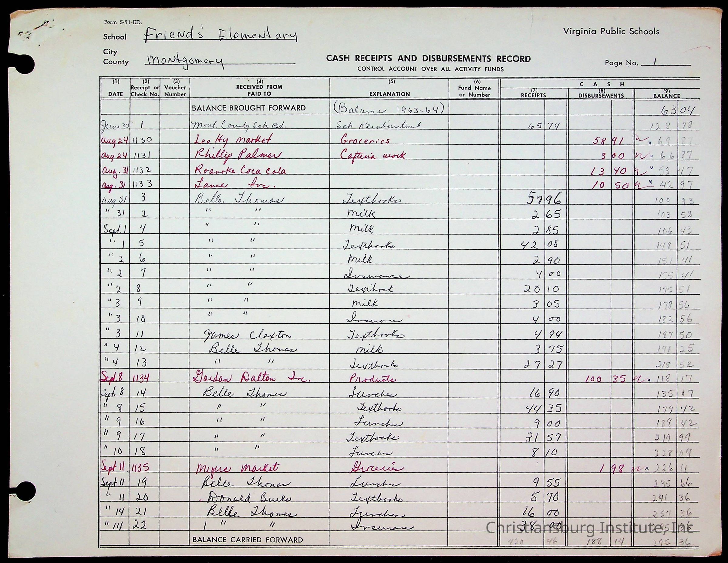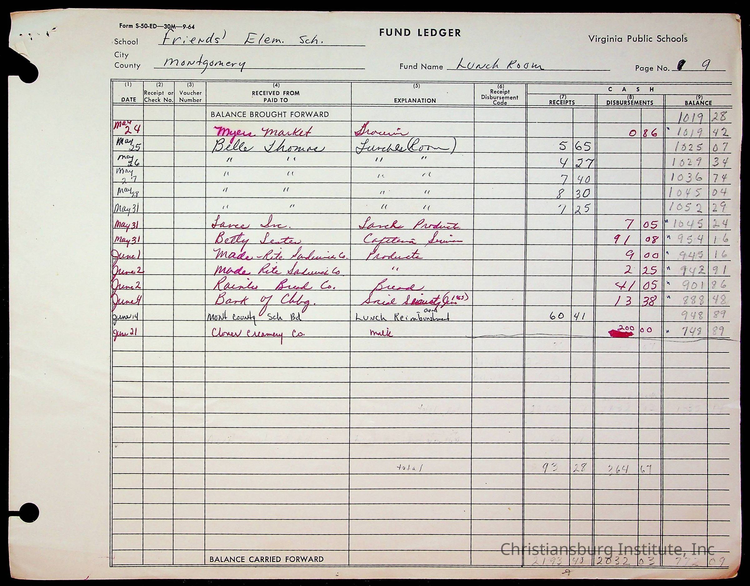 A fund ledger that recorded expenses from Friends Elementary School from 1962-1963.Collection