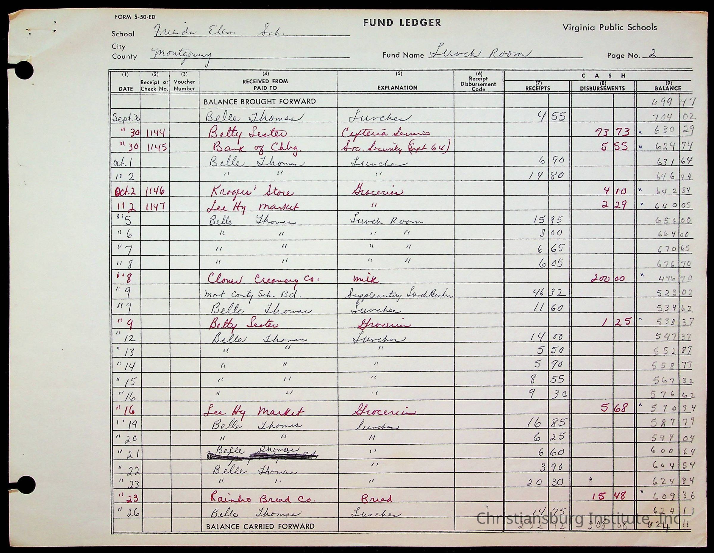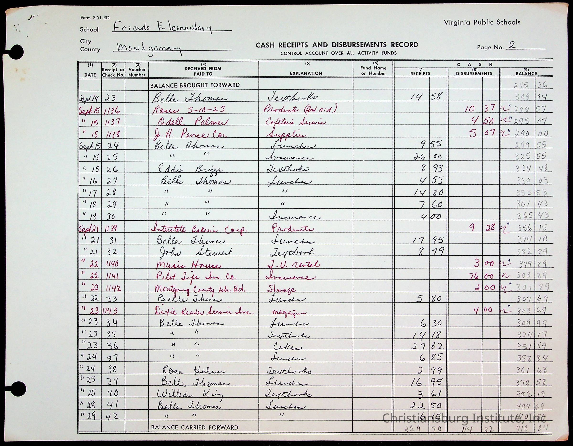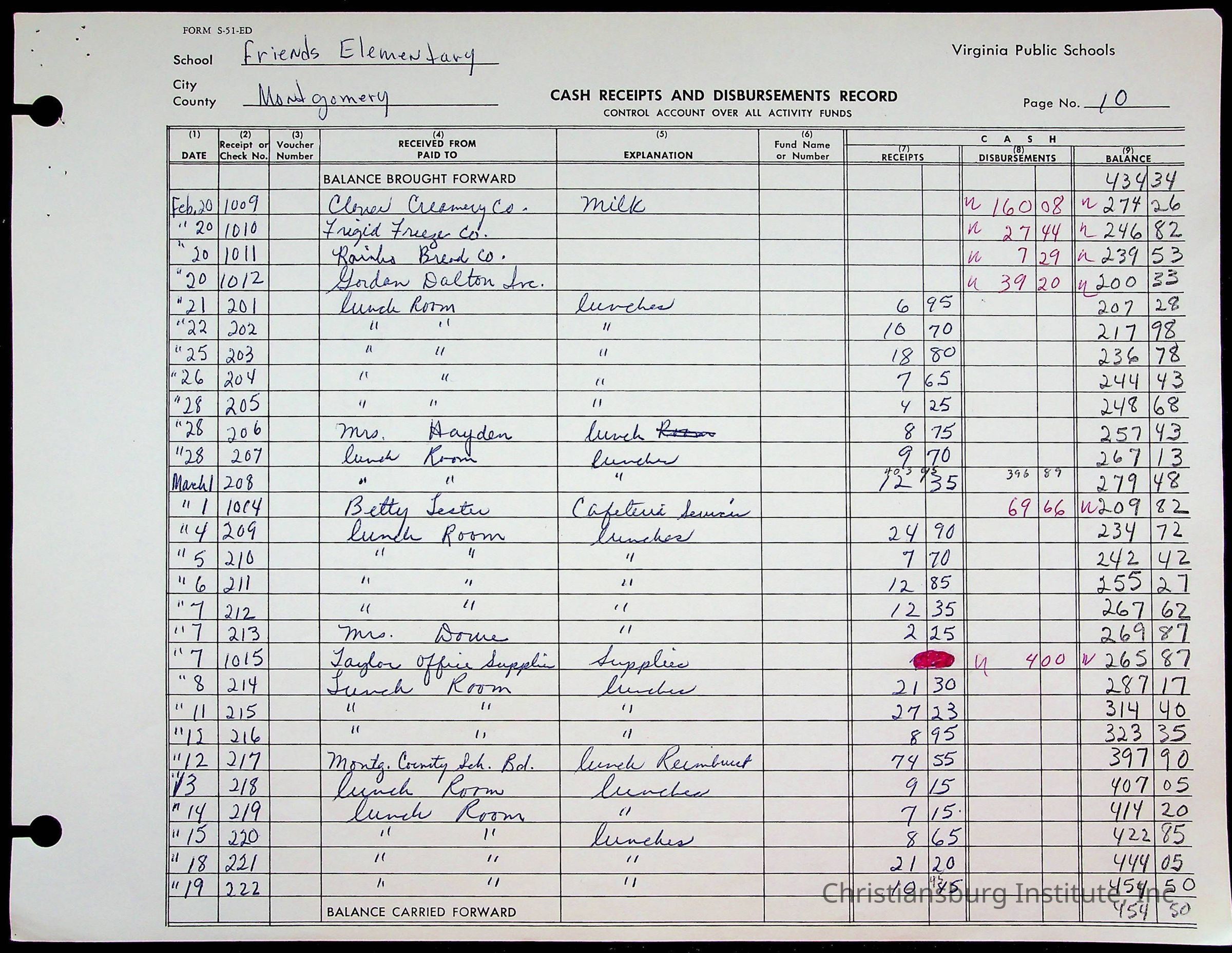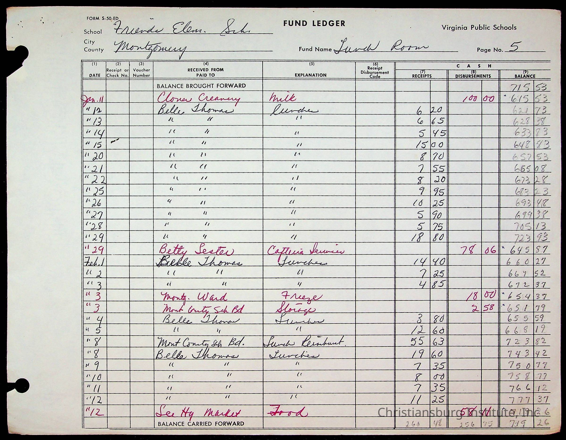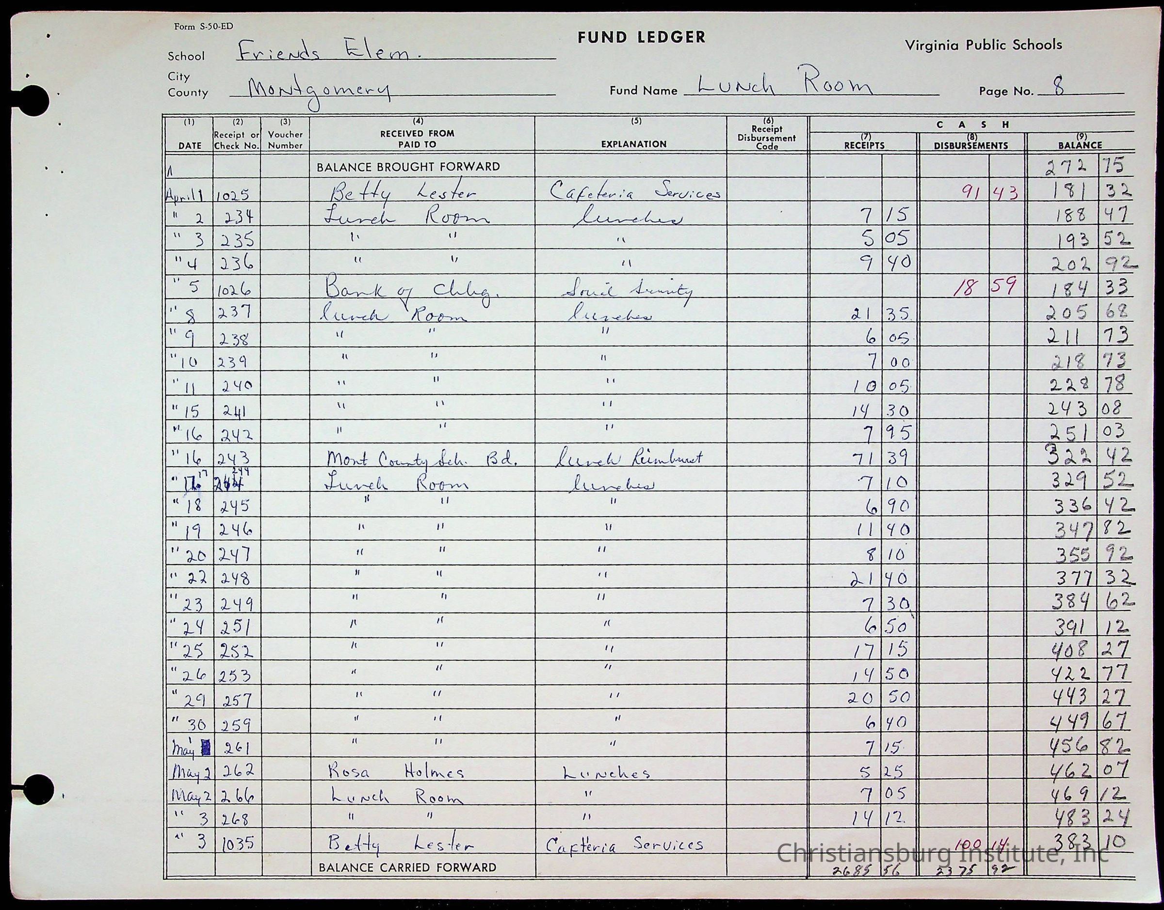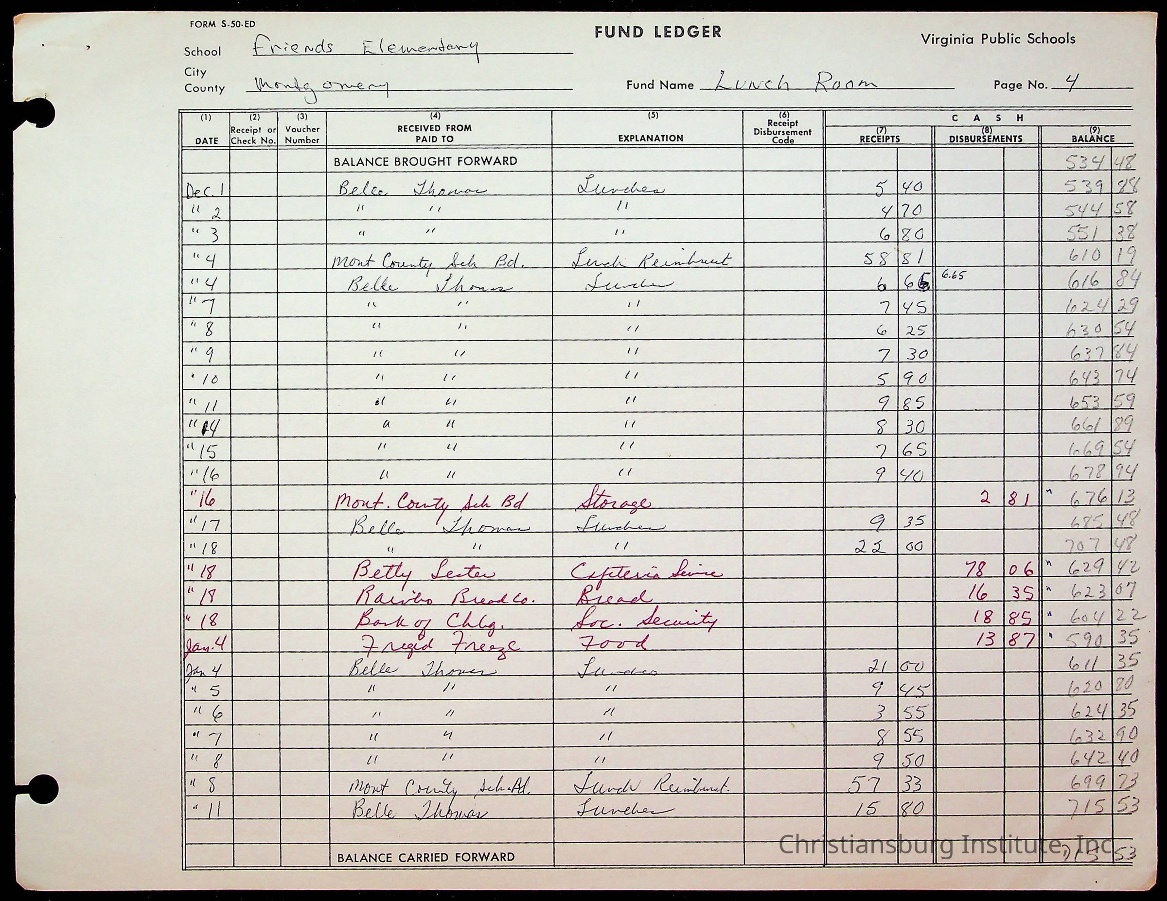 A fund ledger that recorded expenses from Friends Elementary School from 1962-1963.Collection
