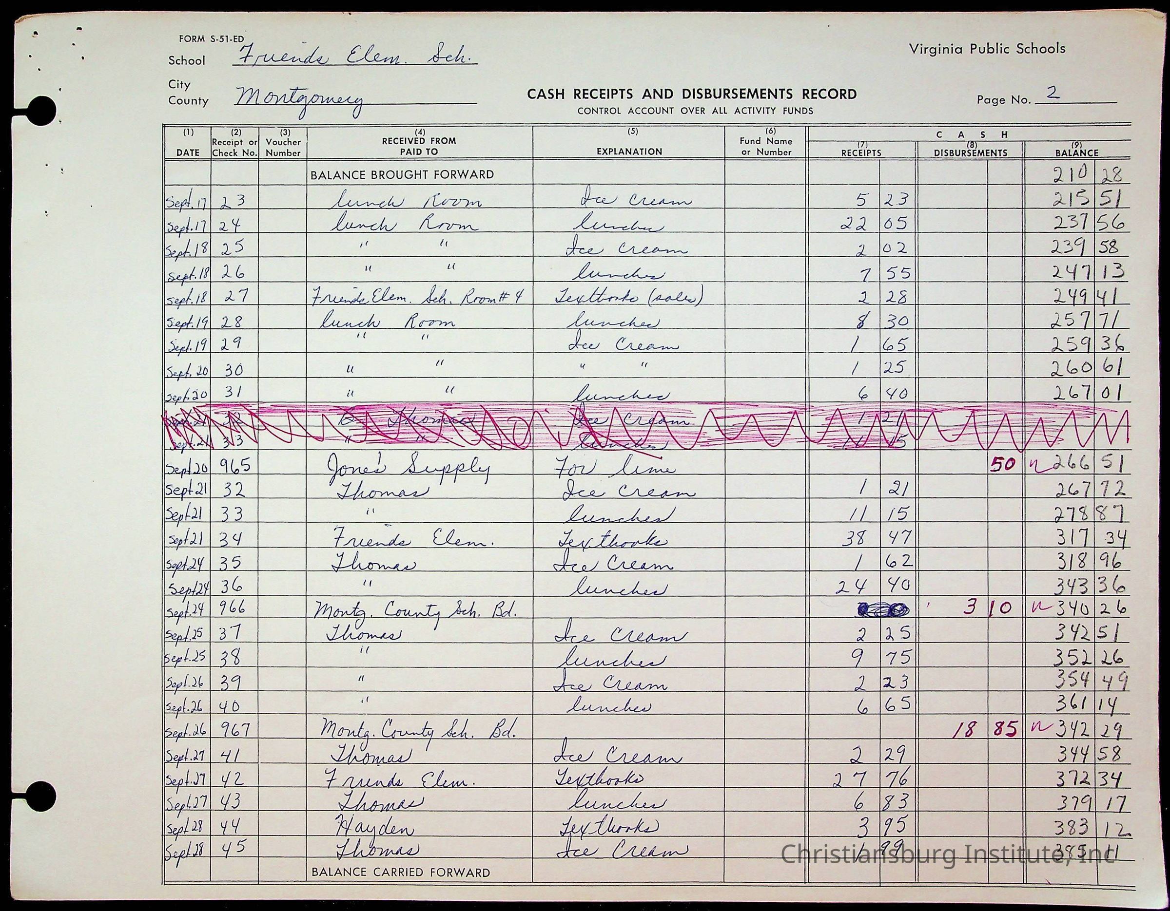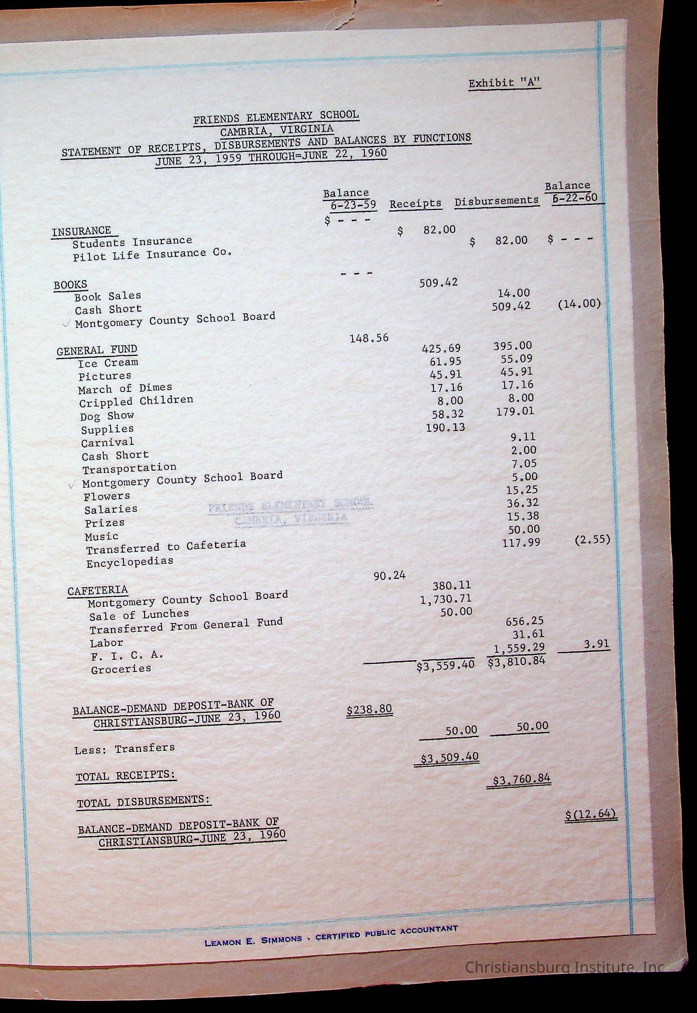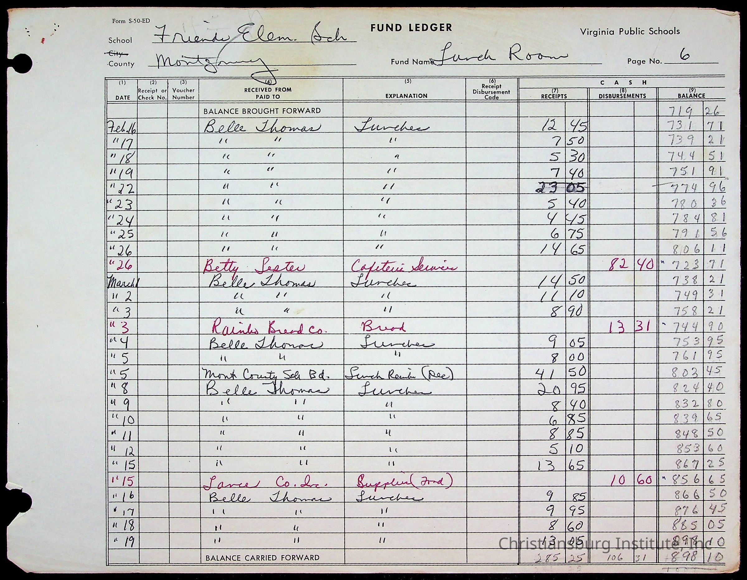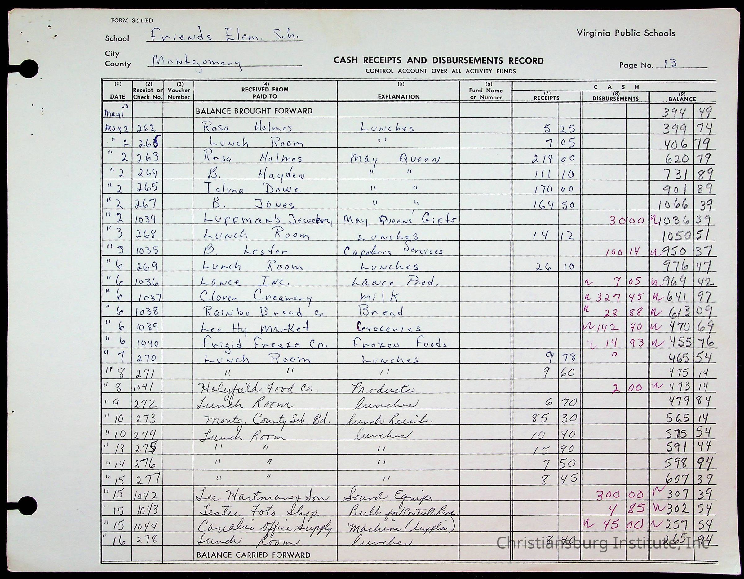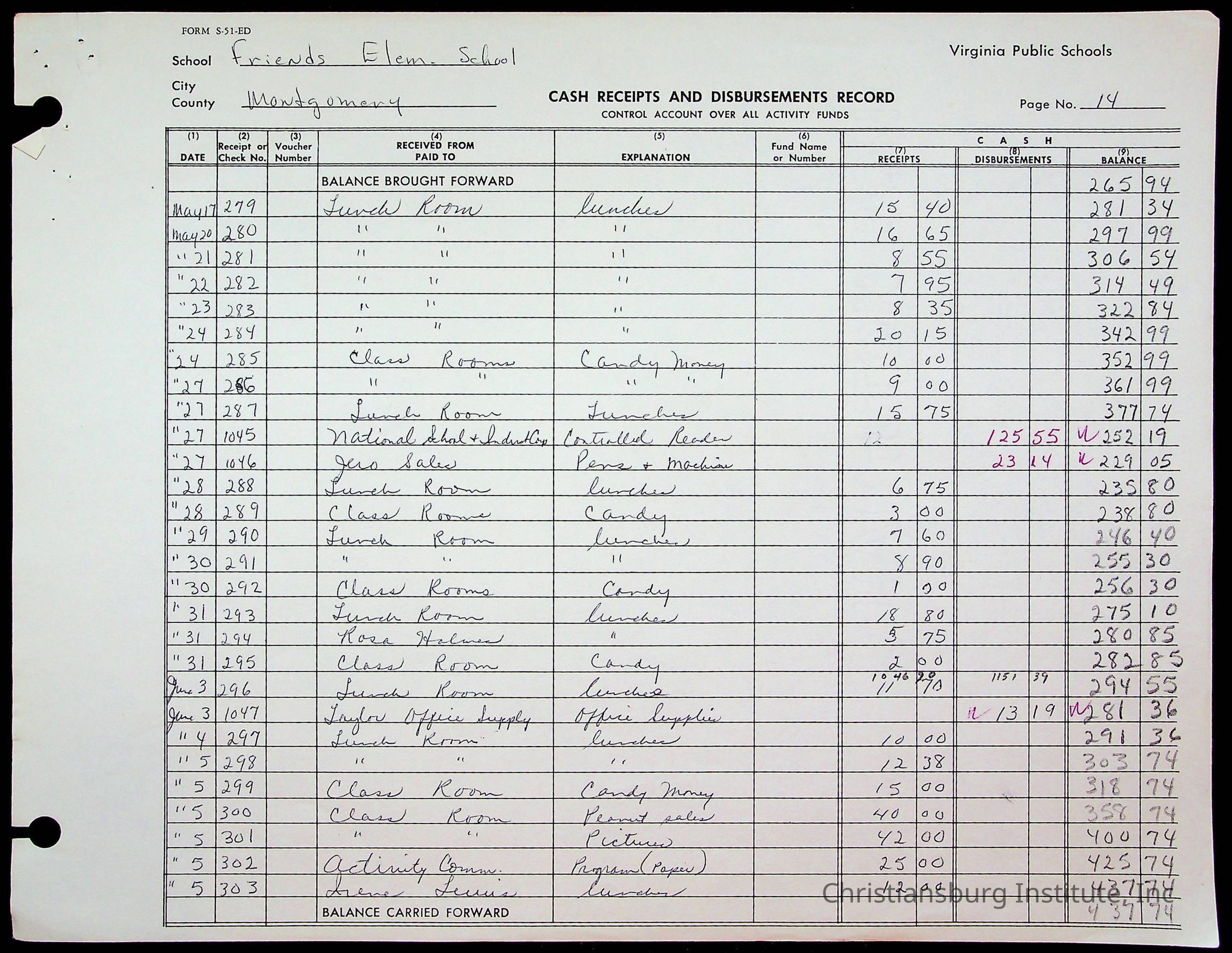 A fund ledger that recorded expenses from Friends Elementary School from 1962-1963.Collection