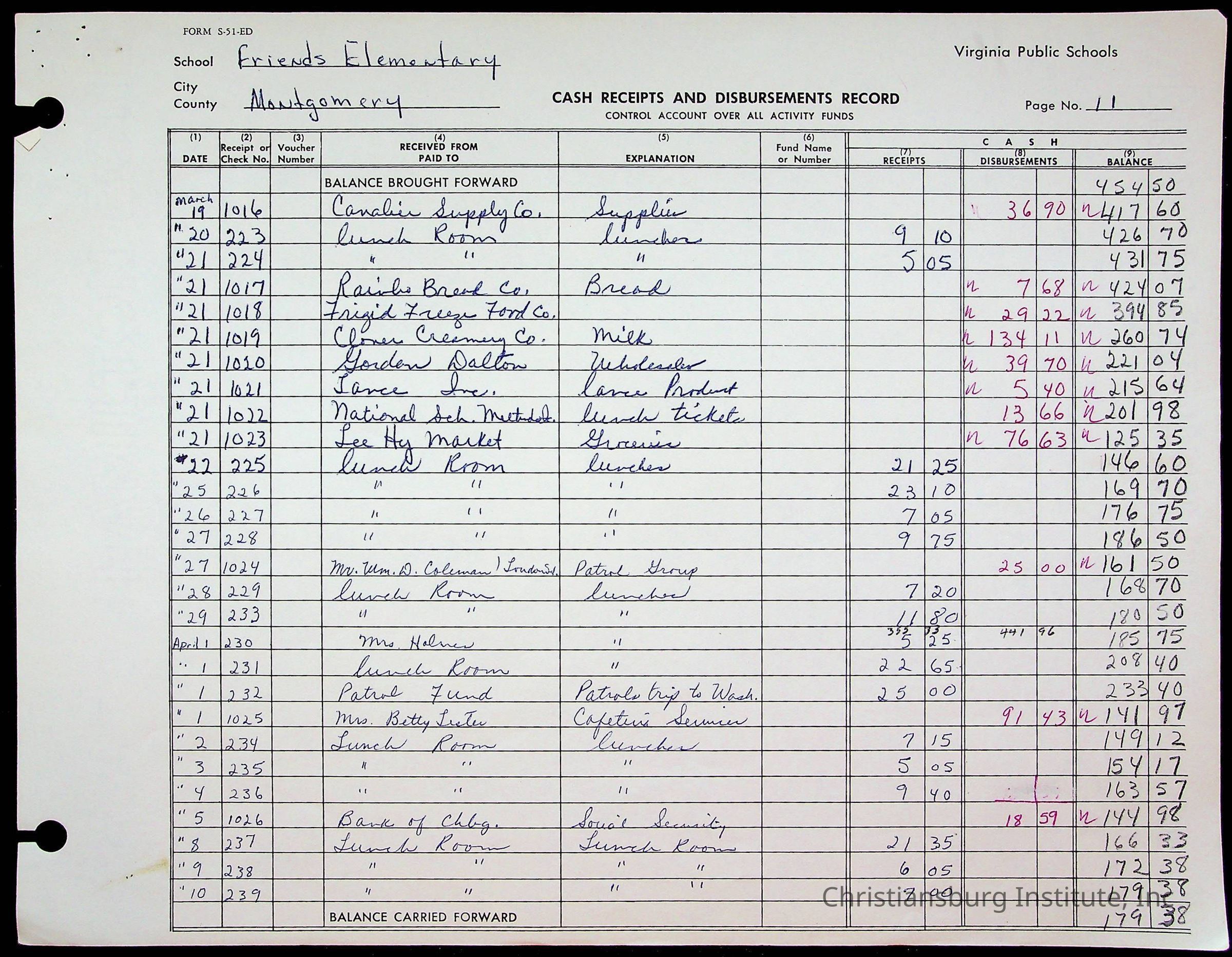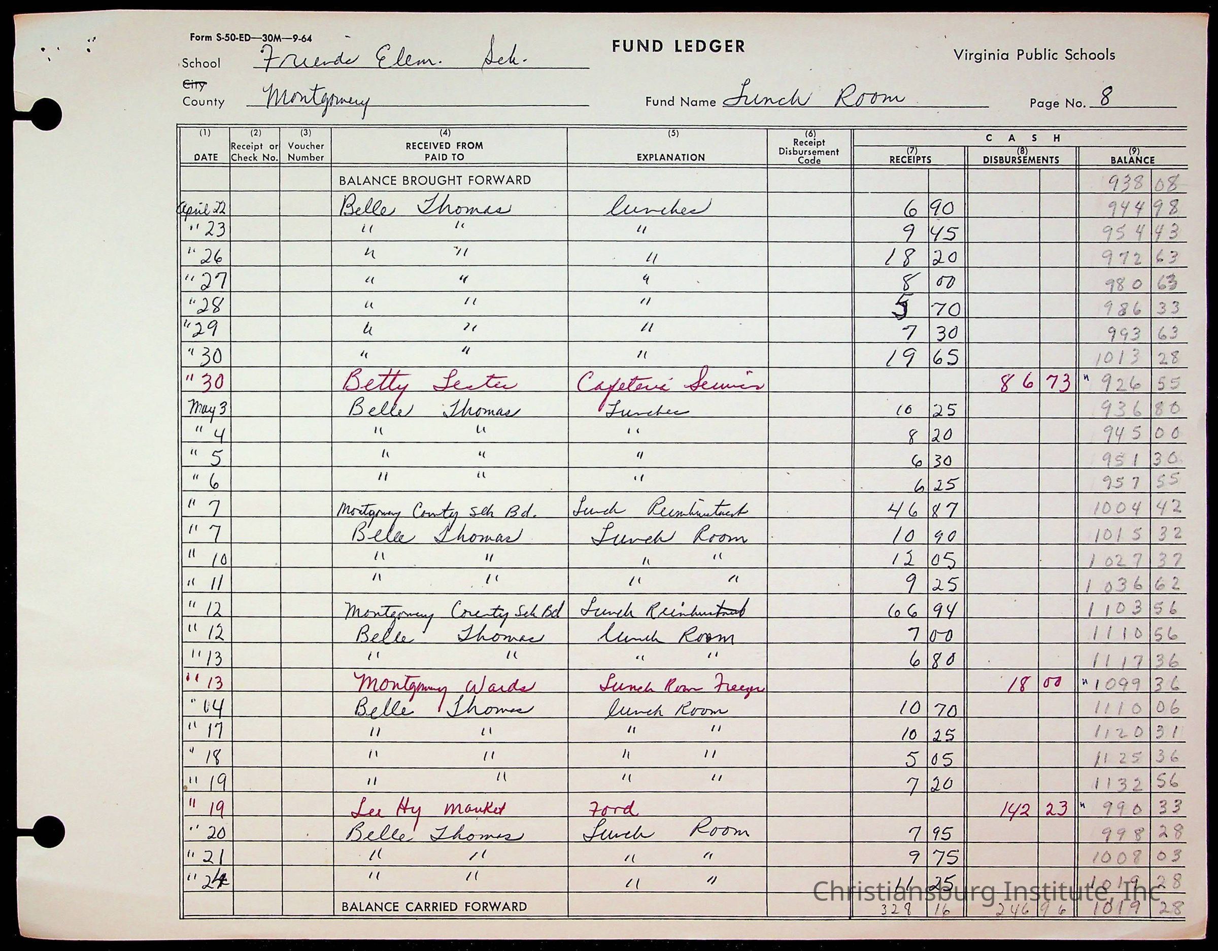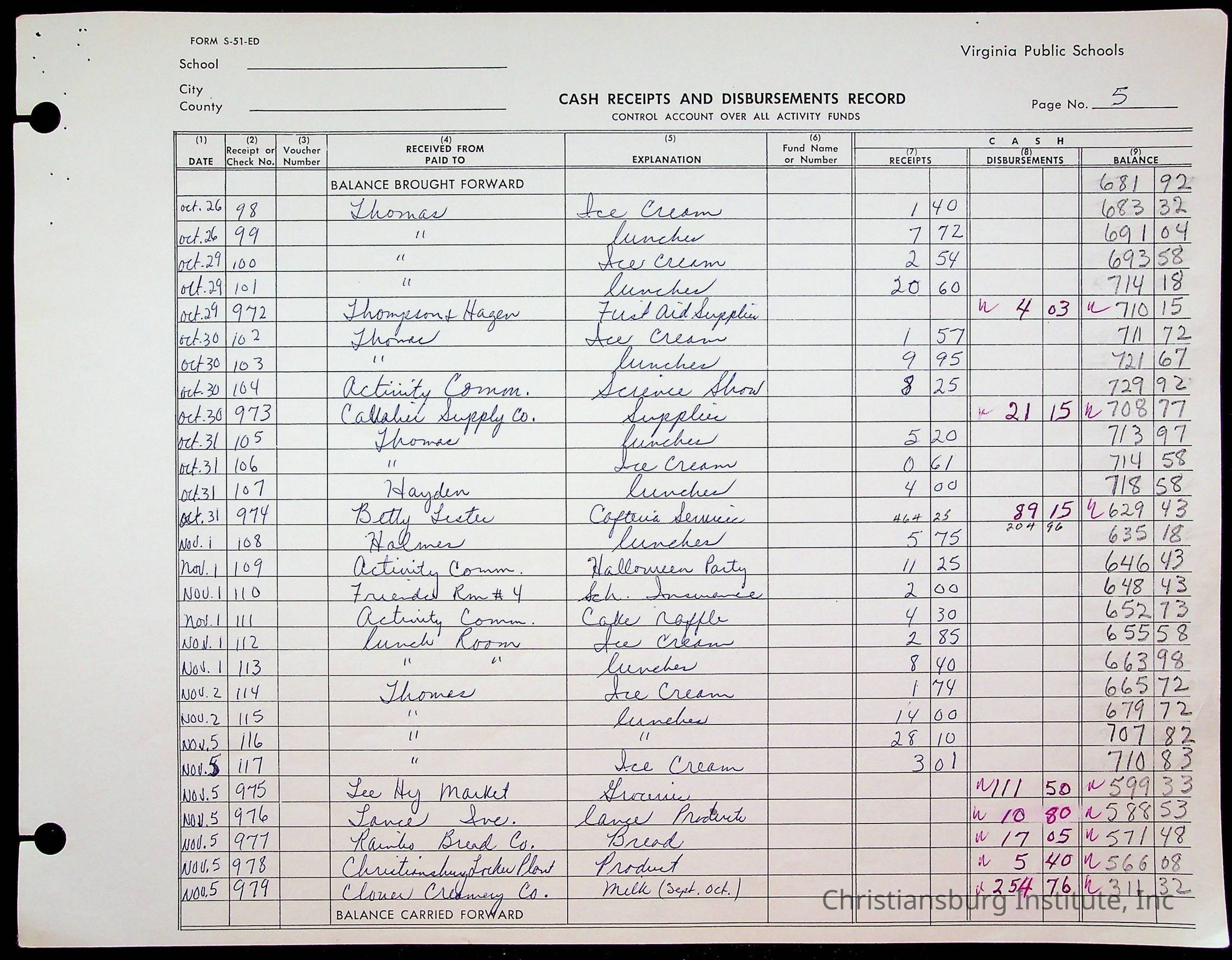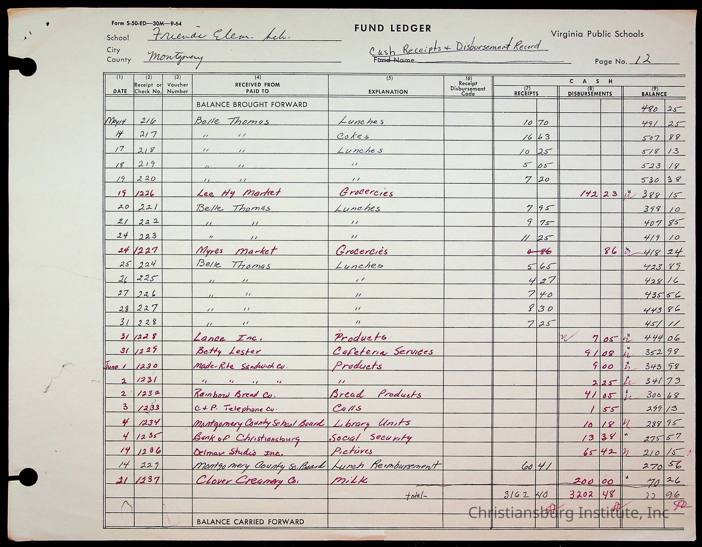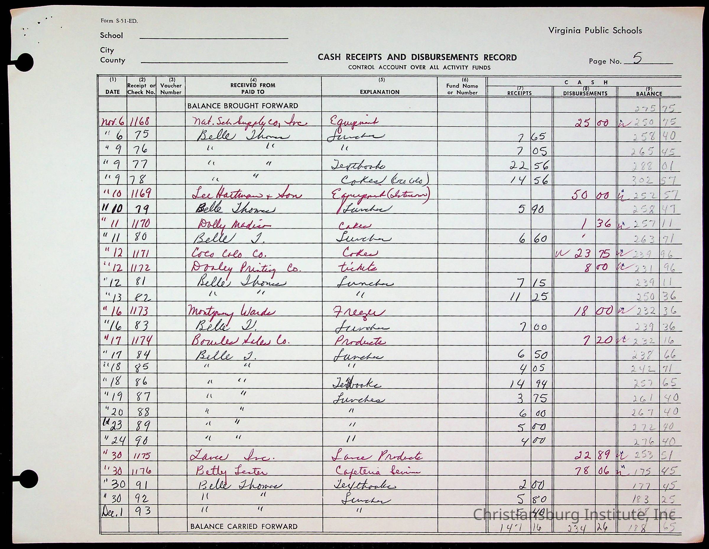 A fund ledger that recorded expenses from Friends Elementary School from 1962-1963.Collection