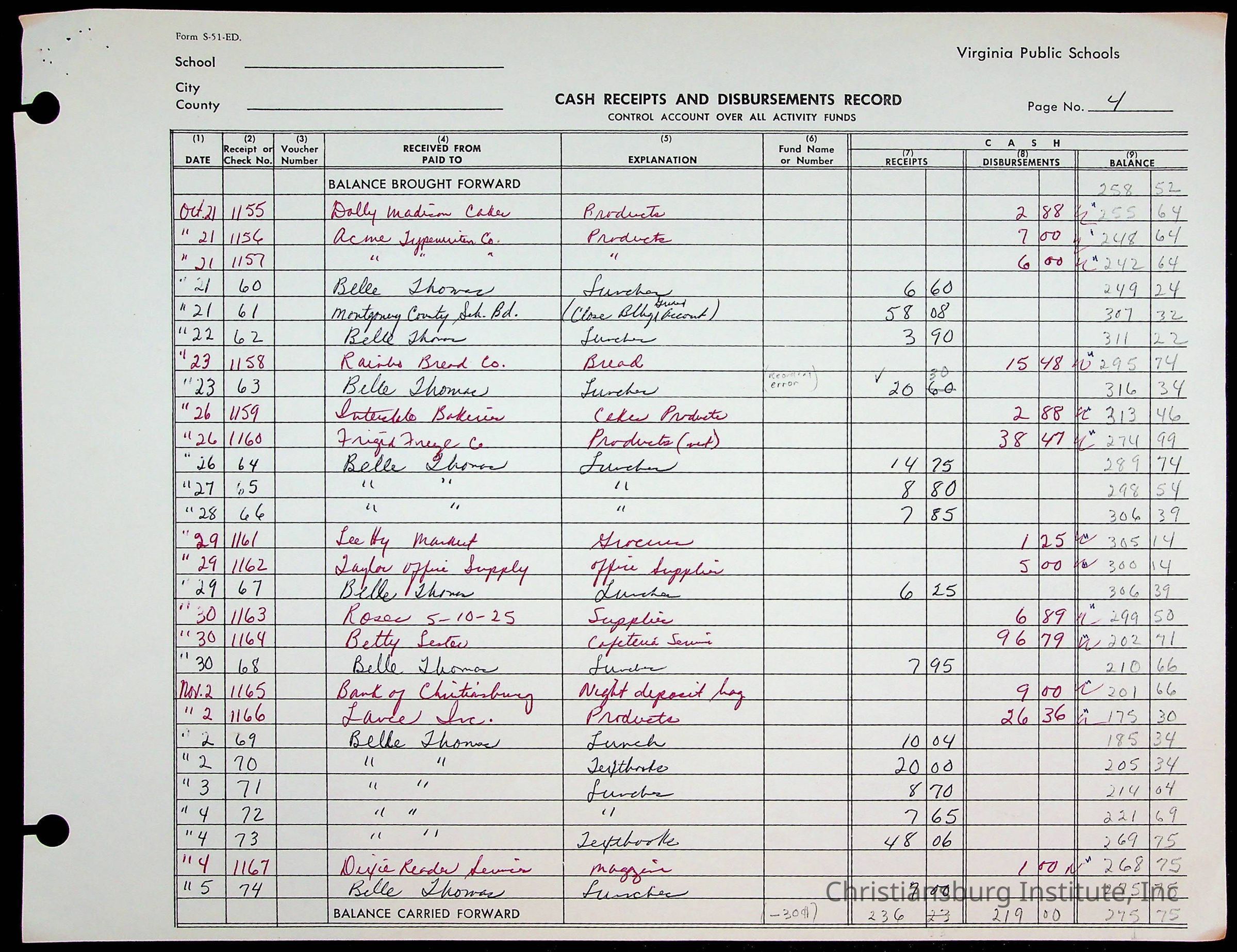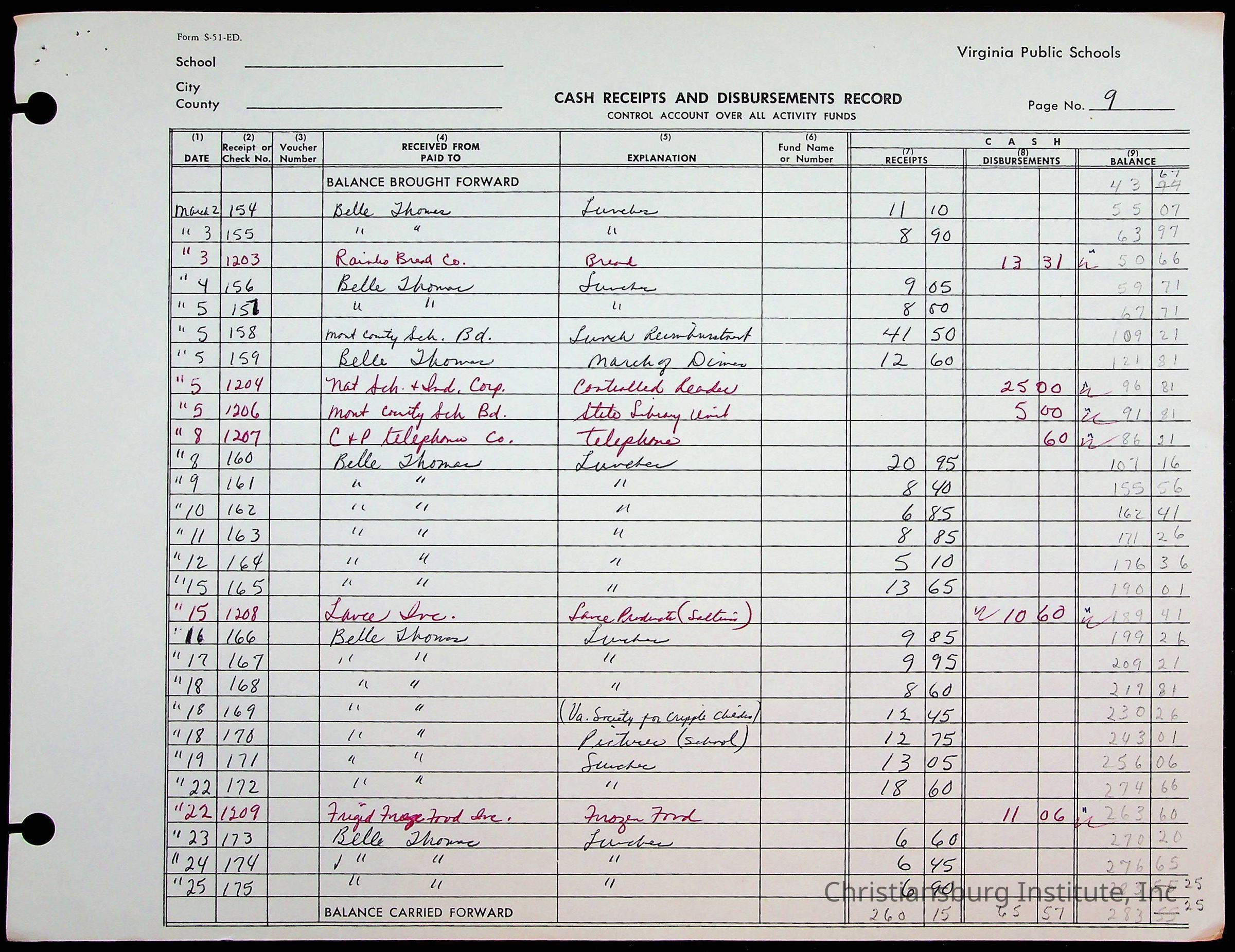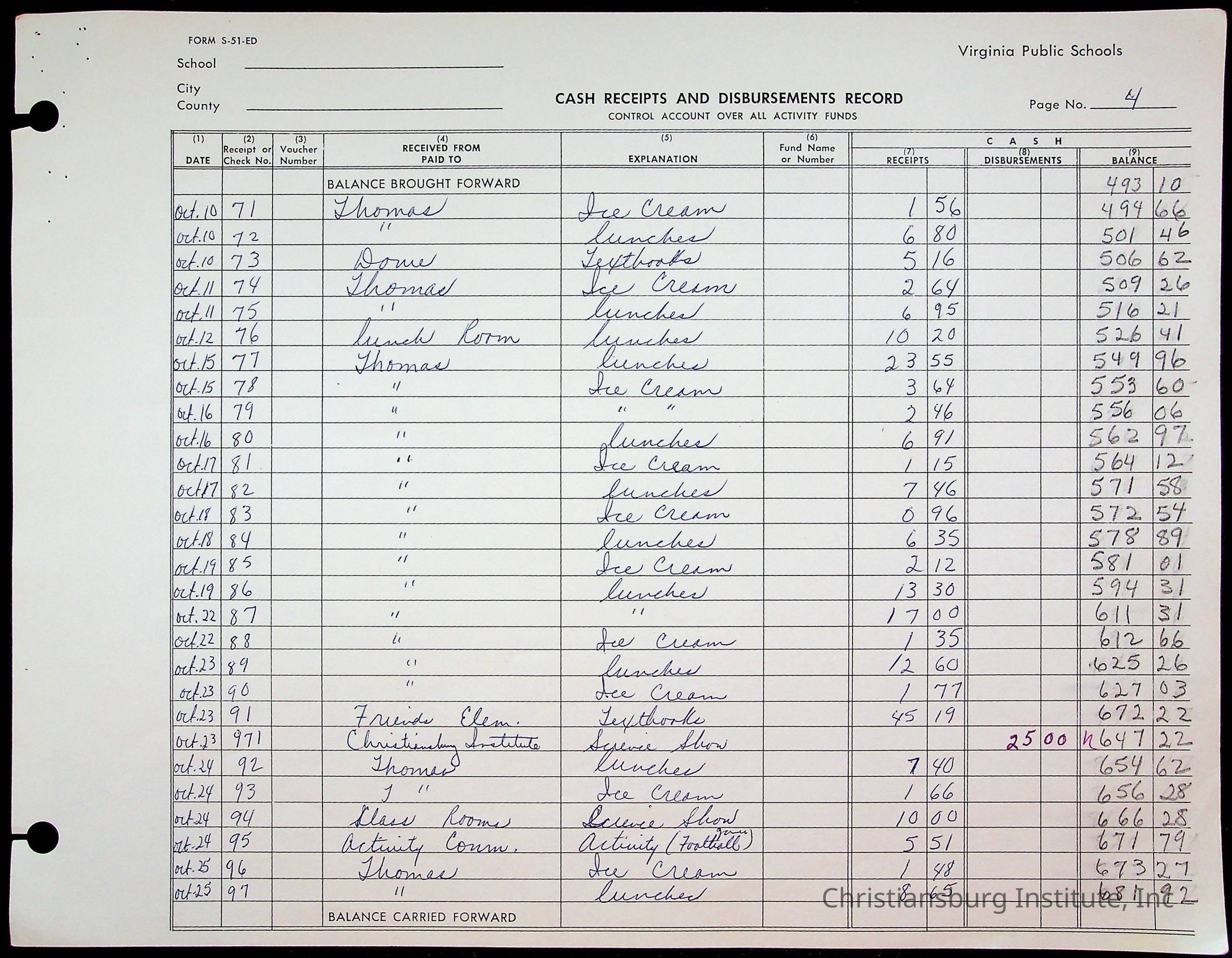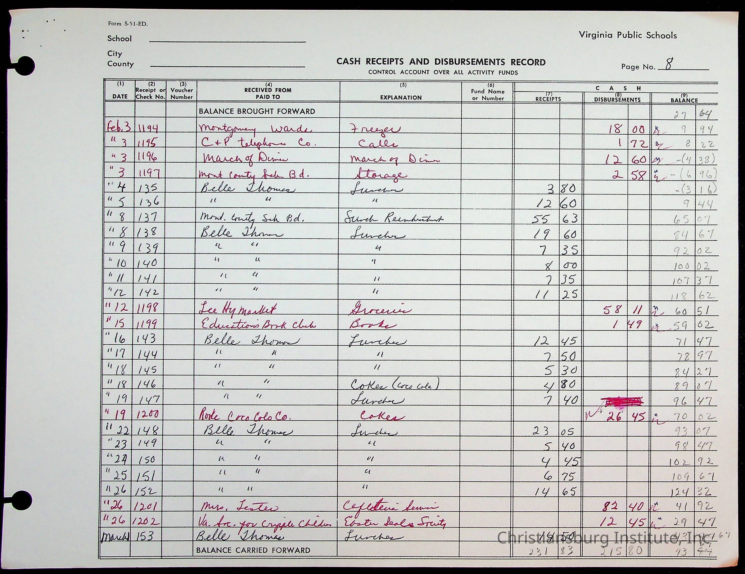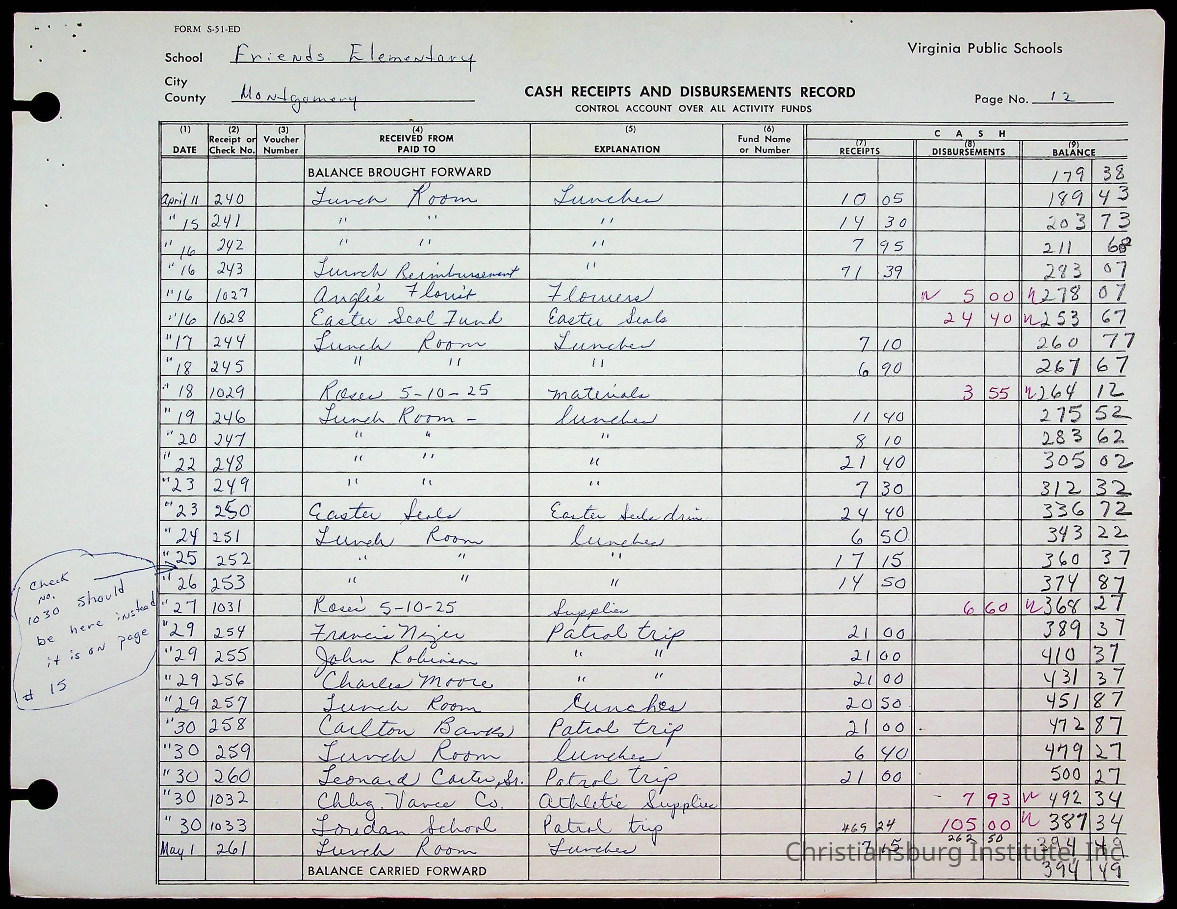 A fund ledger that recorded expenses from Friends Elementary School from 1962-1963.Collection