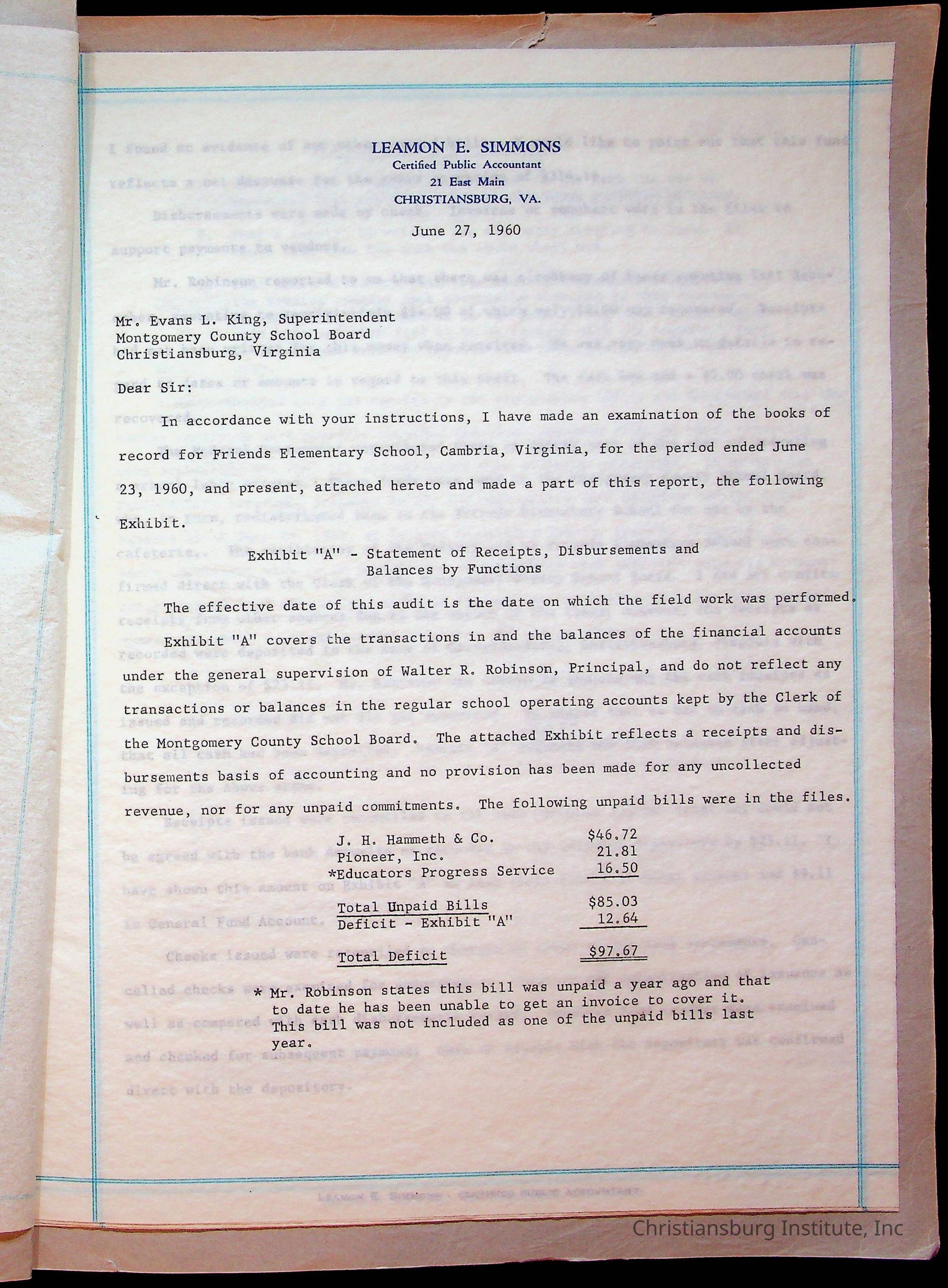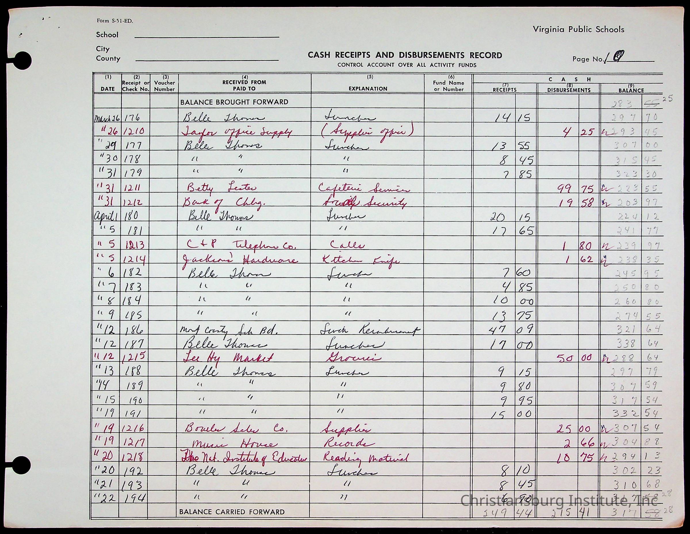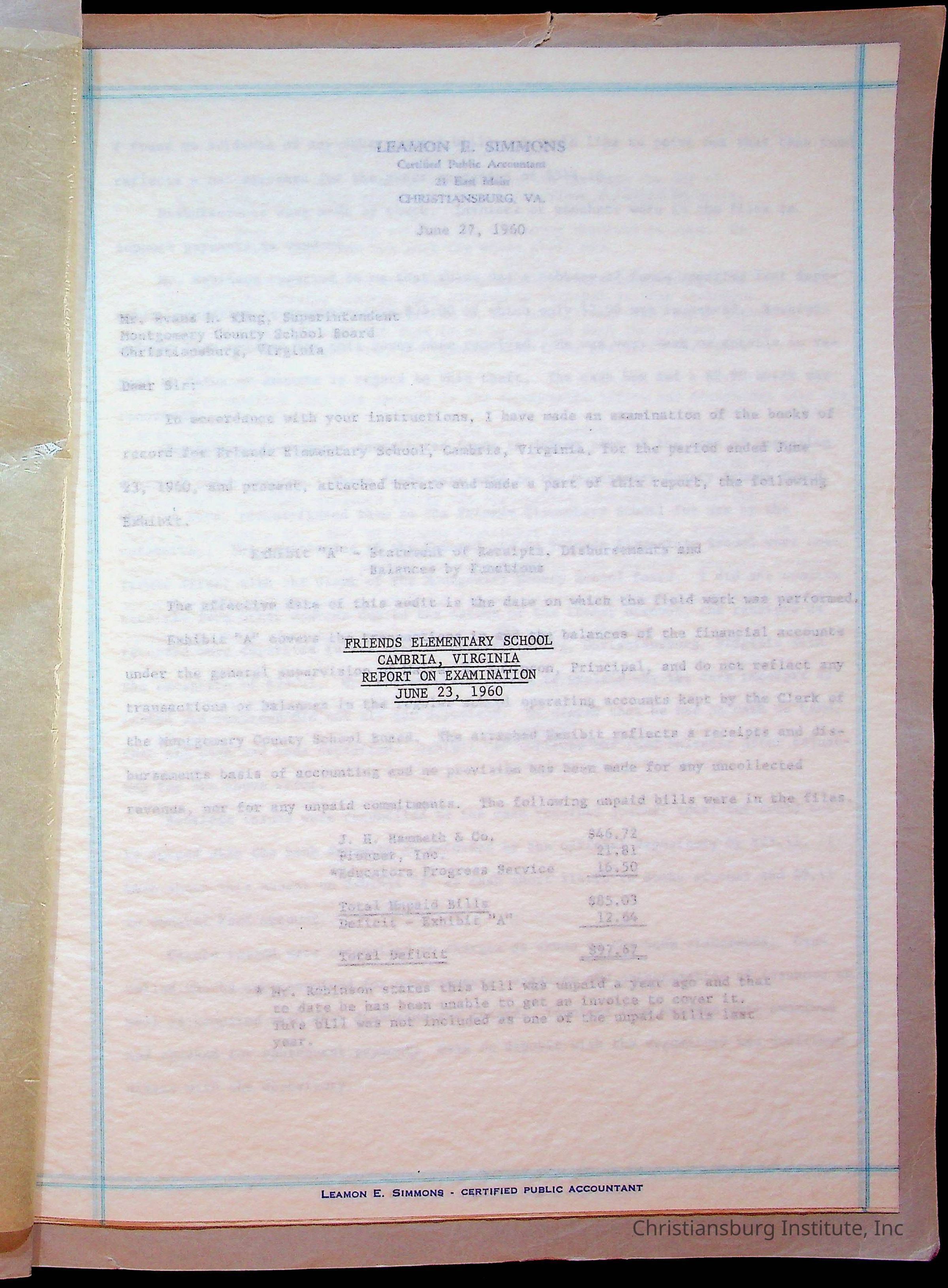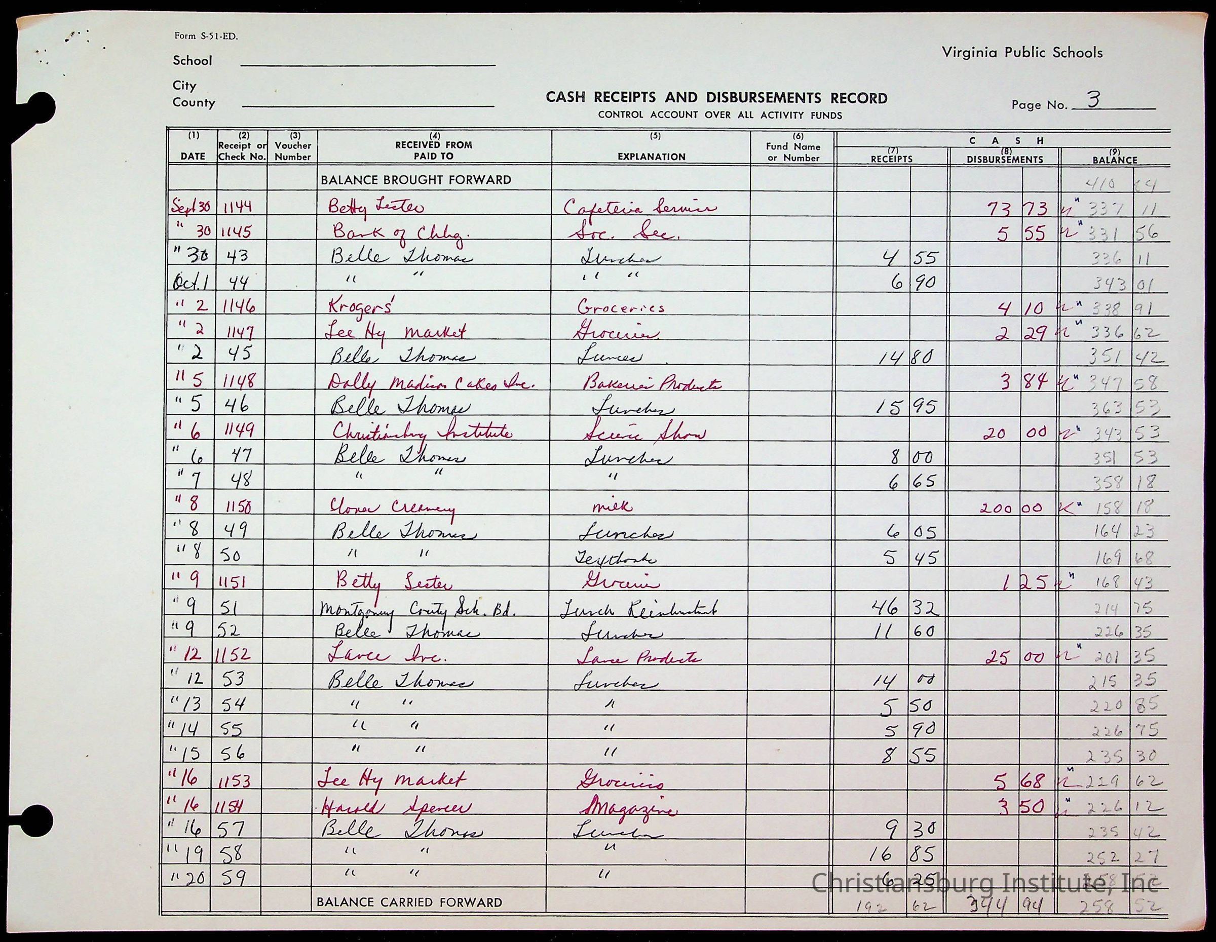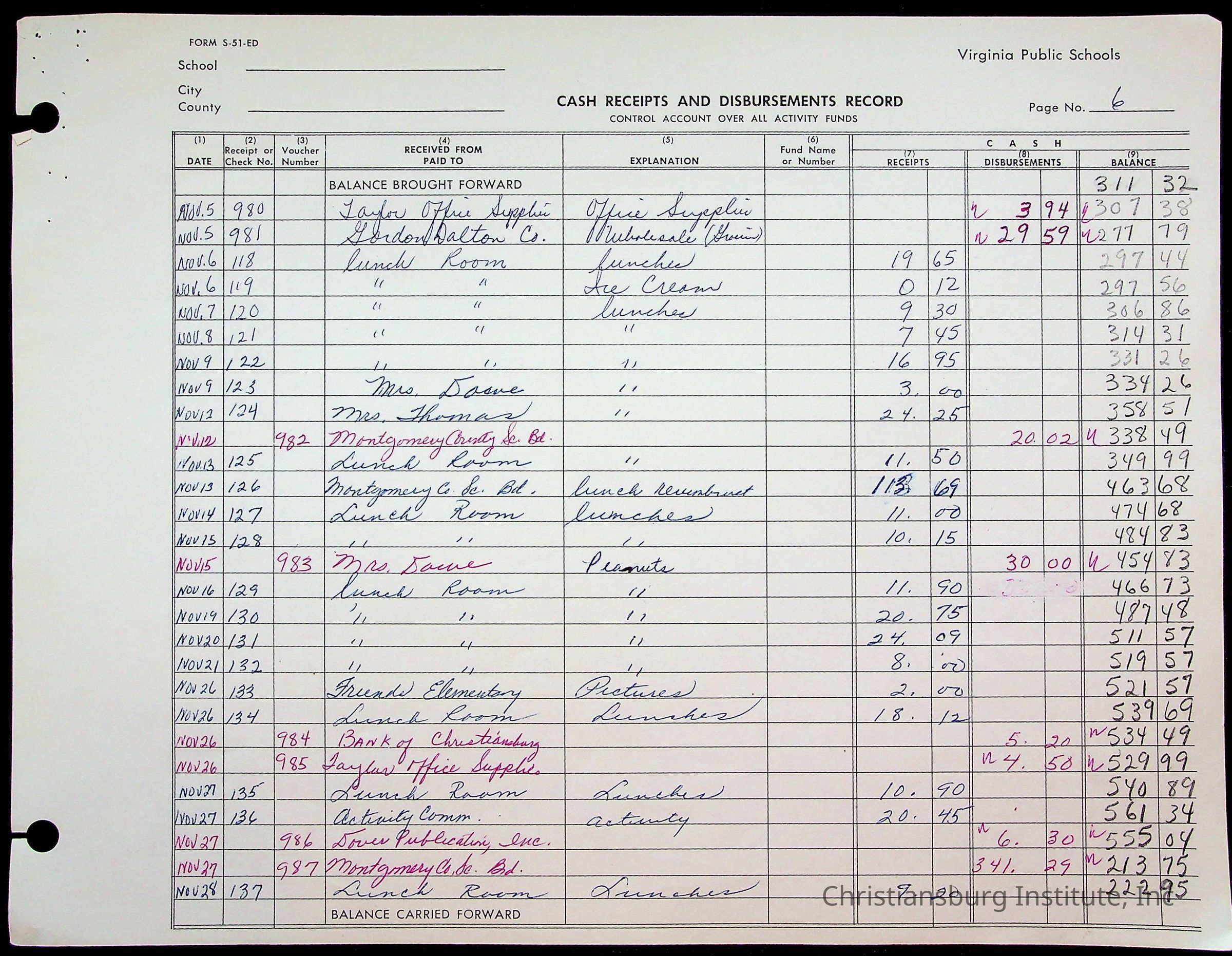 A fund ledger that recorded expenses from Friends Elementary School from 1962-1963.Collection