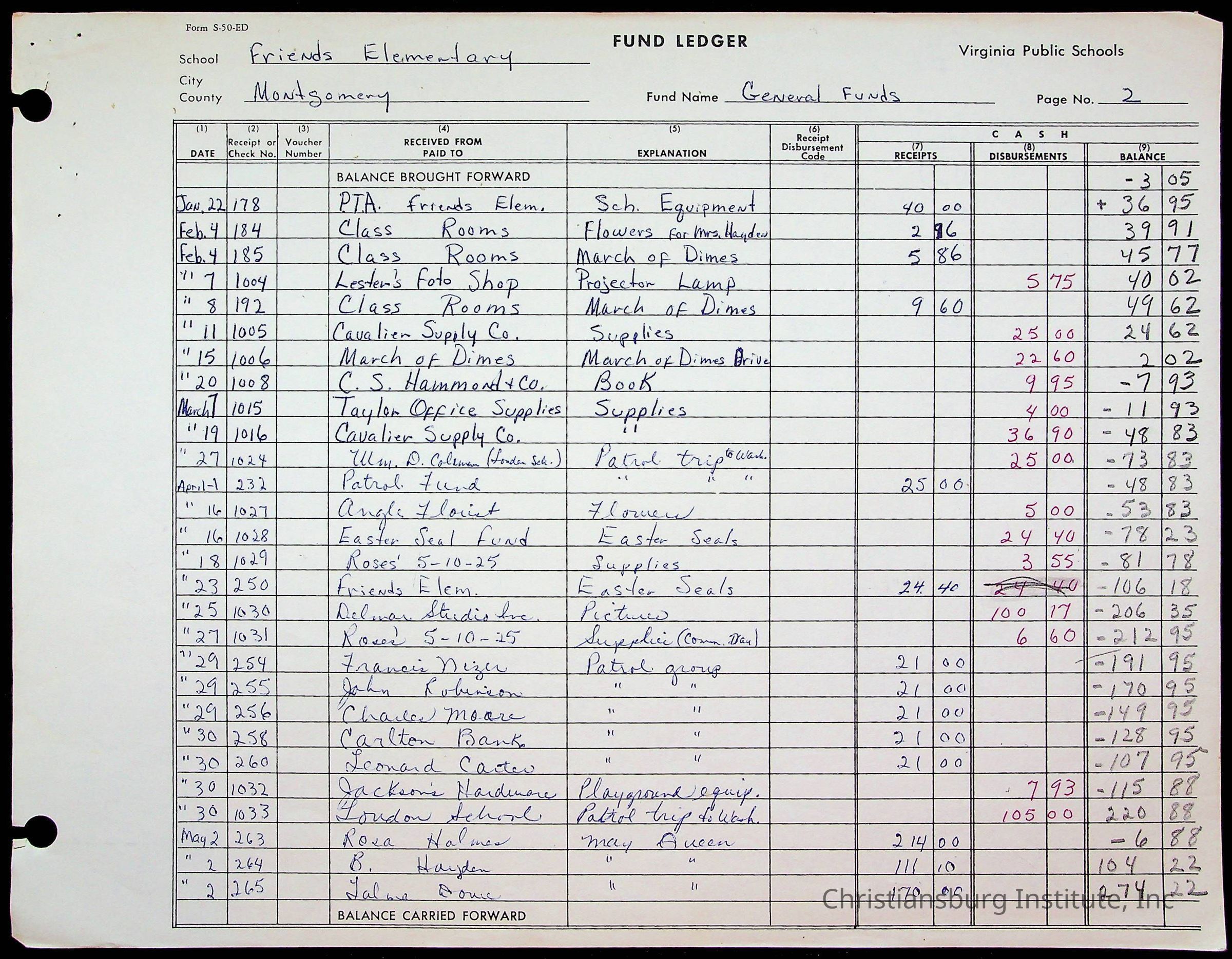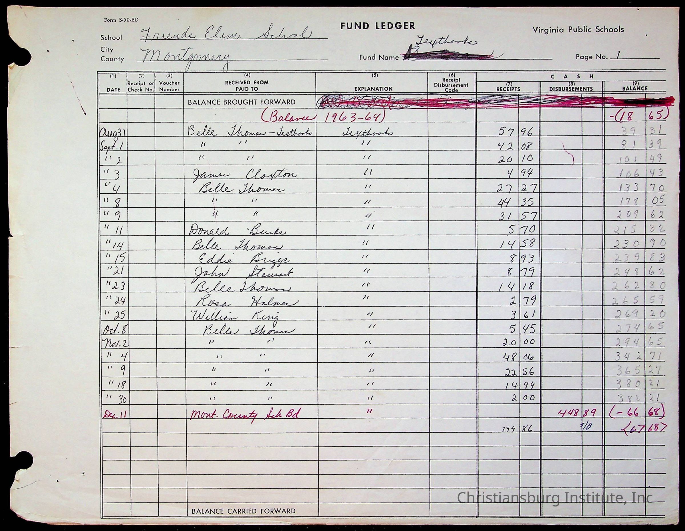 Friends Elementary Fund Ledger, 1962-1963Tags