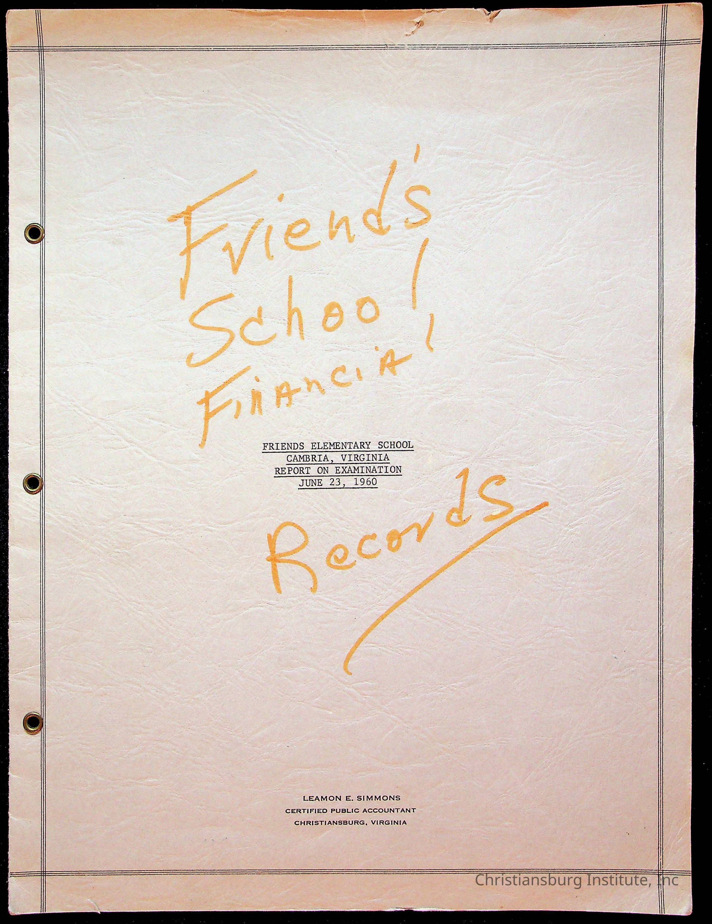 Friends Elementary School, Financial RecordsScope and Content