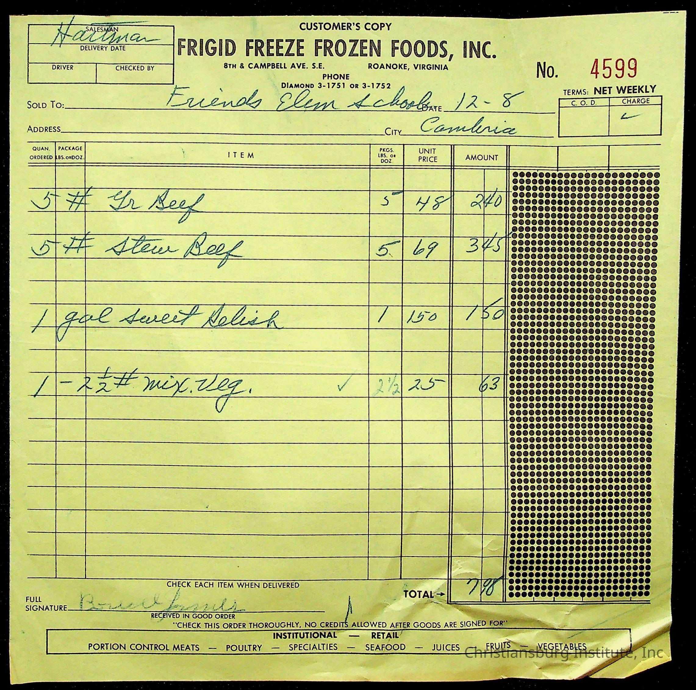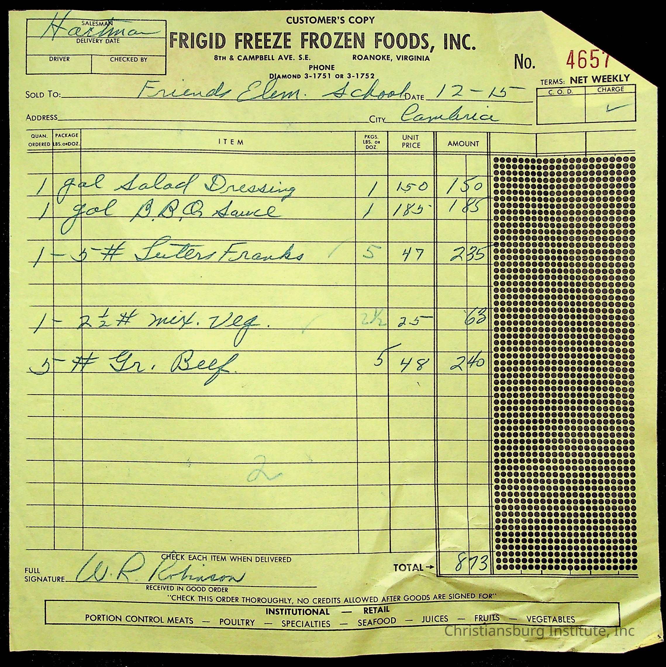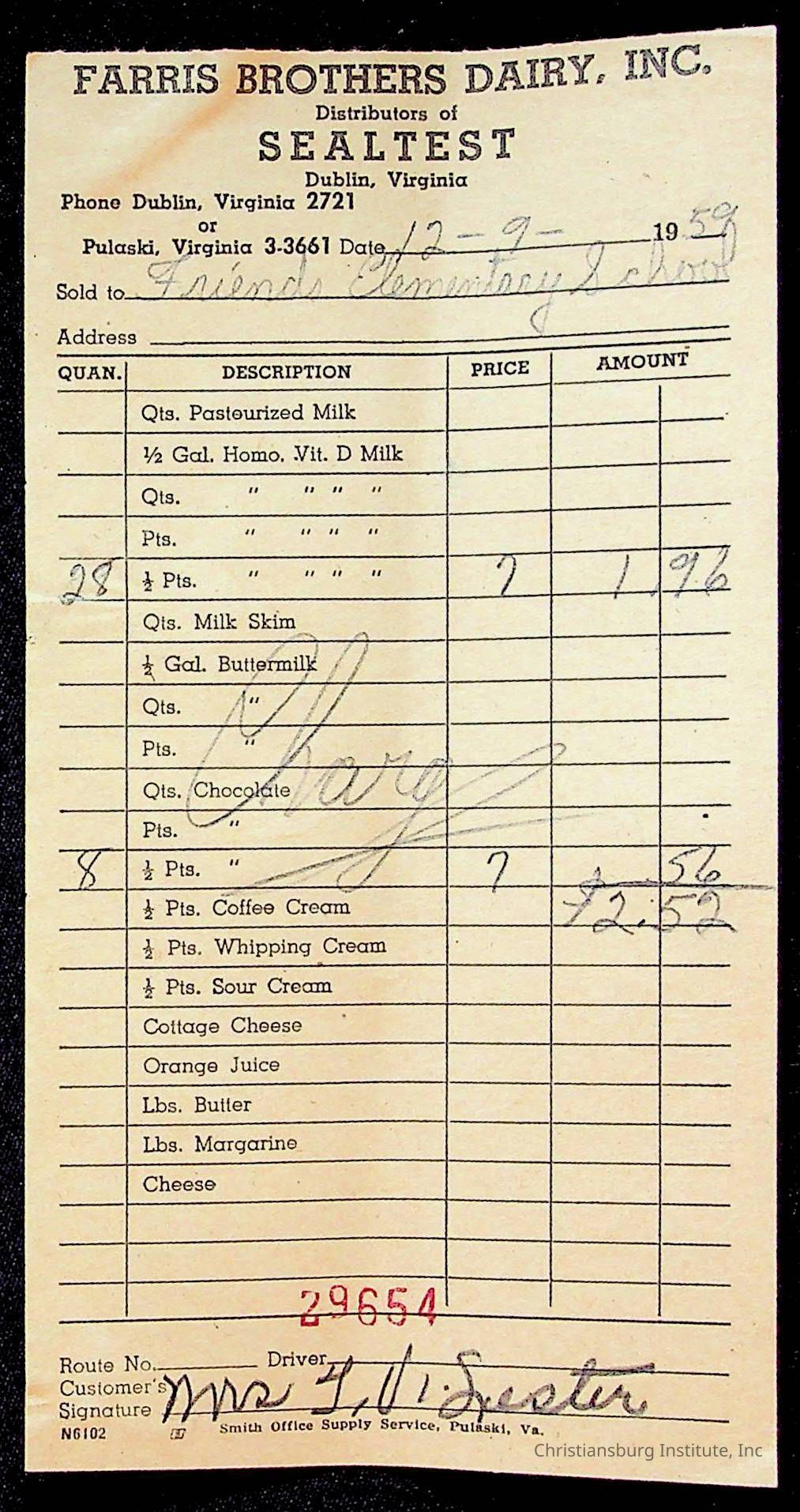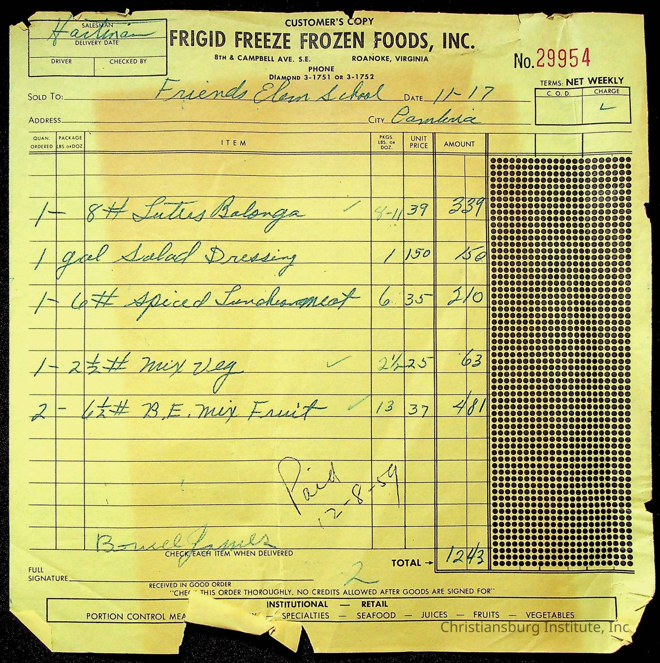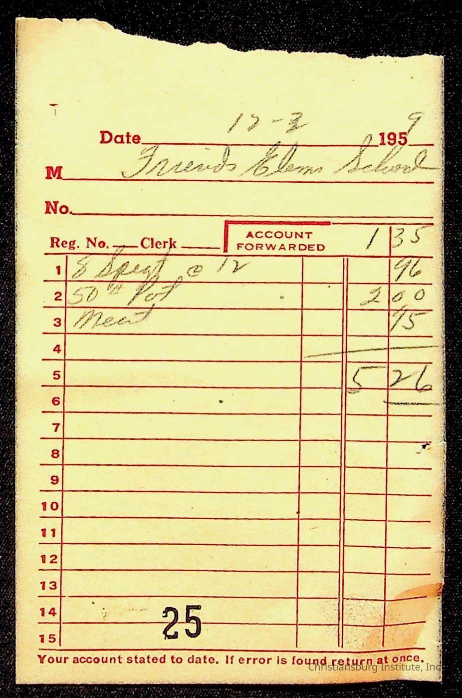 An archive of various receipts and bills for Friends Elementary School, circa 1950s-1960s.Collection