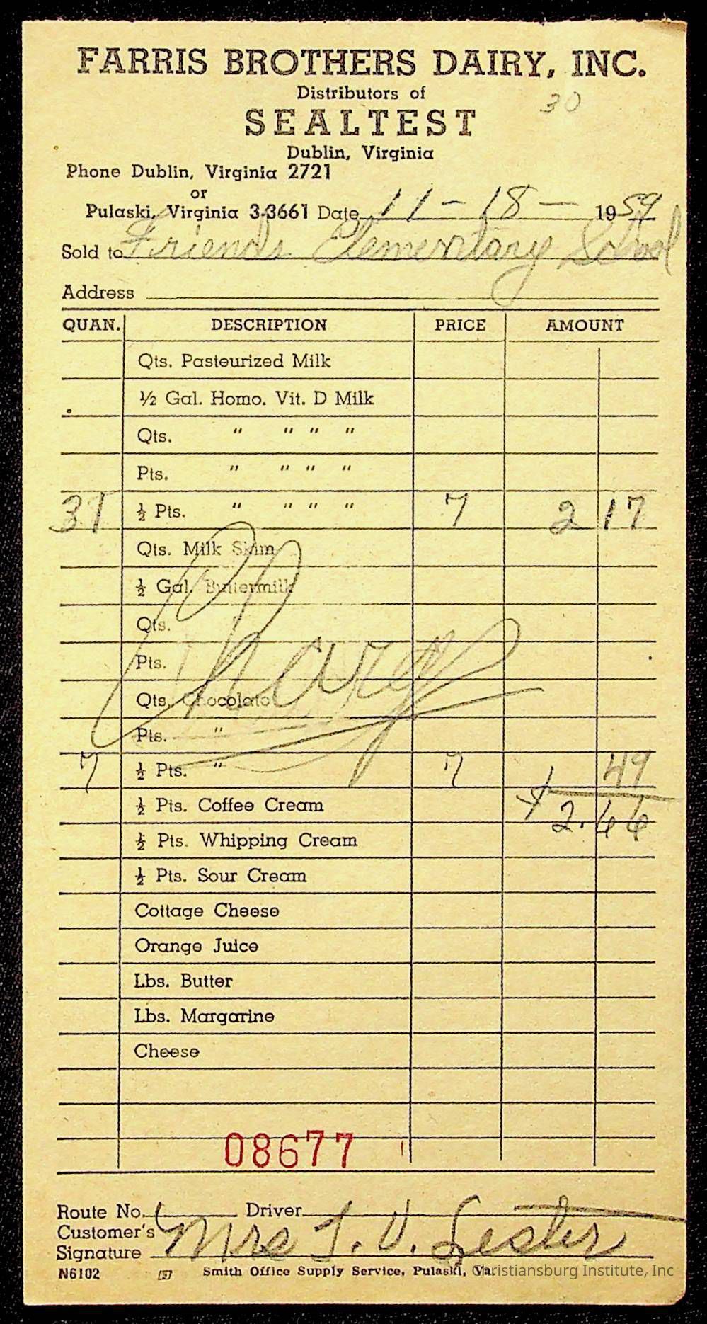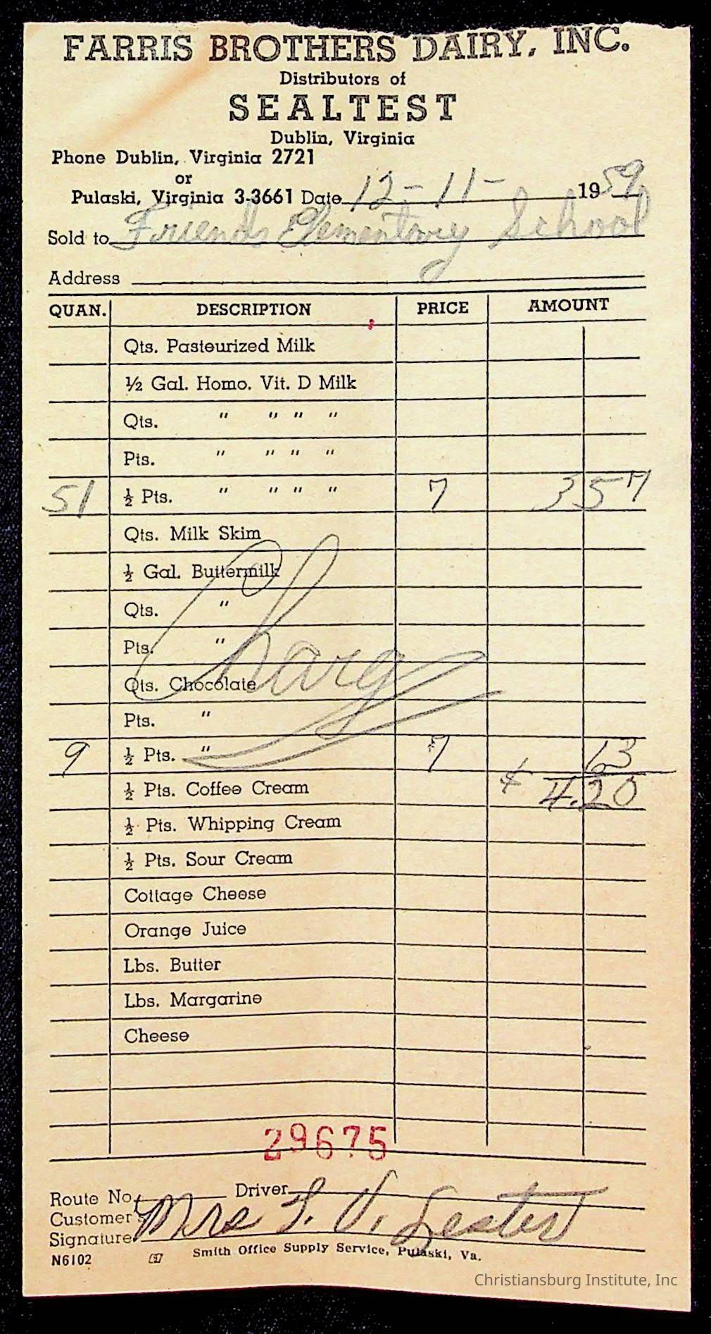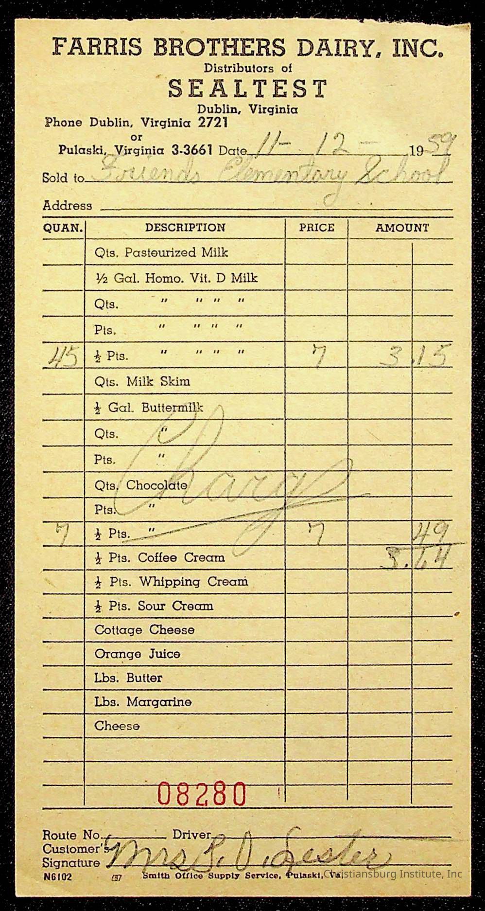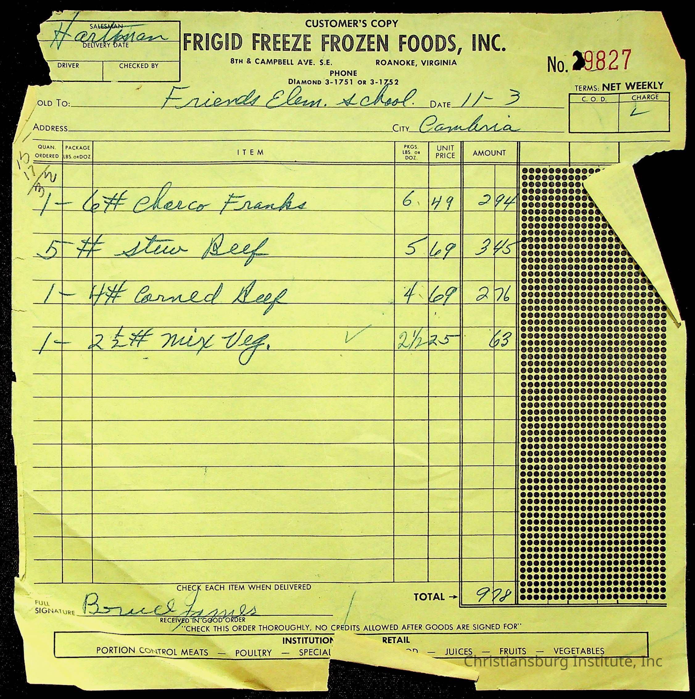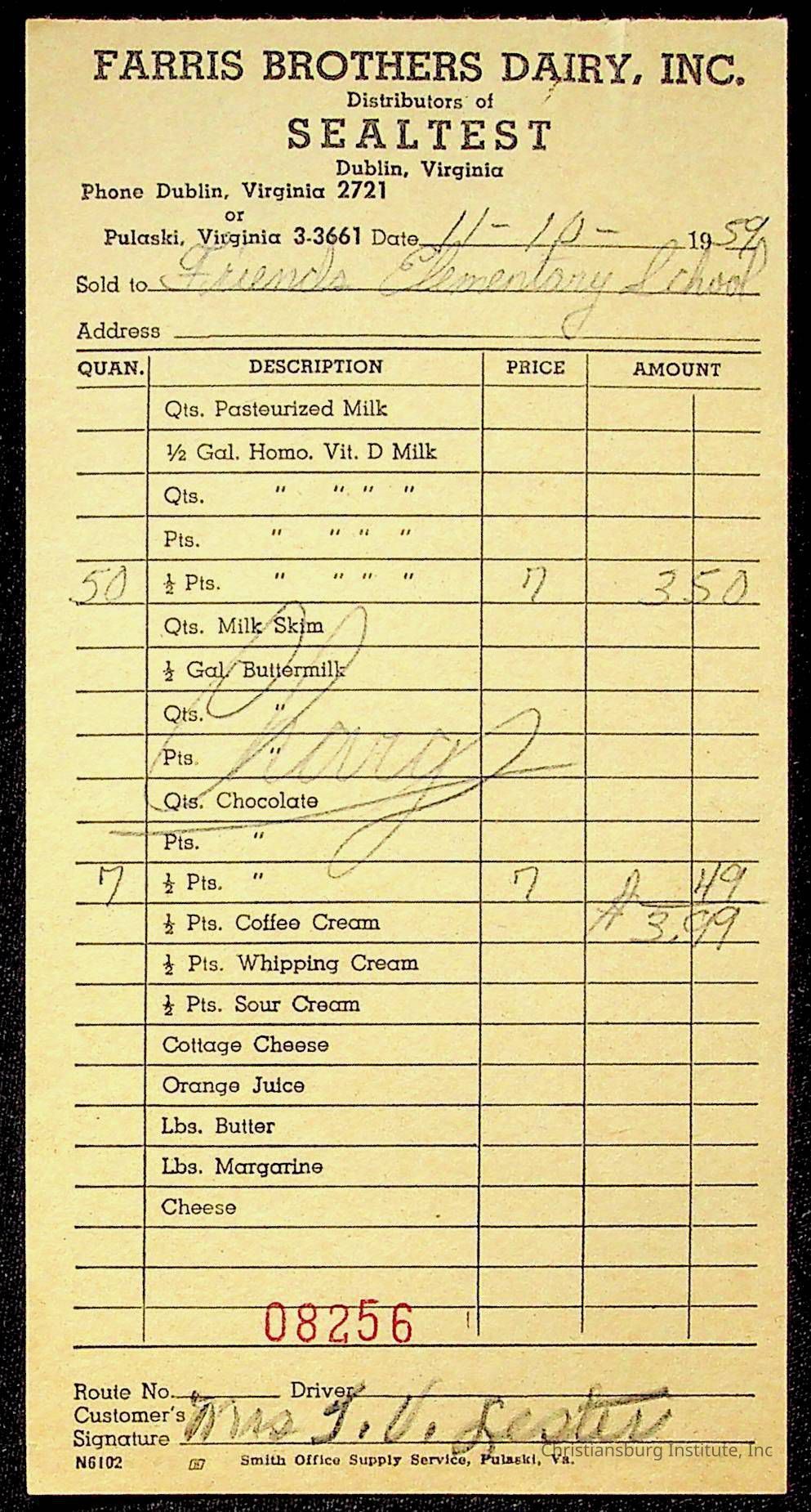 An archive of various receipts and bills for Friends Elementary School, circa 1950s-1960s.Collection