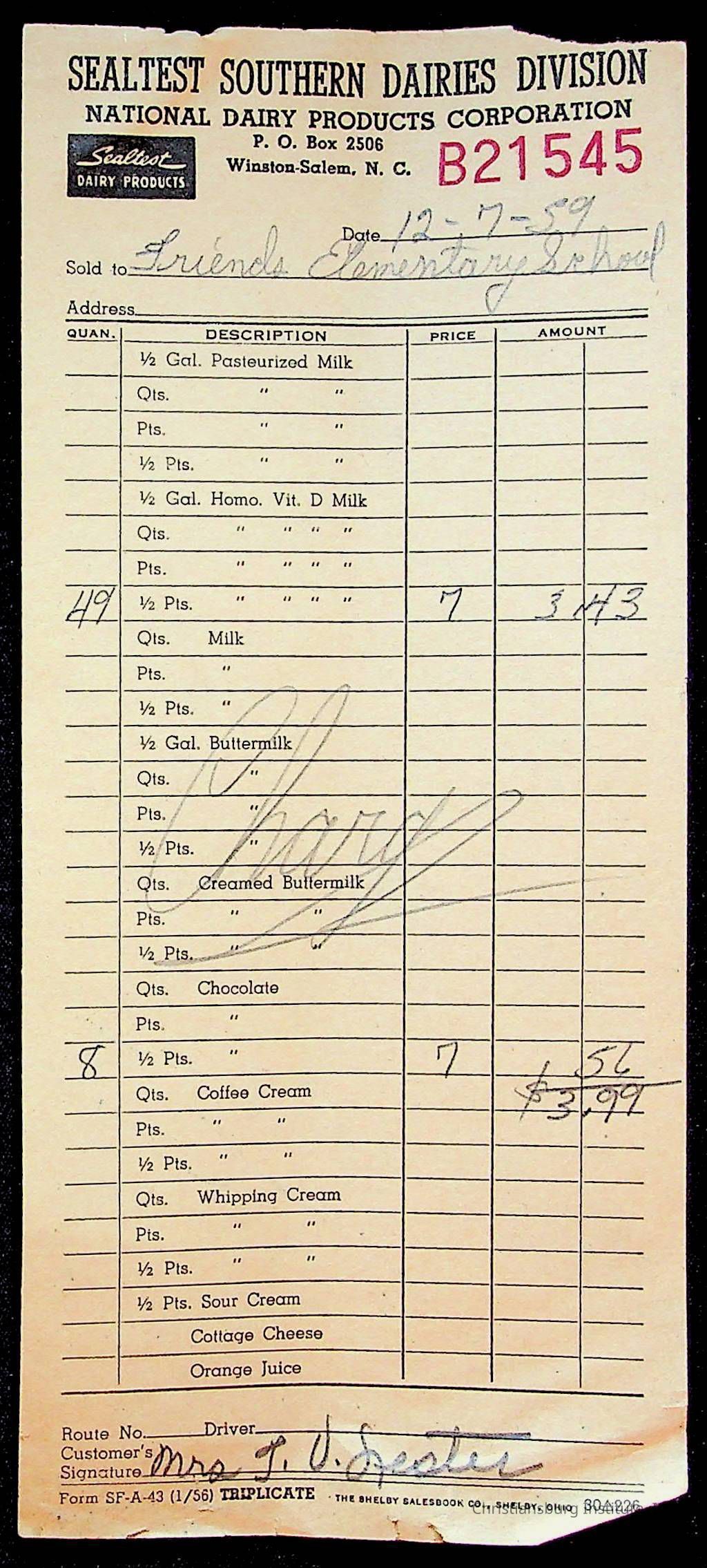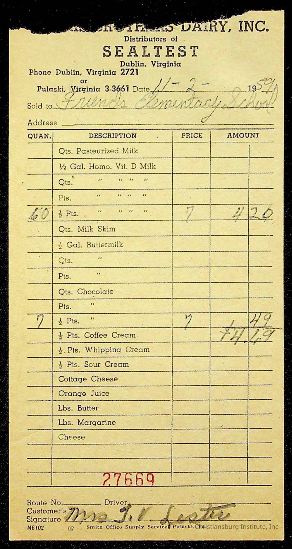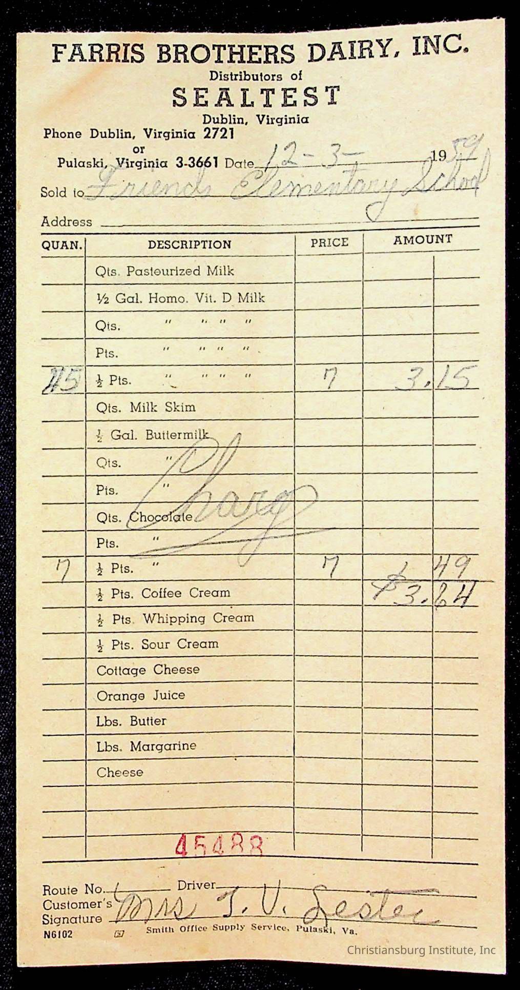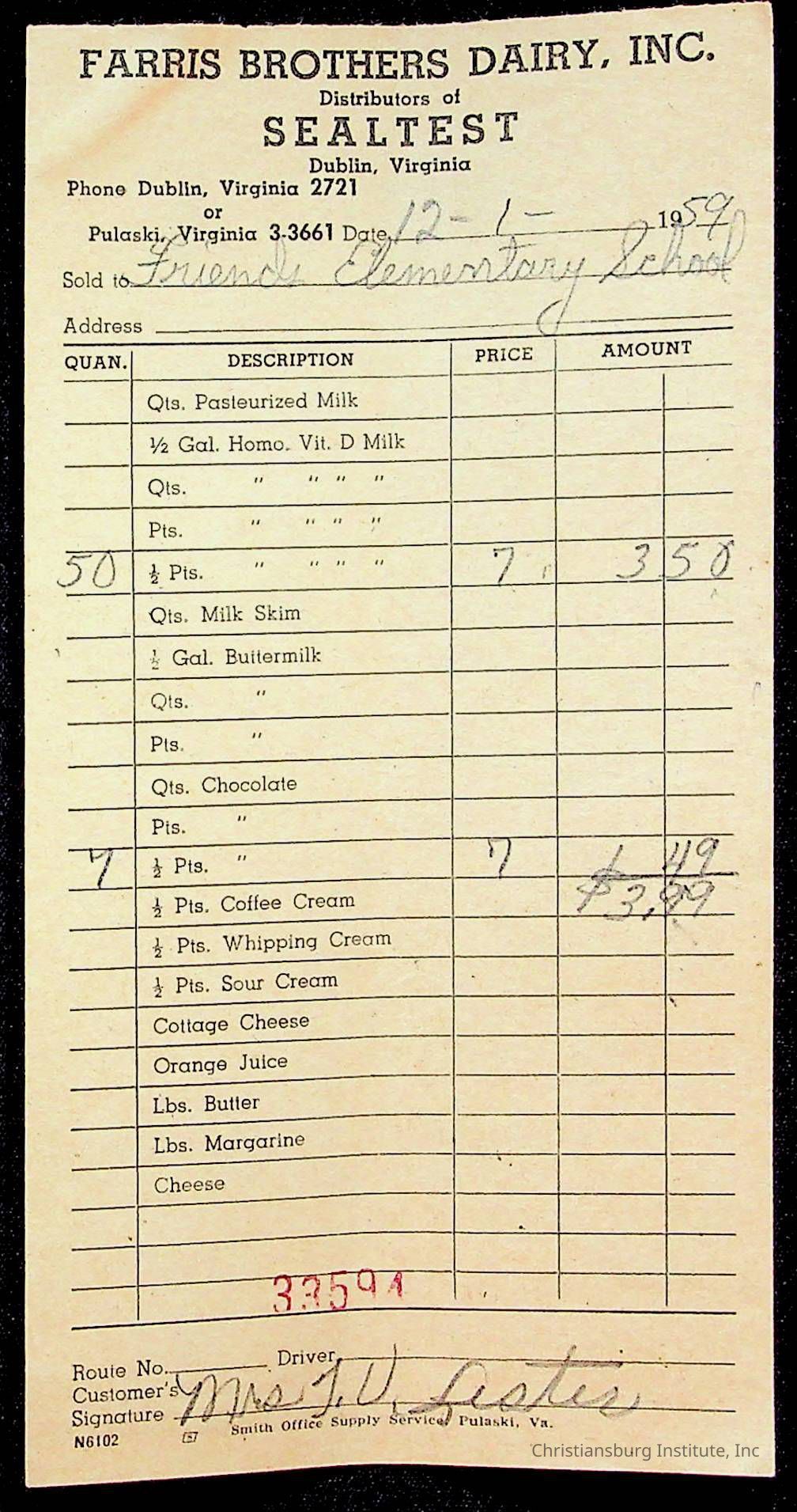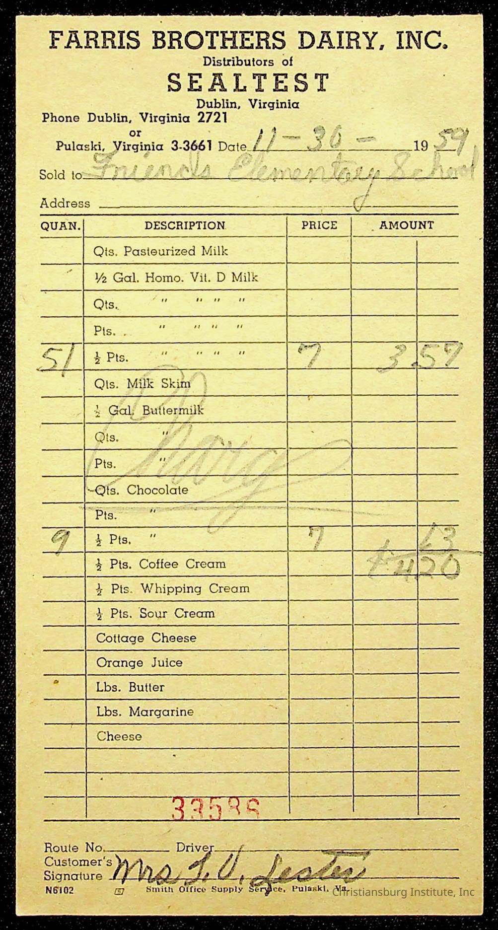 An archive of various receipts and bills for Friends Elementary School, circa 1950s-1960s.Collection