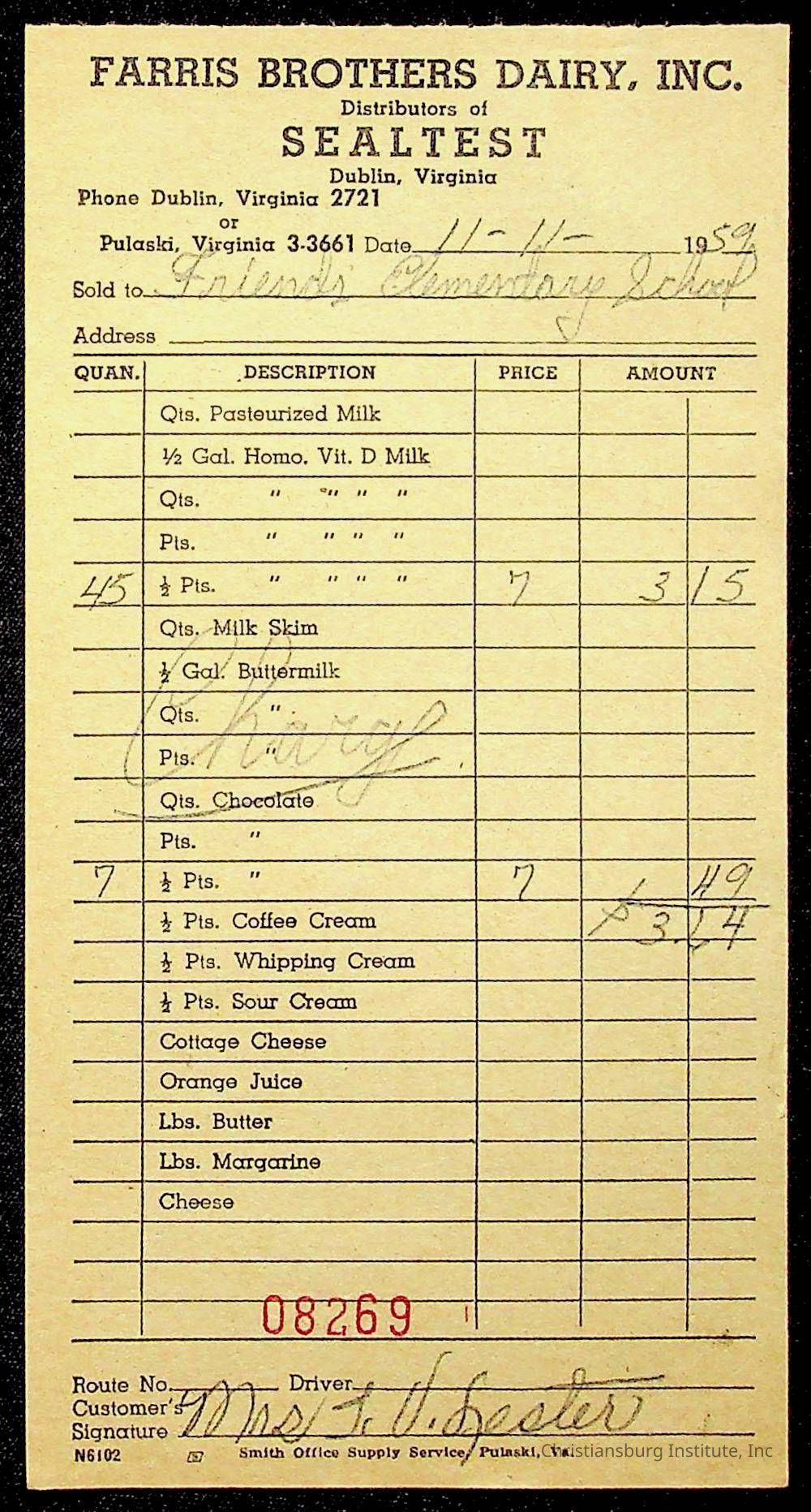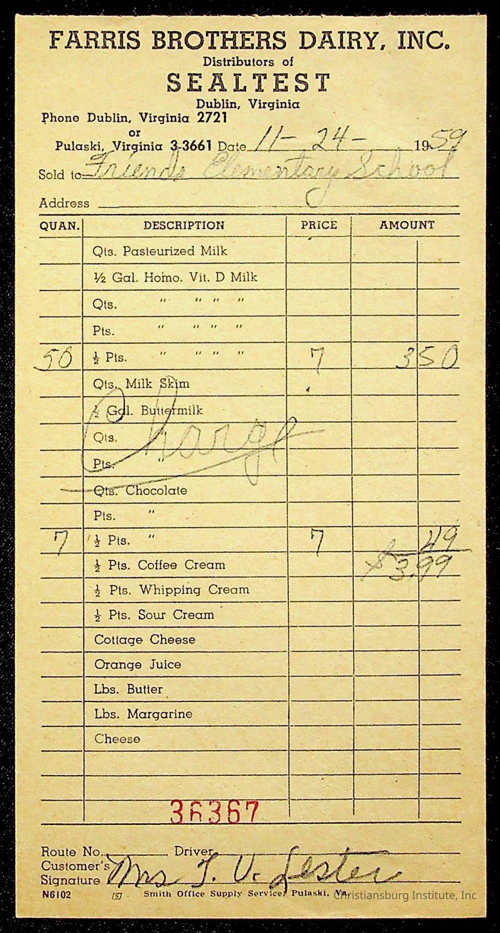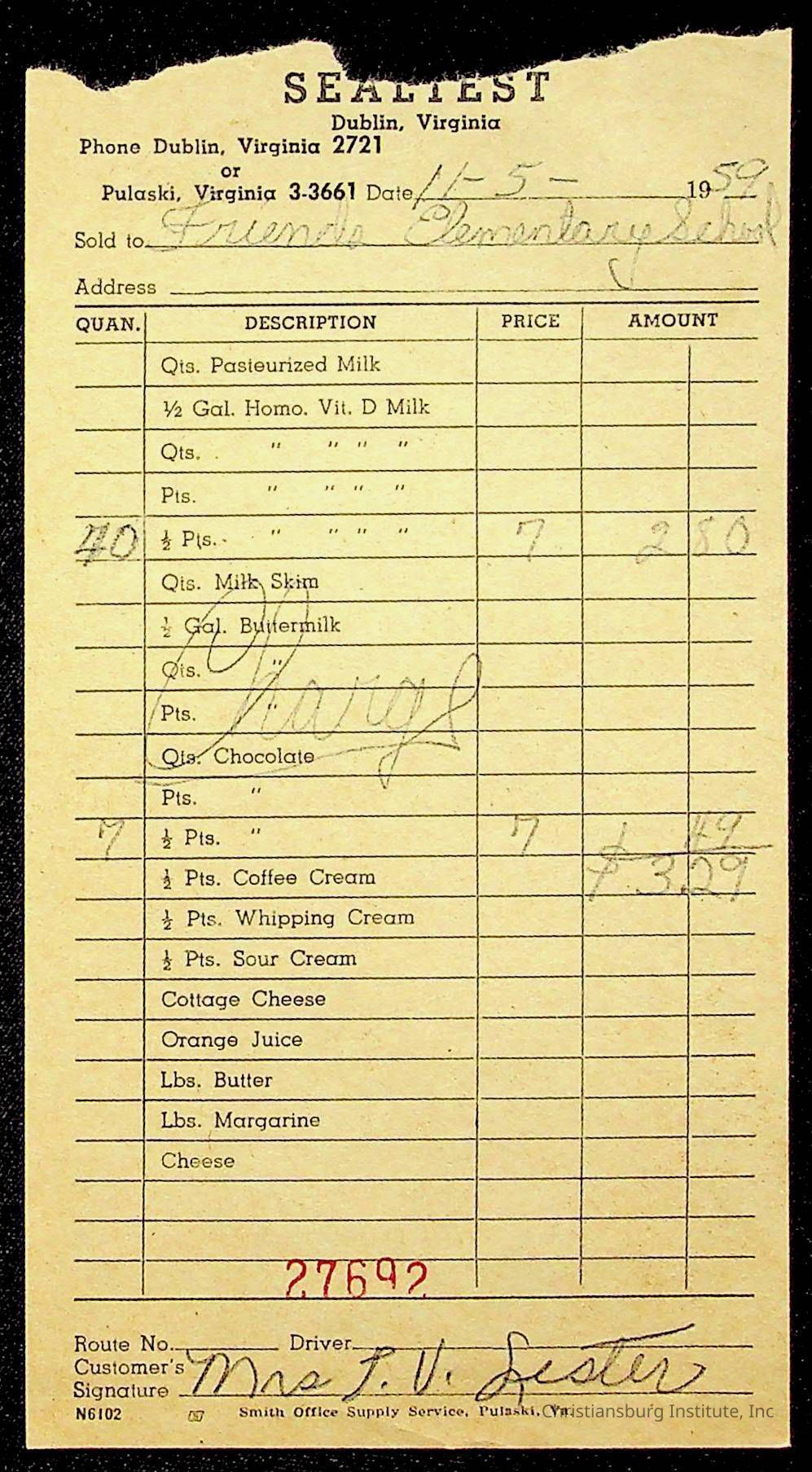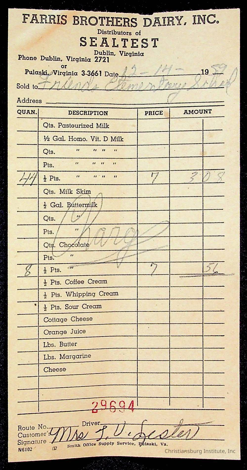 An archive of various receipts and bills for Friends Elementary School, circa 1950s-1960s.Collection