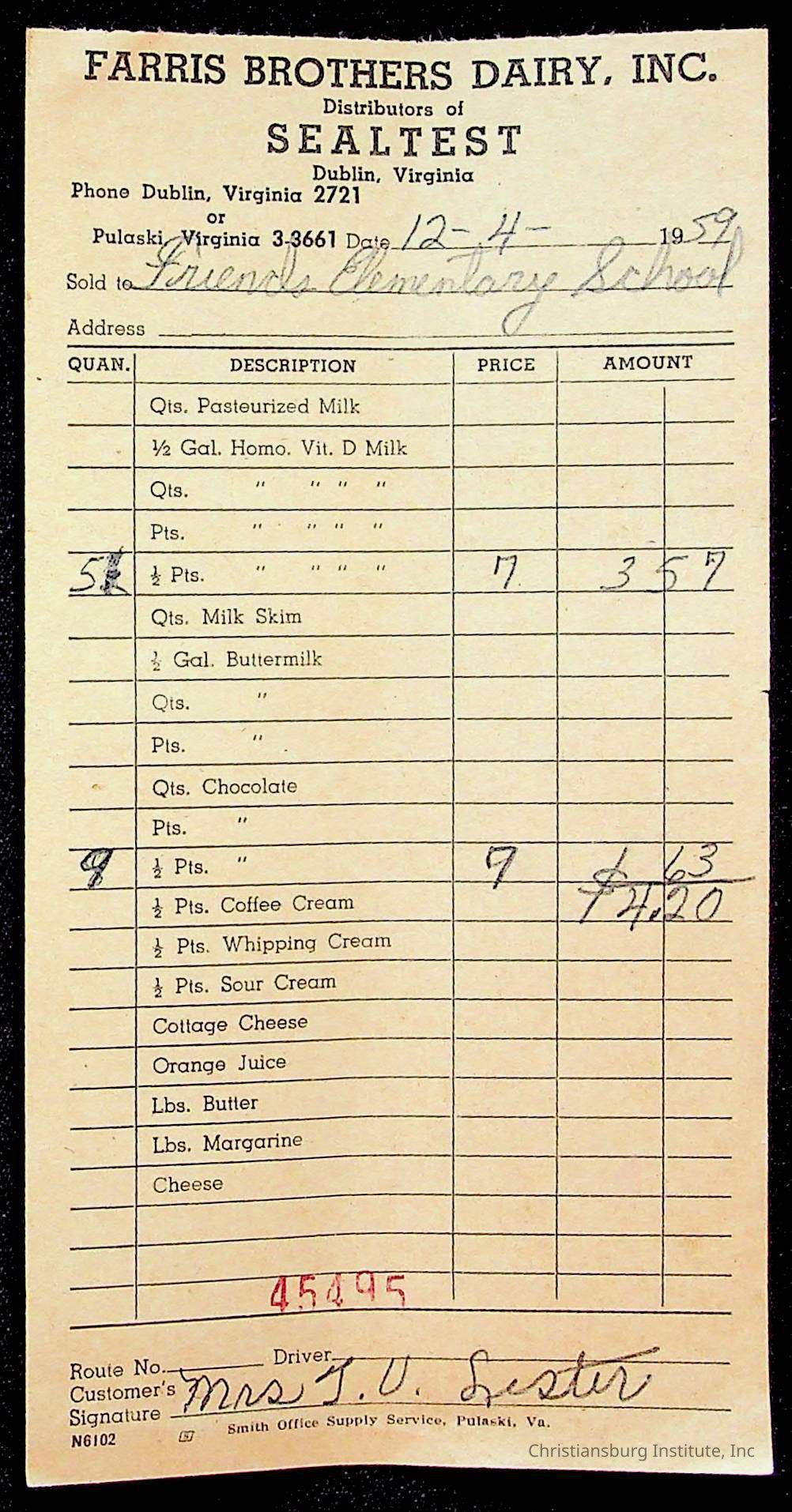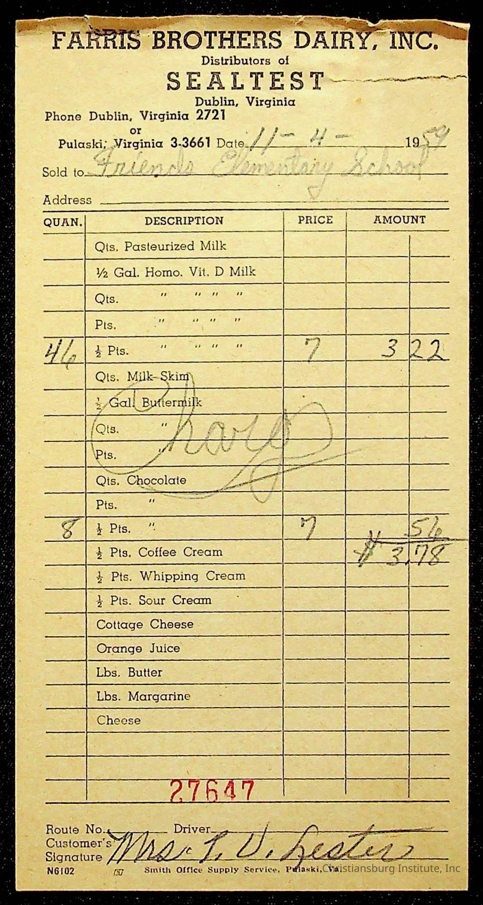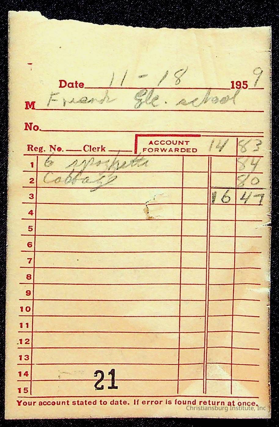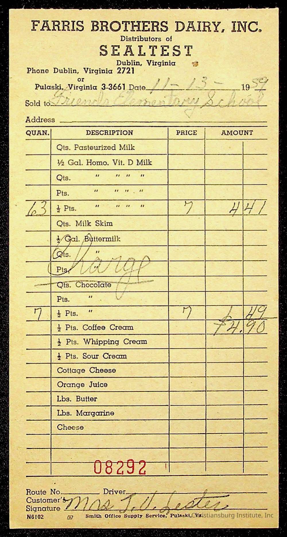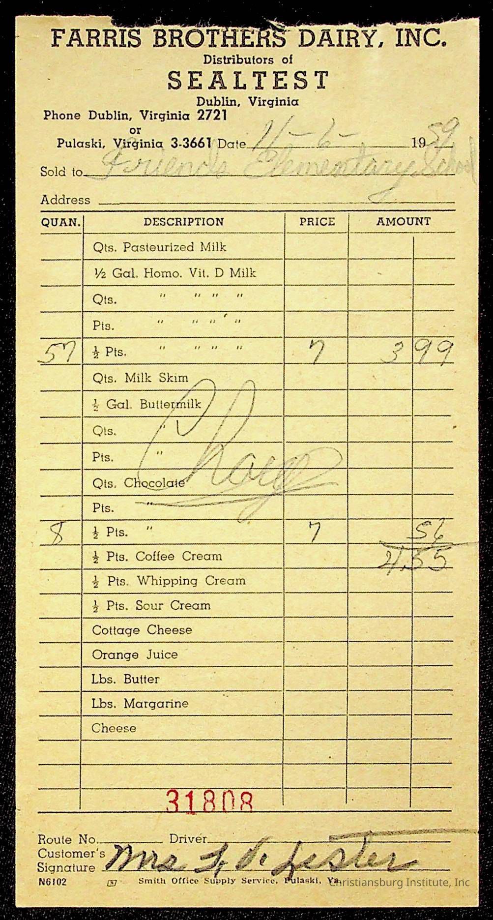 An archive of various receipts and bills for Friends Elementary School, circa 1950s-1960s.Collection