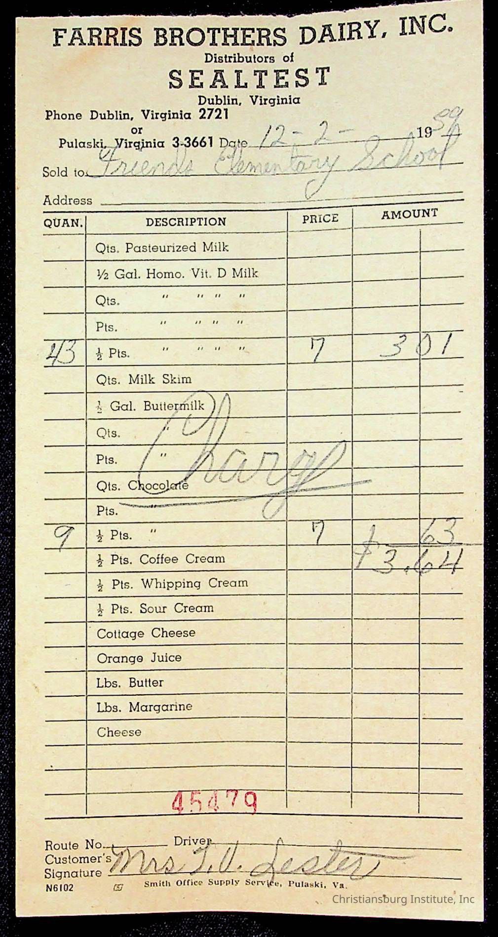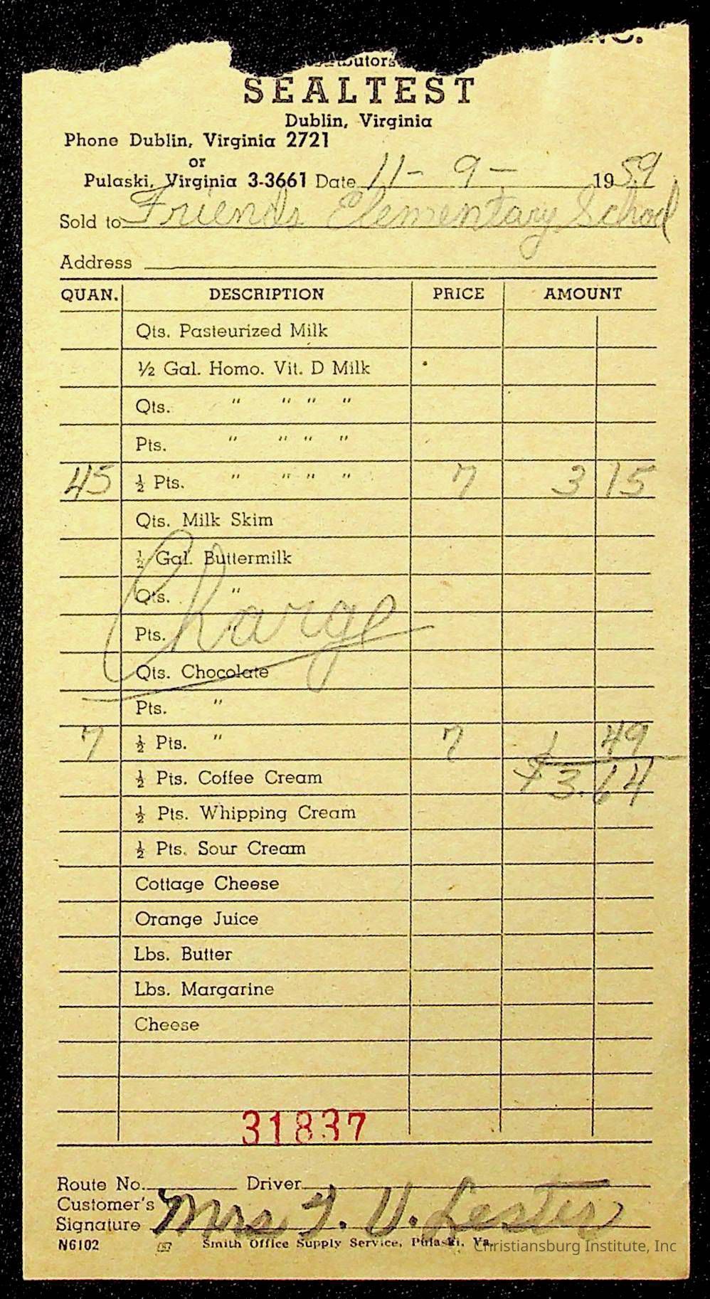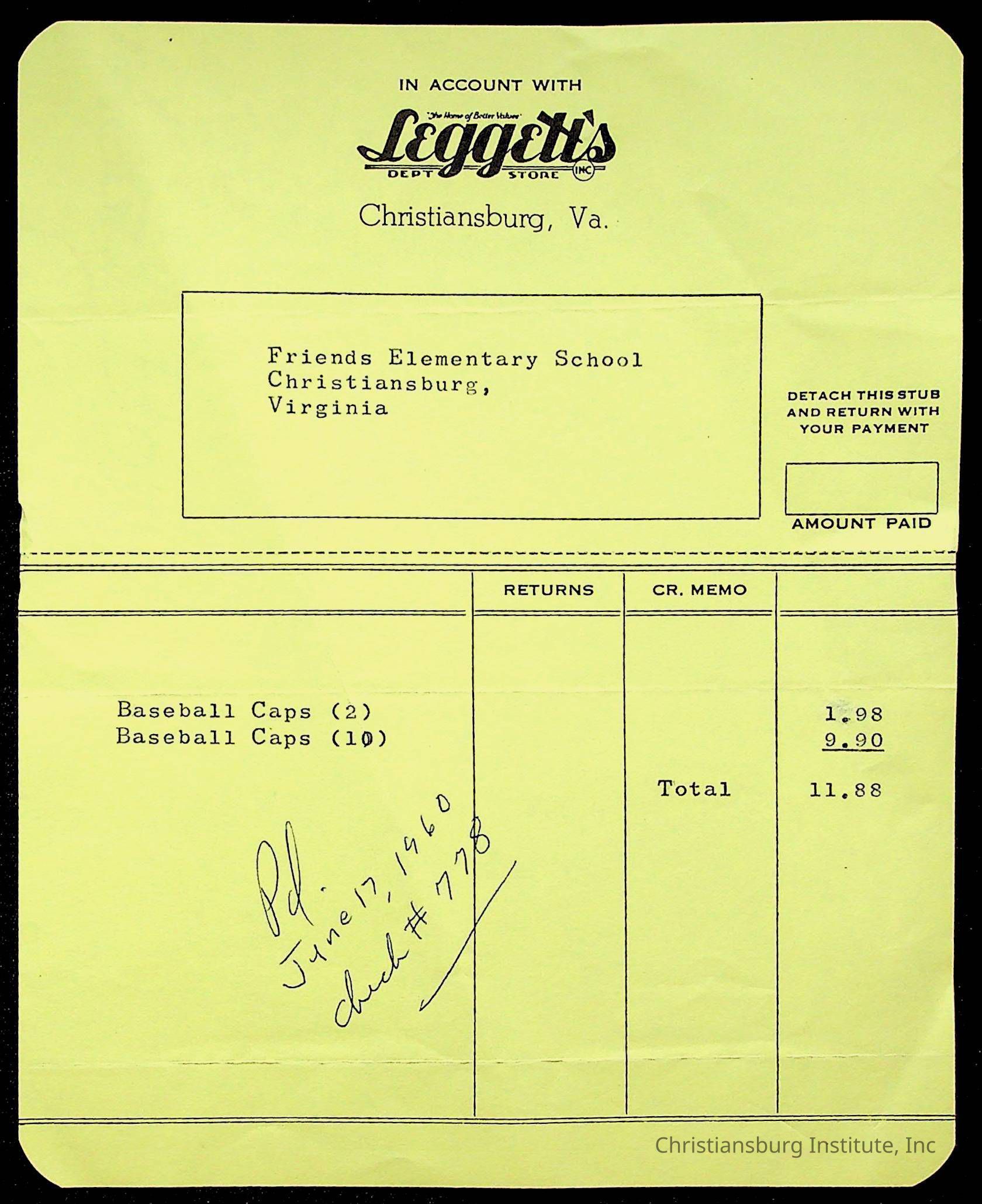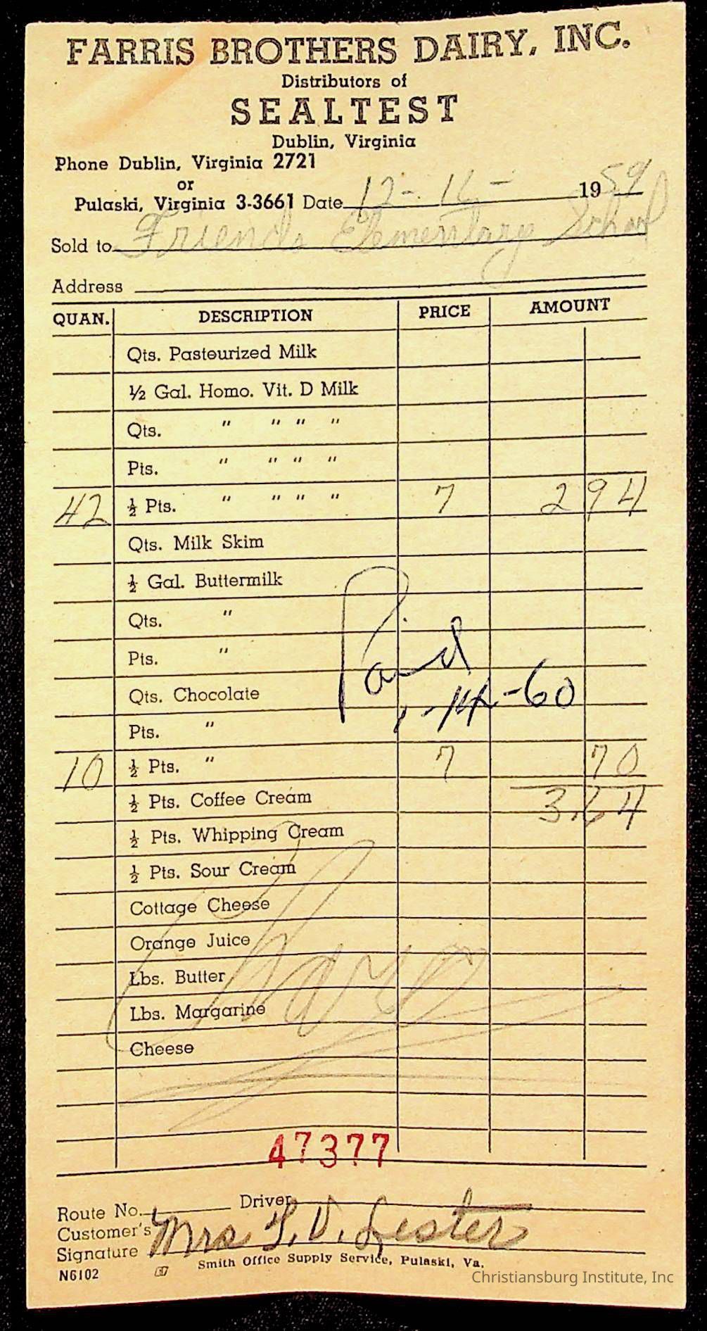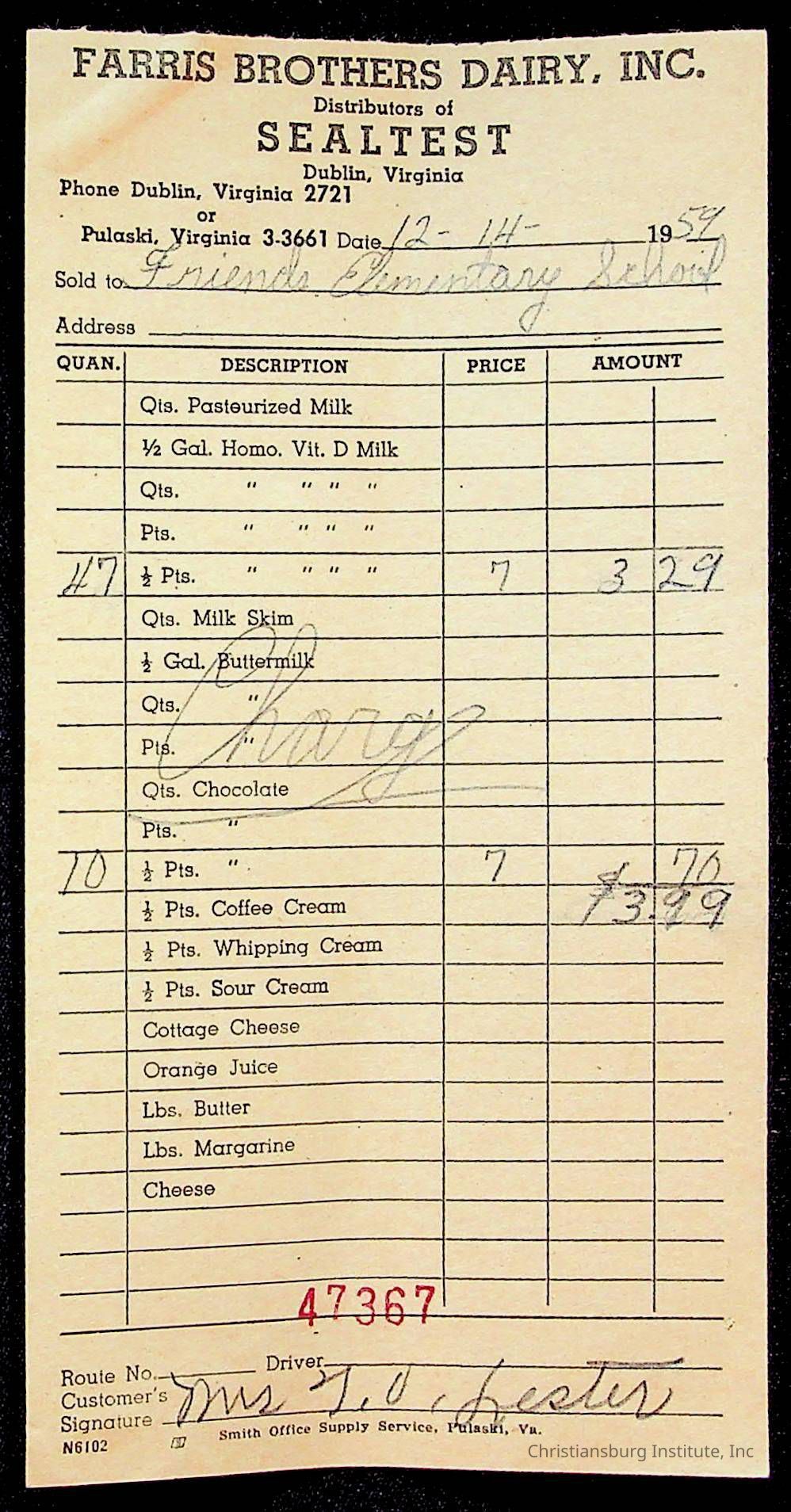 An archive of various receipts and bills for Friends Elementary School, circa 1950s-1960s.Collection
