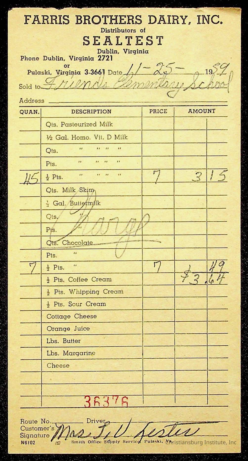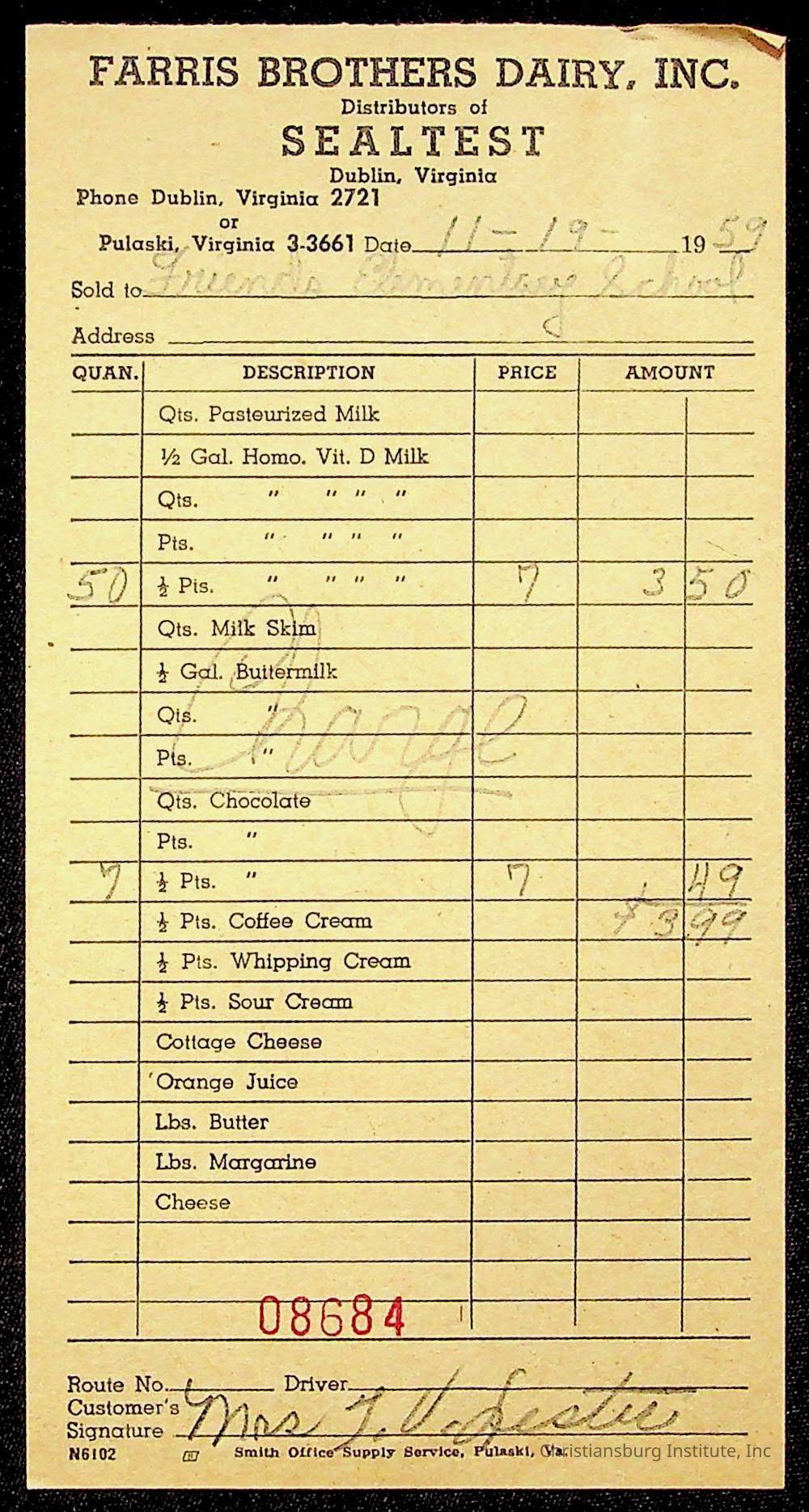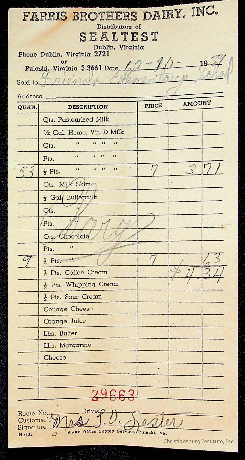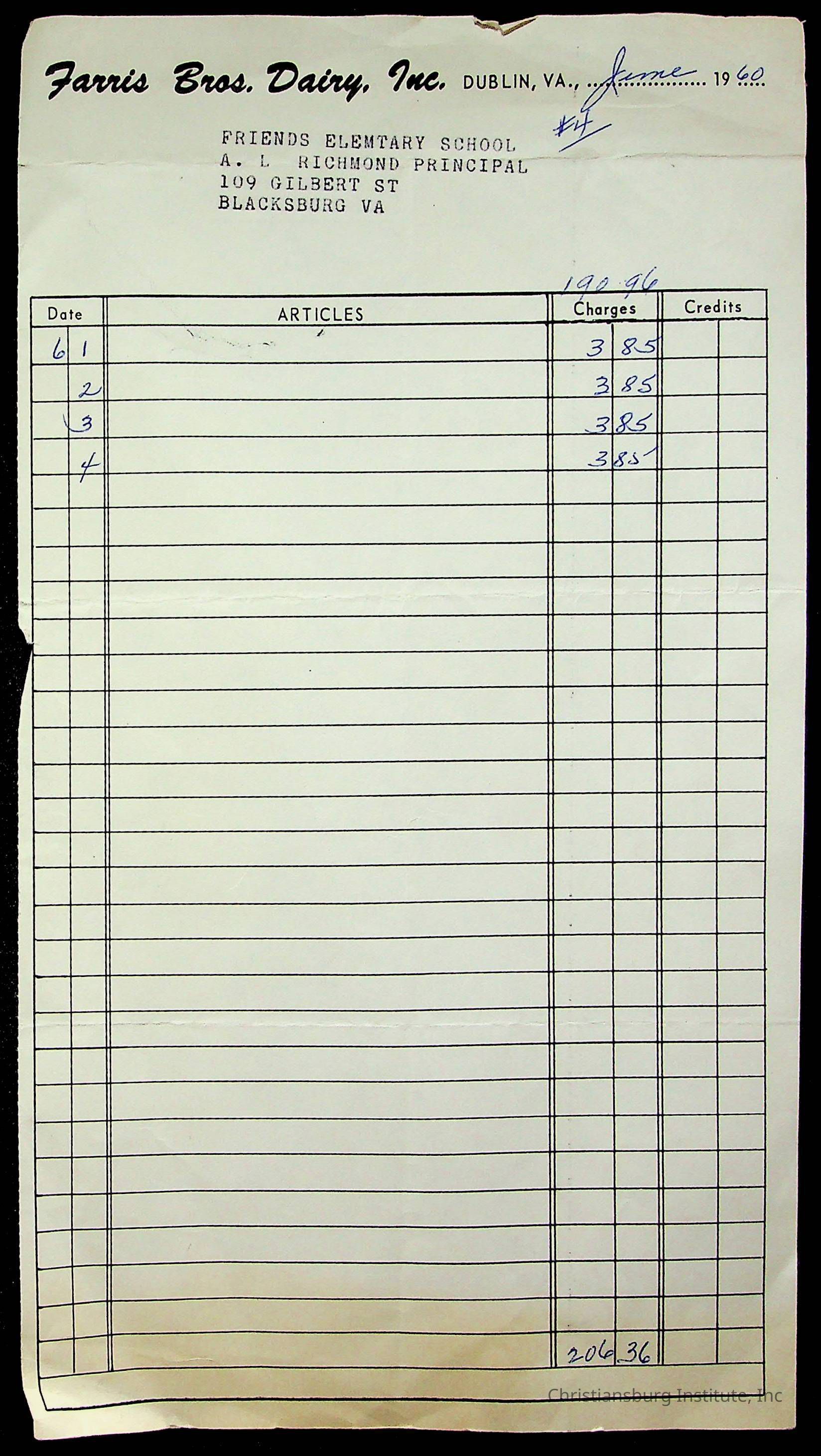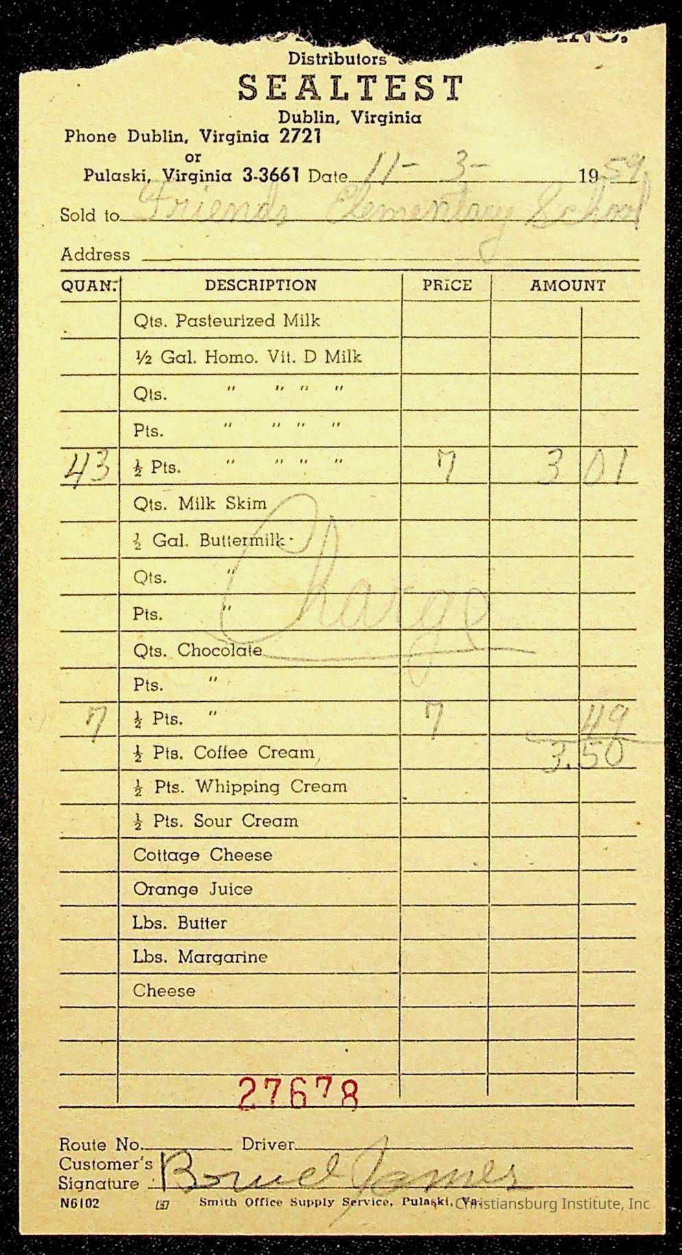 An archive of various receipts and bills for Friends Elementary School, circa 1950s-1960s.Collection