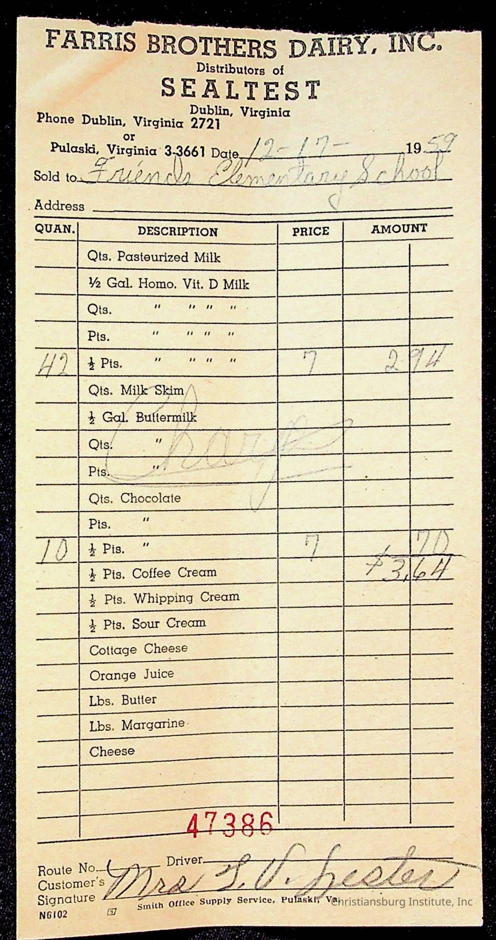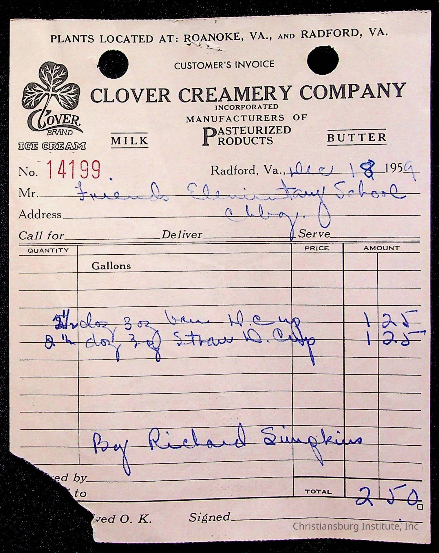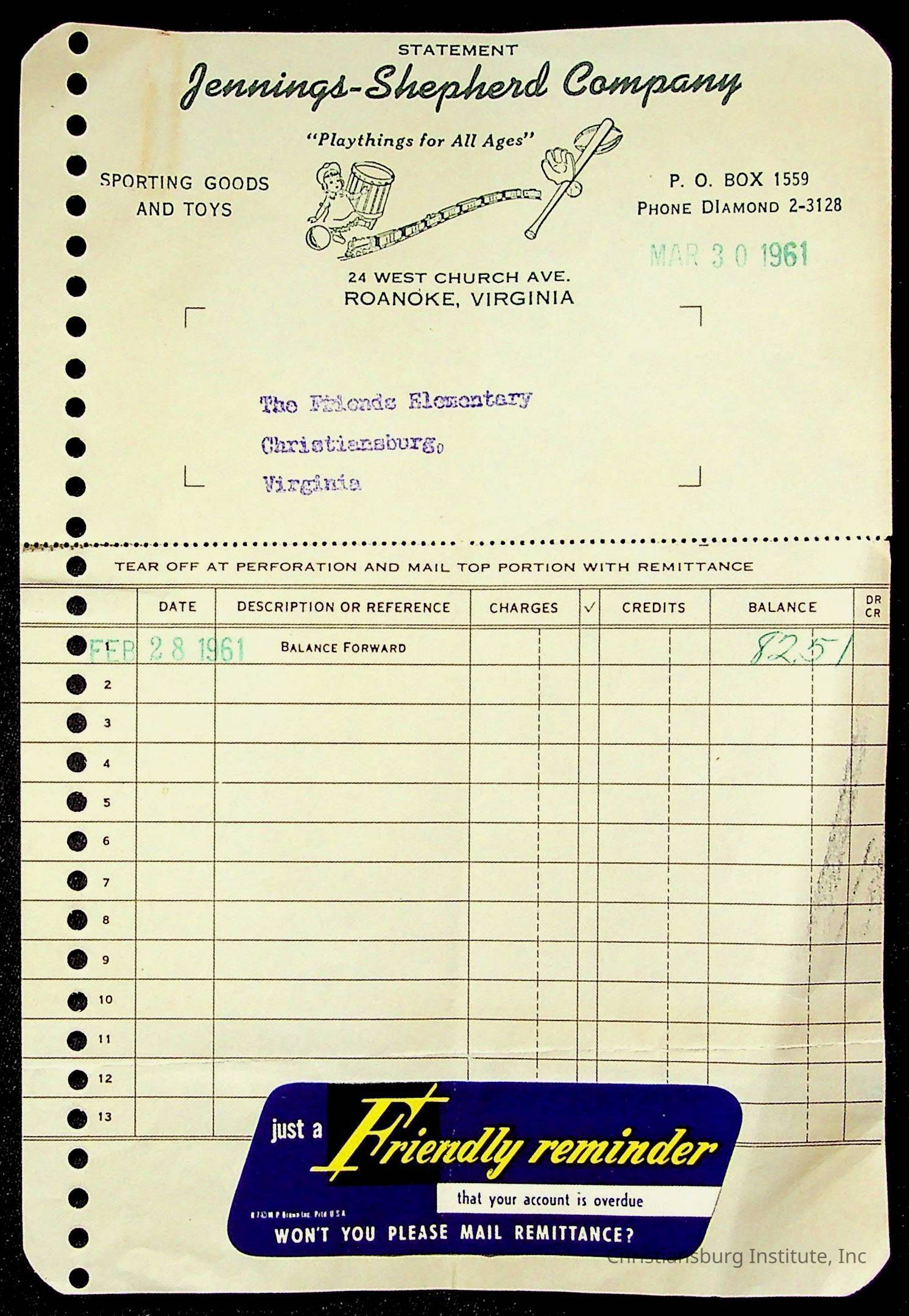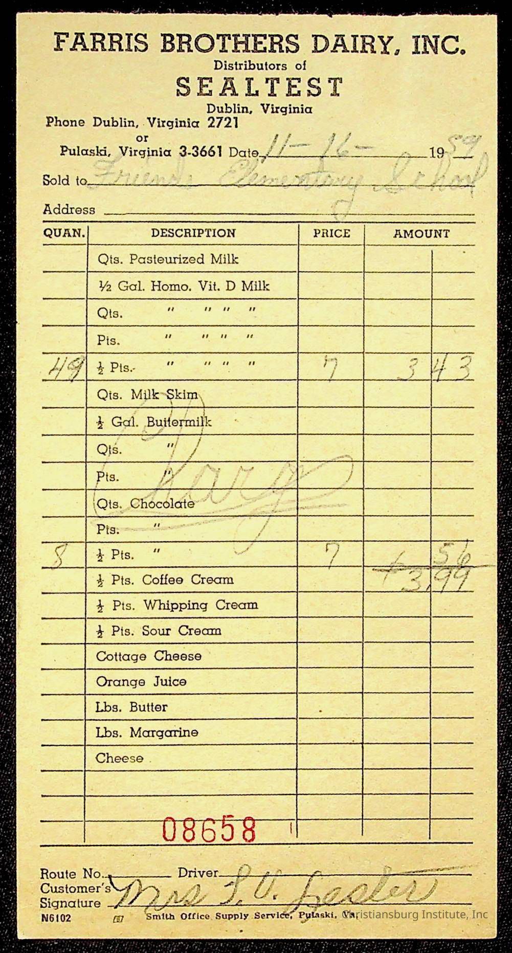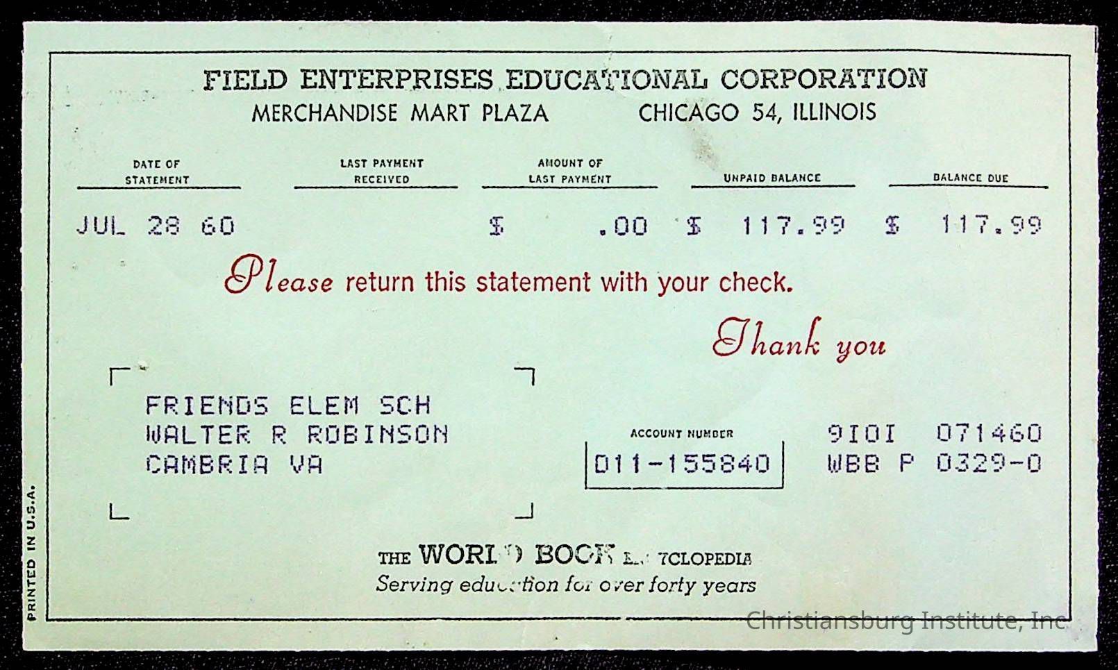 An archive of various receipts and bills for Friends Elementary School, circa 1950s-1960s.Collection