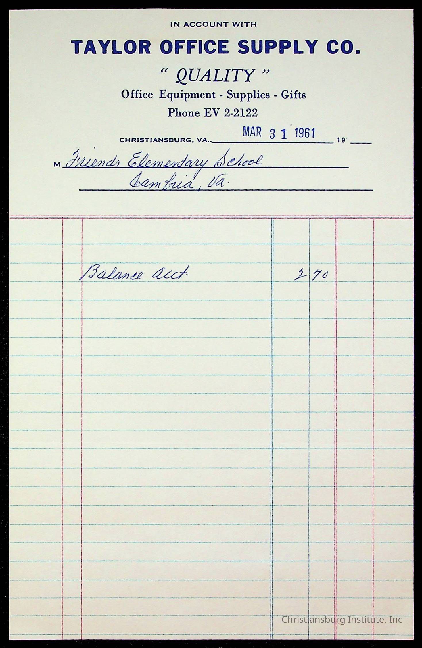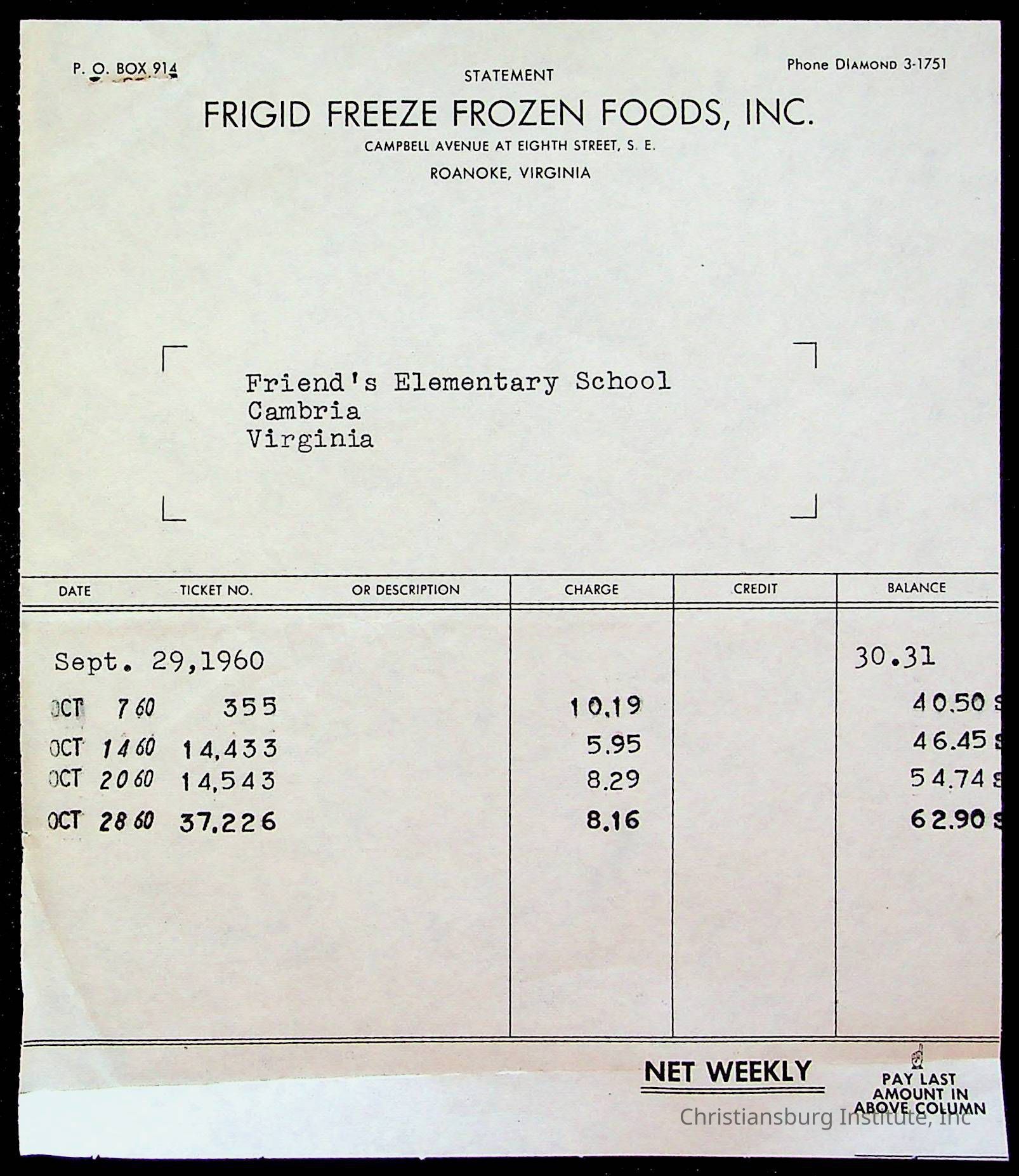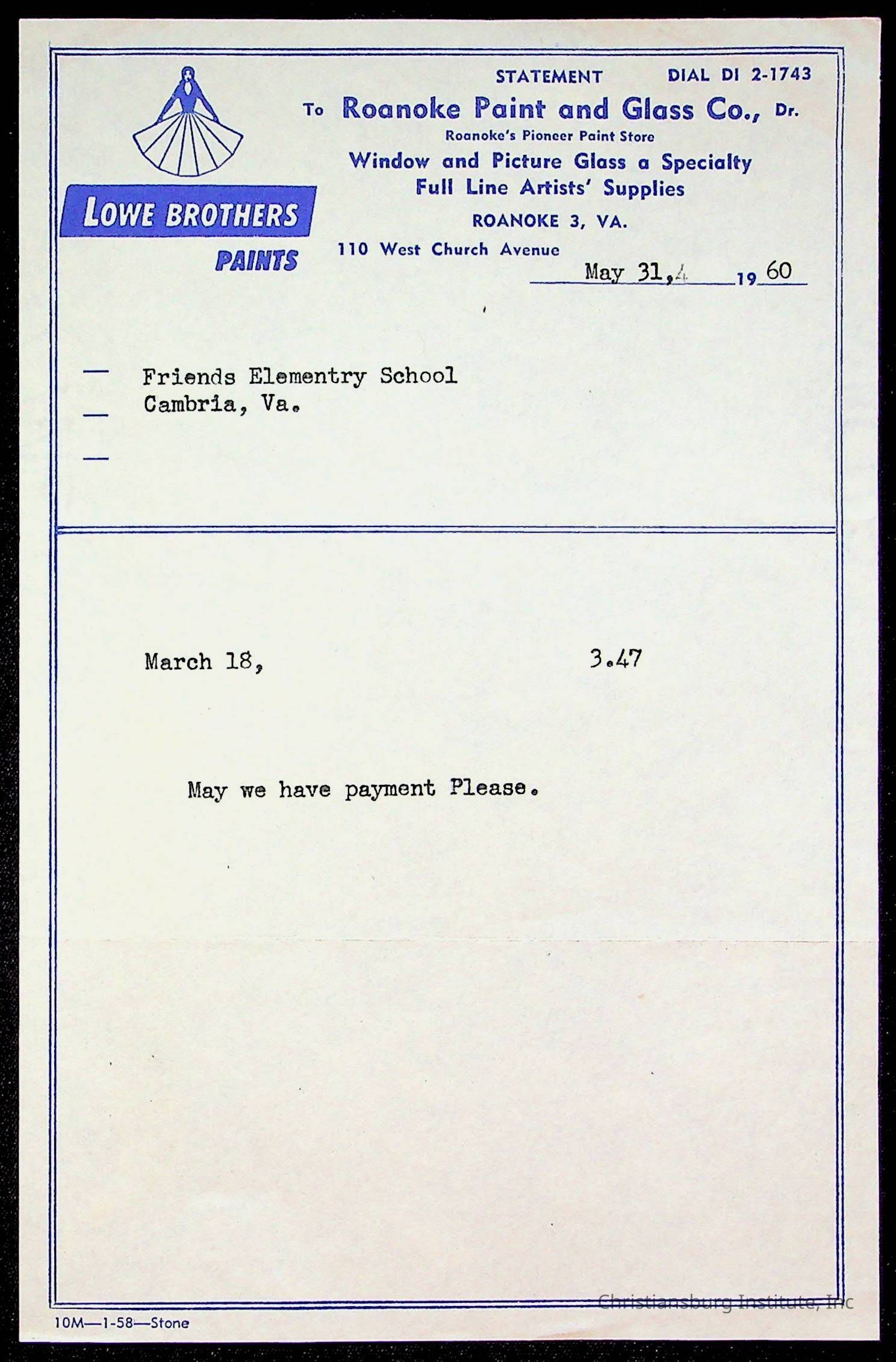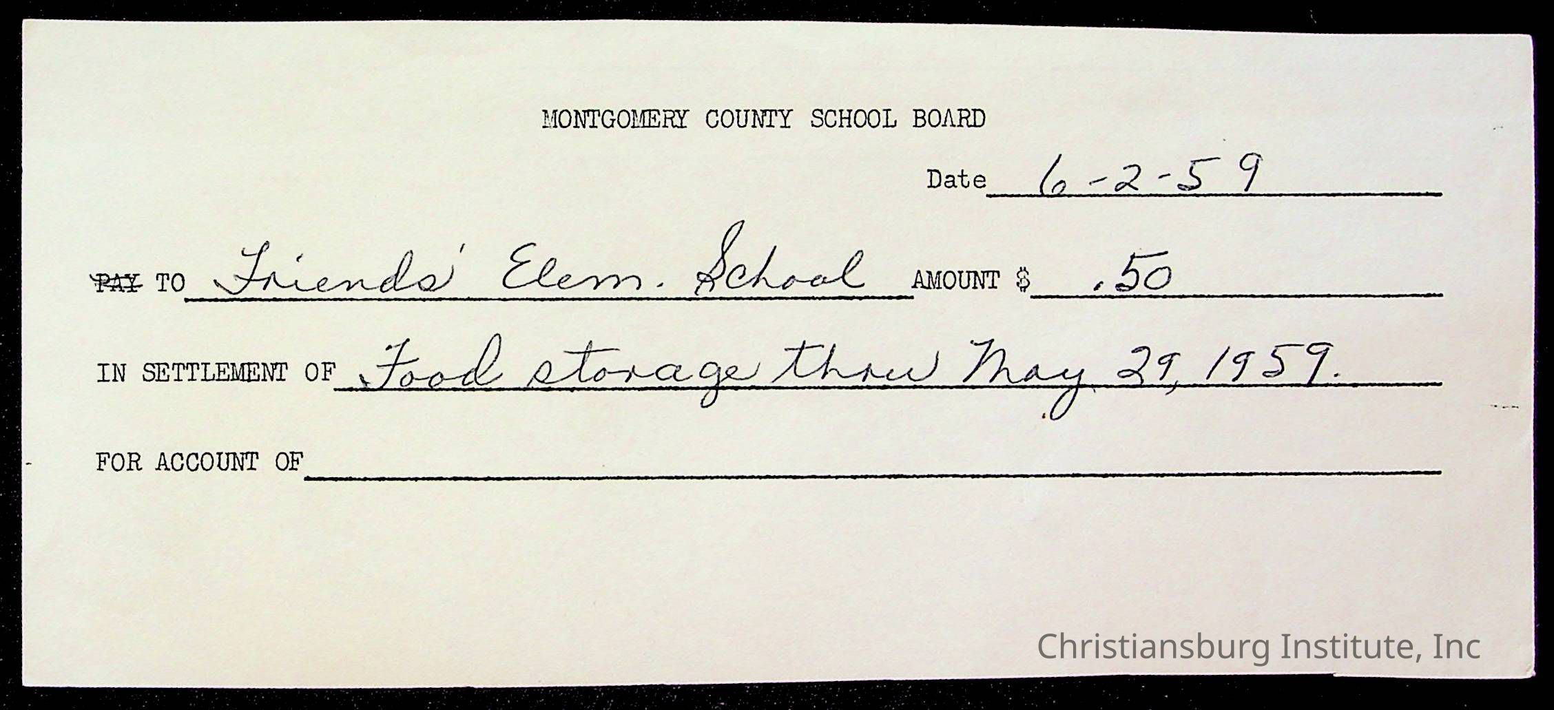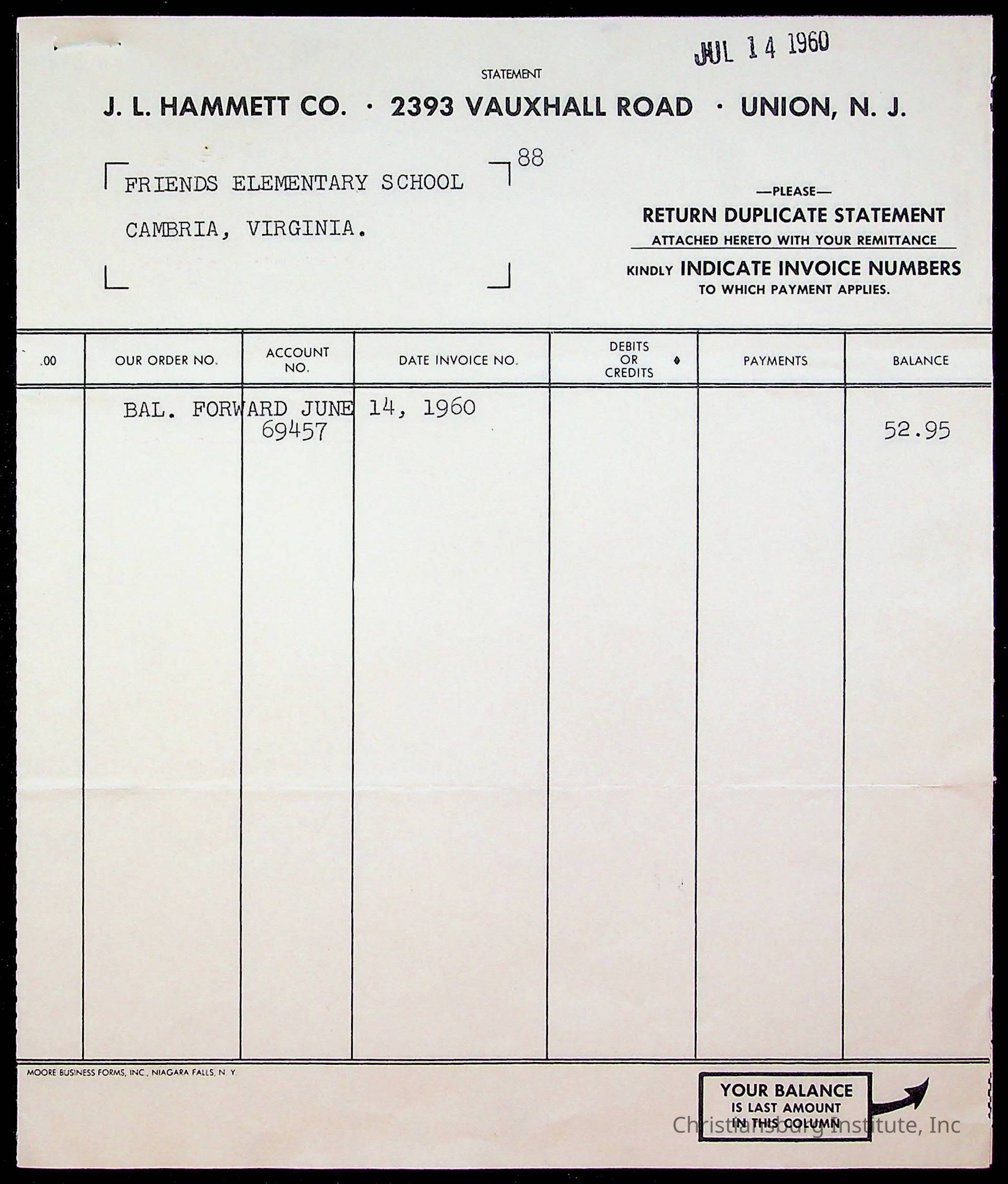 An archive of bills and receipts for Friends Elementary School from the 1959-1960 school year.Collection