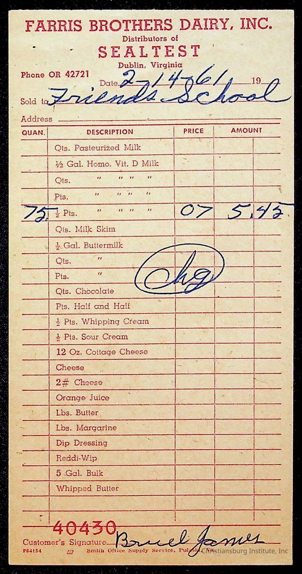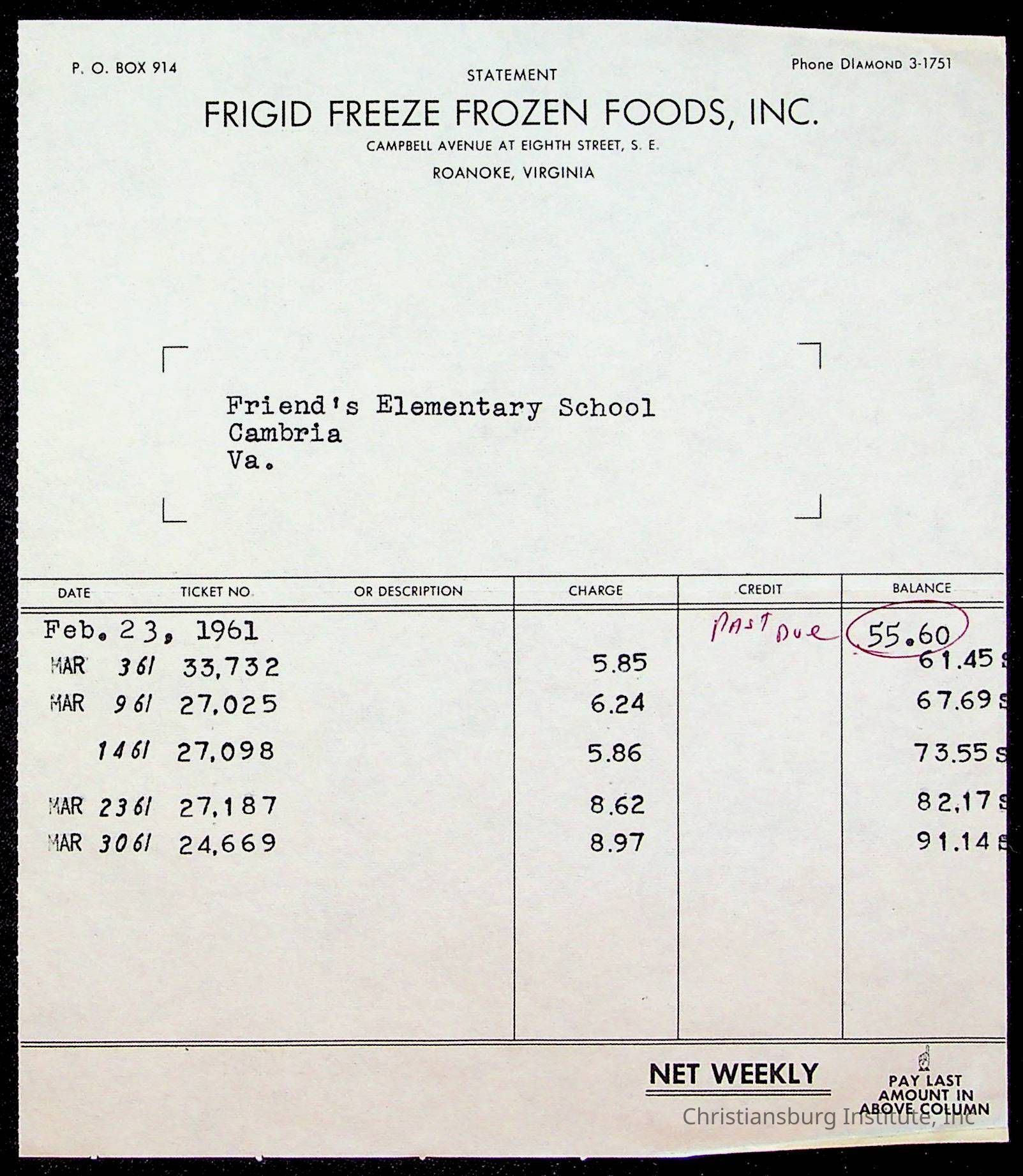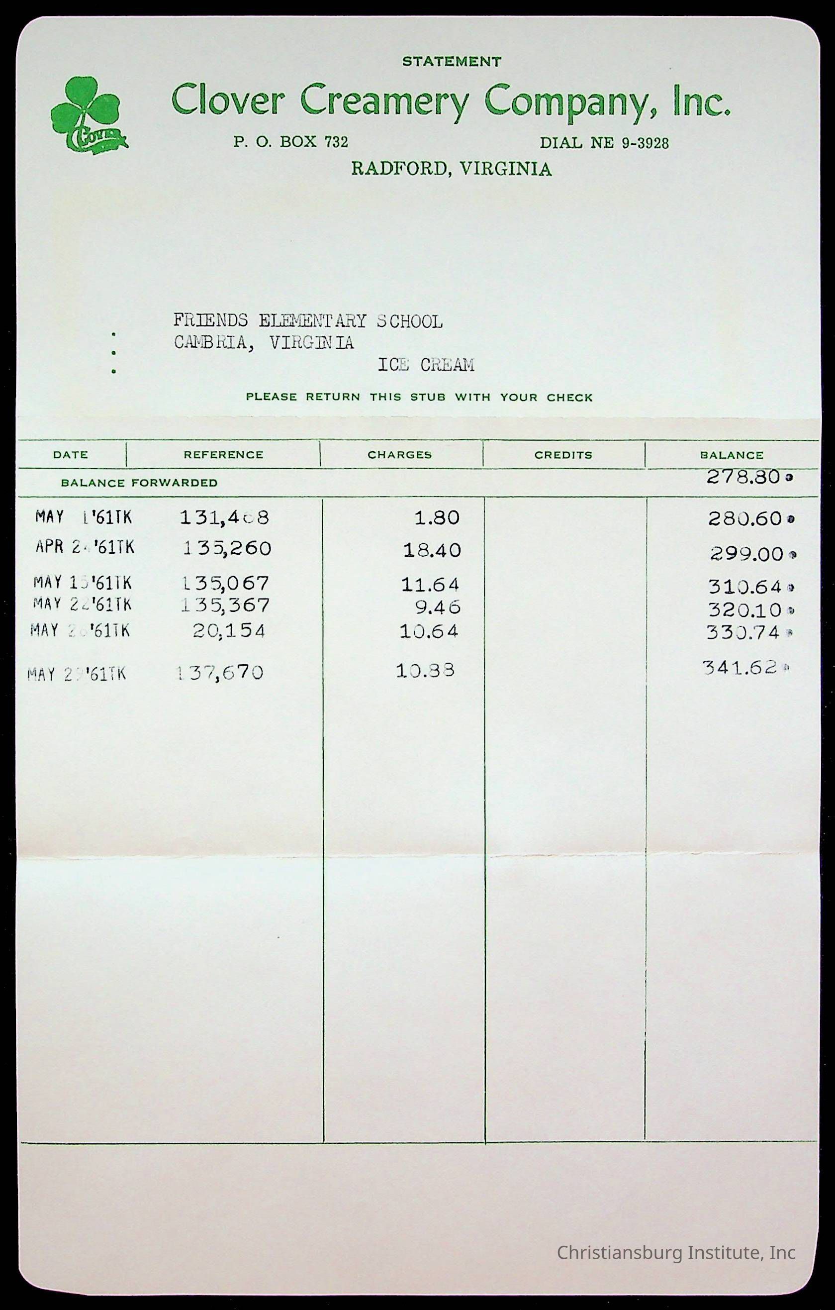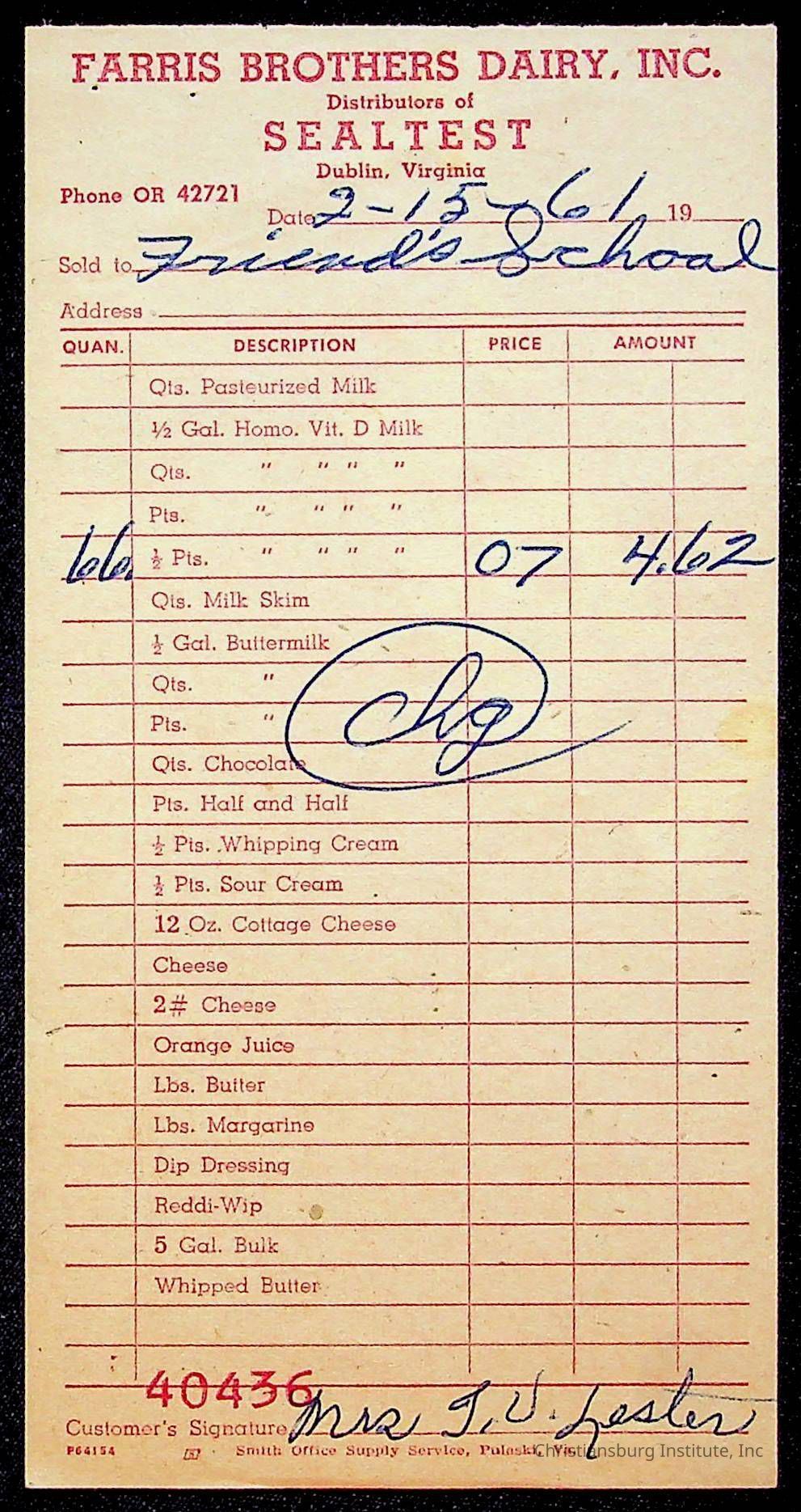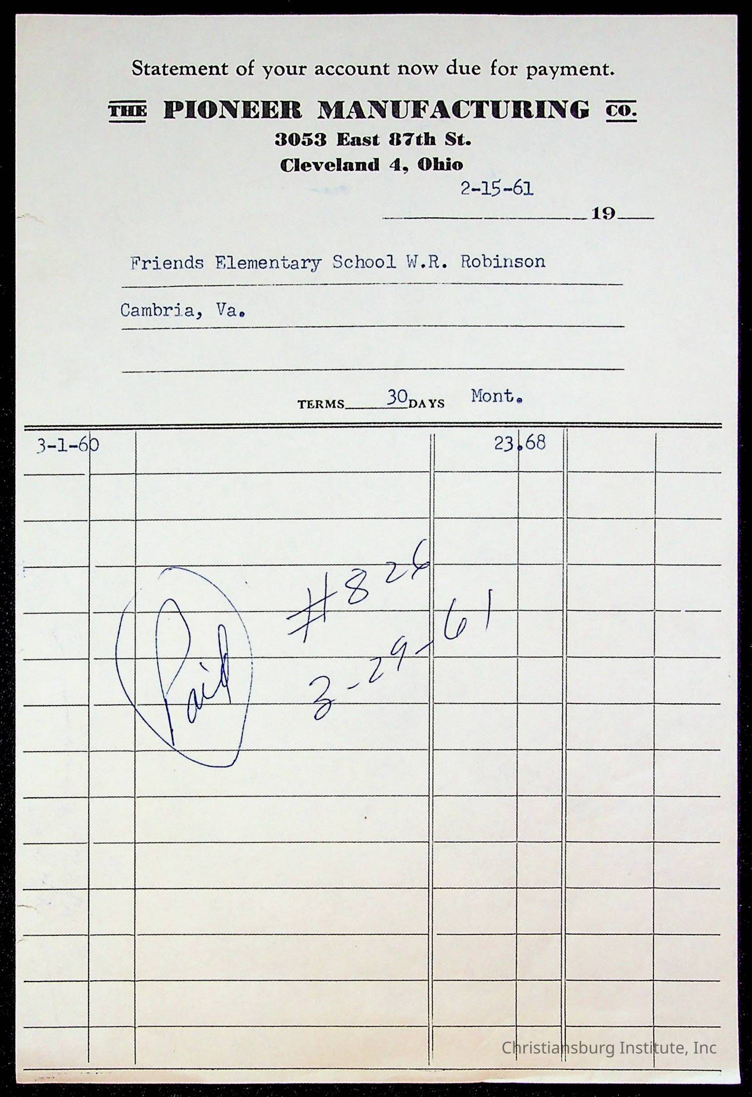 An archive of bills and receipts for Friends Elementary School from the 1959-1960 school year.Collection