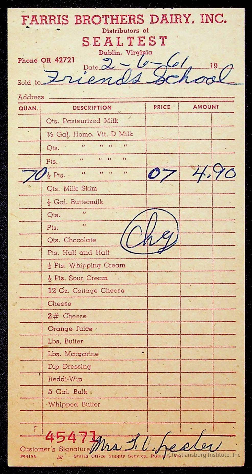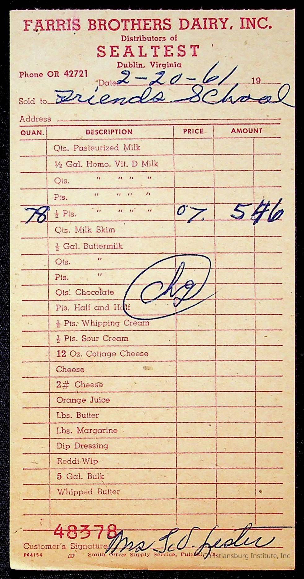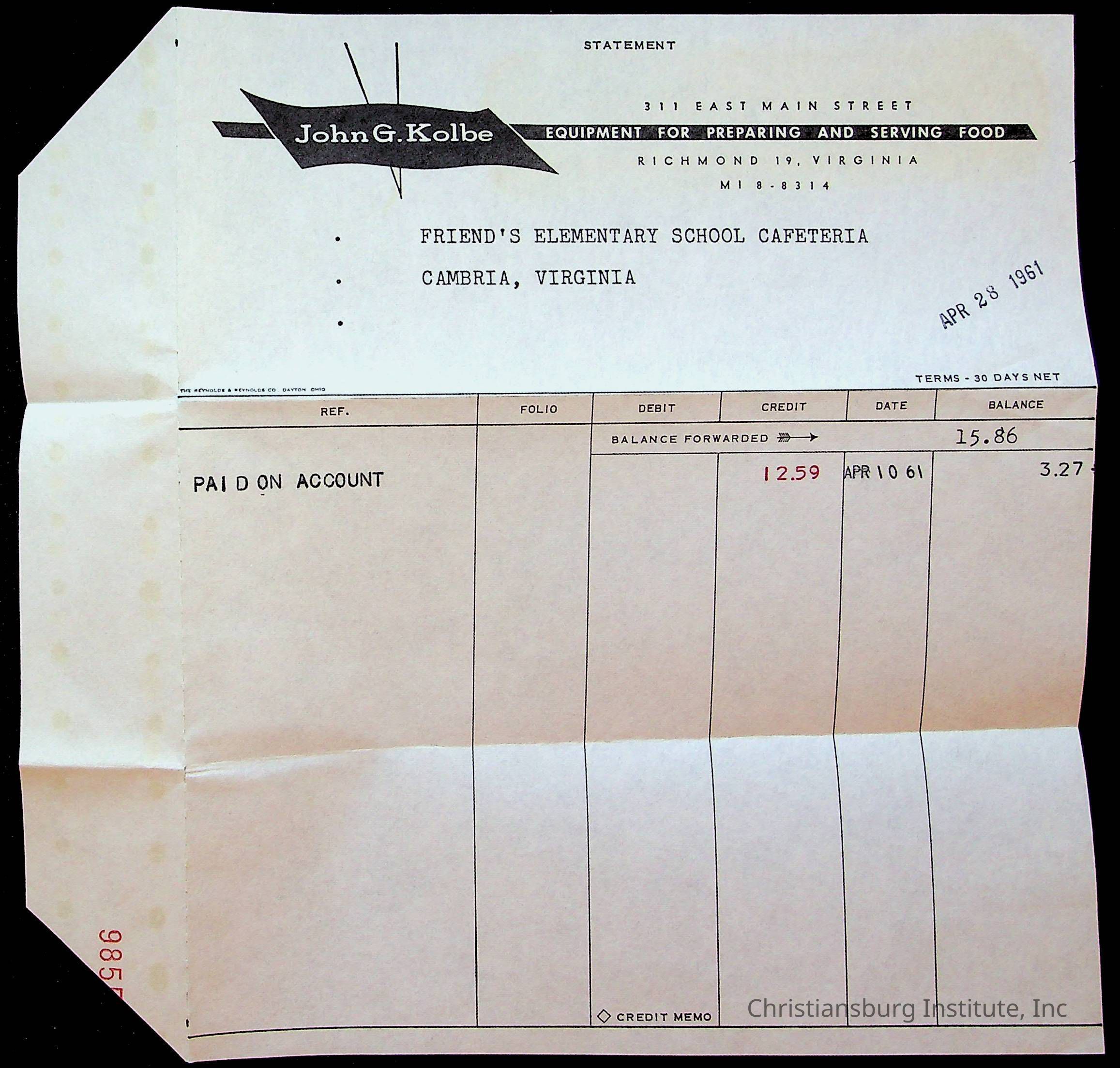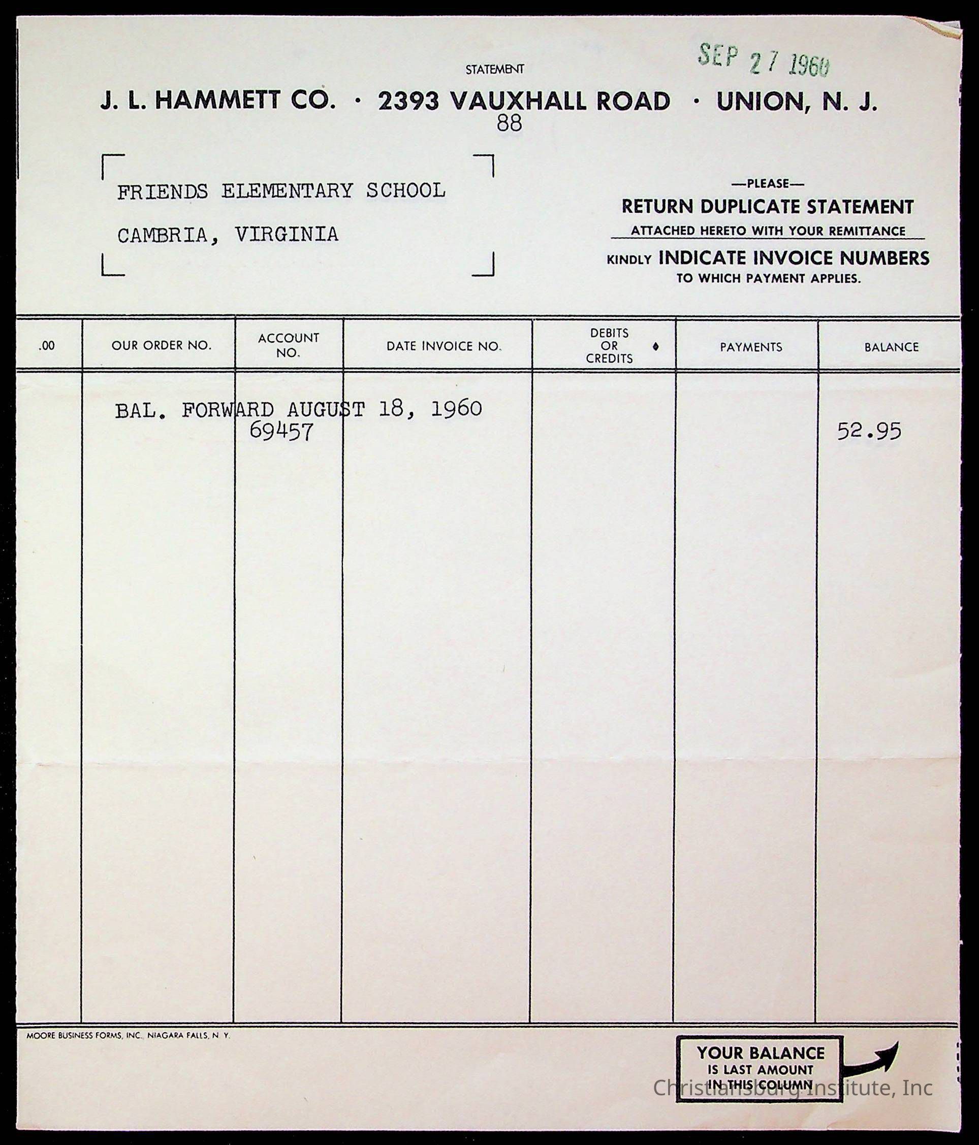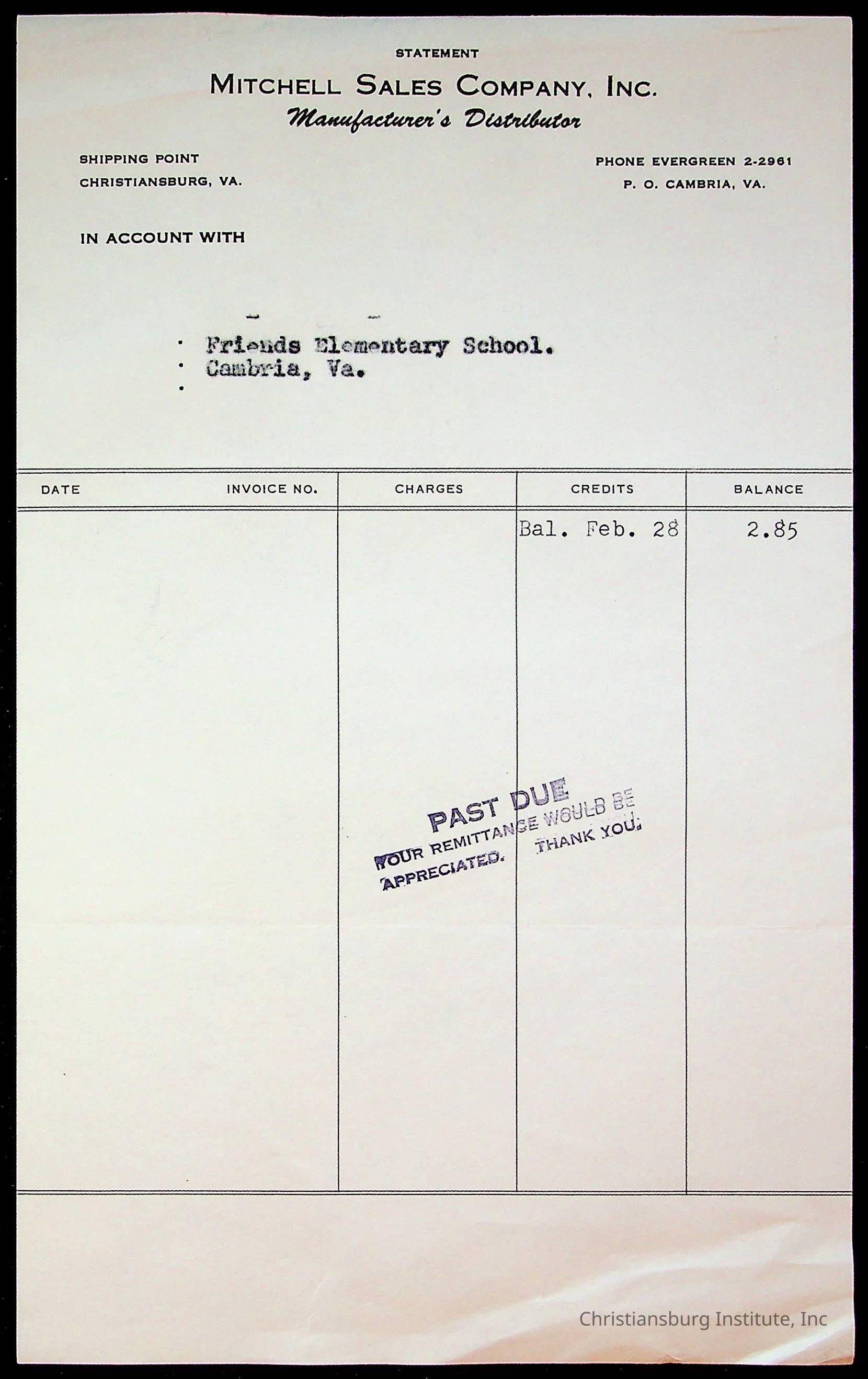 An archive of bills and receipts for Friends Elementary School from the 1959-1960 school year.Collection