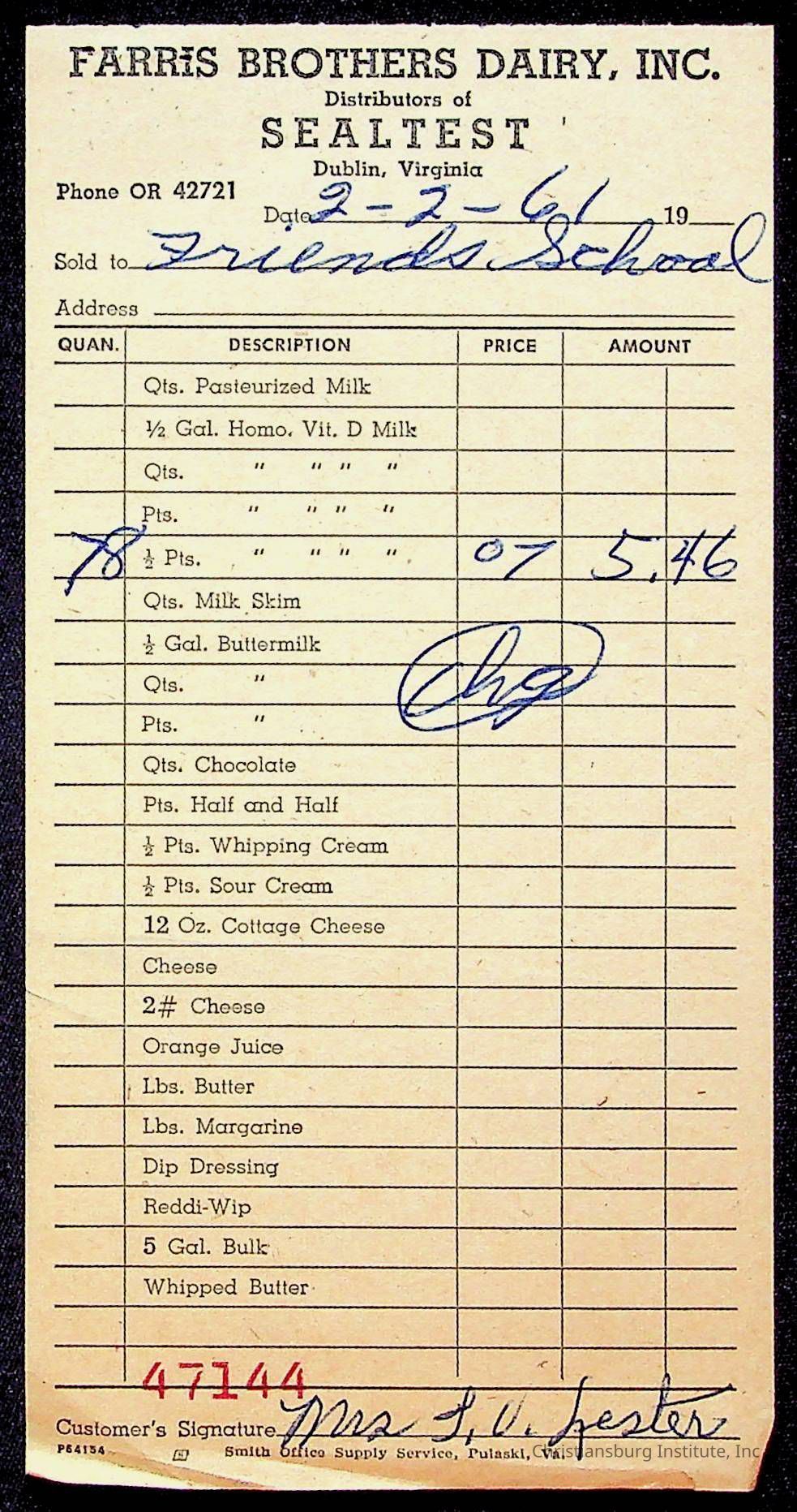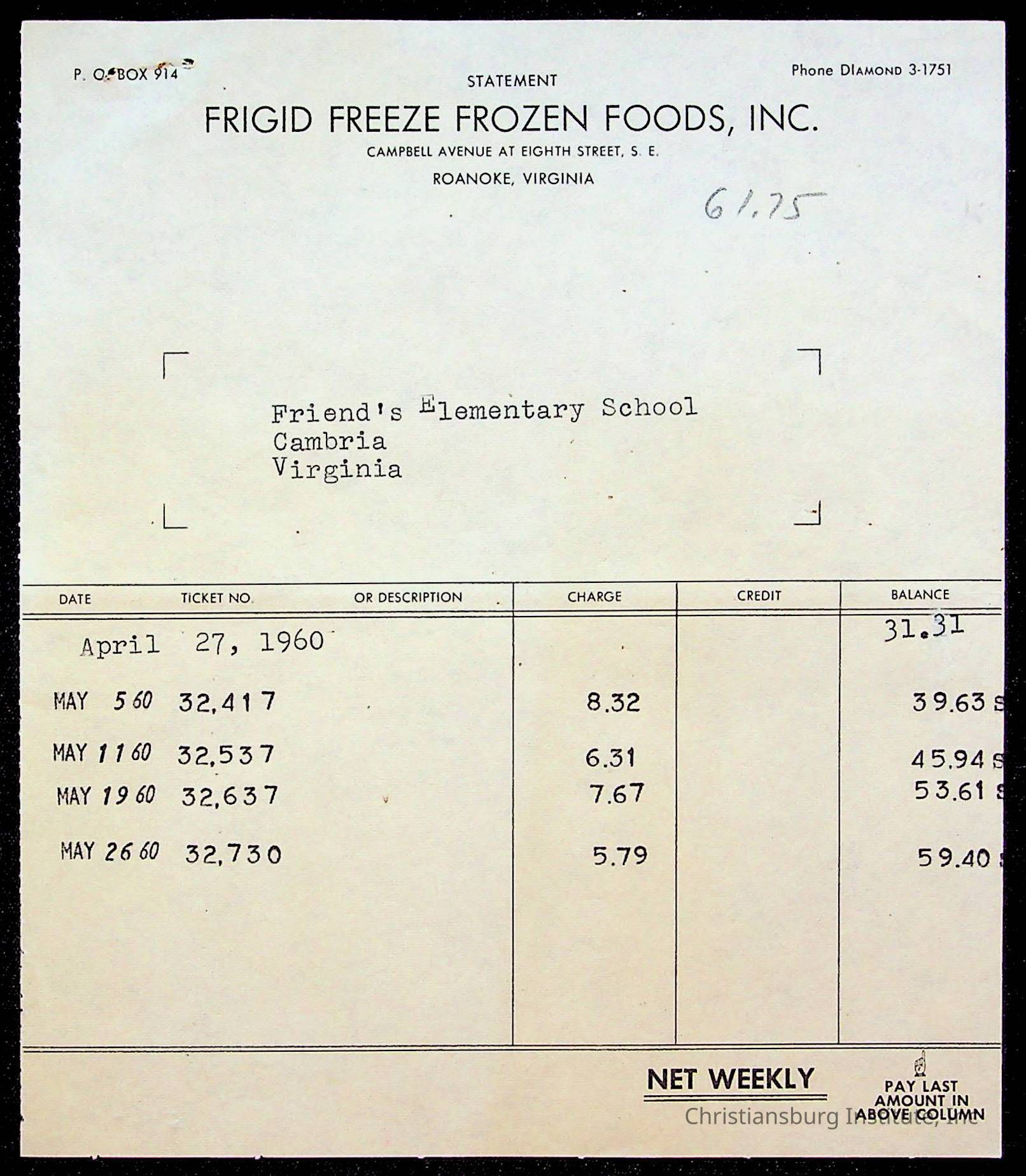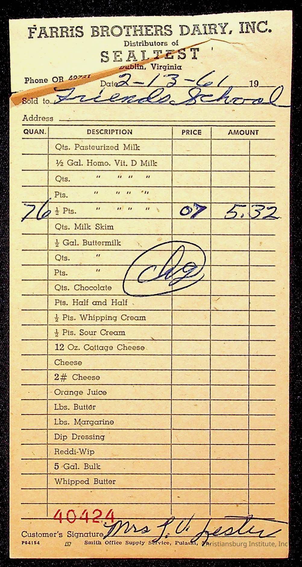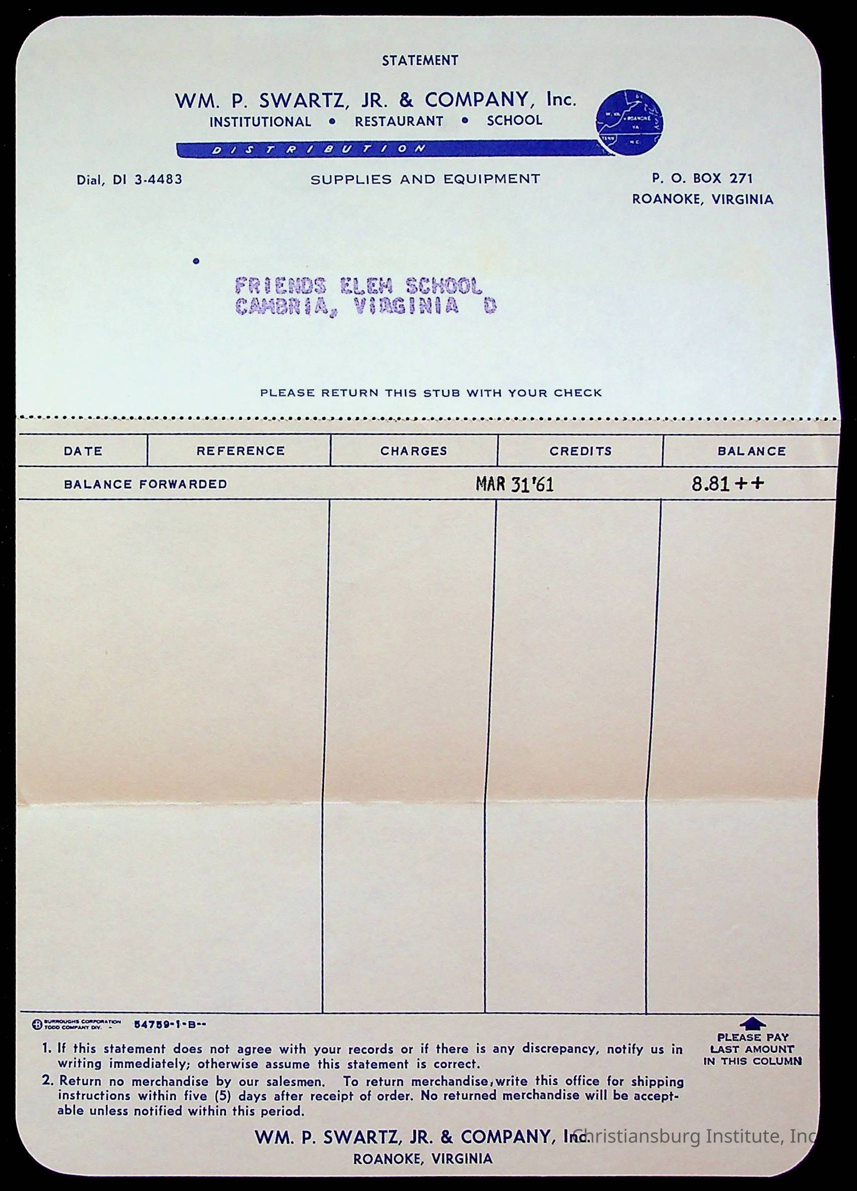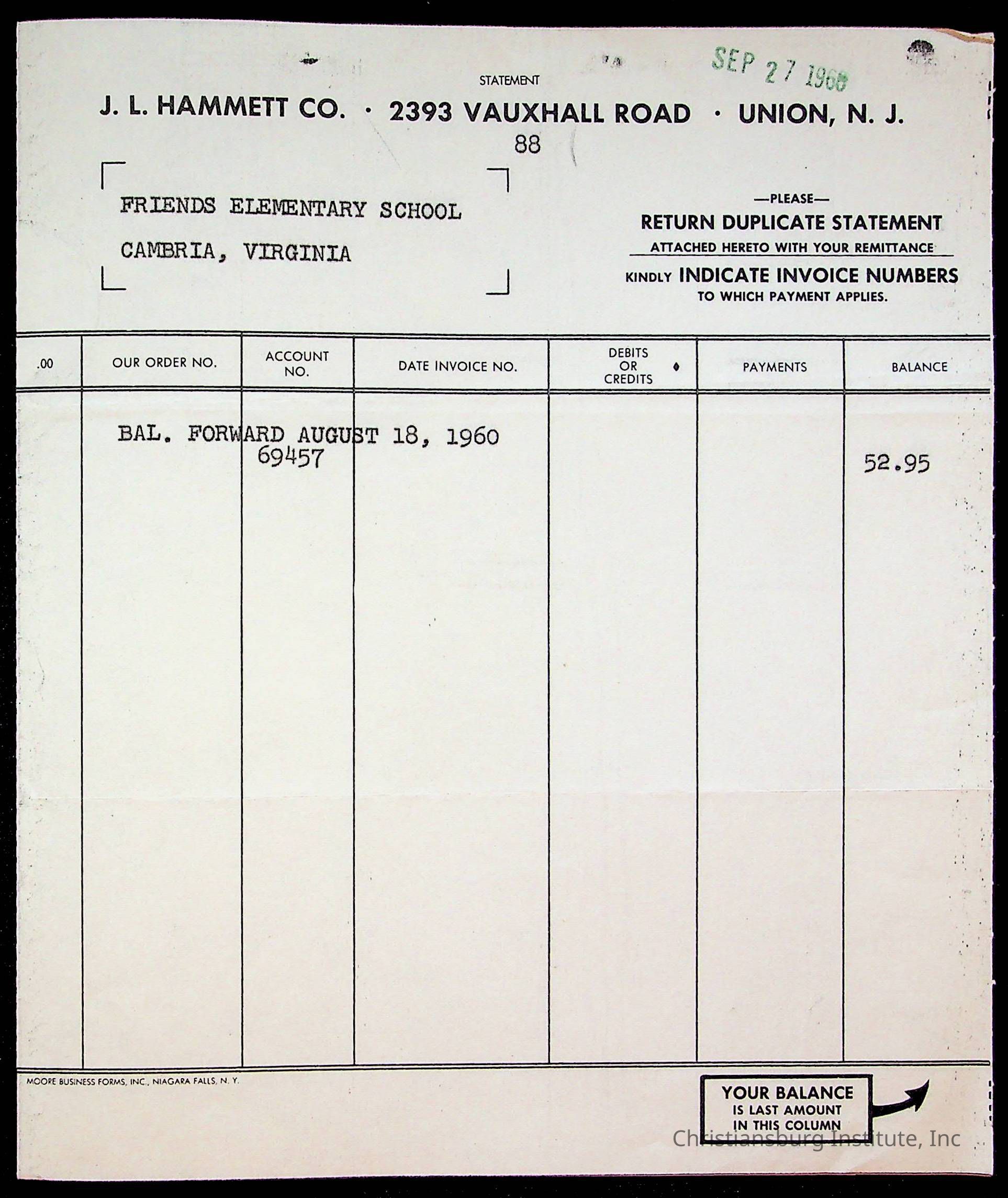 An archive of bills and receipts for Friends Elementary School from the 1959-1960 school year.Collection