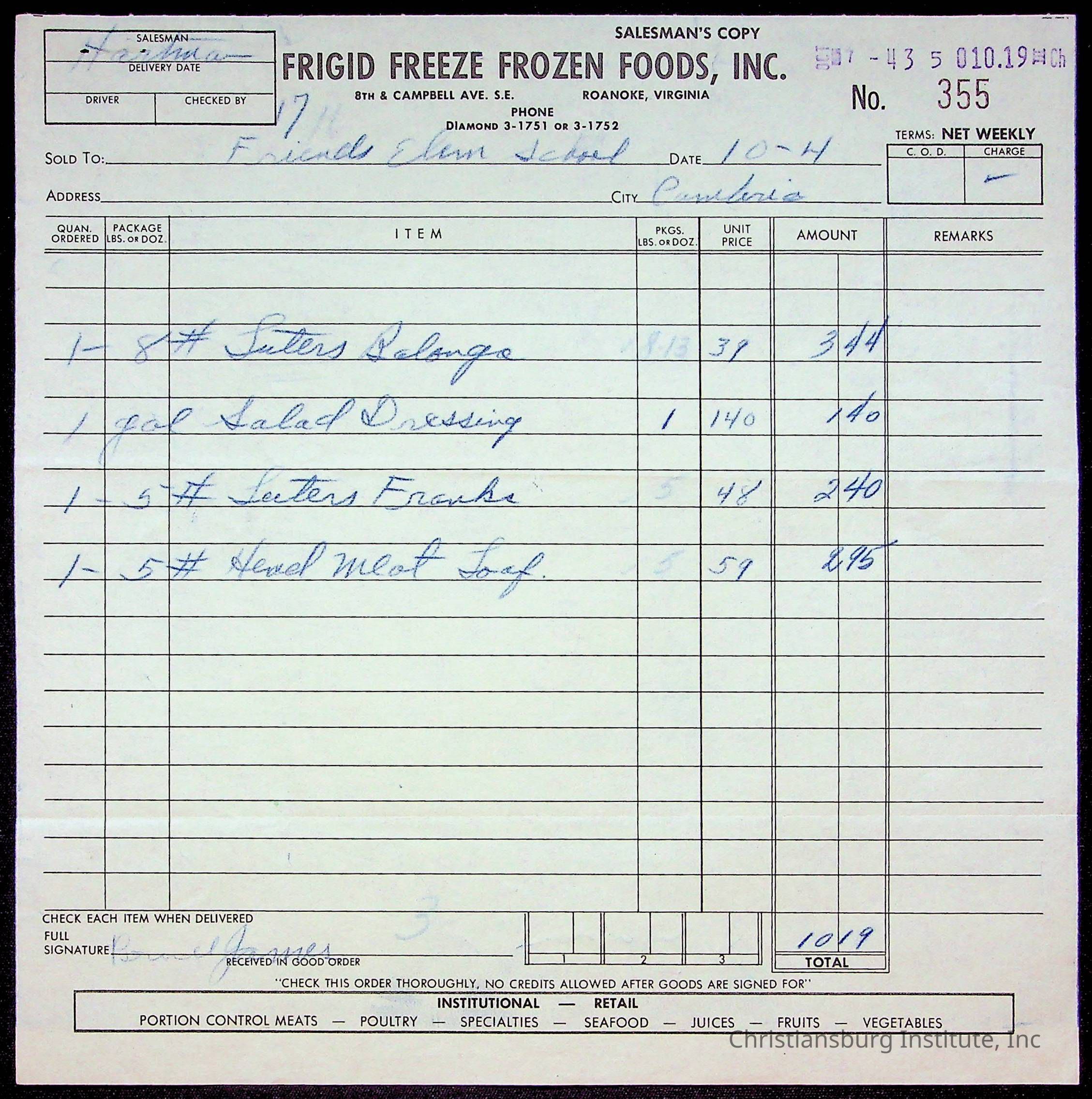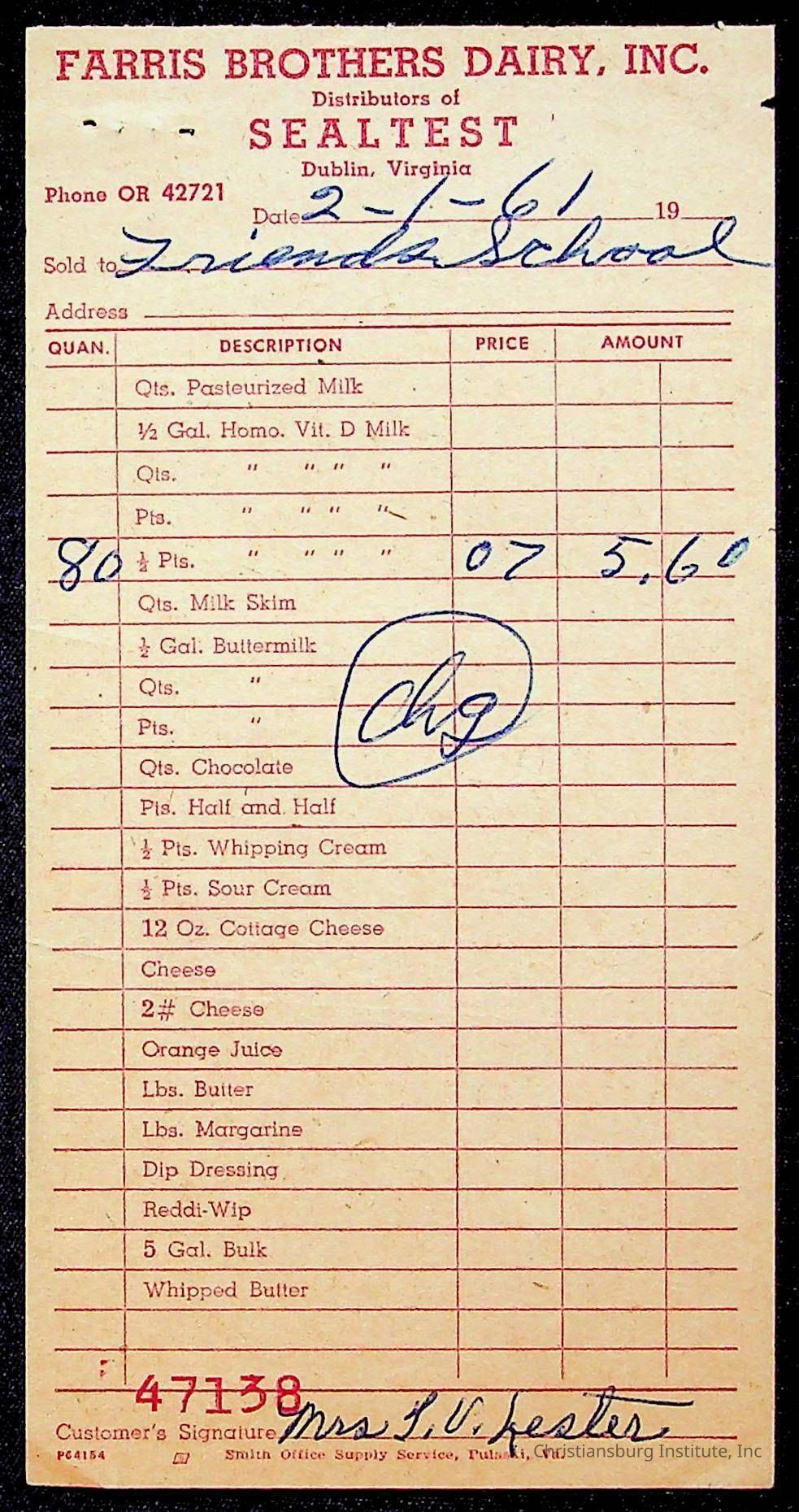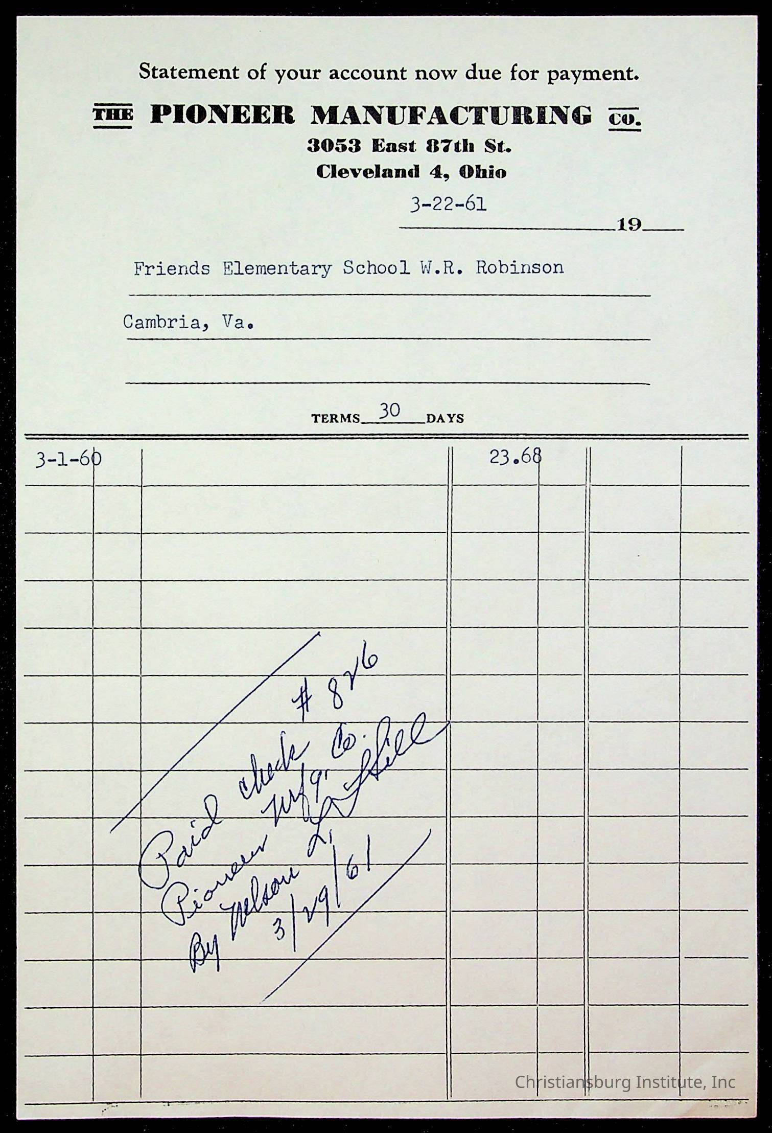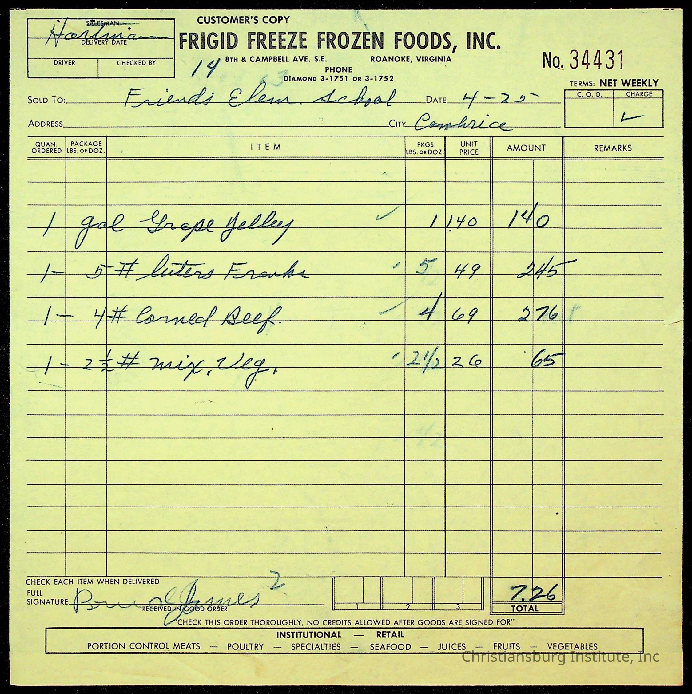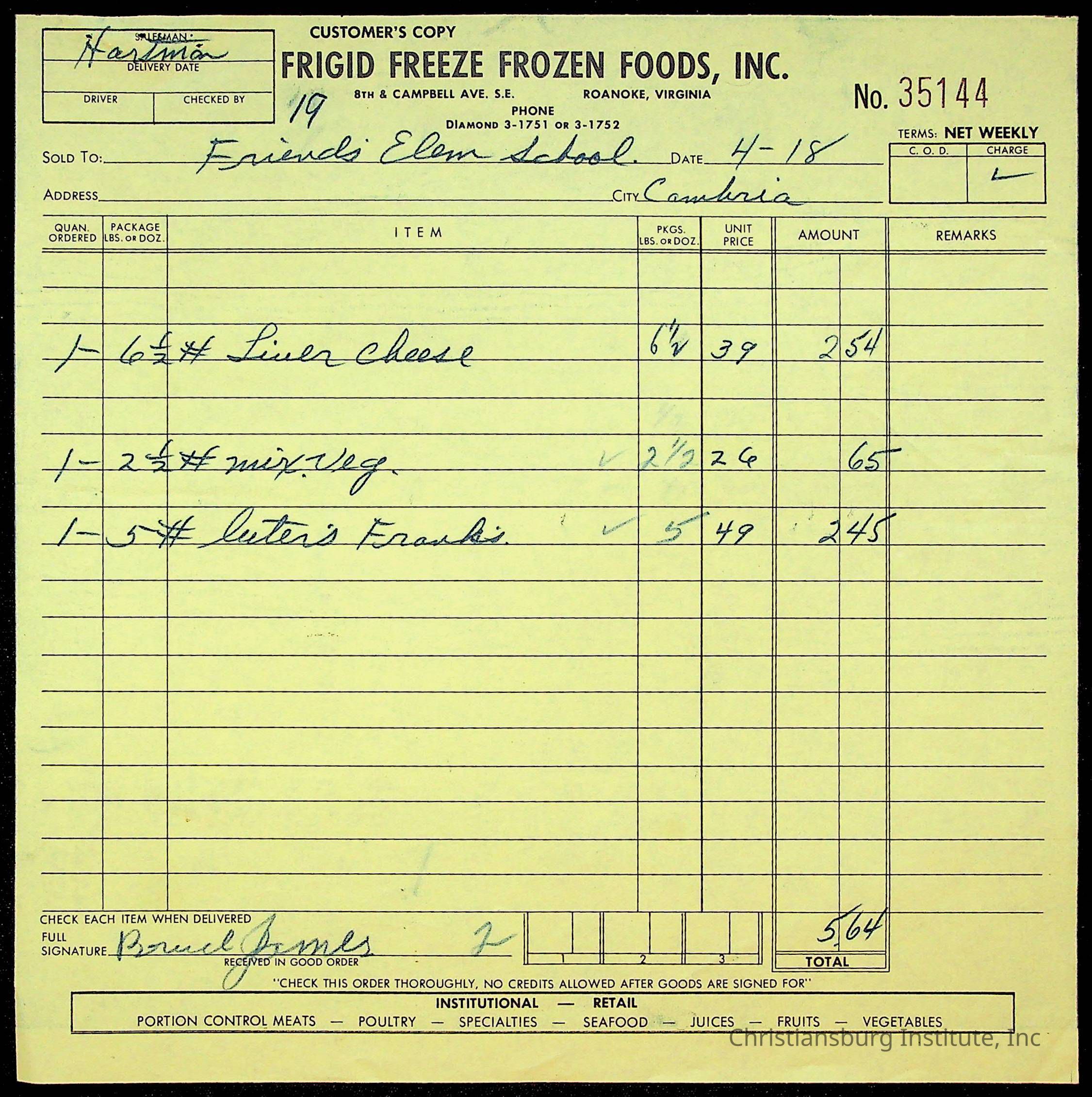 An archive of bills and receipts for Friends Elementary School from the 1959-1960 school year.Collection