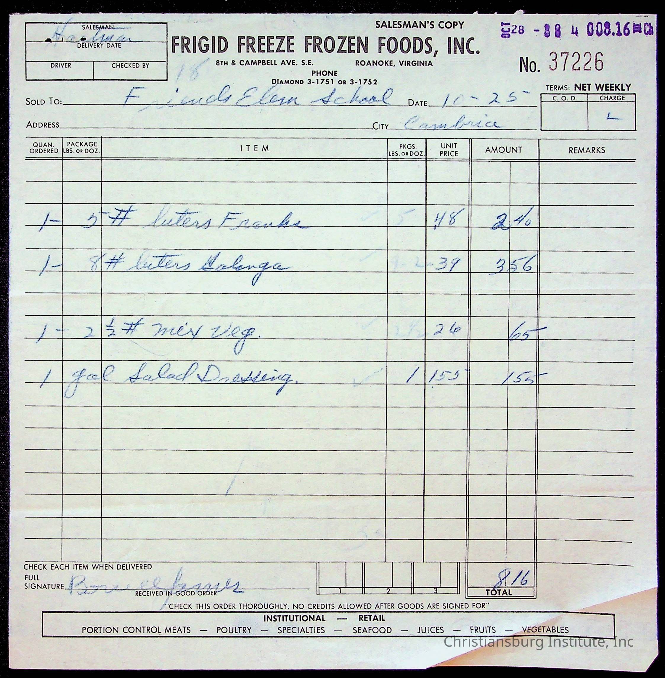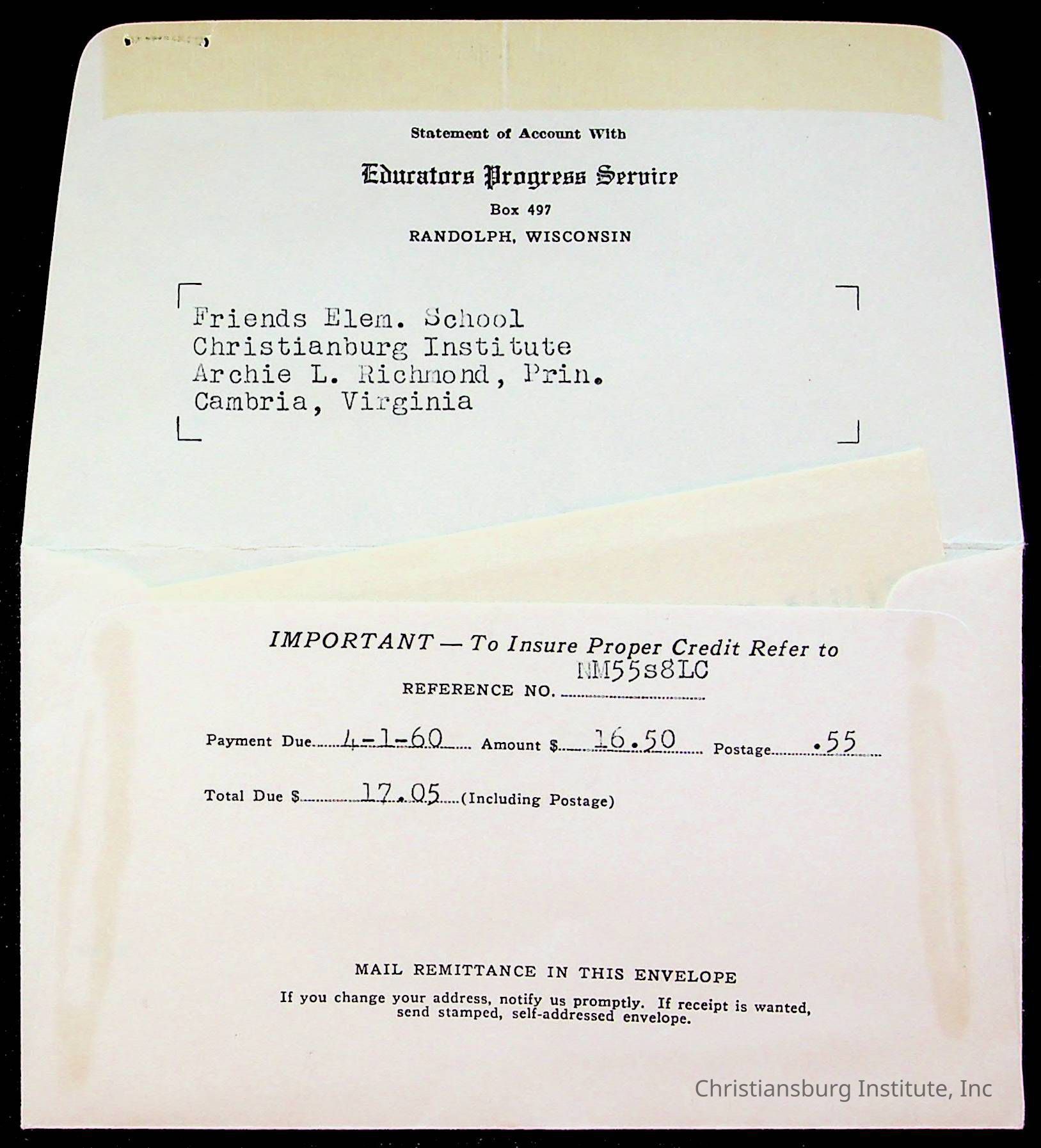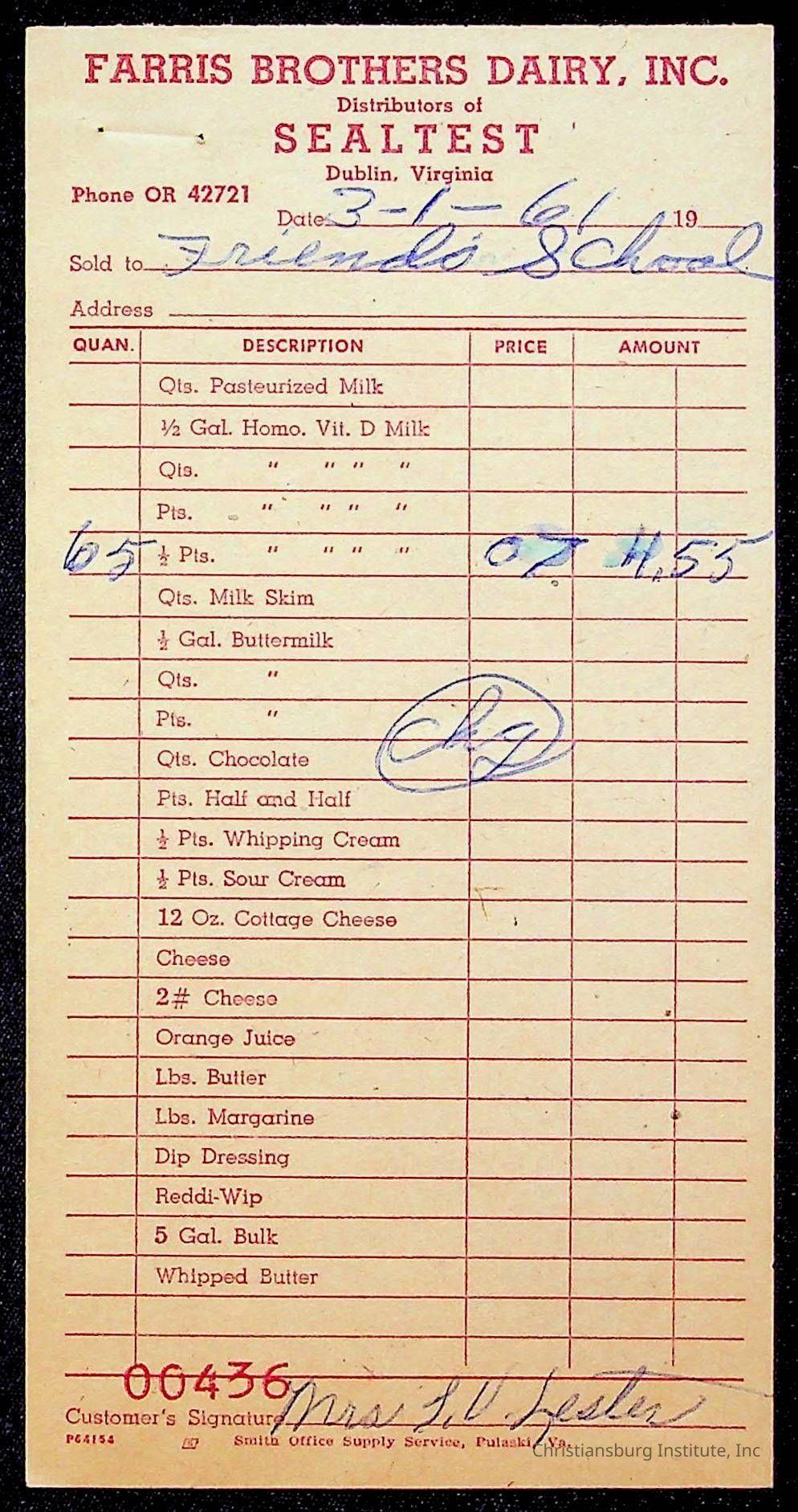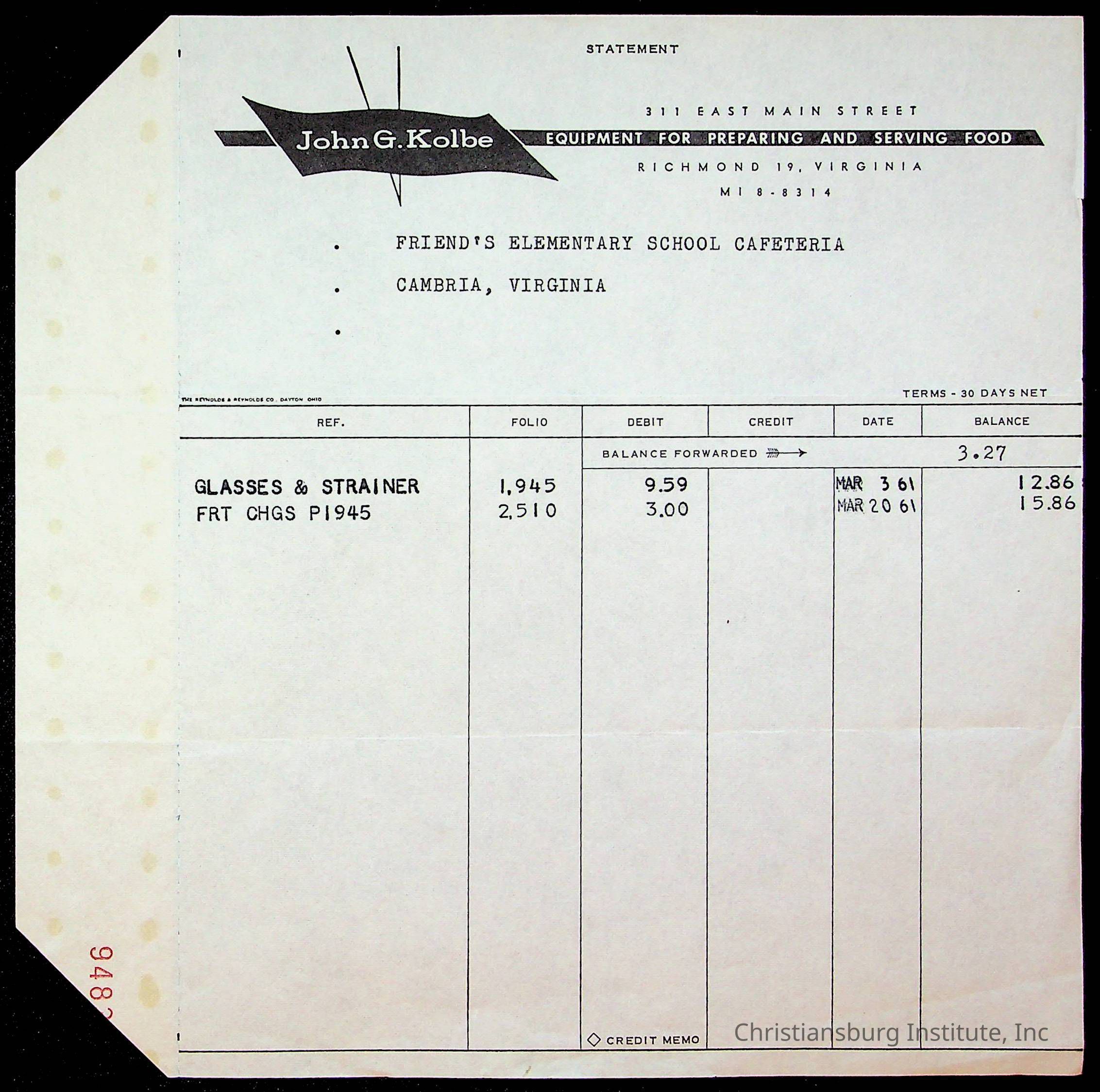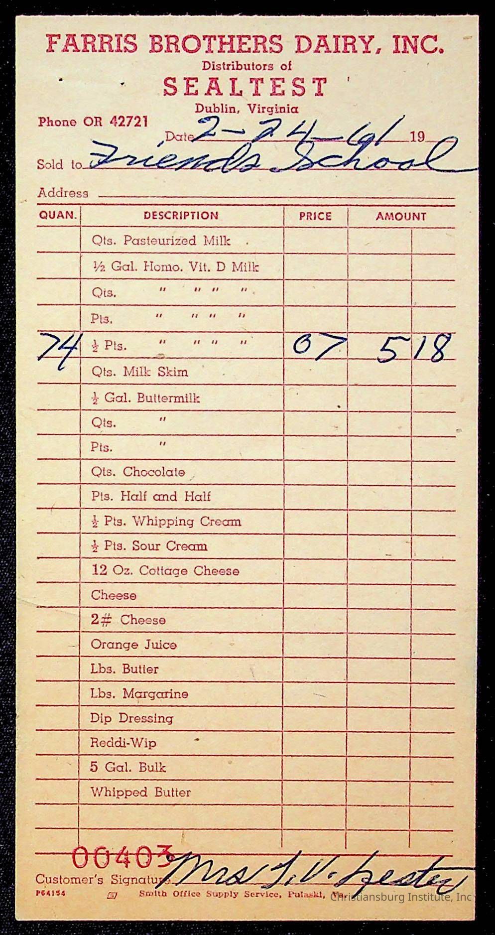 An archive of bills and receipts for Friends Elementary School from the 1959-1960 school year.Collection