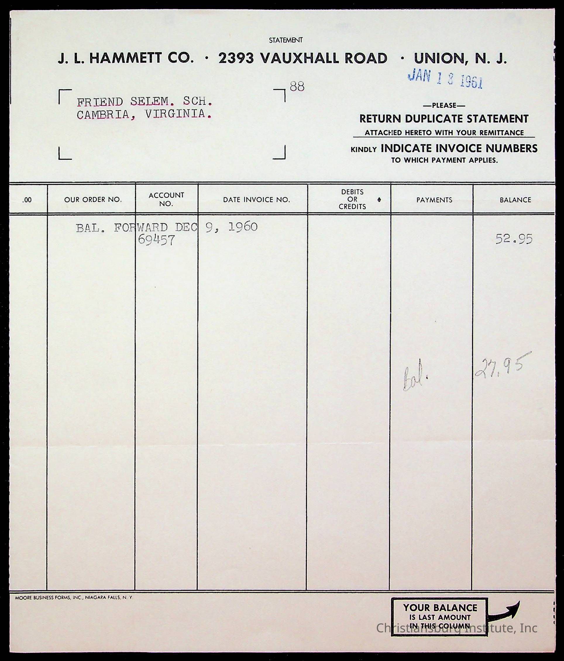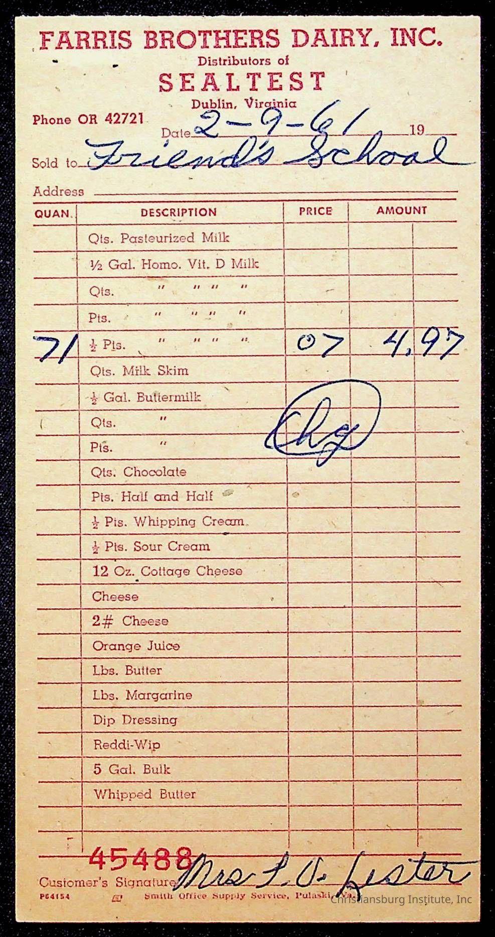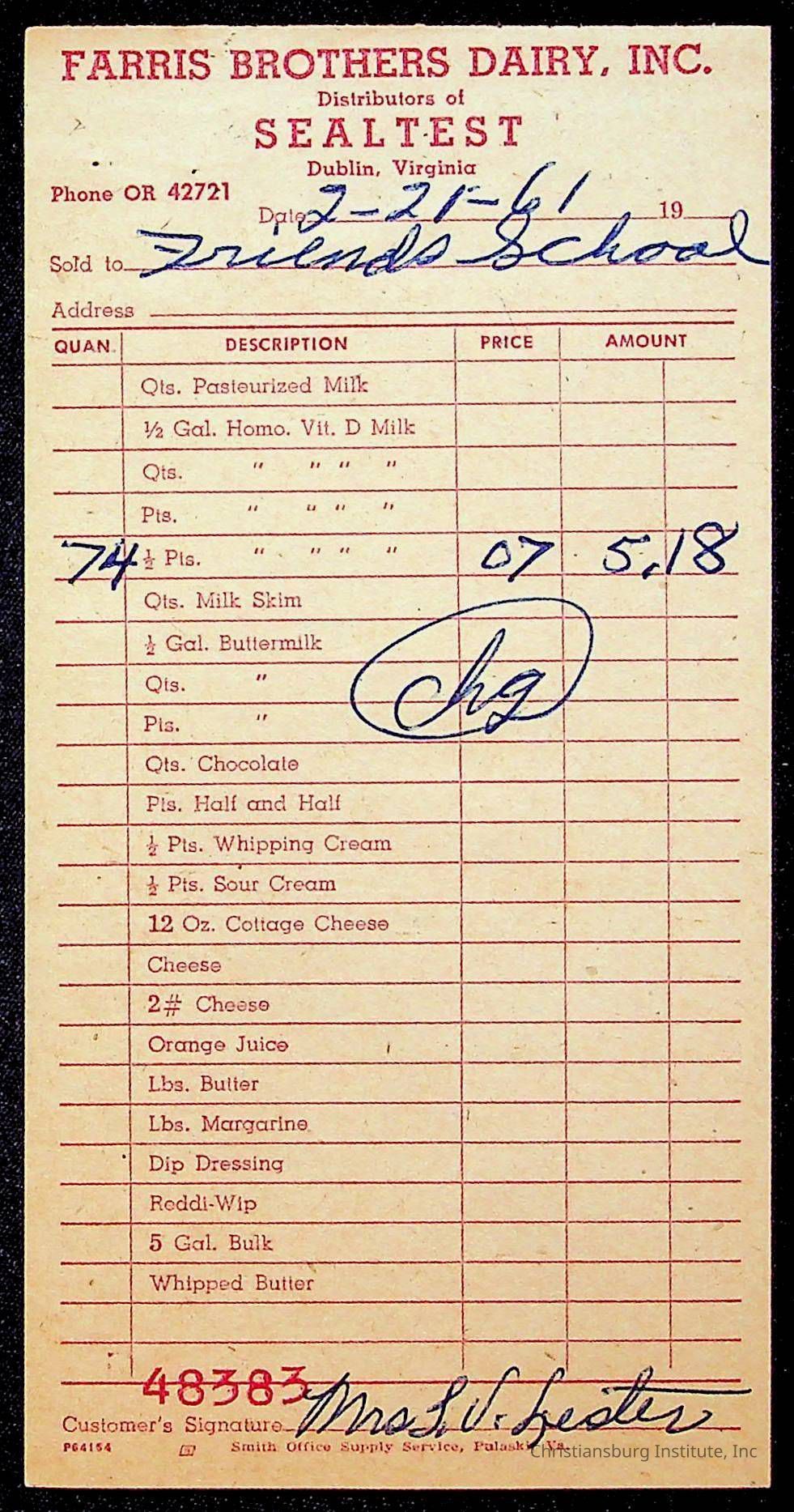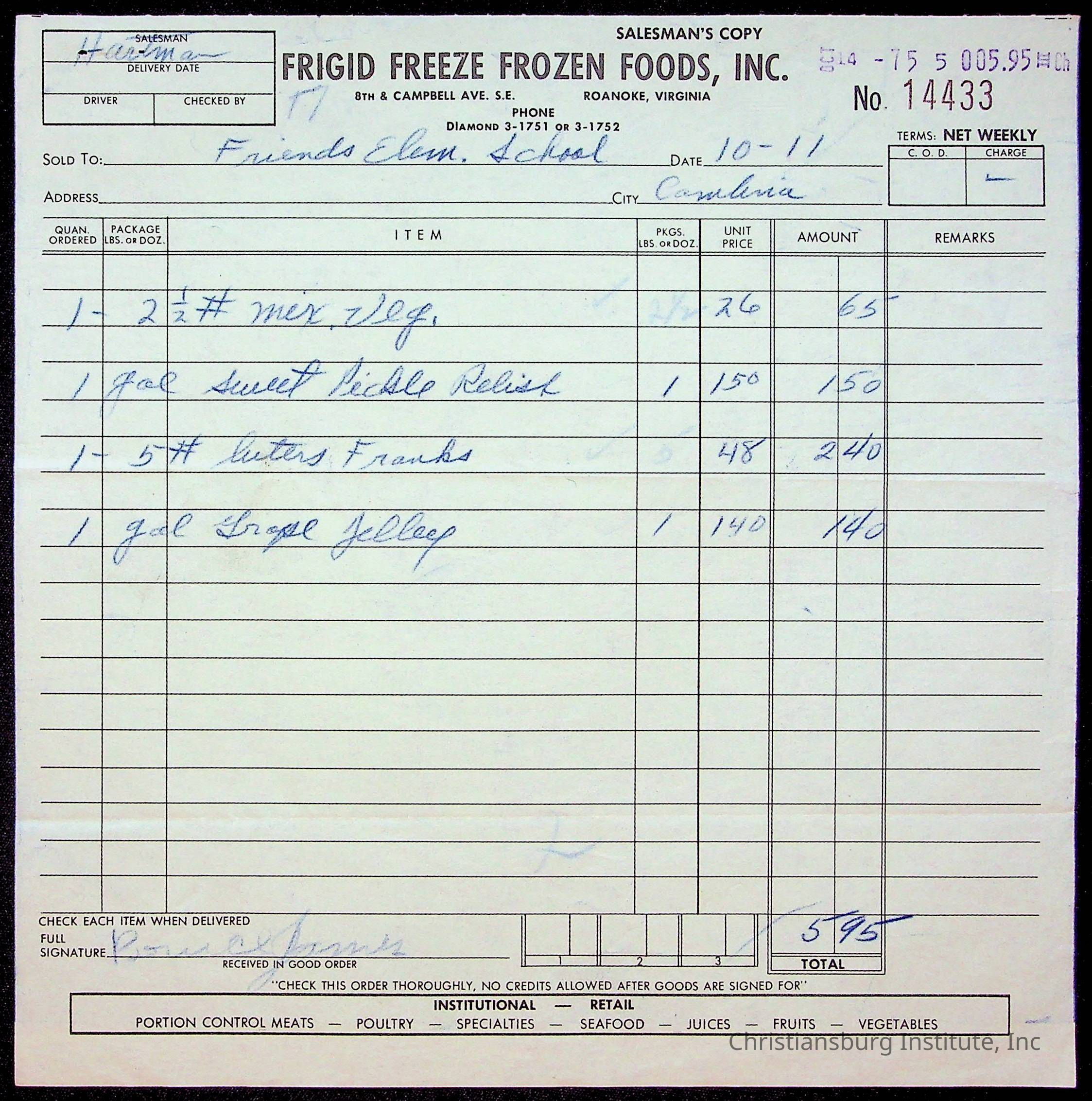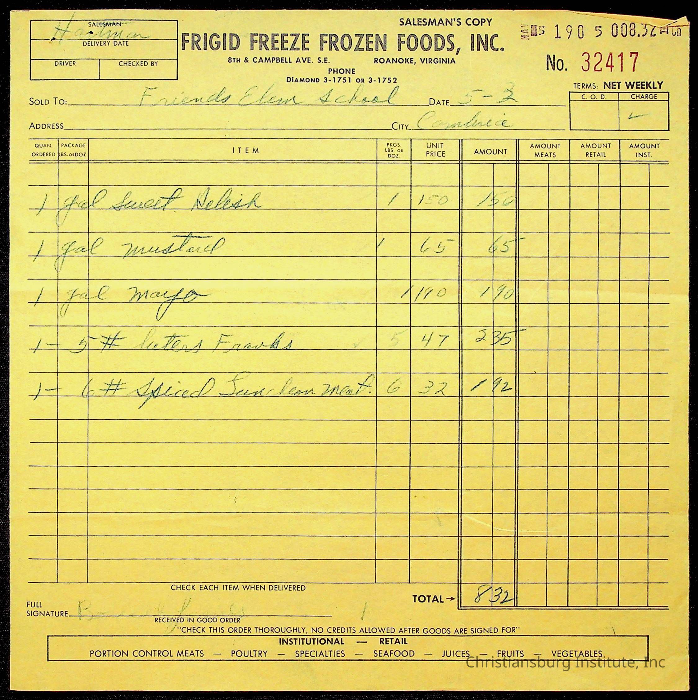 An archive of bills and receipts for Friends Elementary School from the 1959-1960 school year.Collection