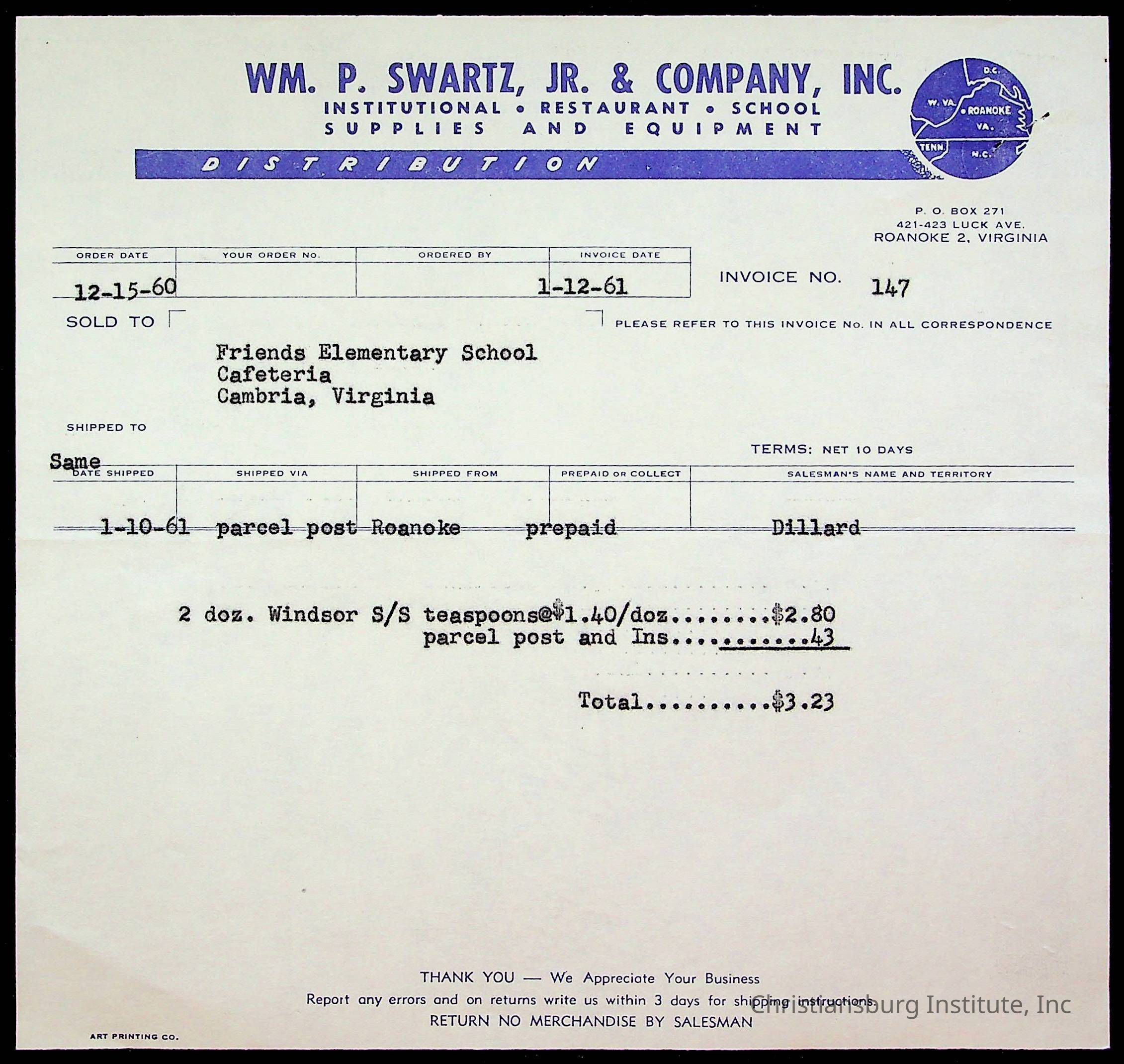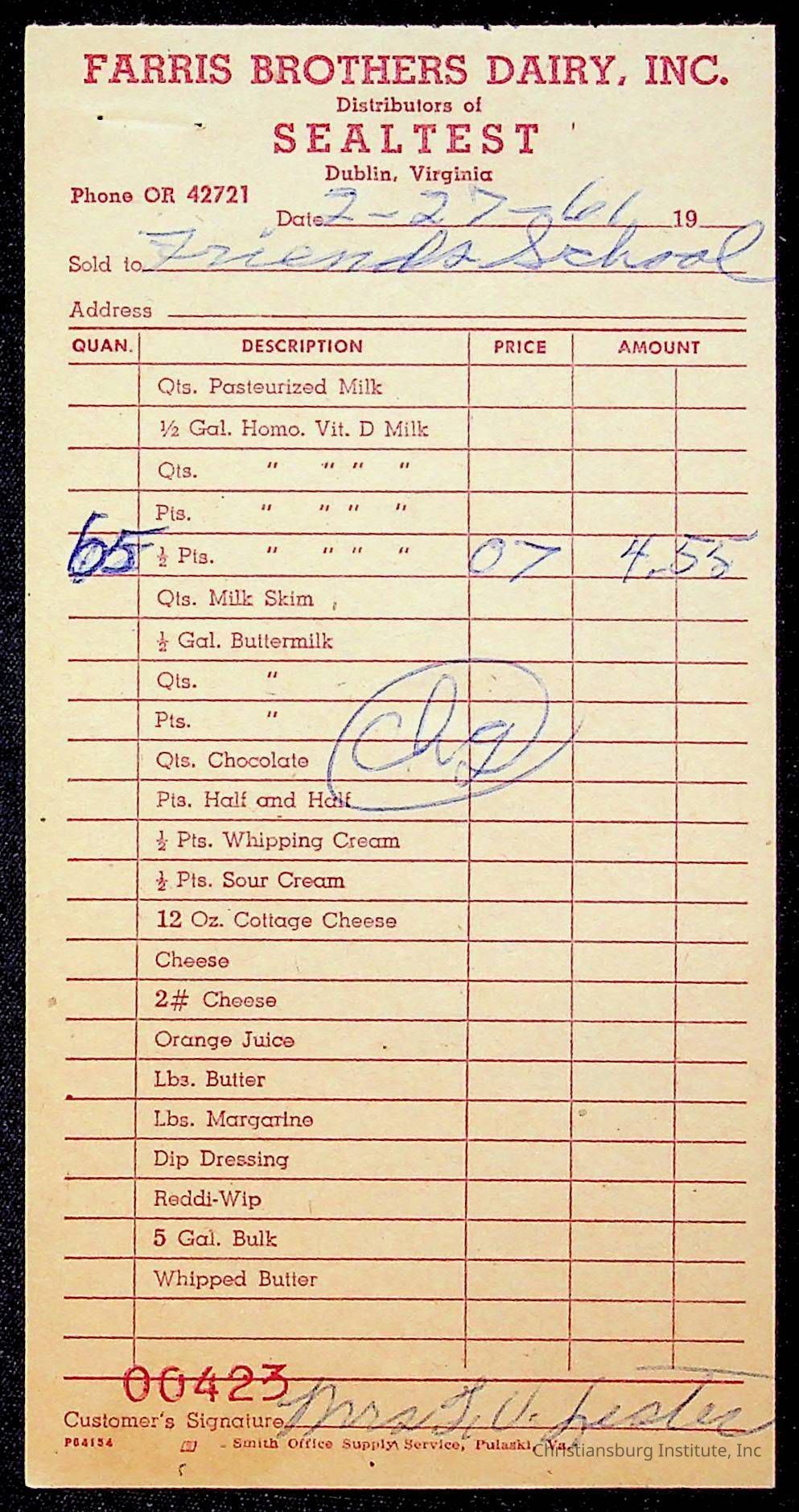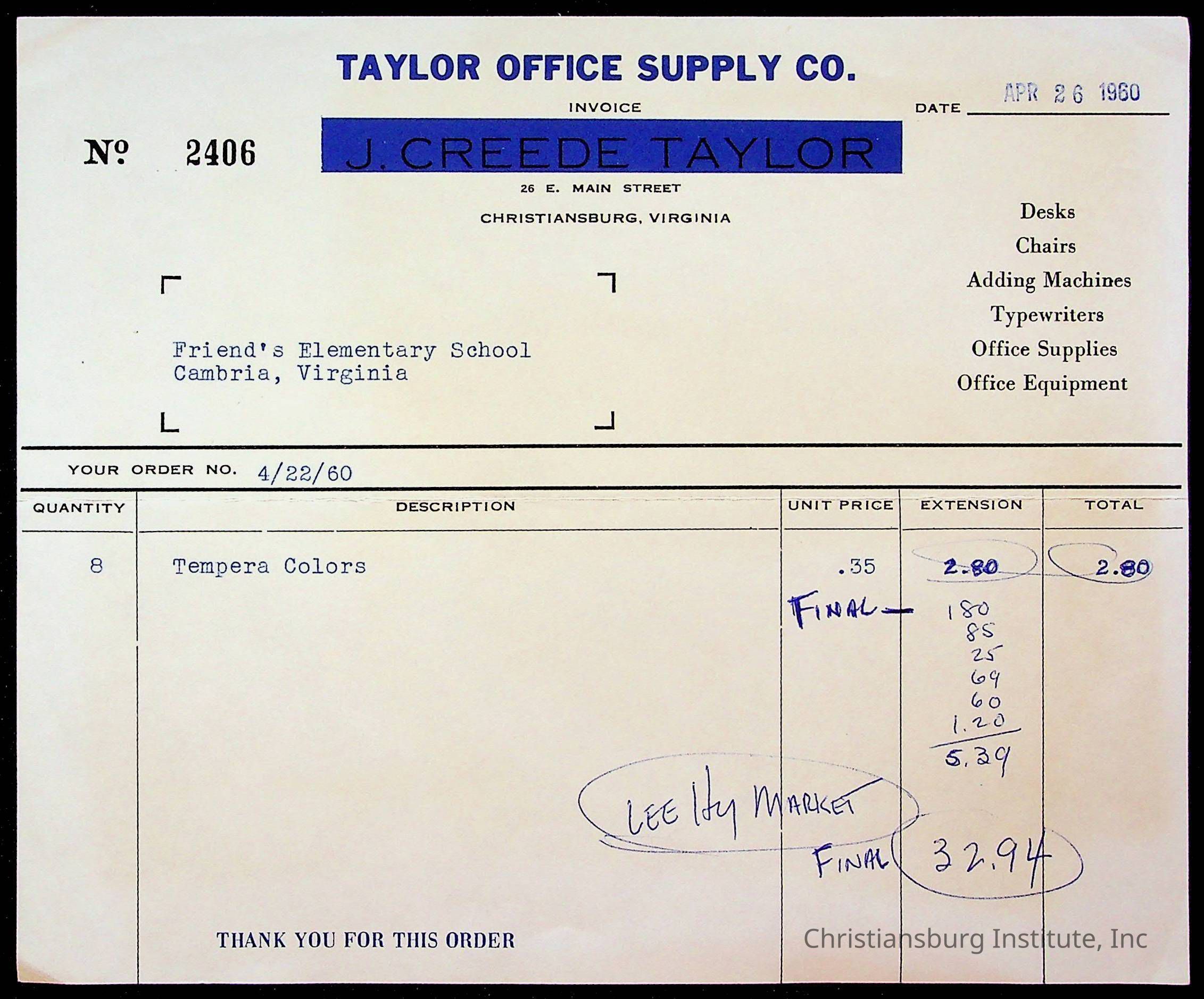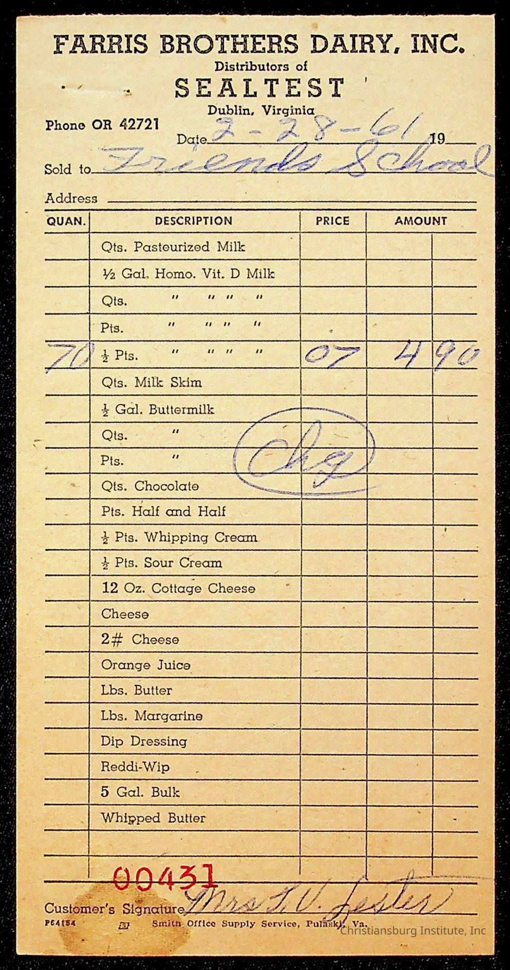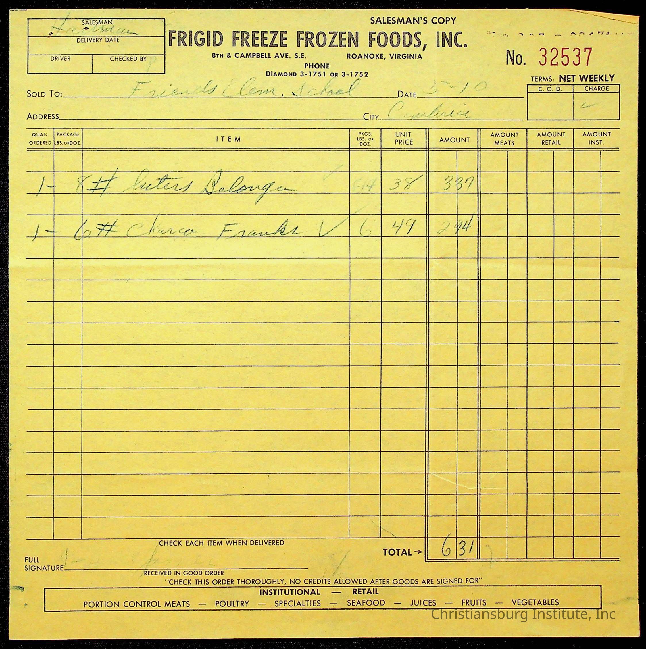 An archive of bills and receipts for Friends Elementary School from the 1959-1960 school year.Collection